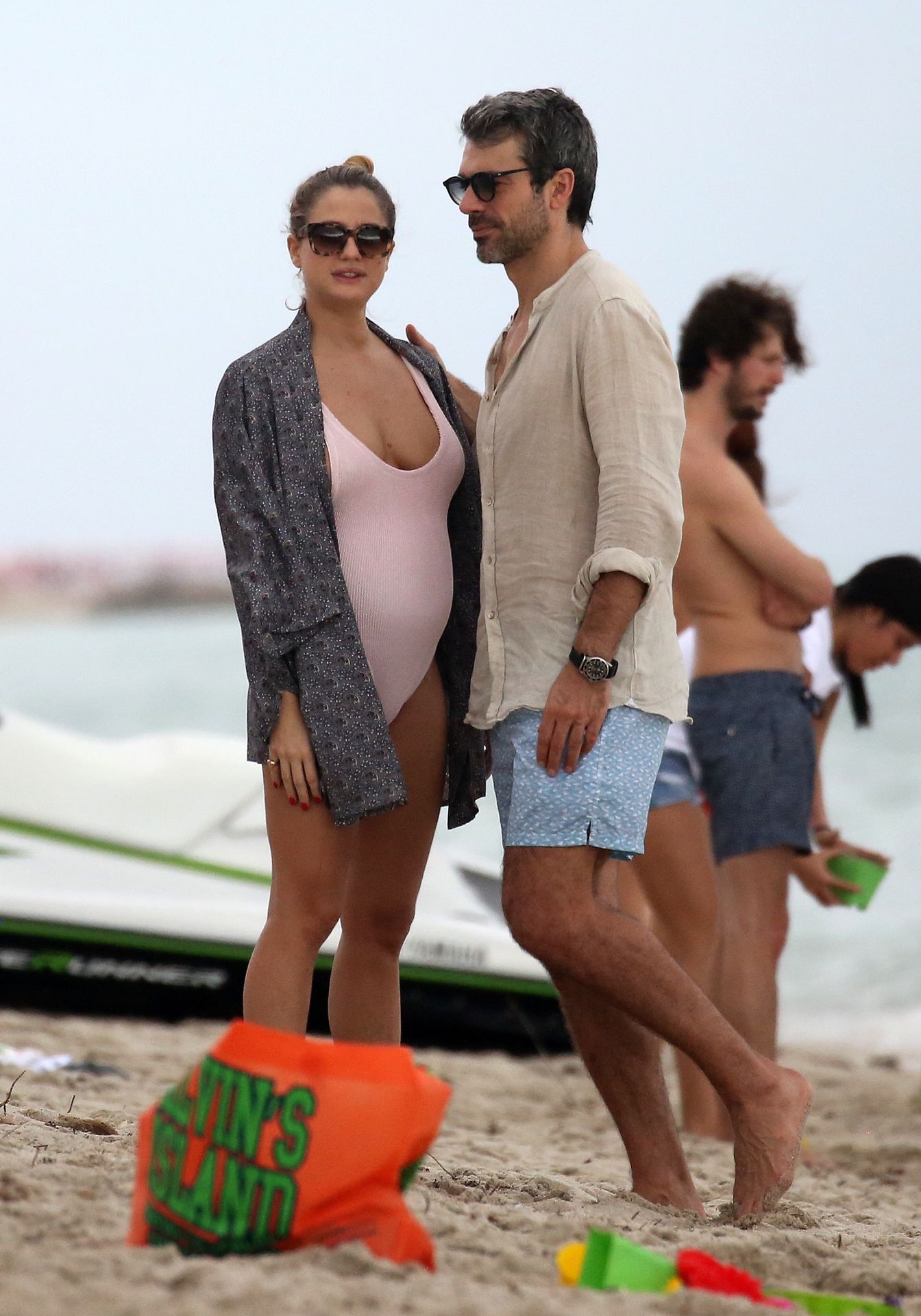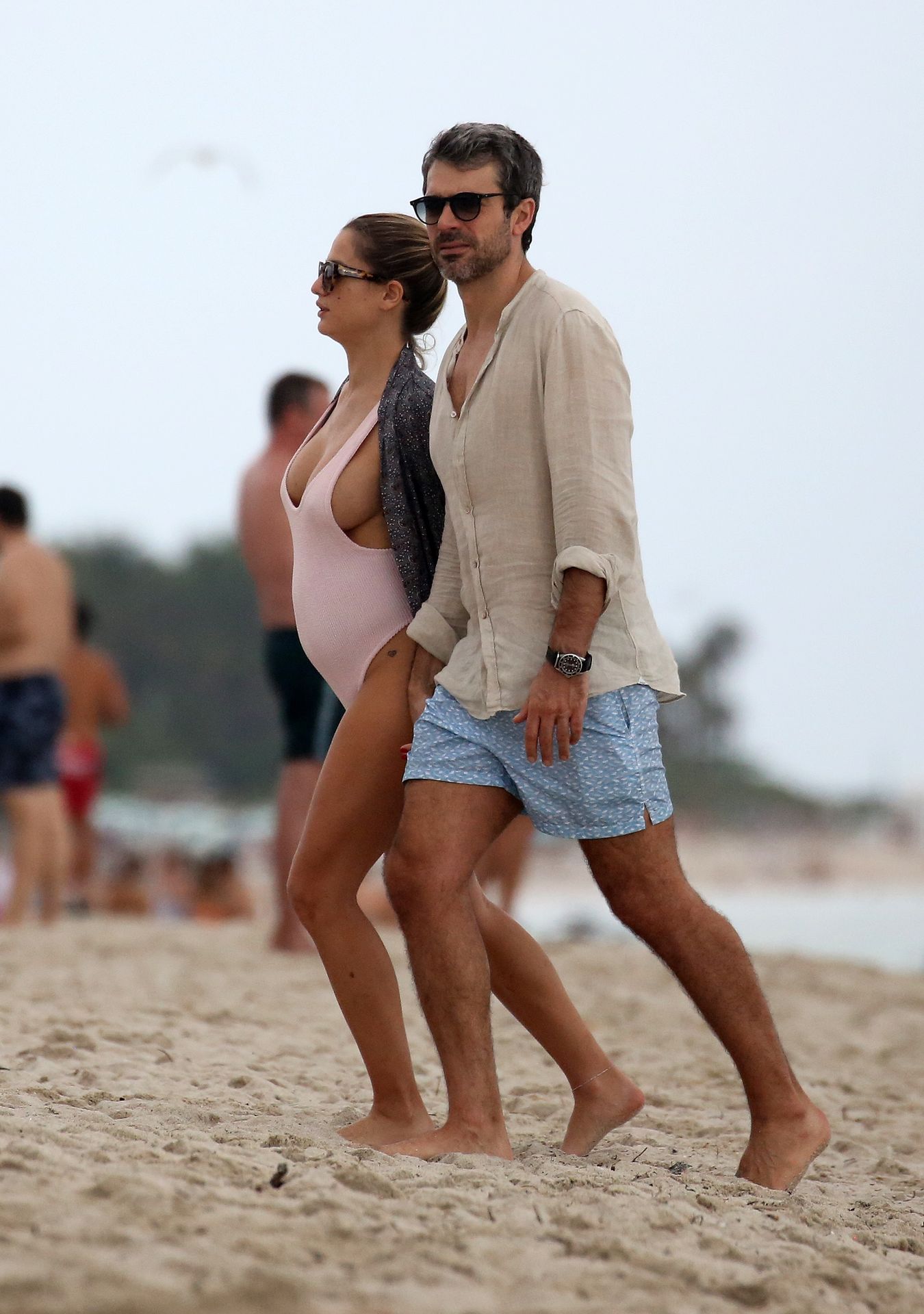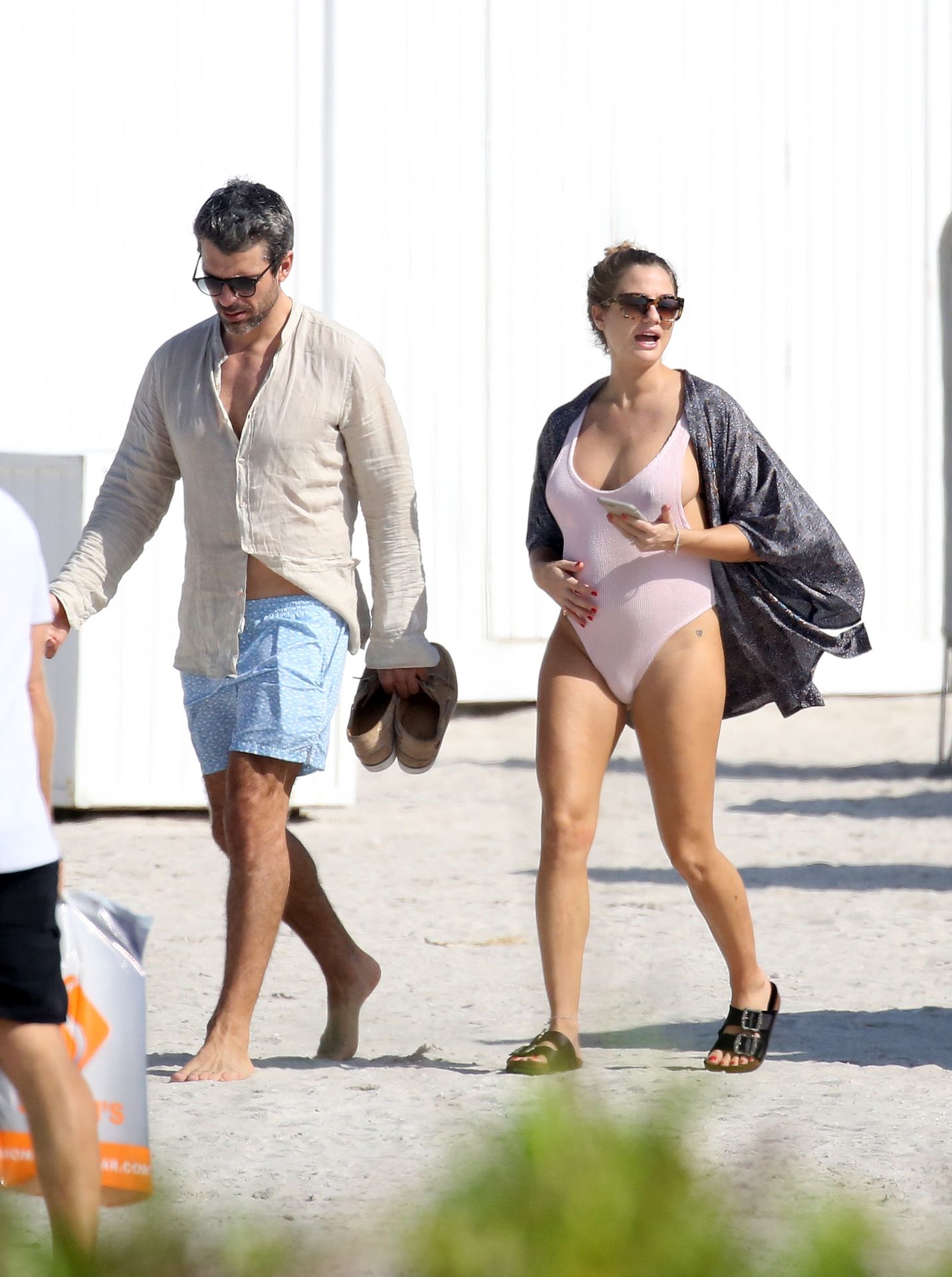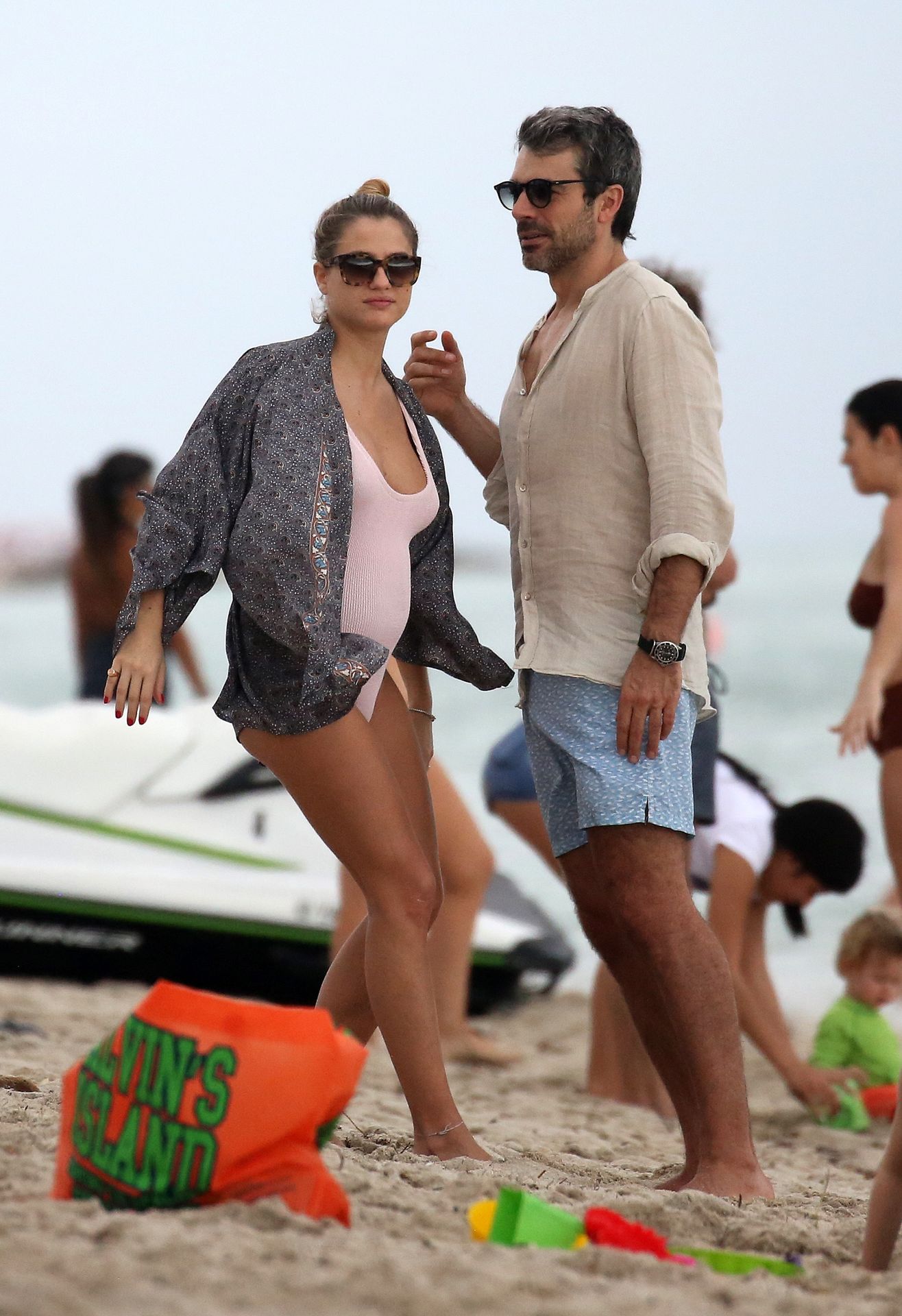 Actress Cristina Marino shows off her baby bump and all of her new curves in very revealing swimsuit as she hits the beach with Luca Argentero in Miami on New Year’s Eve Day, 12/31/2019.