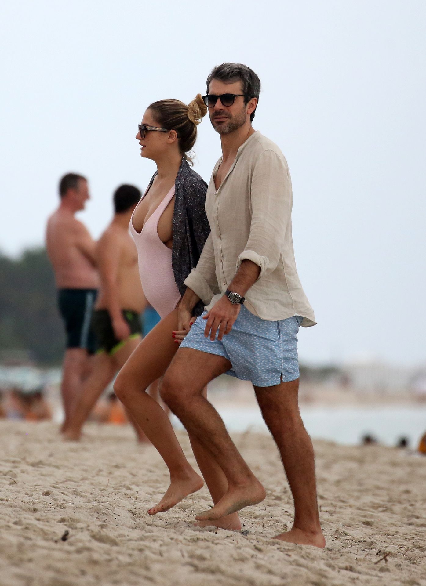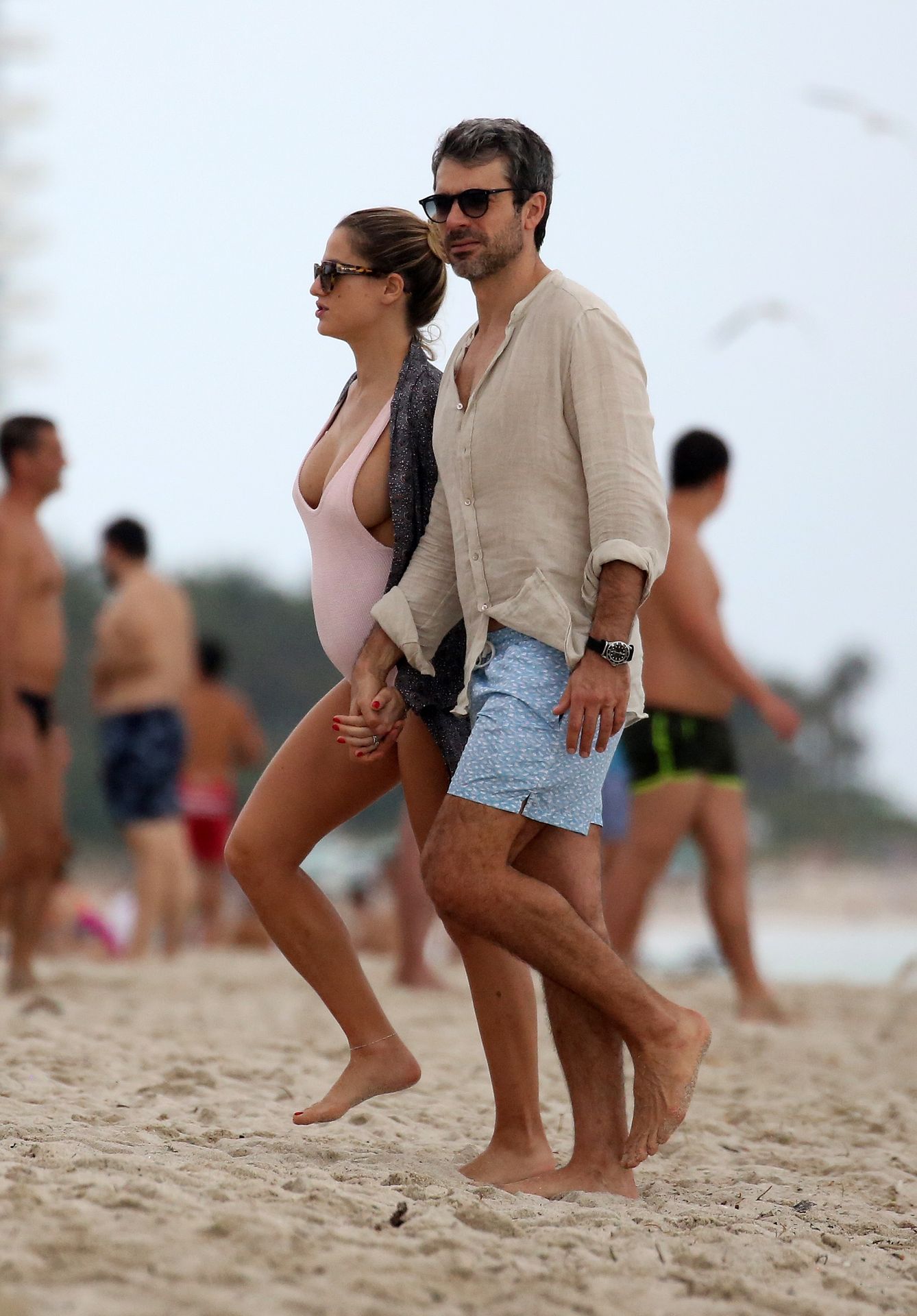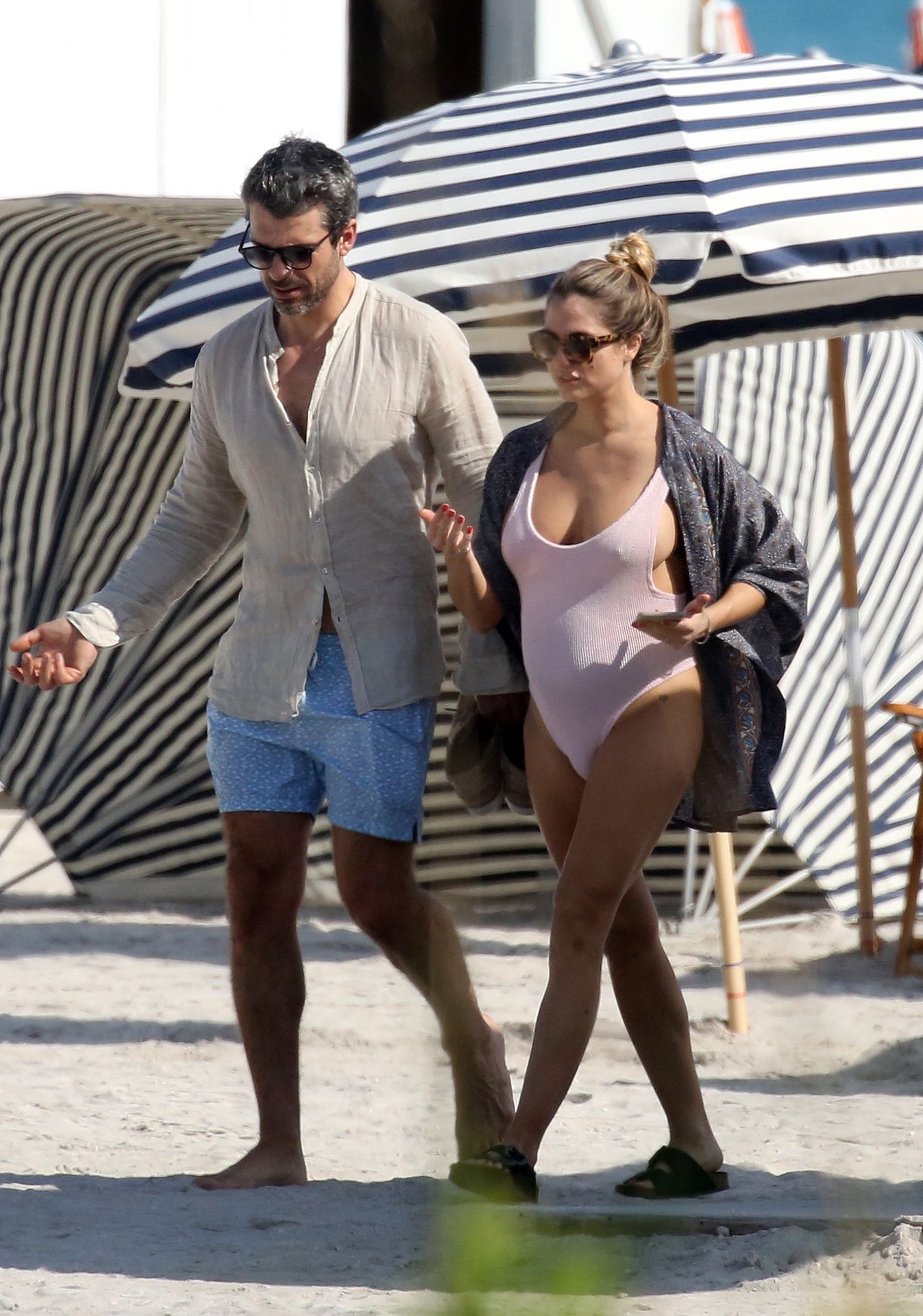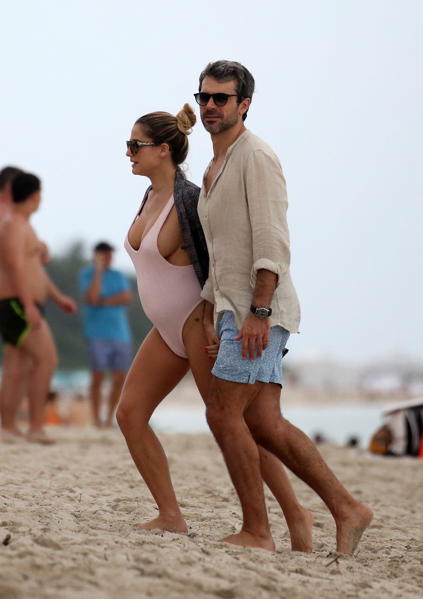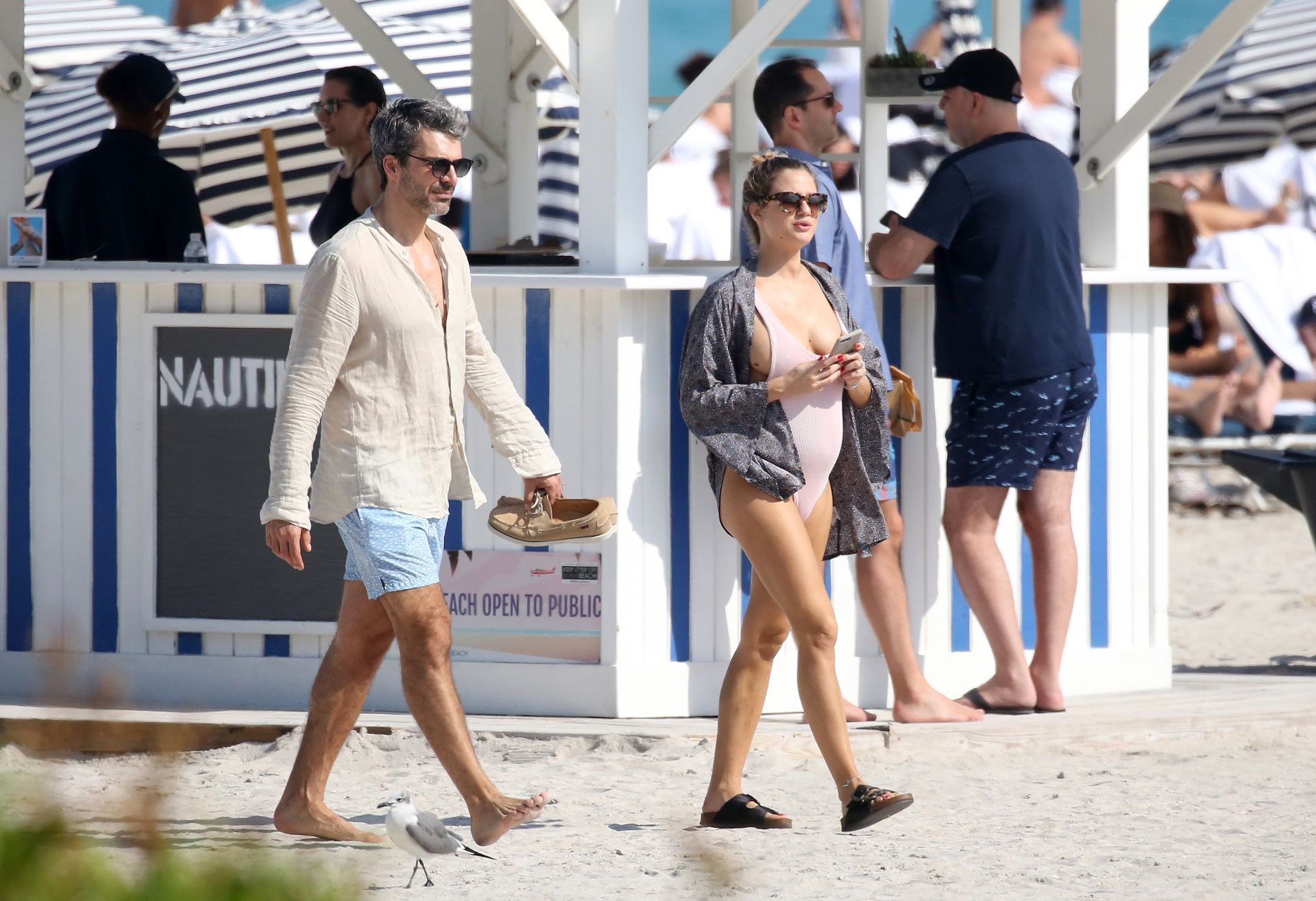 Actress Cristina Marino shows off her baby bump and all of her new curves in very revealing swimsuit as she hits the beach with Luca Argentero in Miami on New Year’s Eve Day, 12/31/2019.