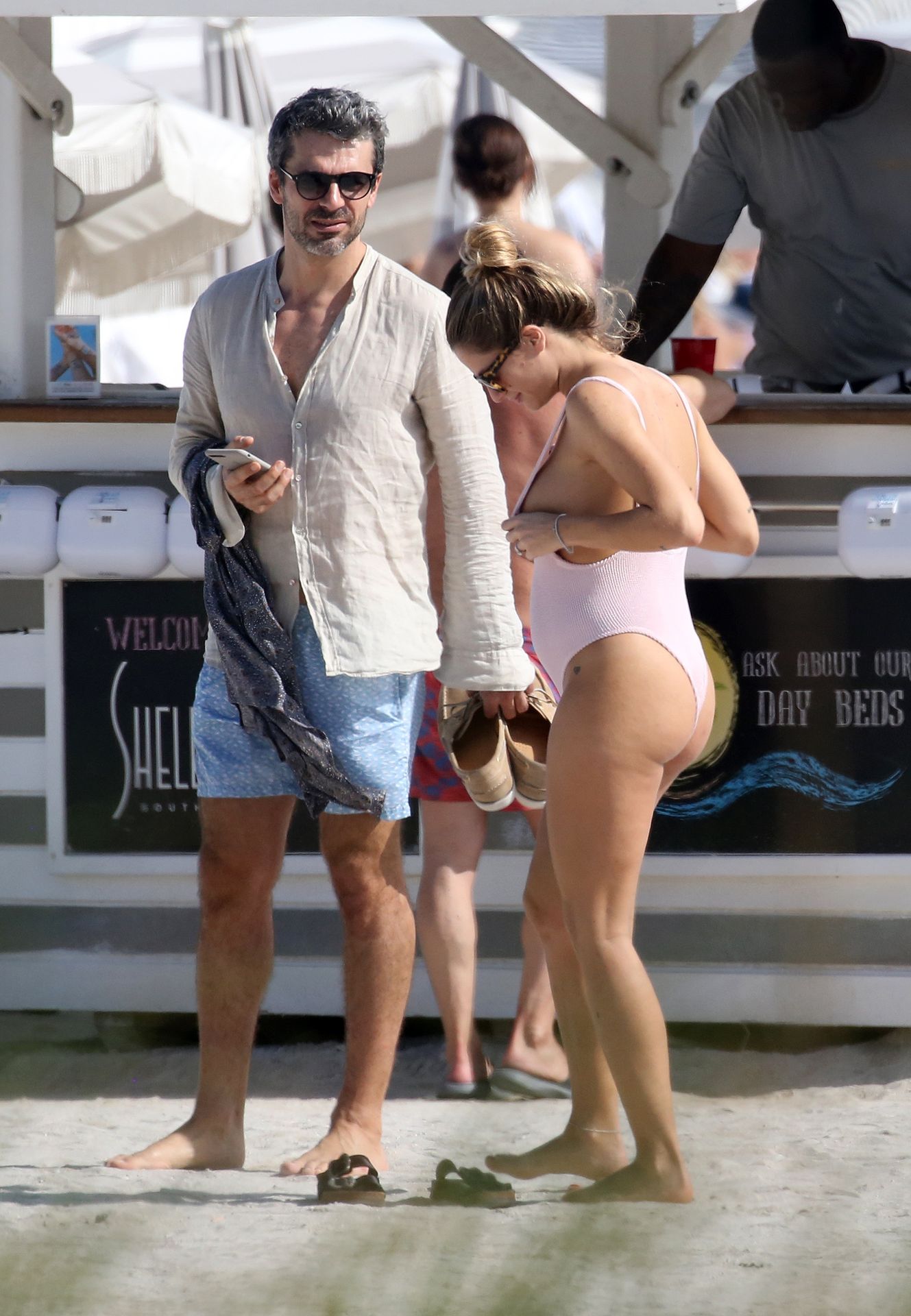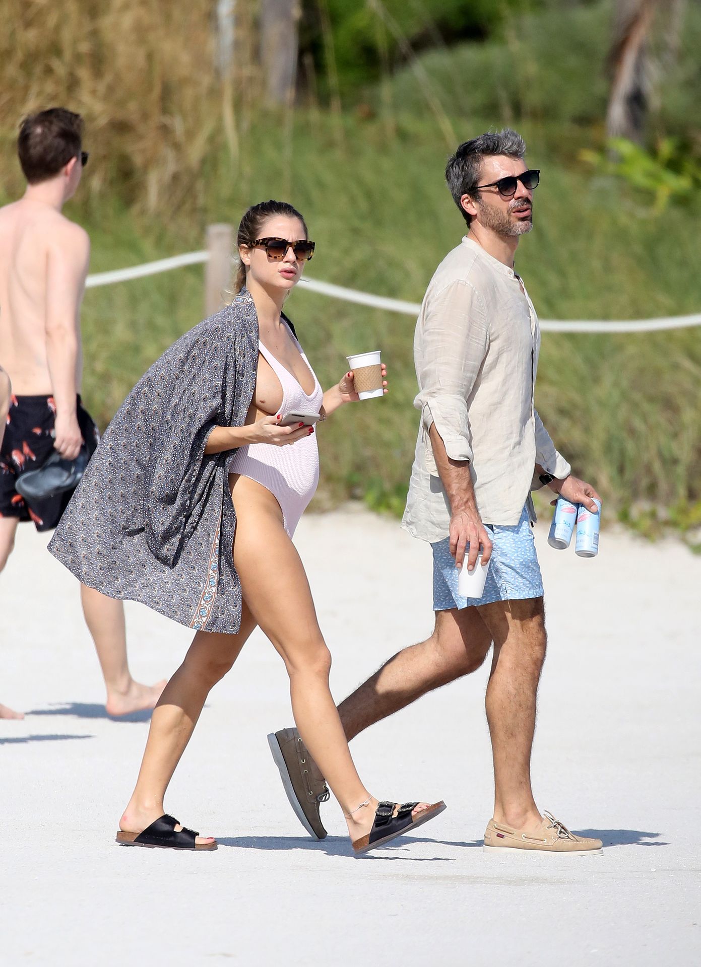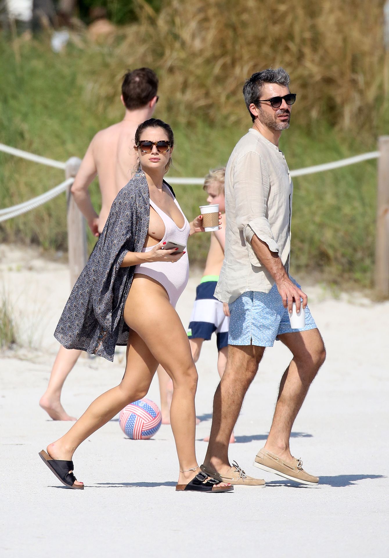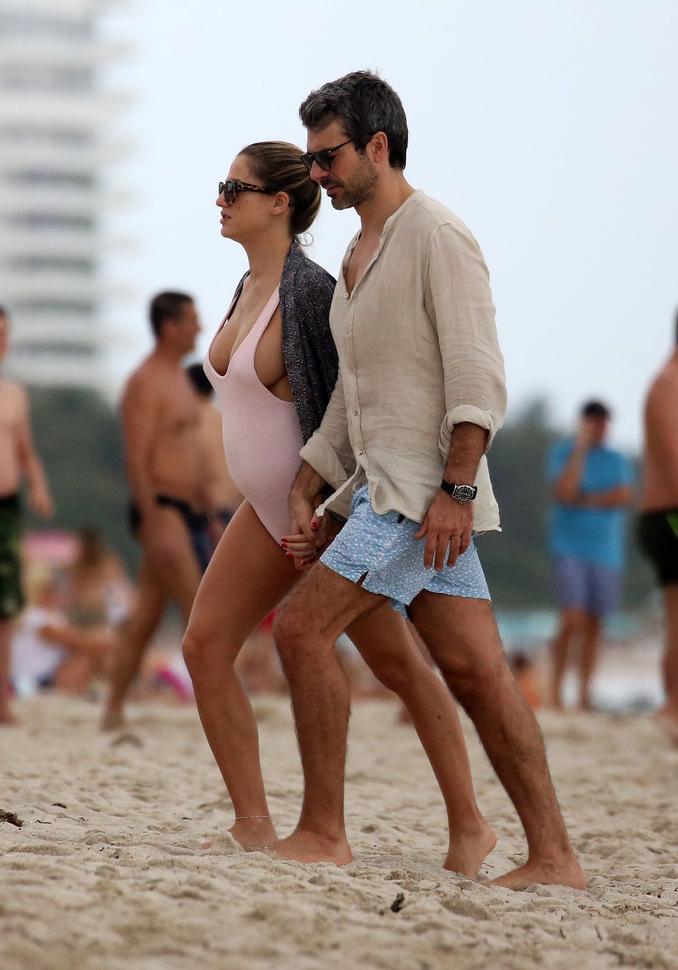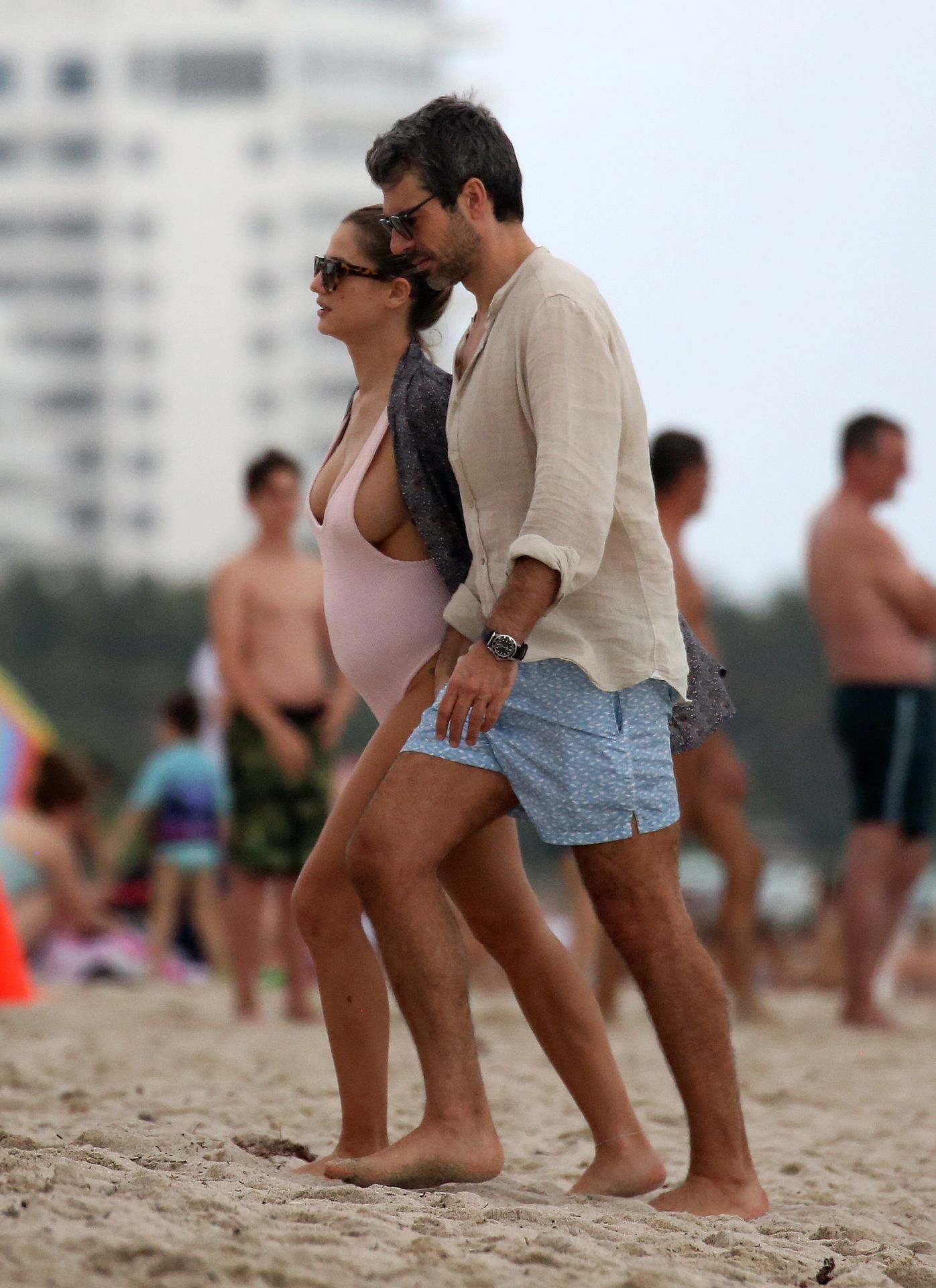 Actress Cristina Marino shows off her baby bump and all of her new curves in very revealing swimsuit as she hits the beach with Luca Argentero in Miami on New Year’s Eve Day, 12/31/2019.