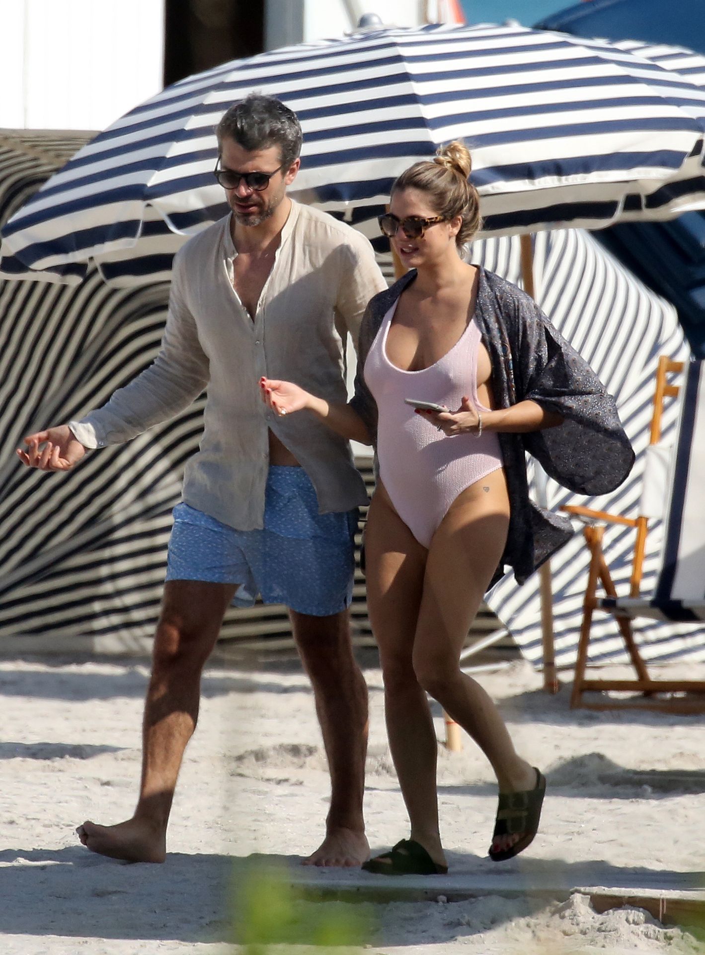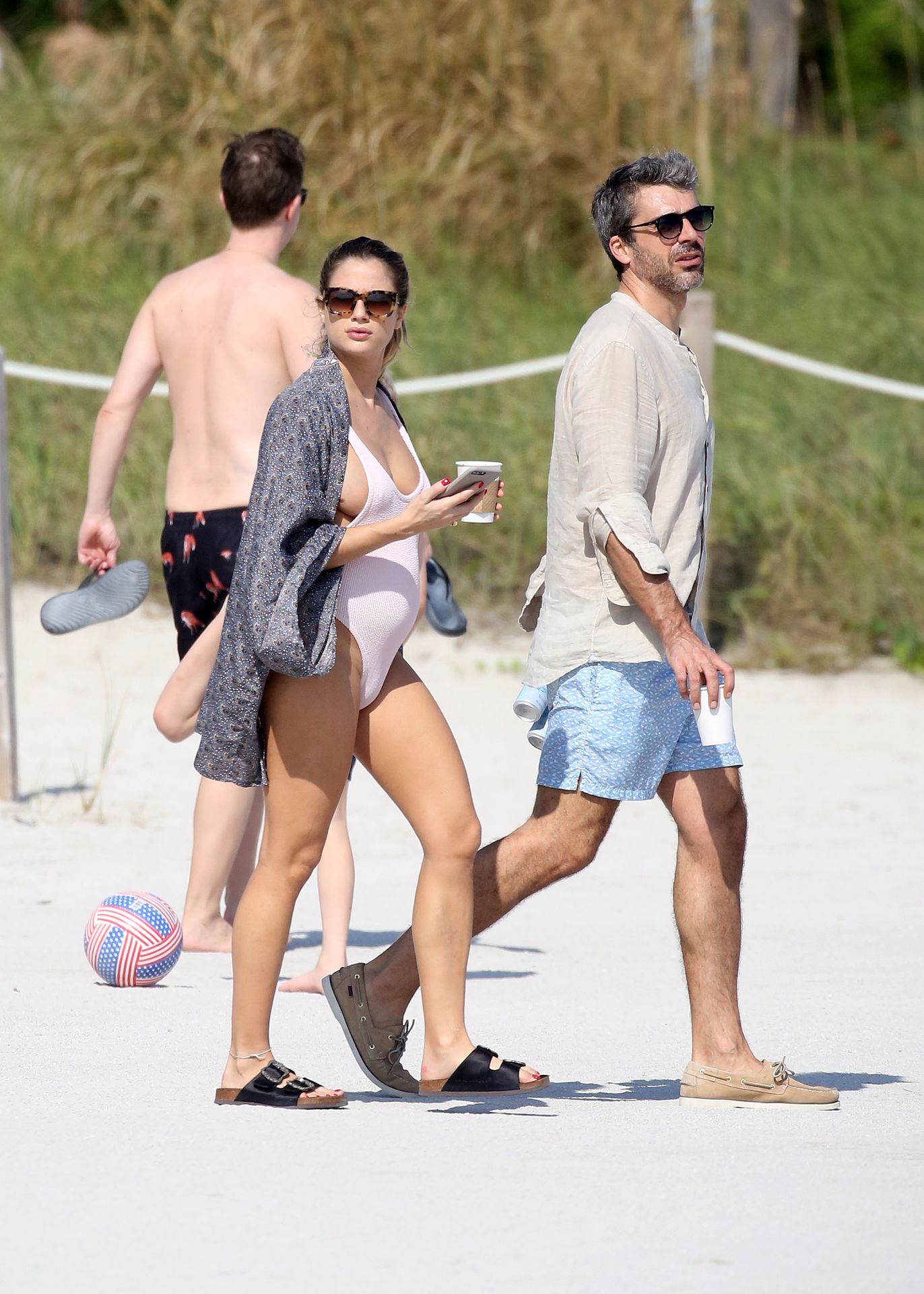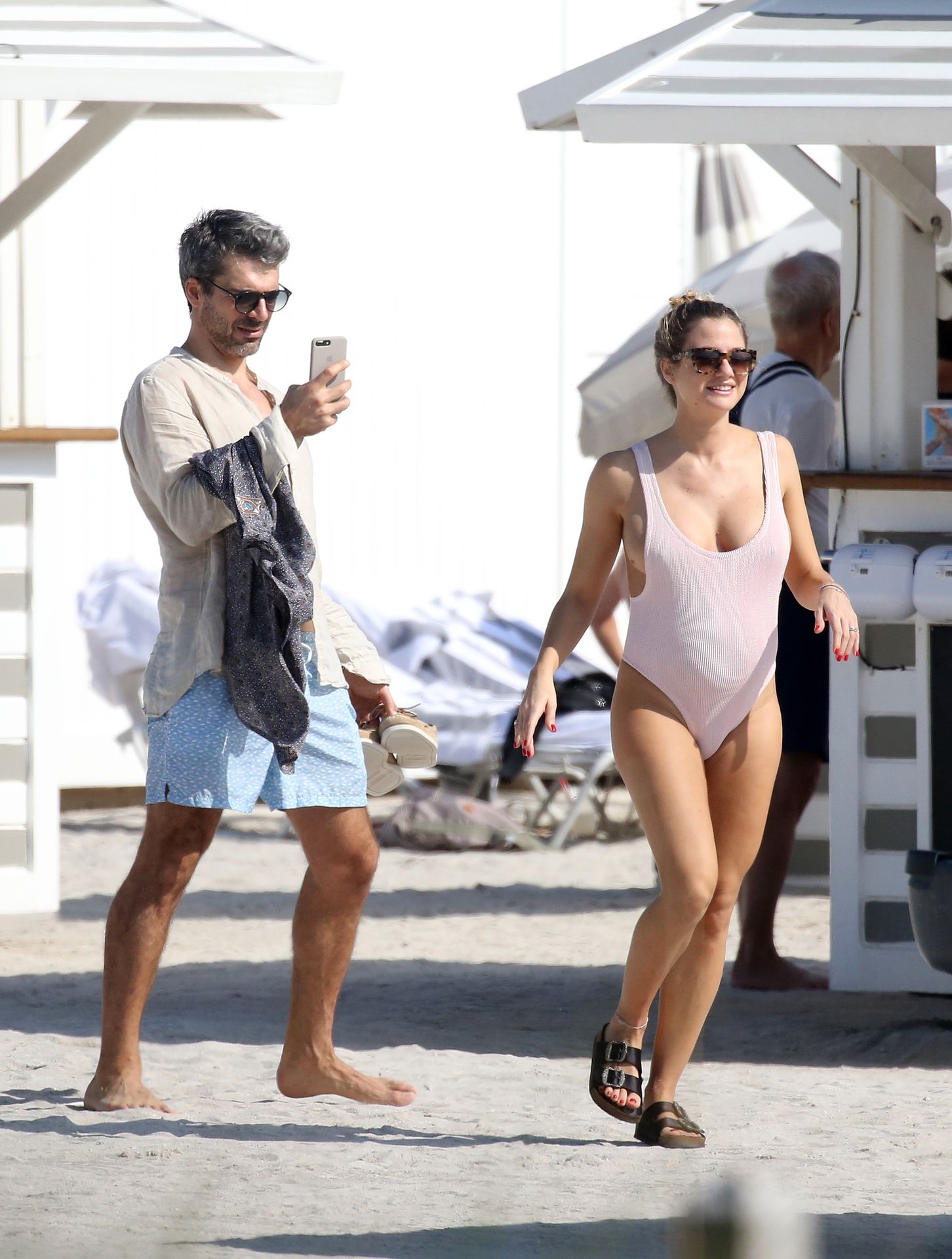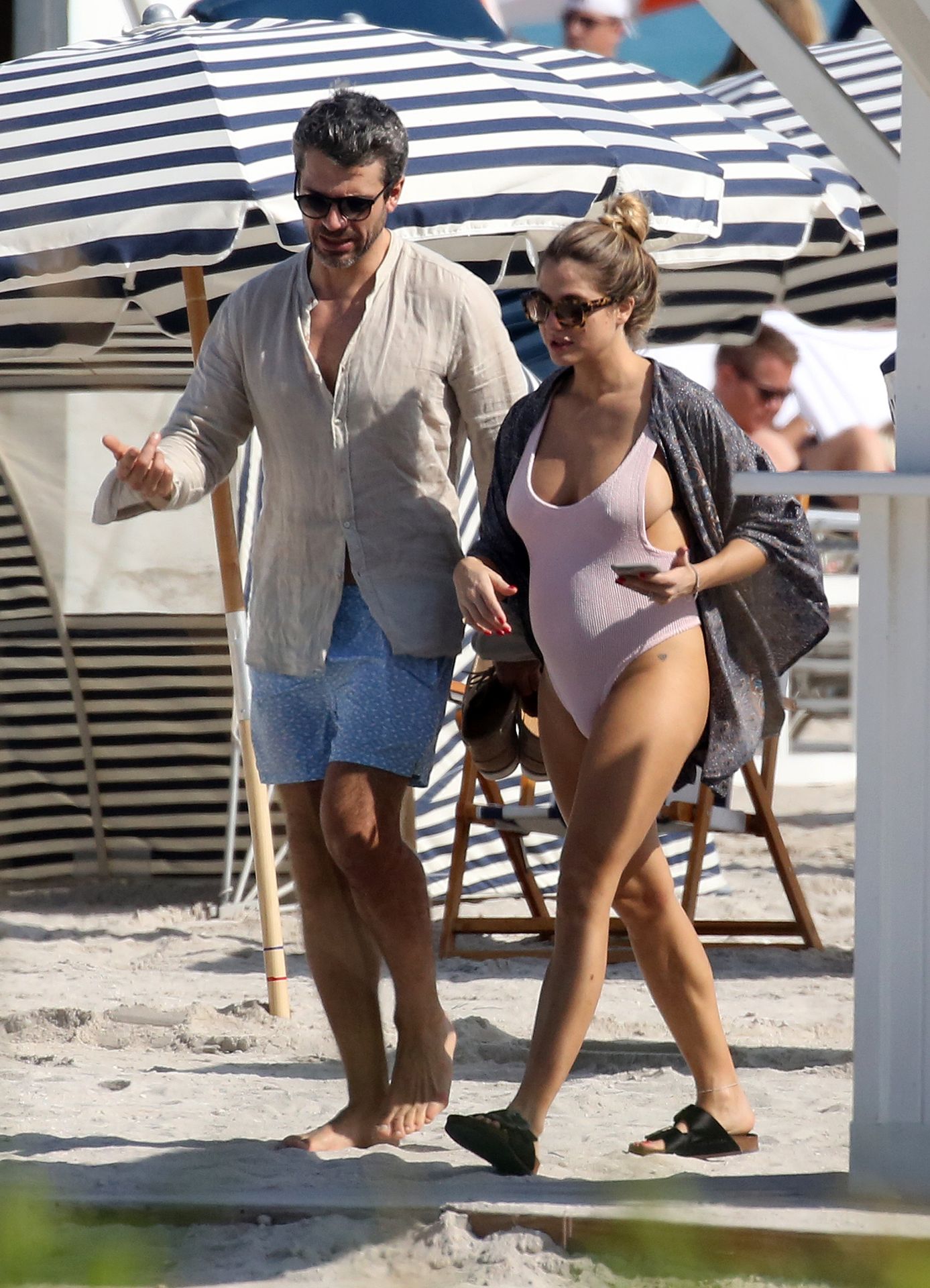 Actress Cristina Marino shows off her baby bump and all of her new curves in very revealing swimsuit as she hits the beach with Luca Argentero in Miami on New Year’s Eve Day, 12/31/2019.