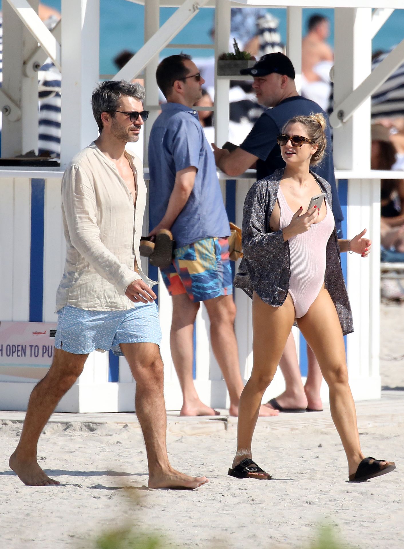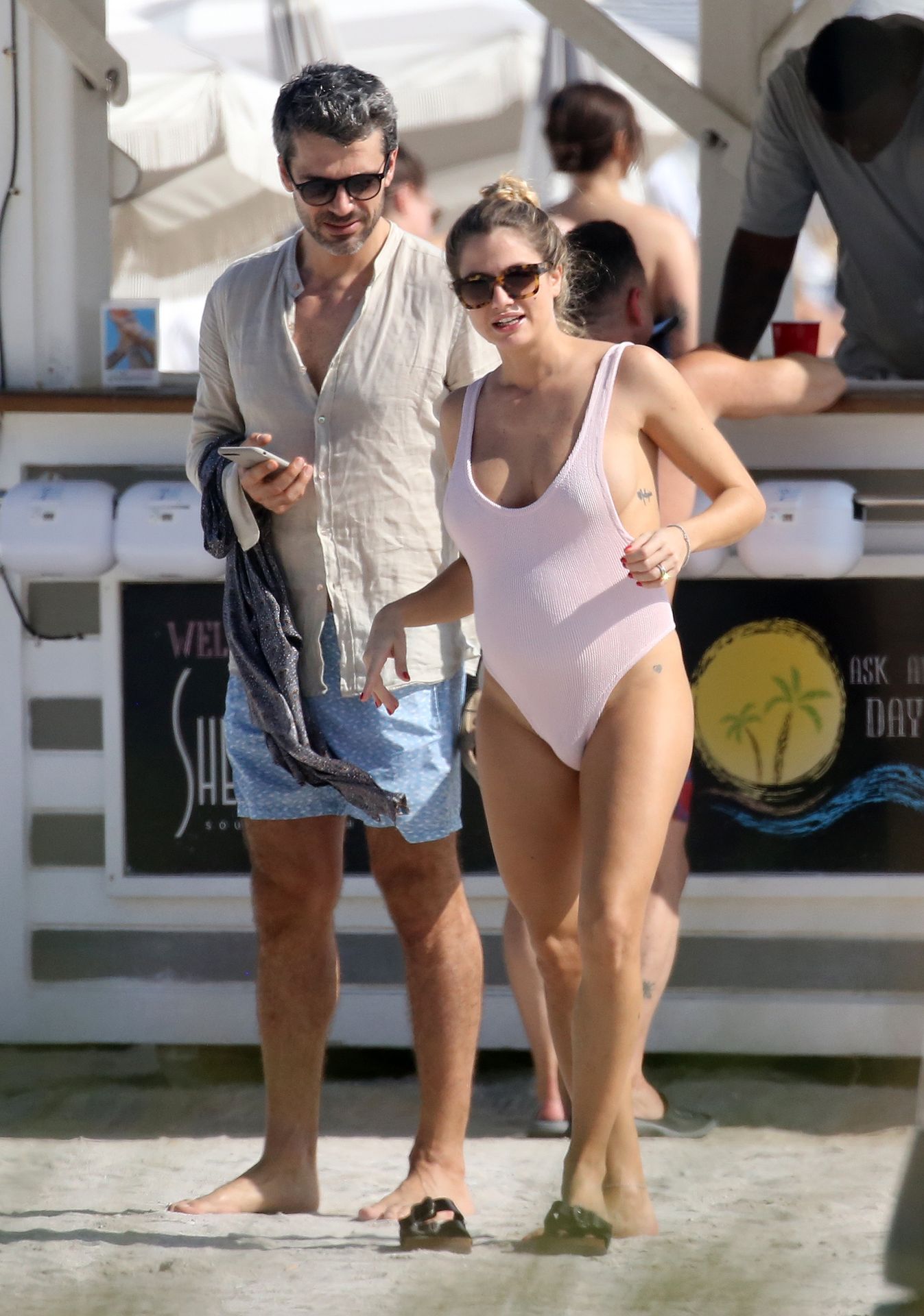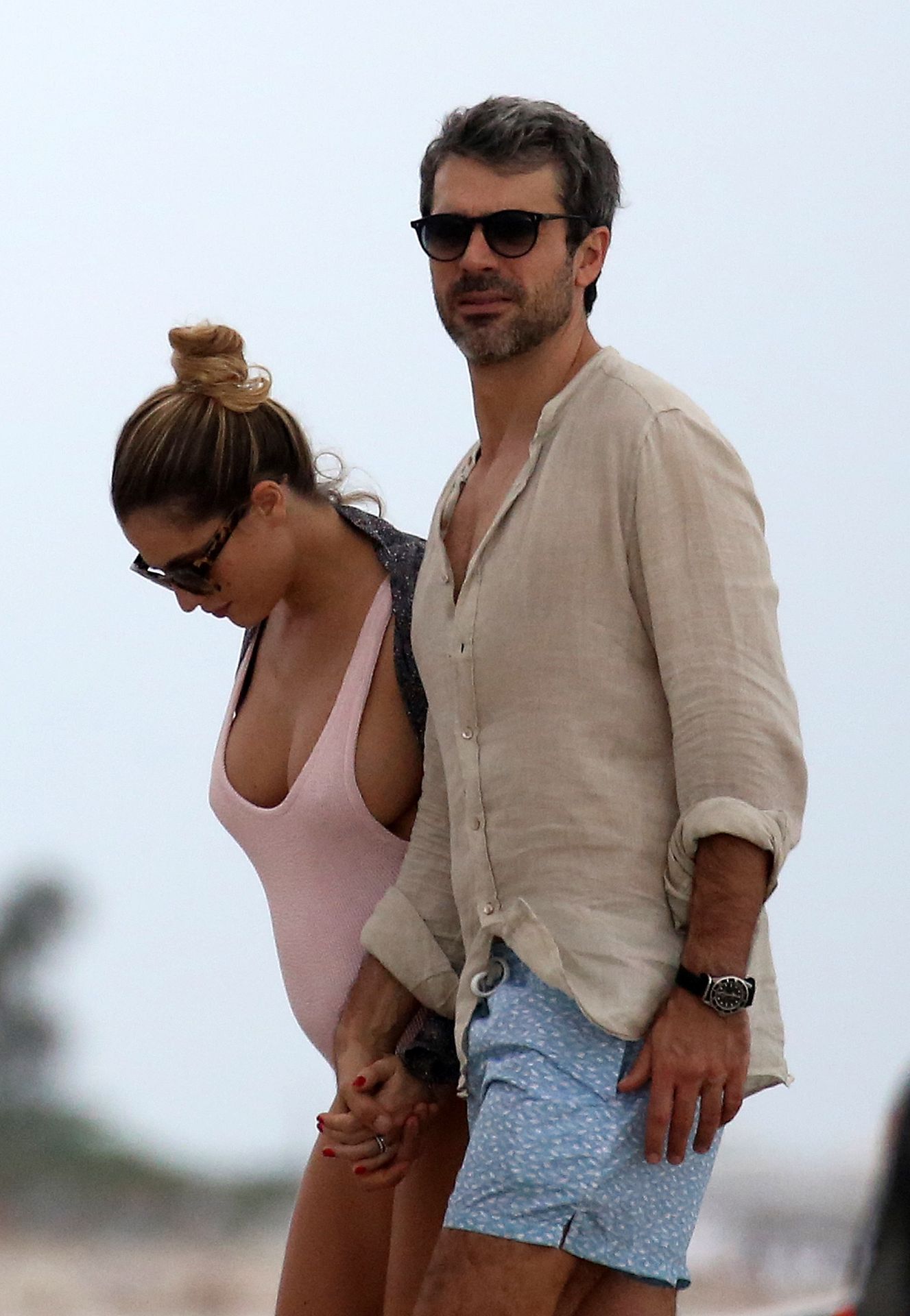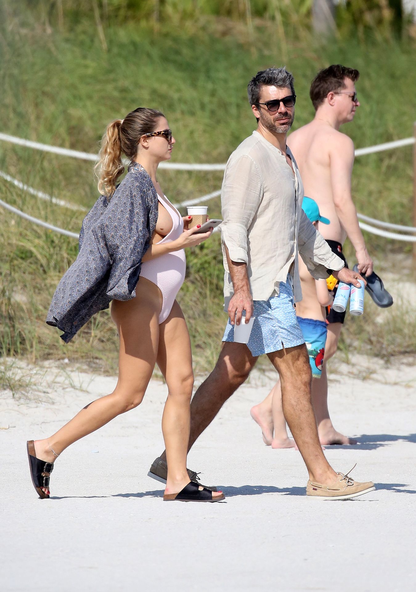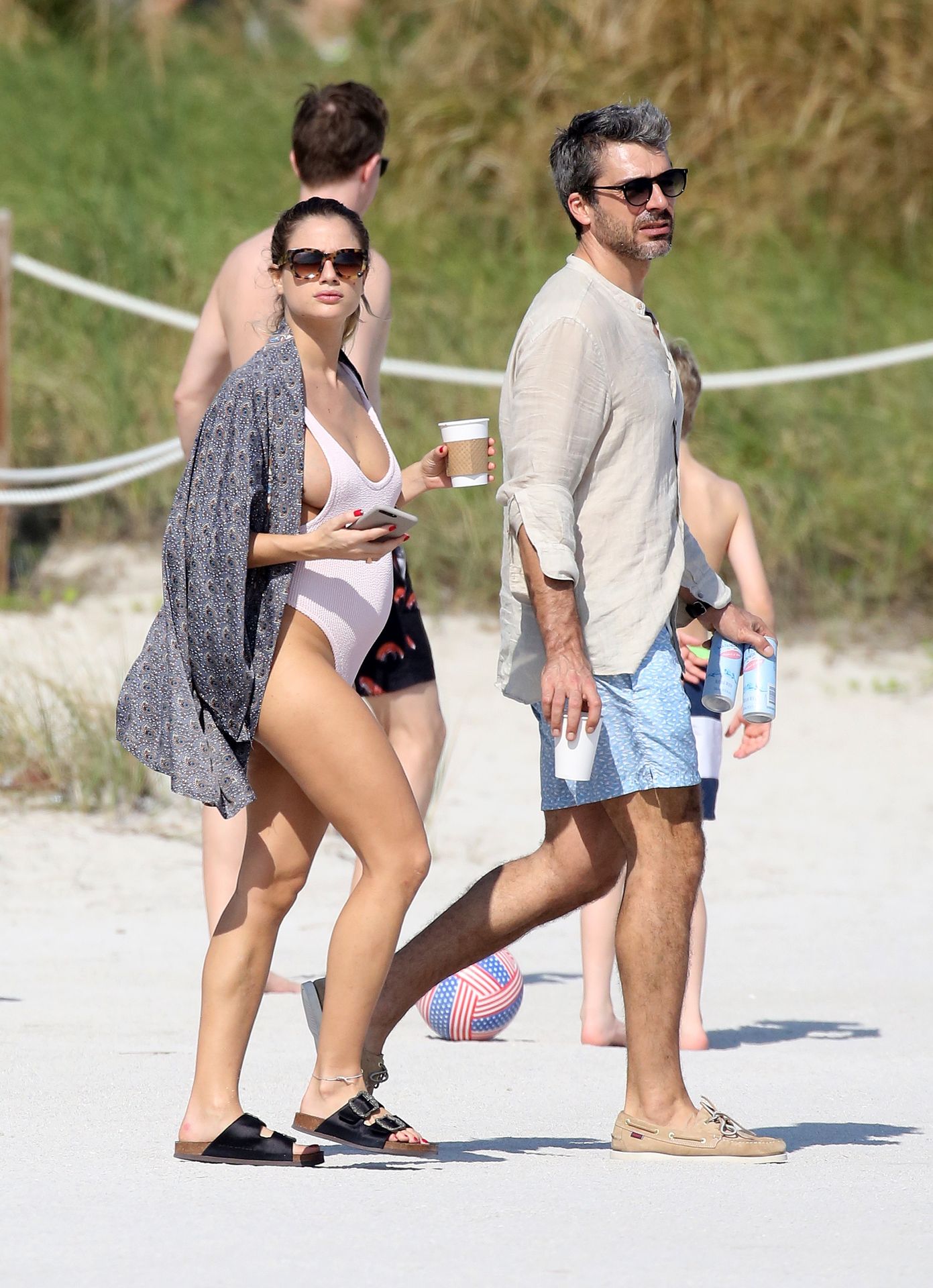 Actress Cristina Marino shows off her baby bump and all of her new curves in very revealing swimsuit as she hits the beach with Luca Argentero in Miami on New Year’s Eve Day, 12/31/2019.