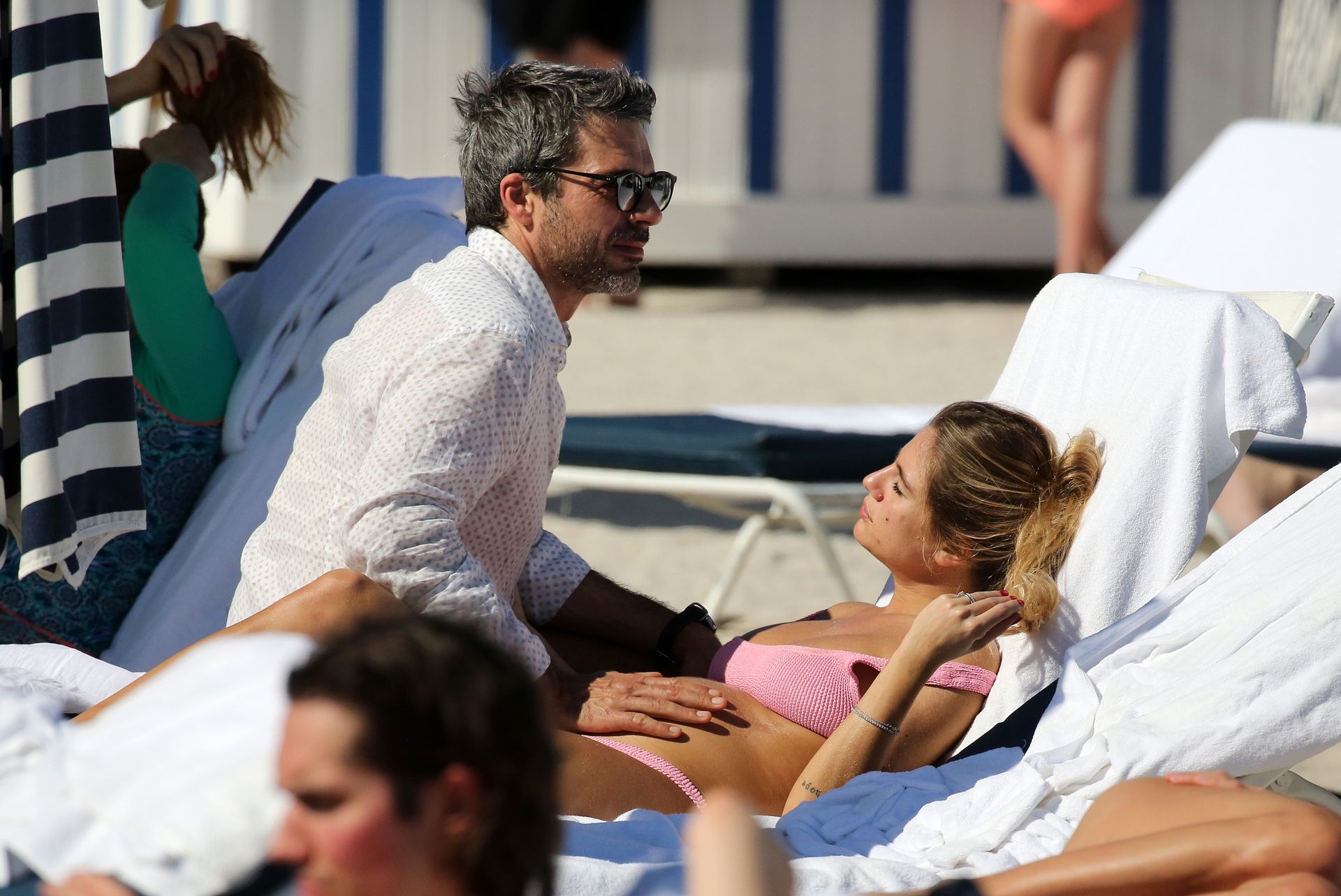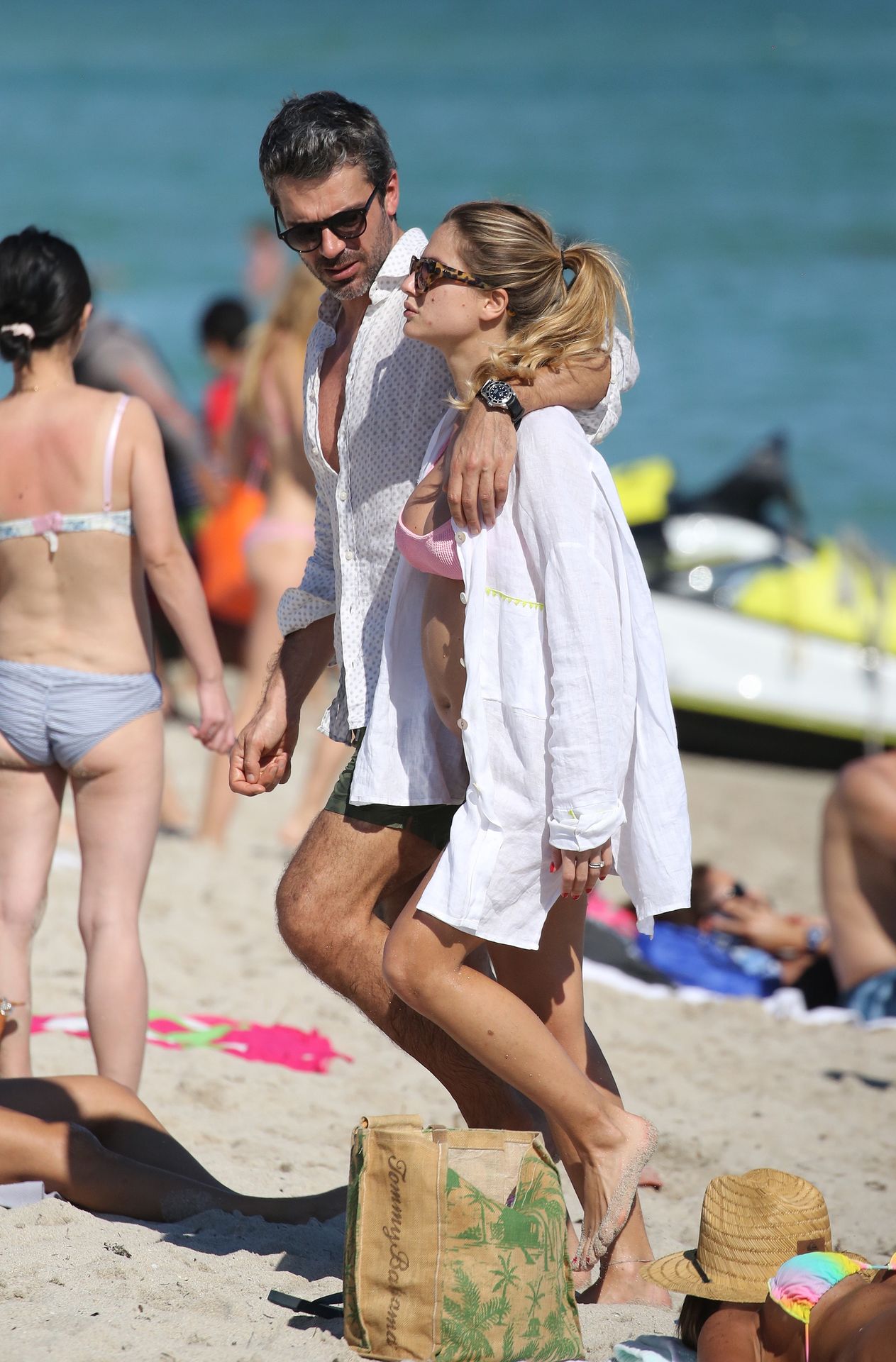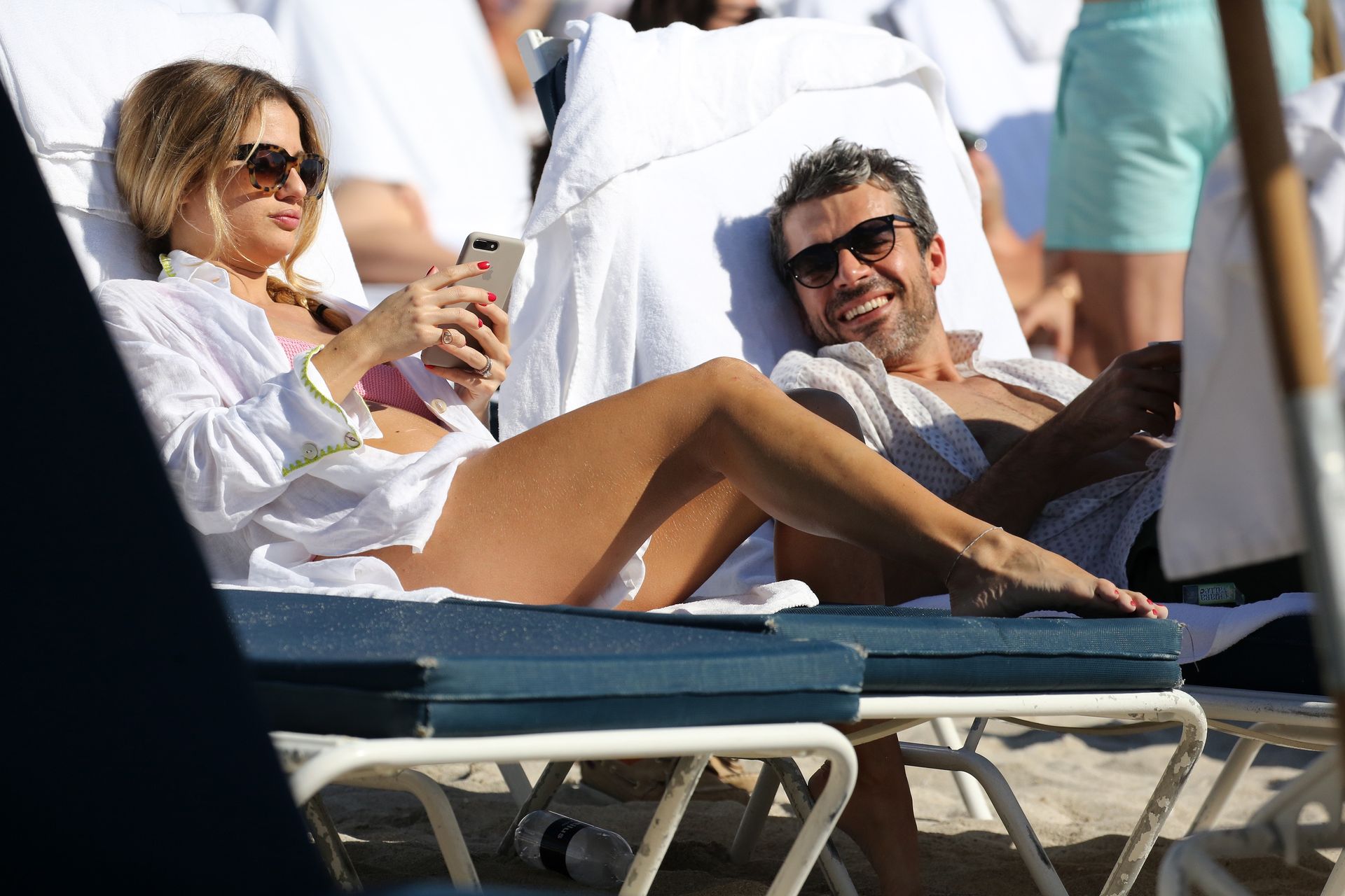 Actress Cristina Marino shows off her baby bump and all of her new curves in a pink bikini on the beach in Miami on New Year’s Day, 01/01/2020.