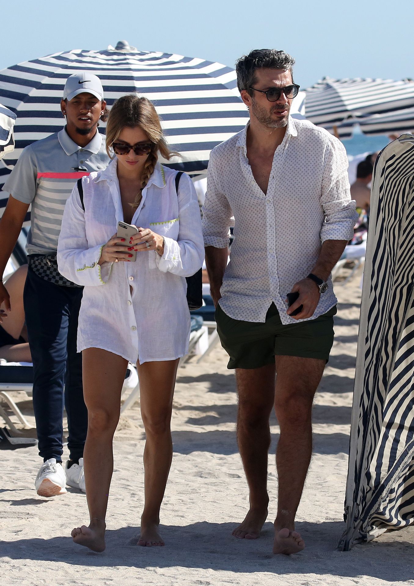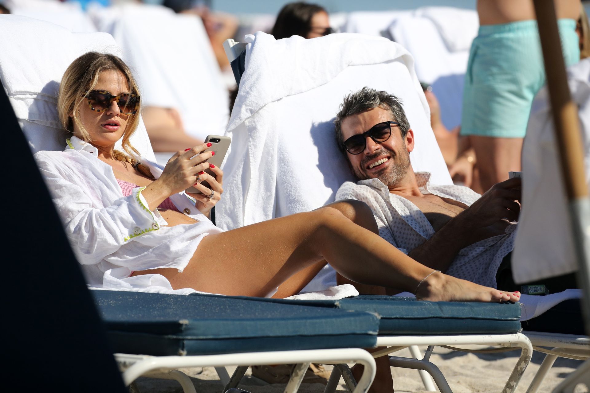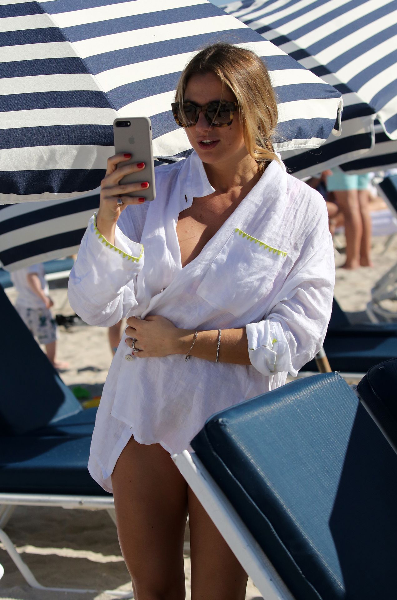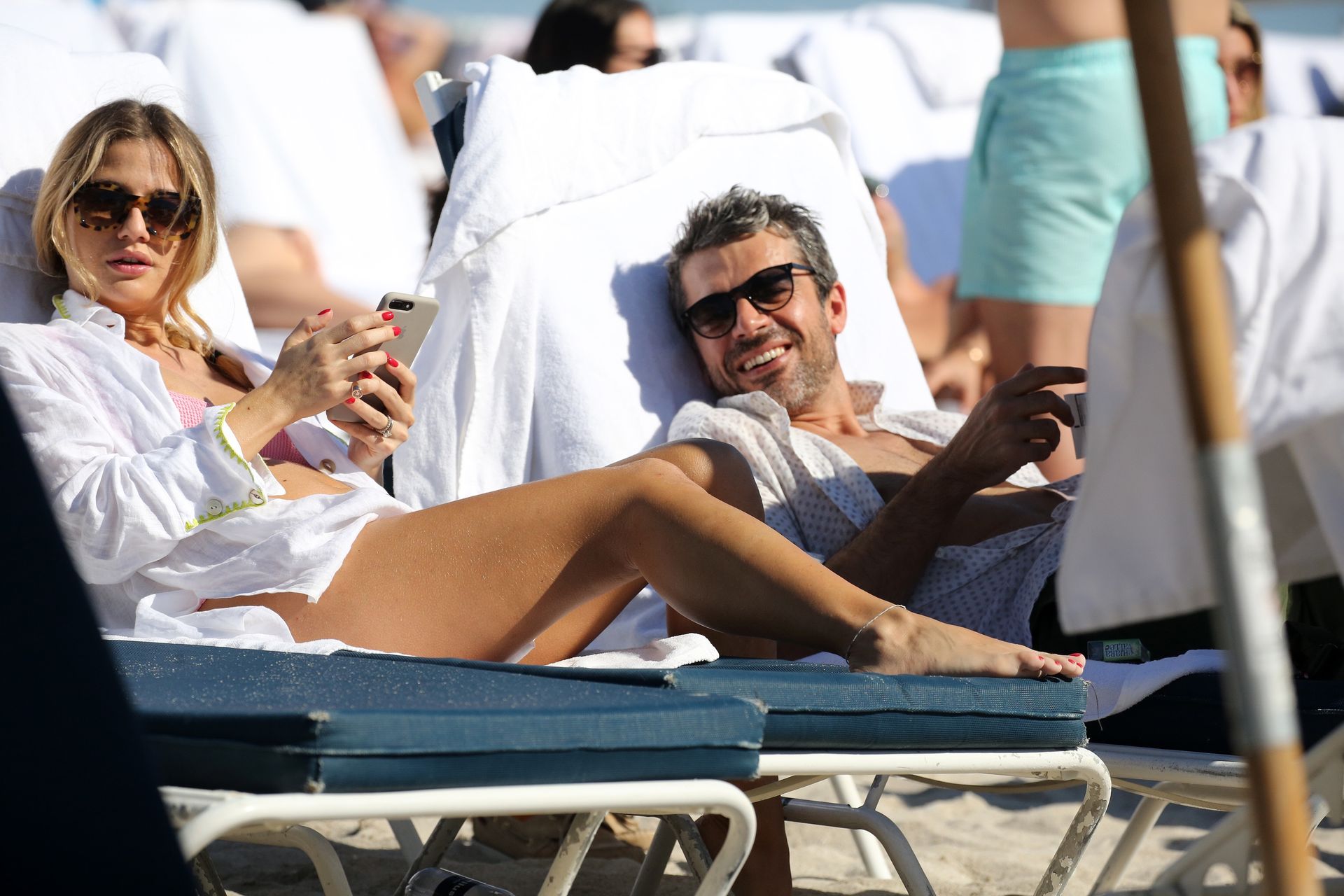 Actress Cristina Marino shows off her baby bump and all of her new curves in a pink bikini on the beach in Miami on New Year’s Day, 01/01/2020.
