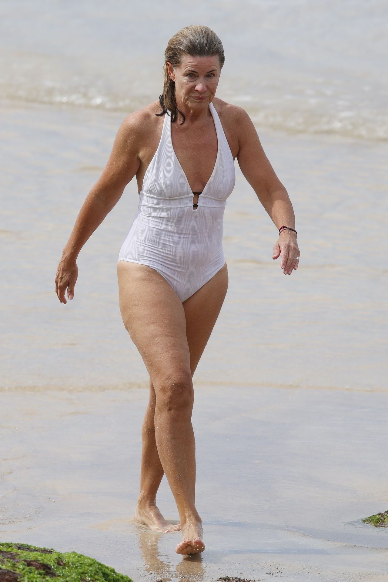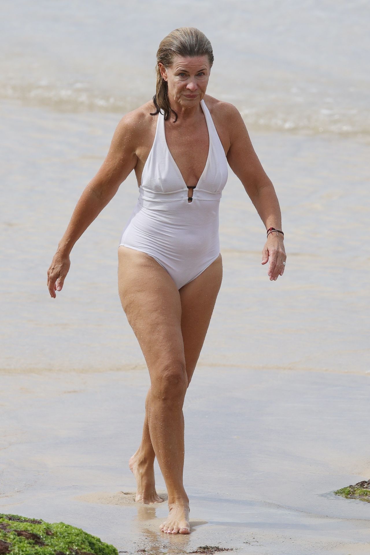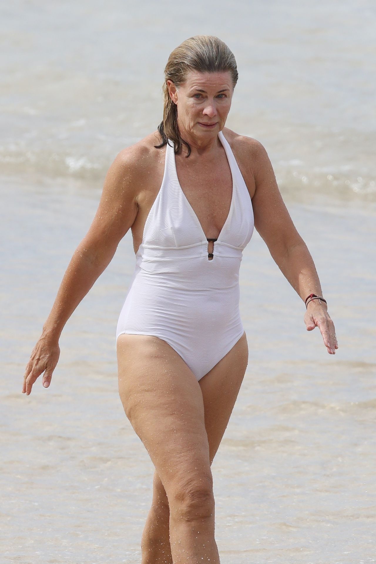 Anglo-Australian media personality Deborah Hutton takes a swim at a closed Sydney beach amid Coronavirus pandemic, 04/02/2020.