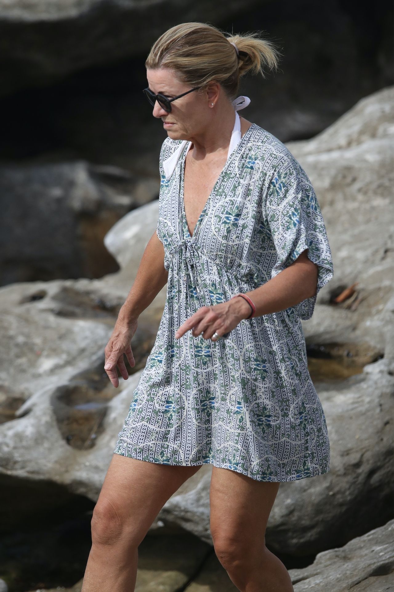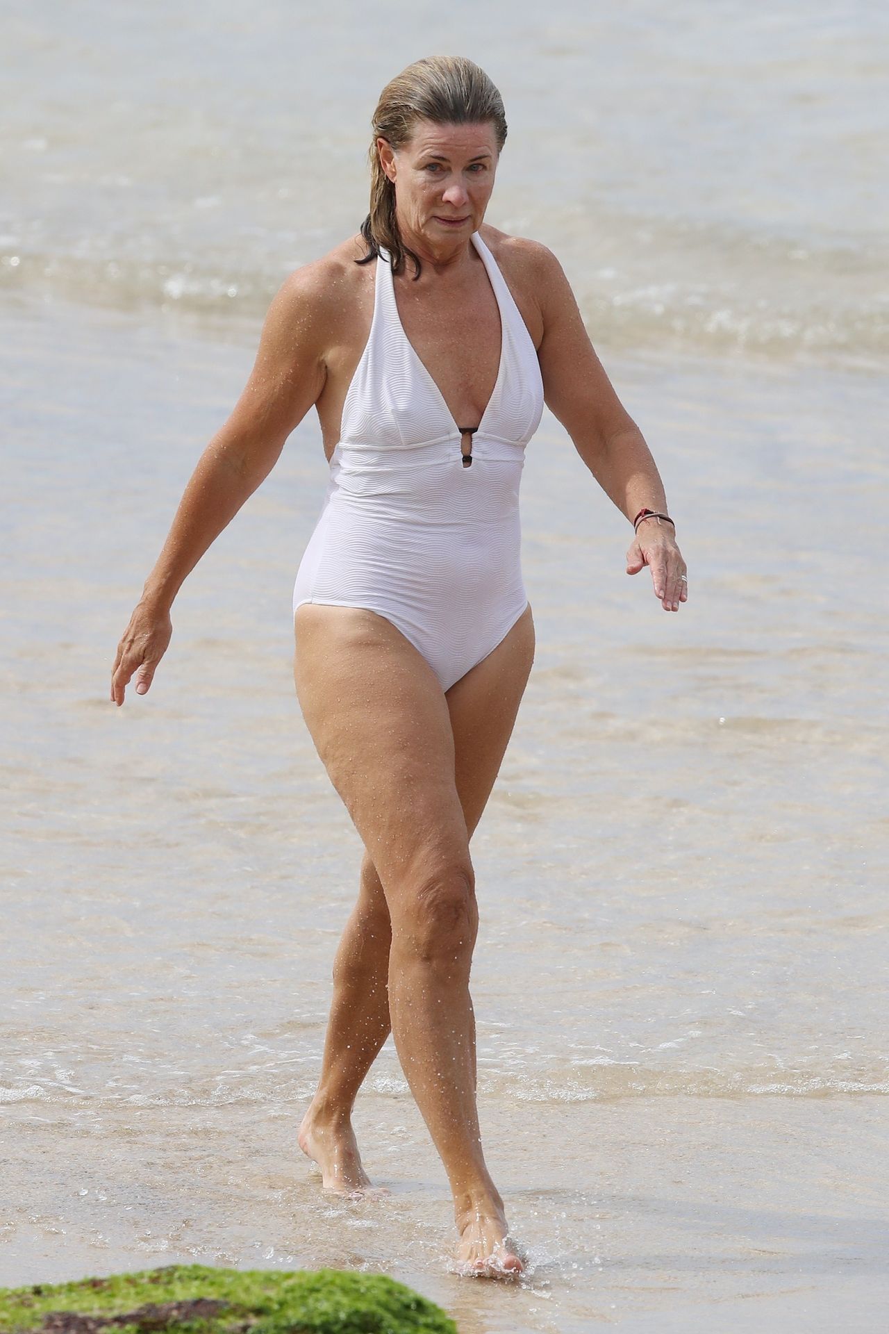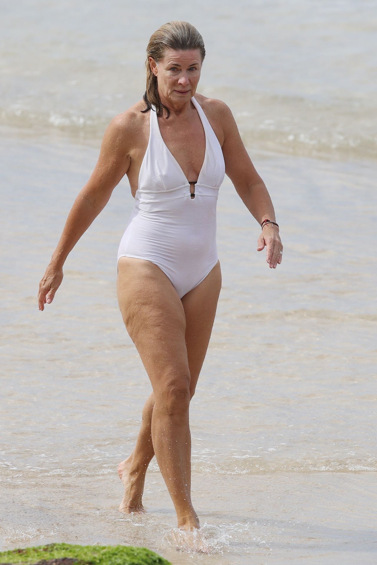 Anglo-Australian media personality Deborah Hutton takes a swim at a closed Sydney beach amid Coronavirus pandemic, 04/02/2020.