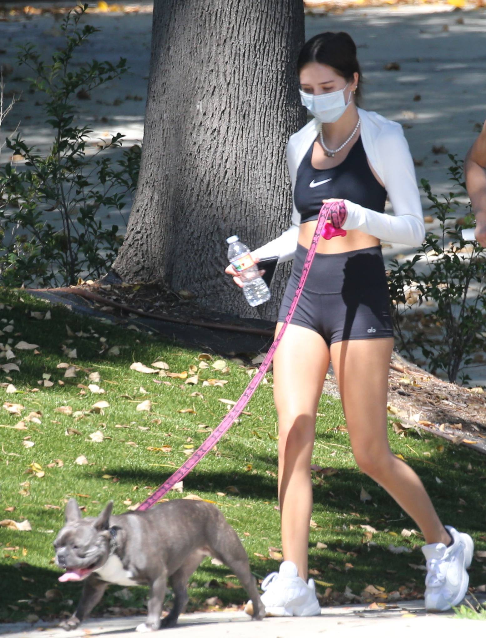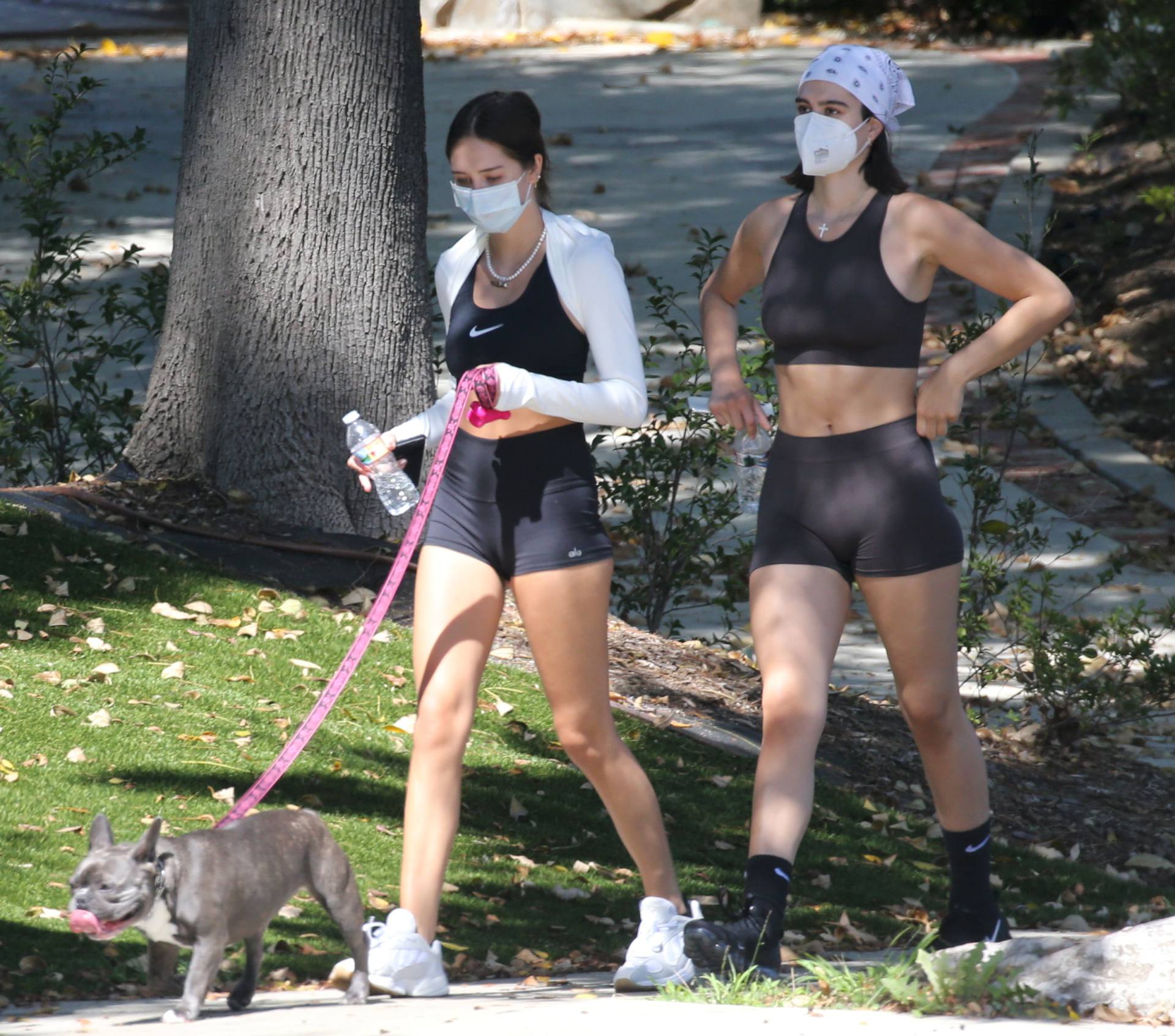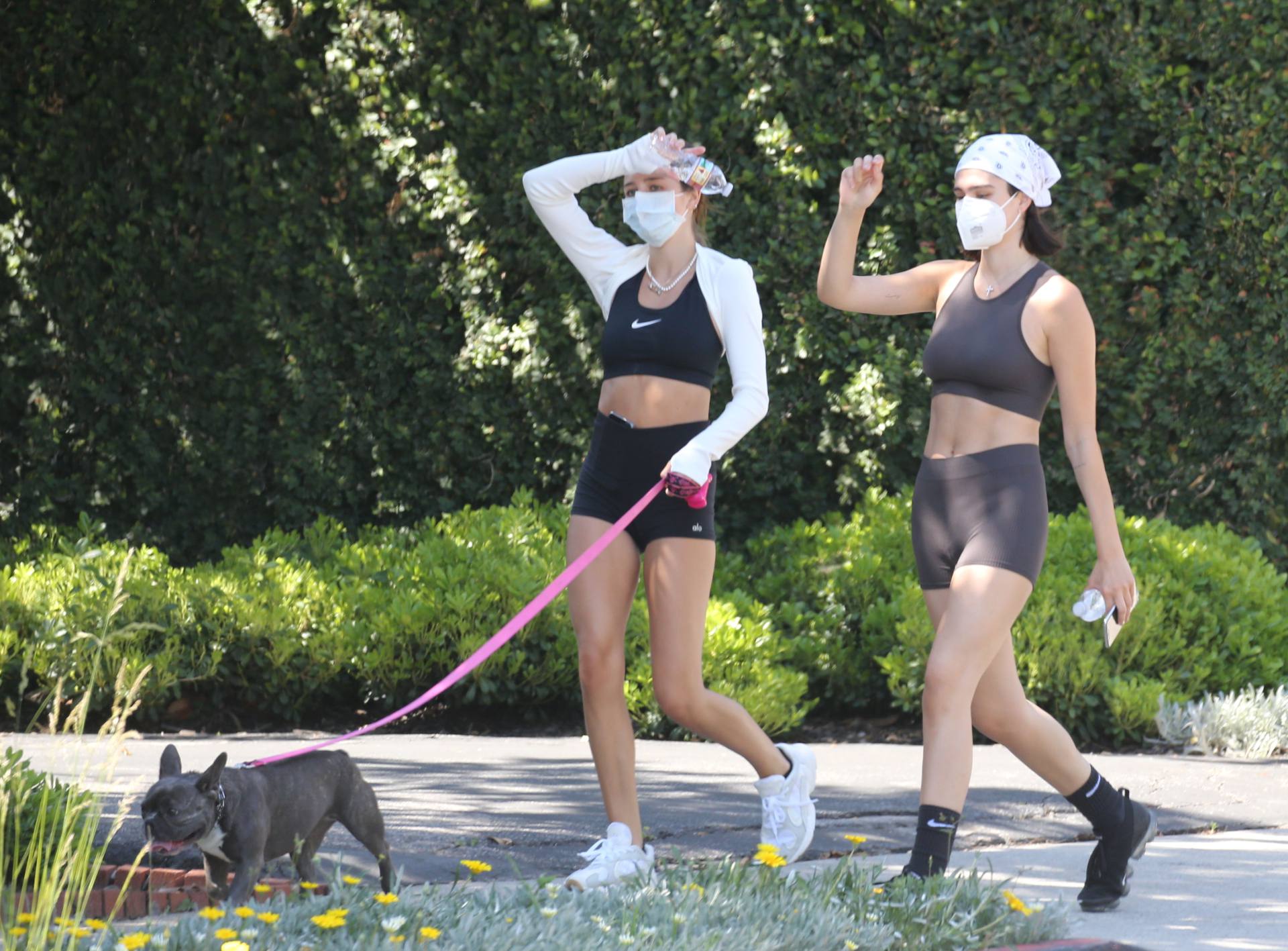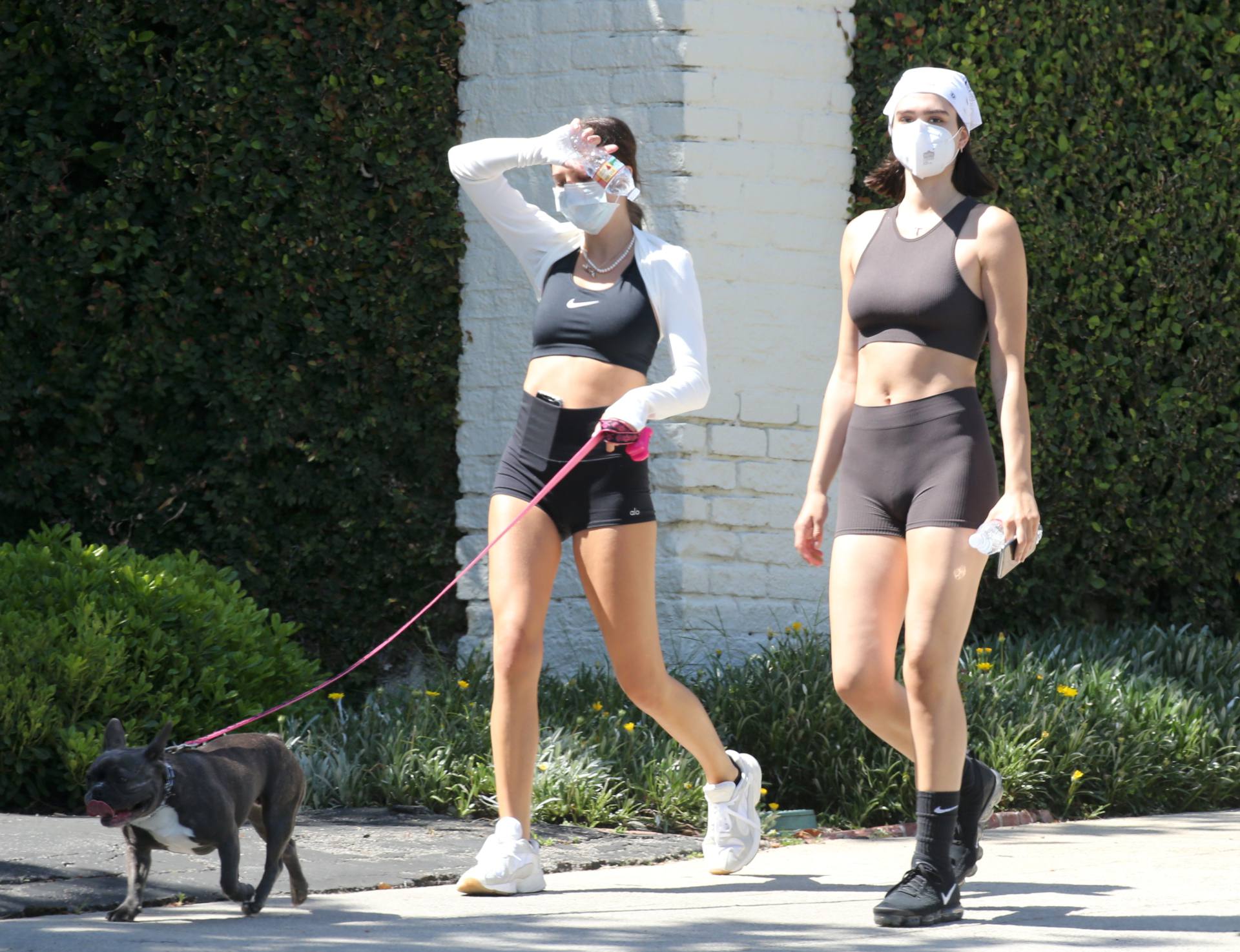 Delilah Belle & Amelia Gray Hamlin show off their fantastic toned bodies in tiny shorts and sports bra out in Beverly Hills.