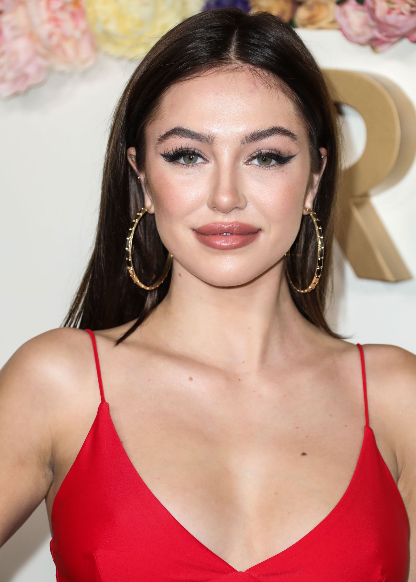 Instagram sensation Delilah Belle Hamlin was photographed braless, while posing in an elegant red dress, flaunting her tits and legs at the 3rd Annual #REVOLVEawards 2019 held at Goya Studios in Hollywood, 11/15/2019.