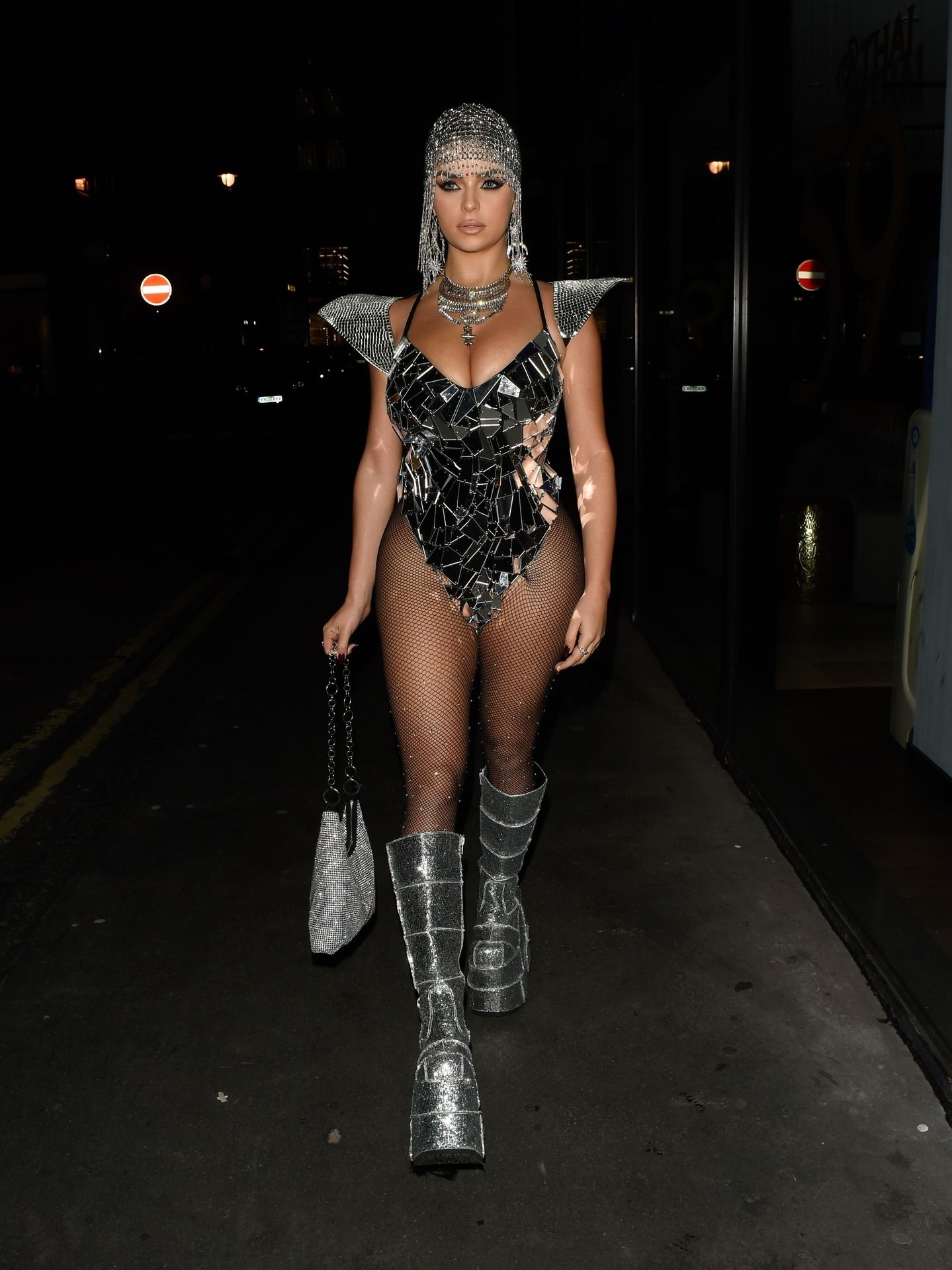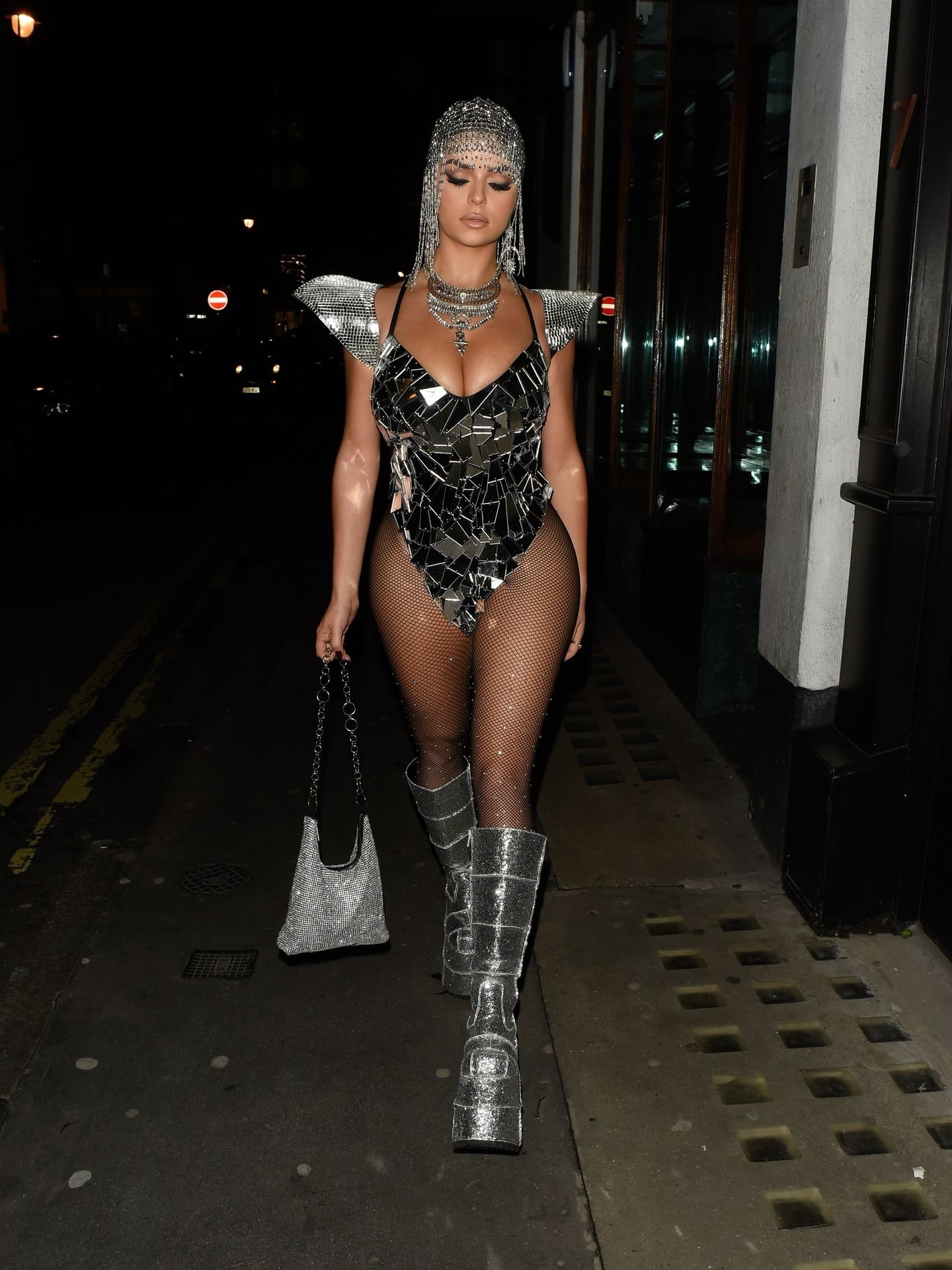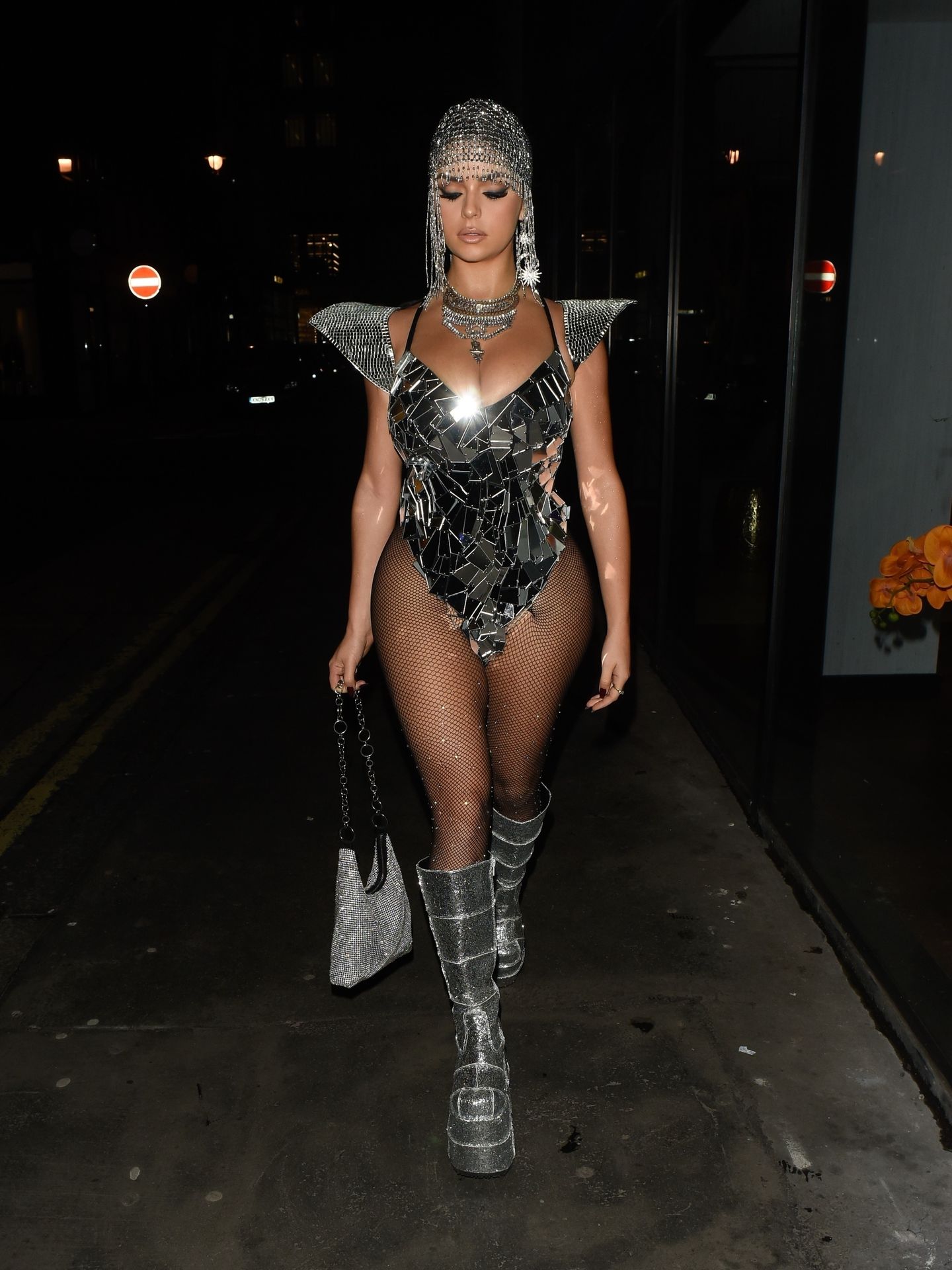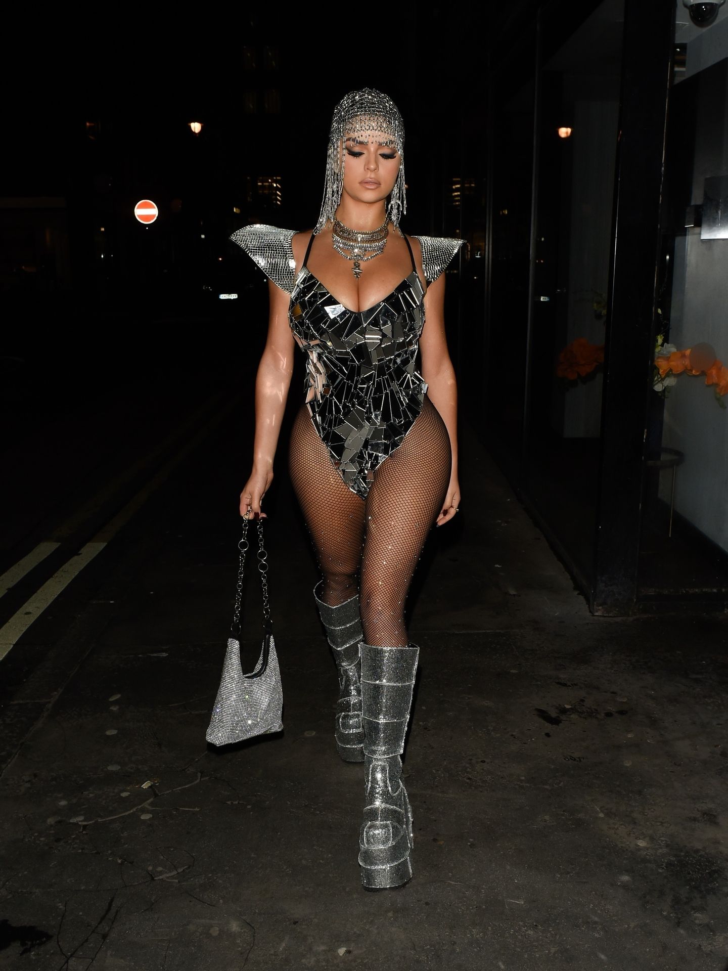 Demi Rose goes all out as she puts on a display dressed in a galactic look for Halloween when pictured heading out to another party in Mayfair, 10/27/2019.