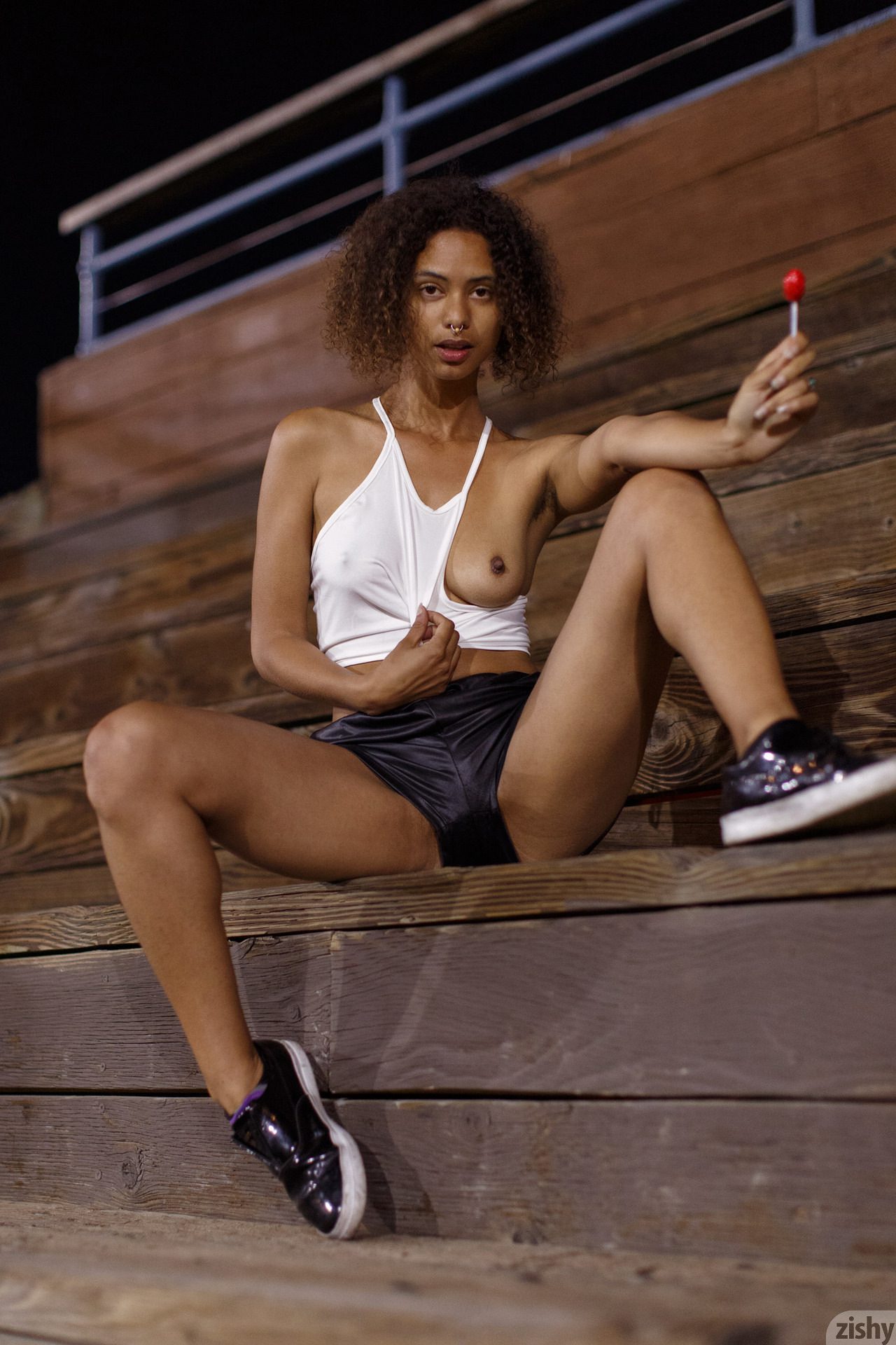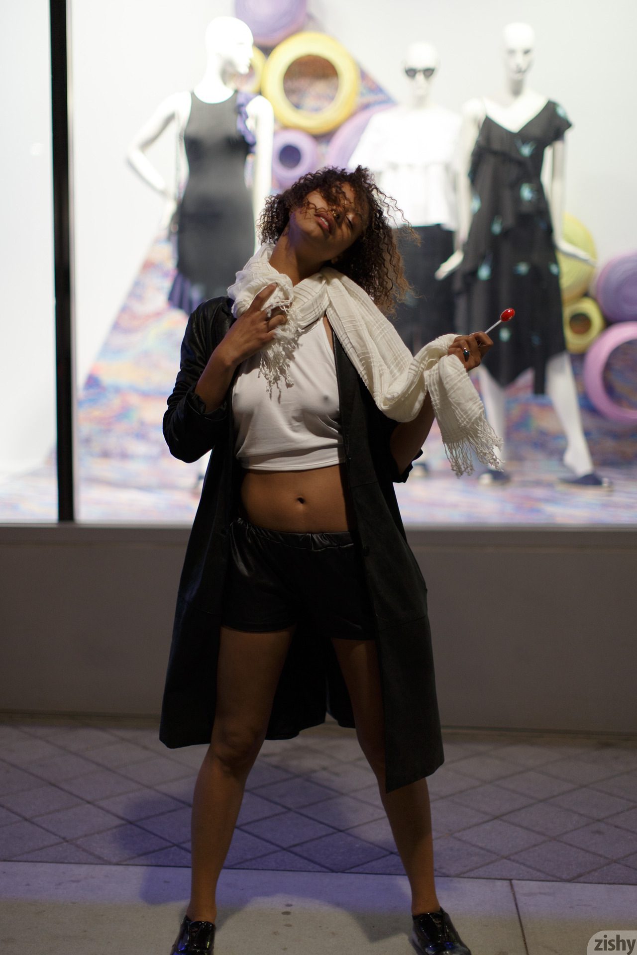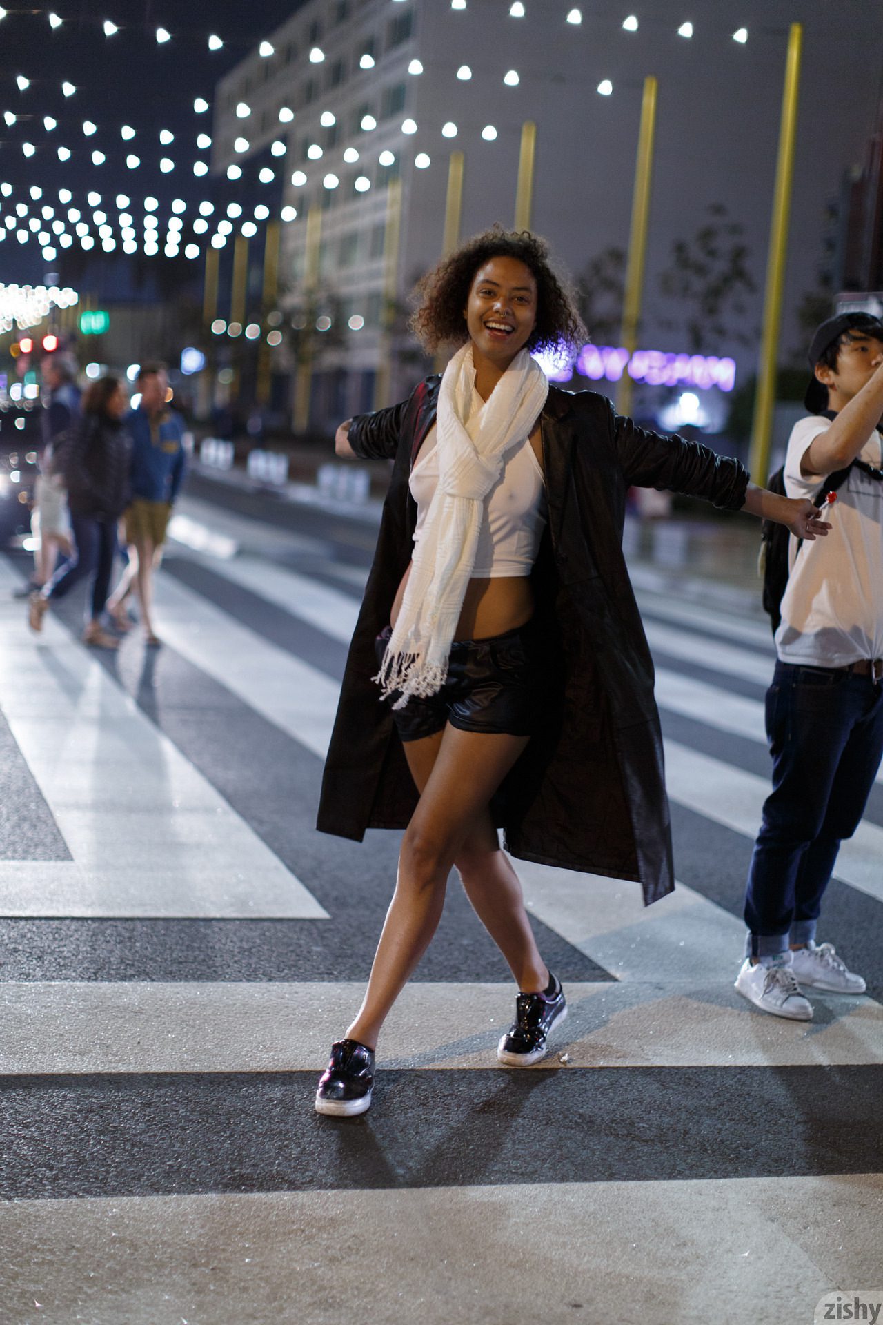 The street photos were taken by a contributor who discovered Desiree Jacobsen in Los Angeles. Immediately, I could tell that her beauty and free spirit would be great for Zishy. I had two requirements of Desiree, she must remain unshaven and she must remove the metal shit from her nose. I’m hip but I’m not that hip. Plus that sort of thing triggers memories from when I was abducted and probed by those beings. Long story, another time.