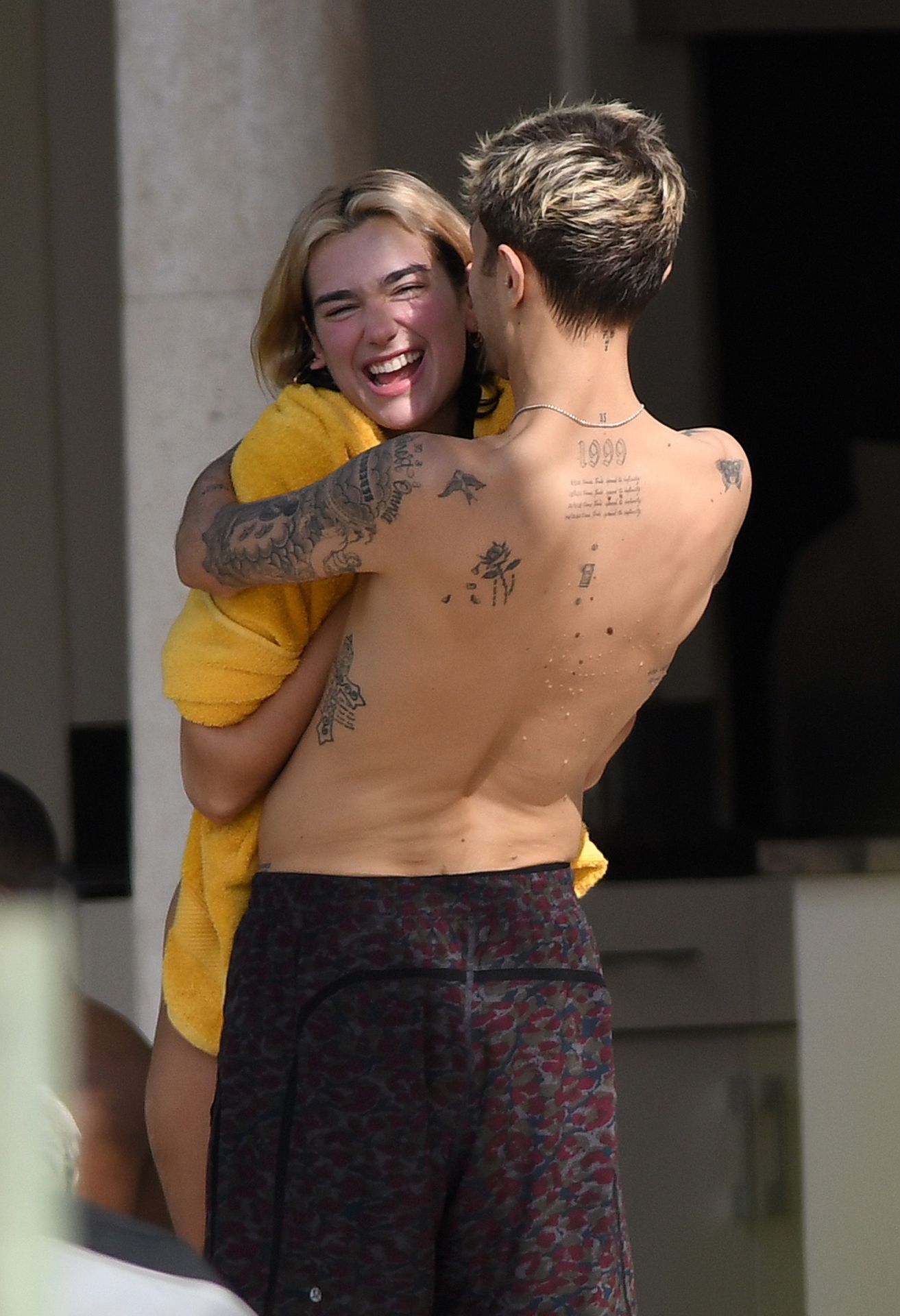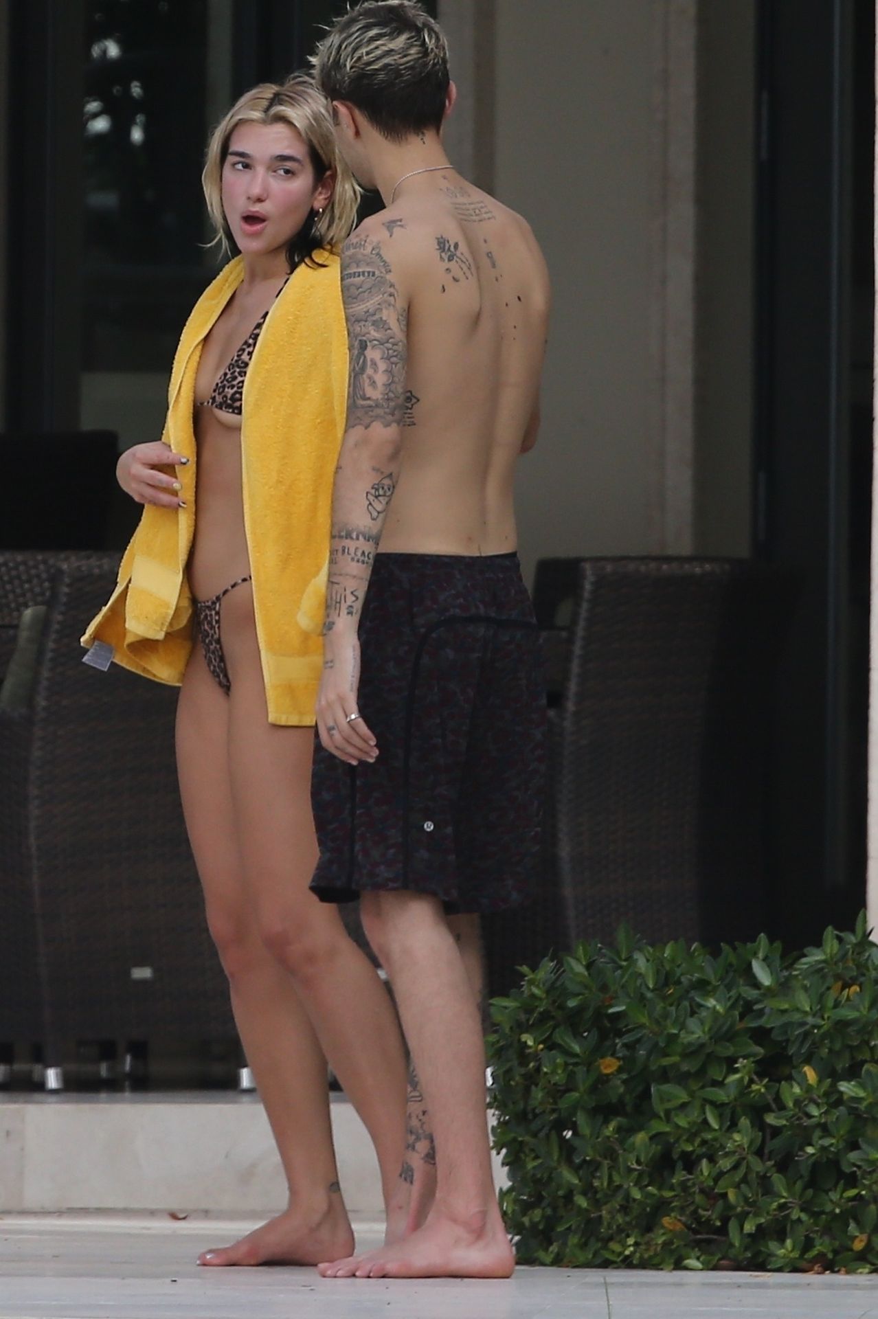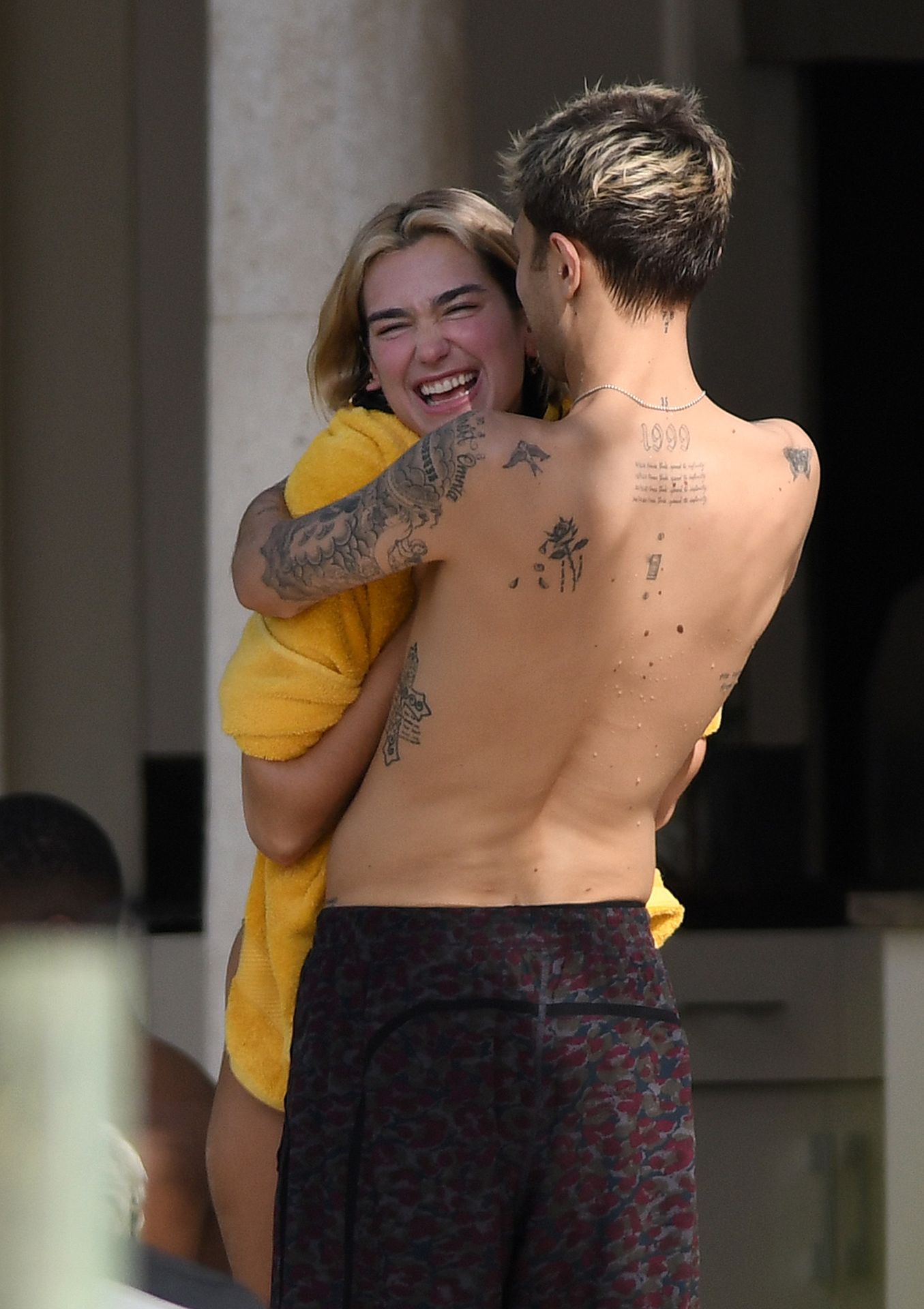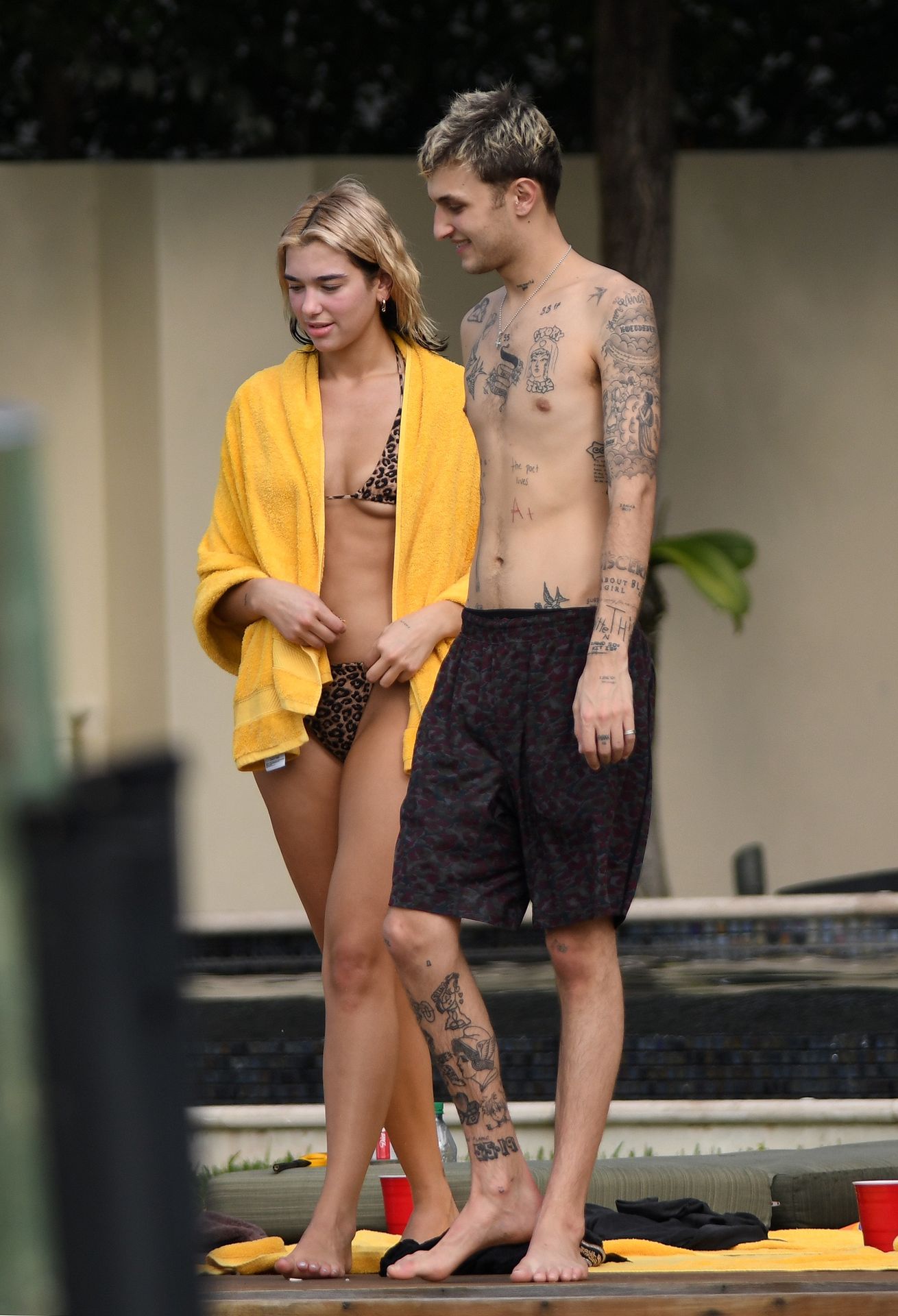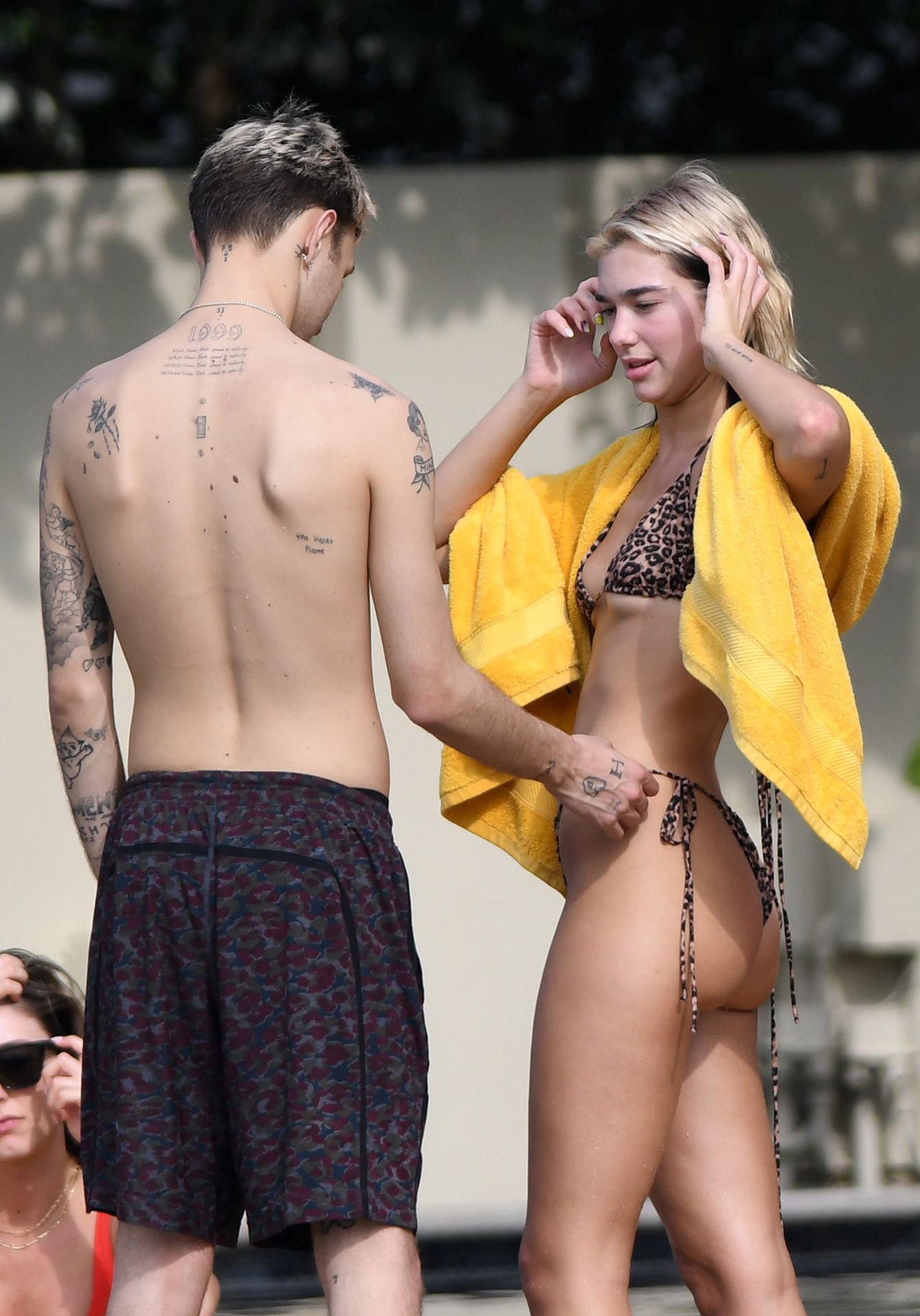 Songstress Dua Lipa is ending the year with those closest to her. The singer is joined by boyfriend Anwar Hadid and friends for rest and relaxation in Miami, 12/31/2019. The group relaxes and enjoys snacks and a smoke on a deck.