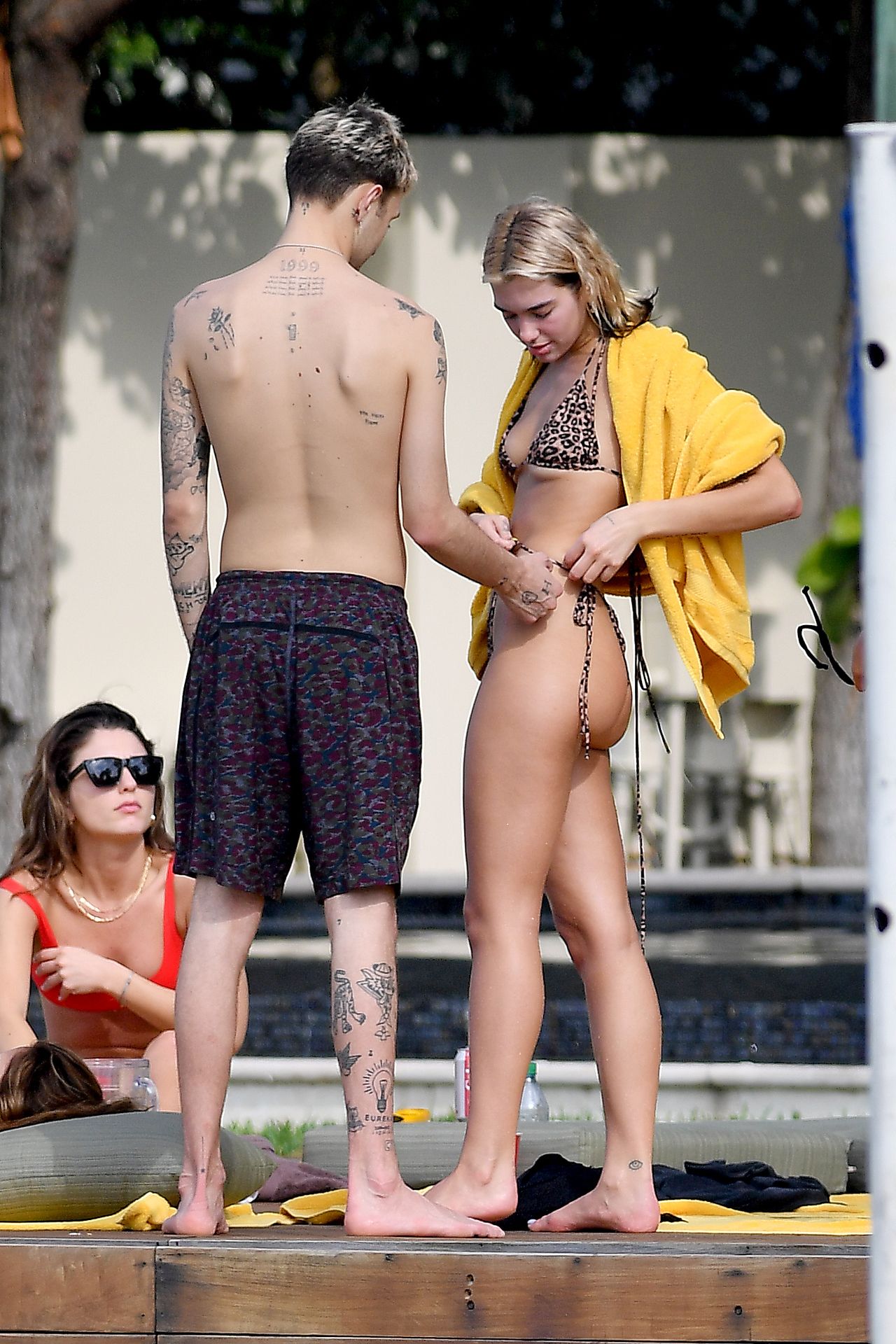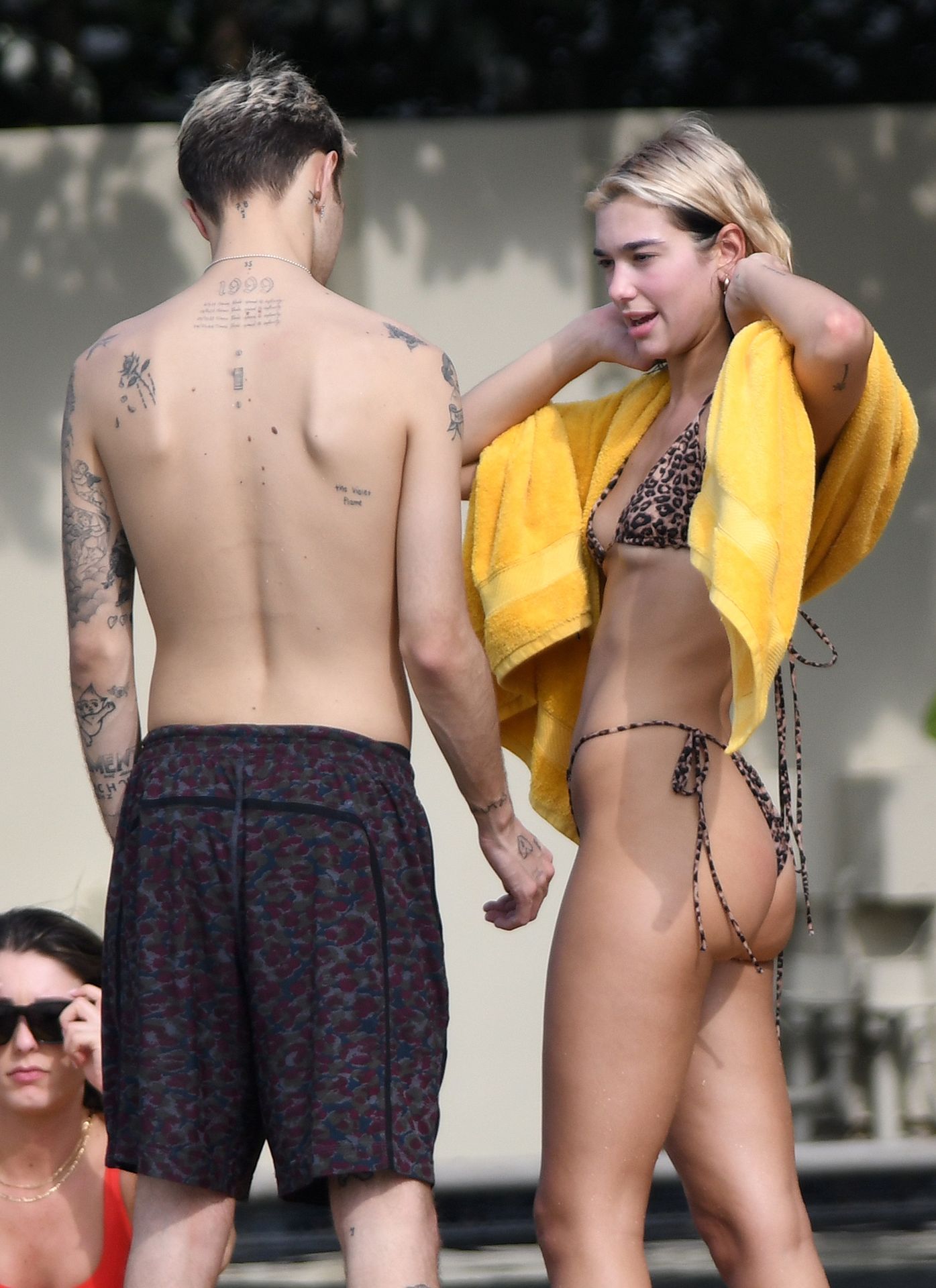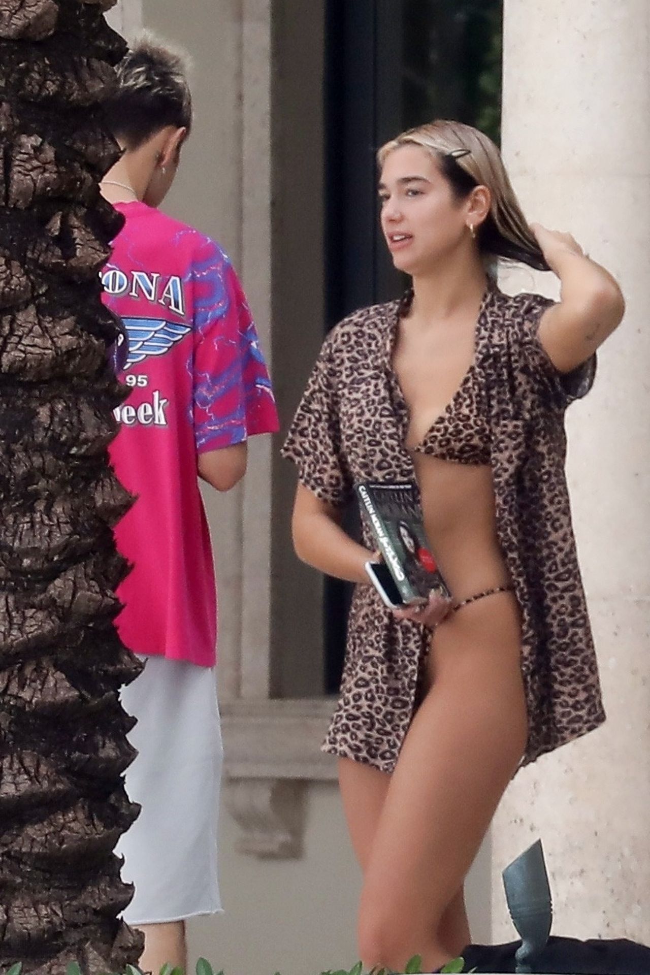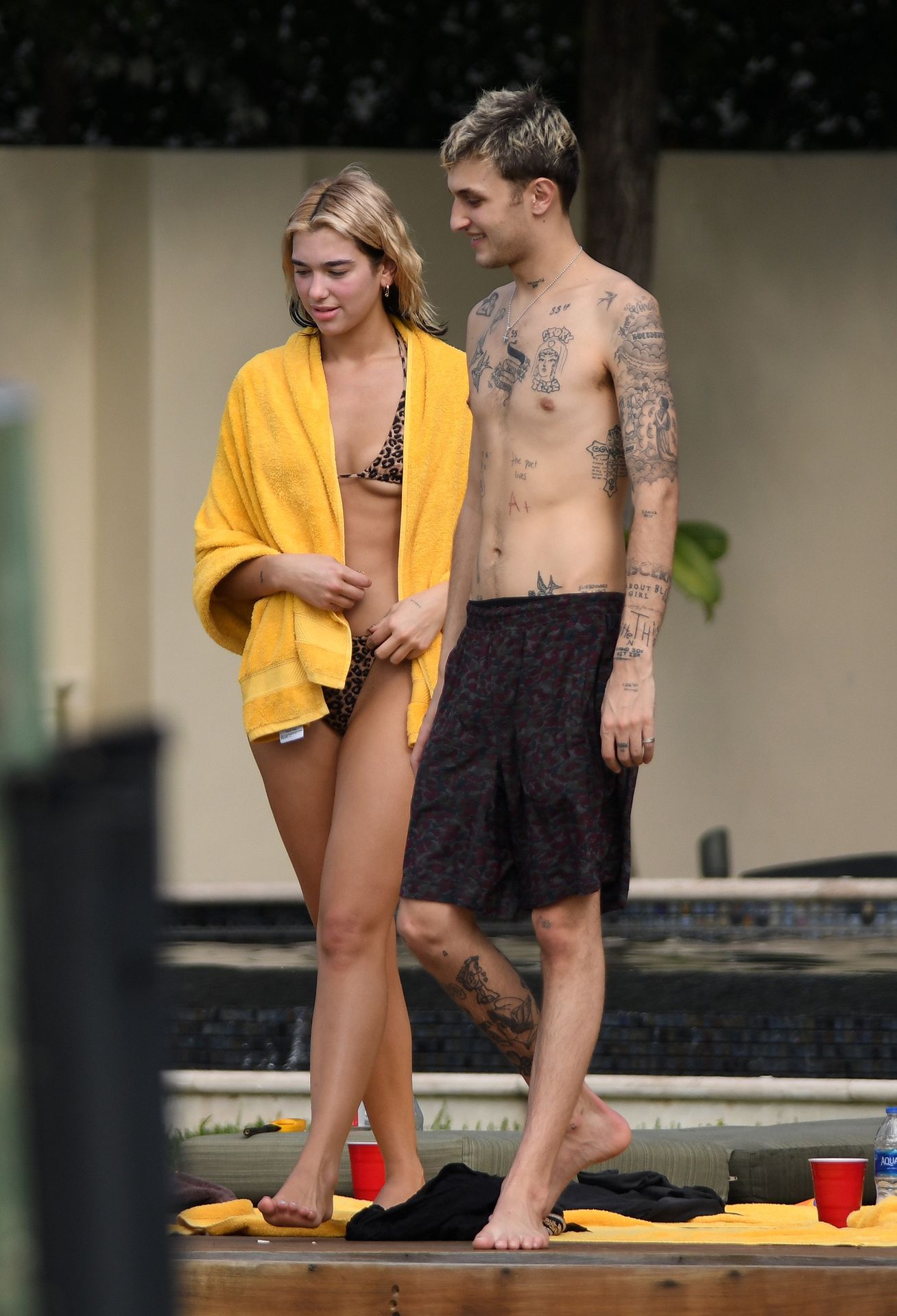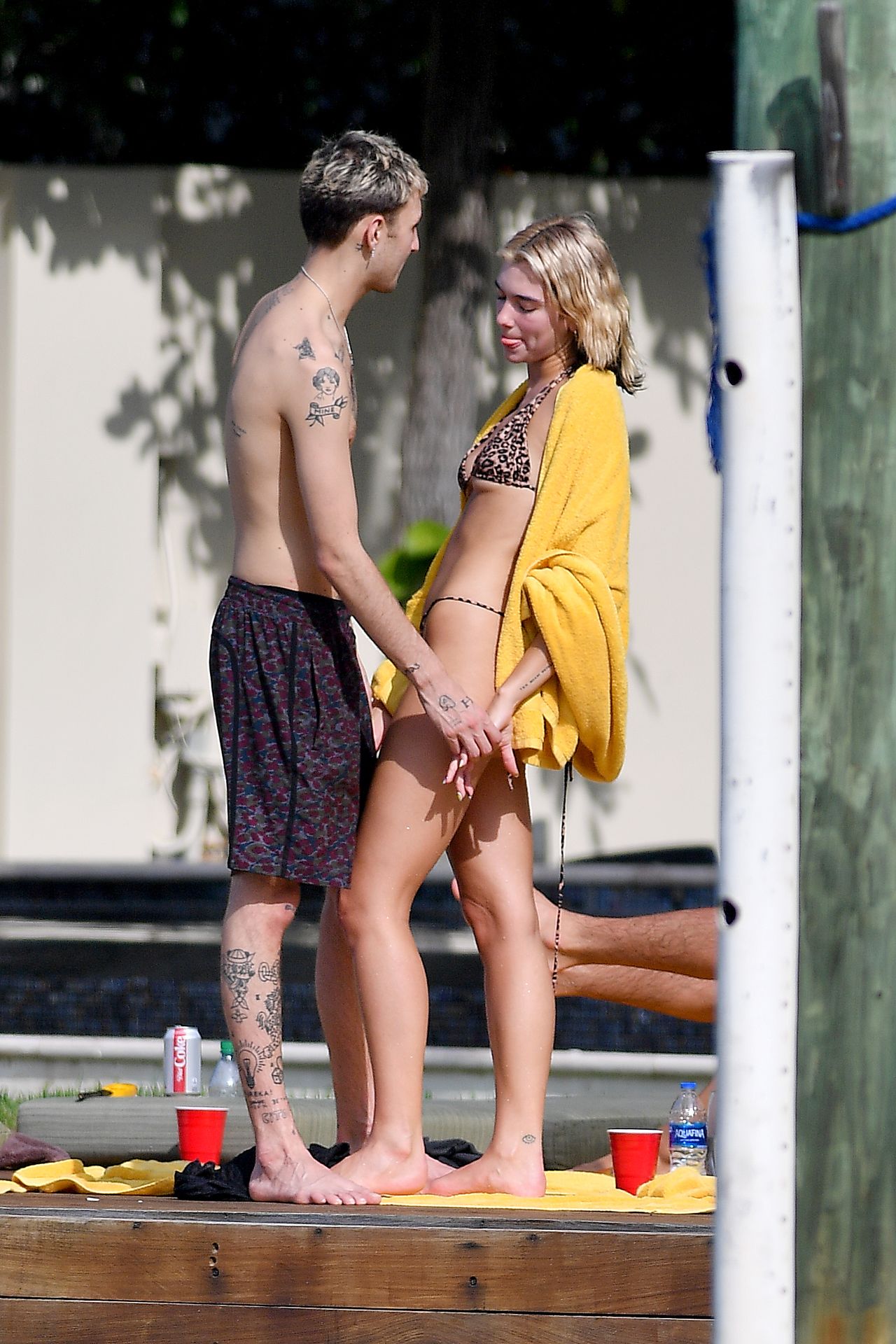 Songstress Dua Lipa is ending the year with those closest to her. The singer is joined by boyfriend Anwar Hadid and friends for rest and relaxation in Miami, 12/31/2019. The group relaxes and enjoys snacks and a smoke on a deck.