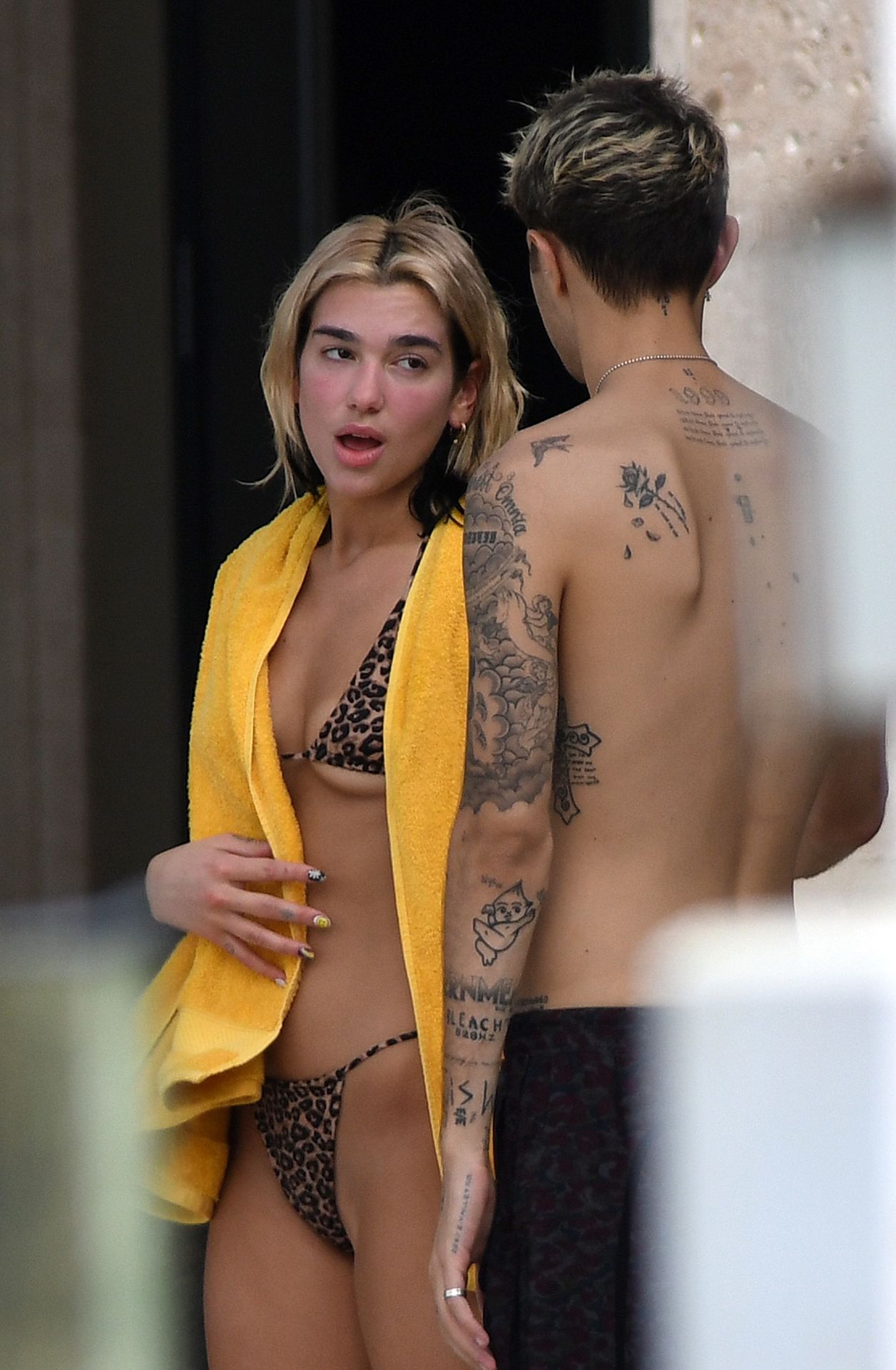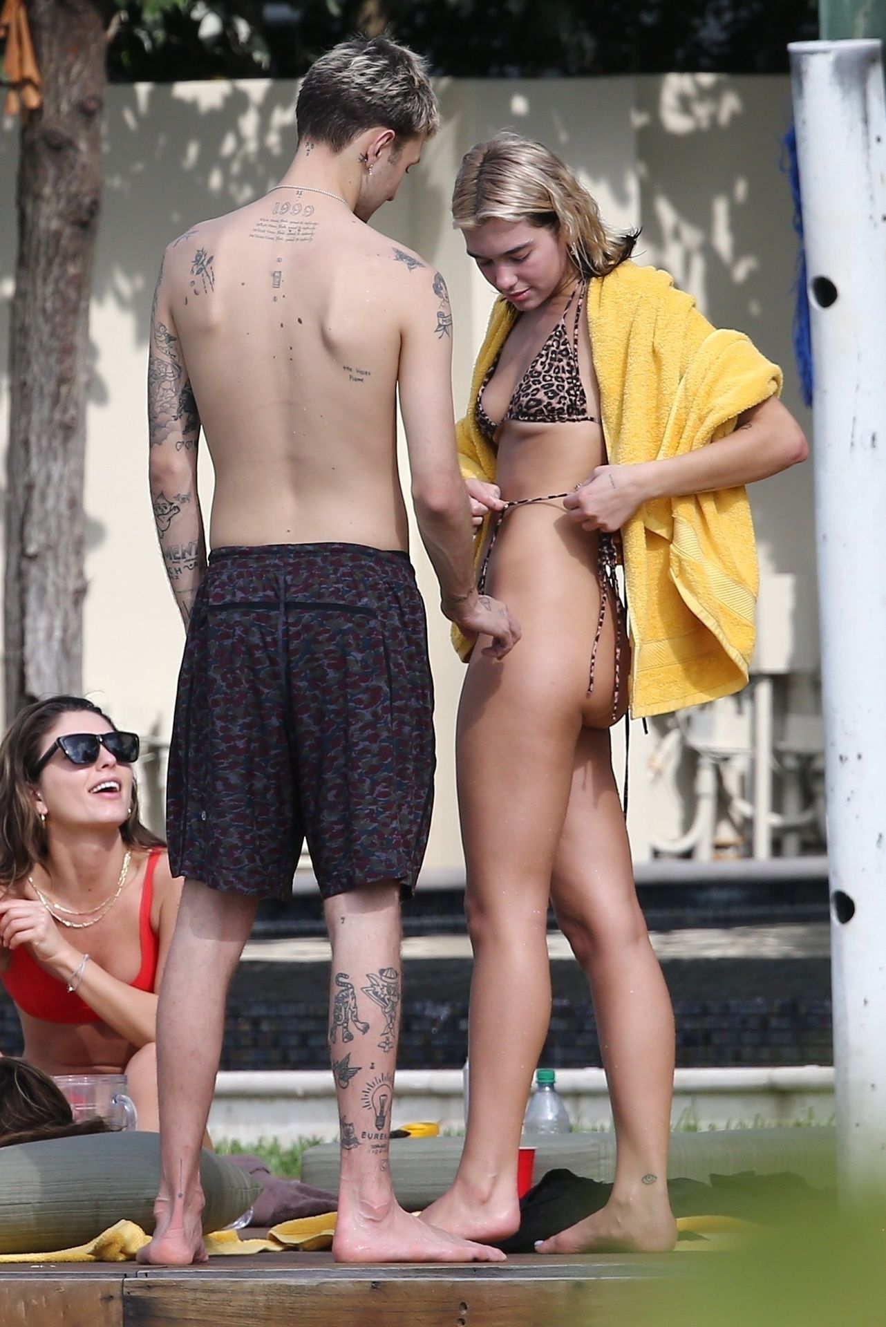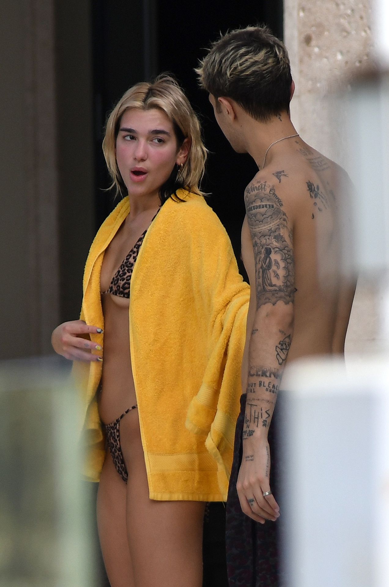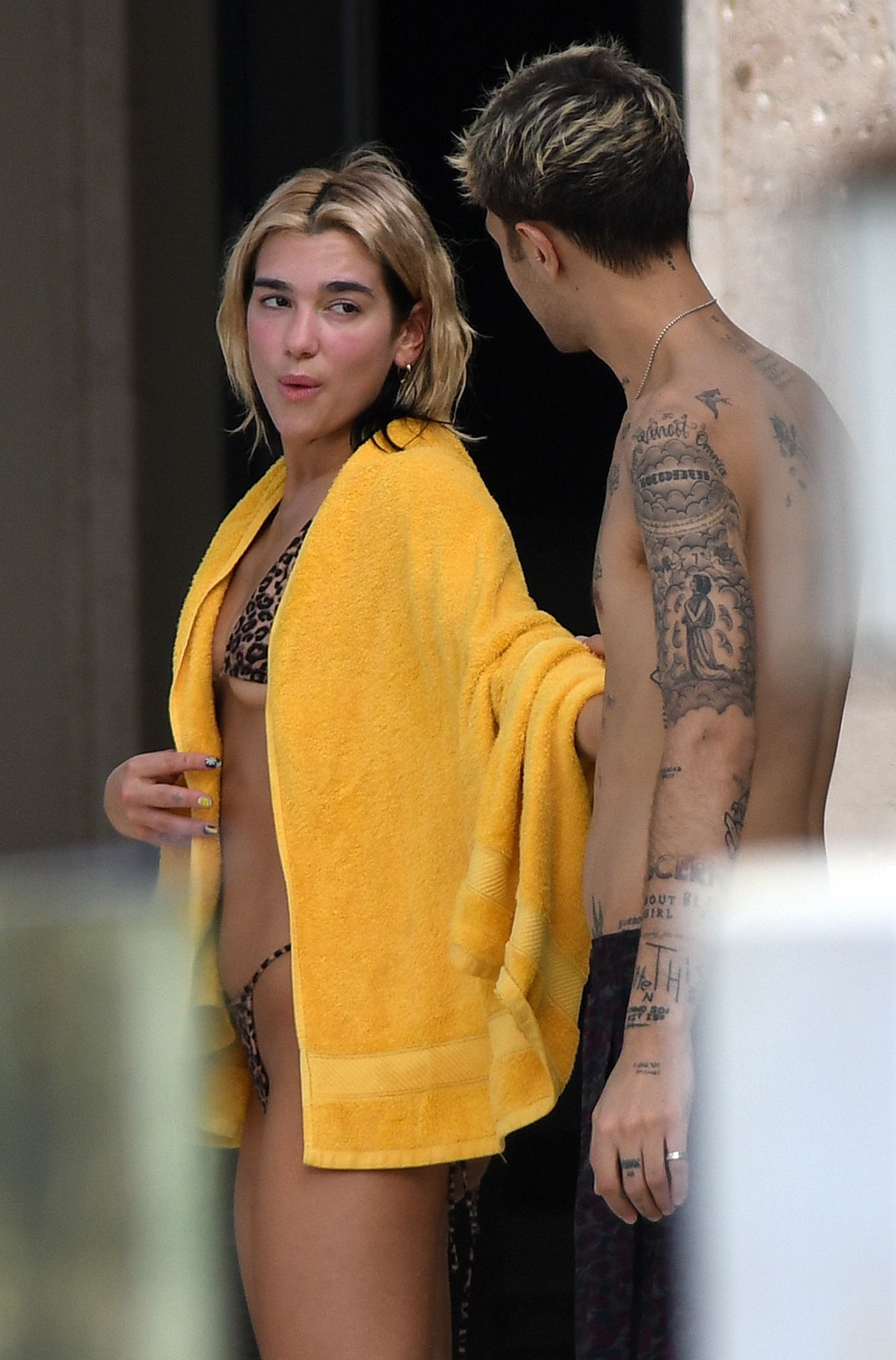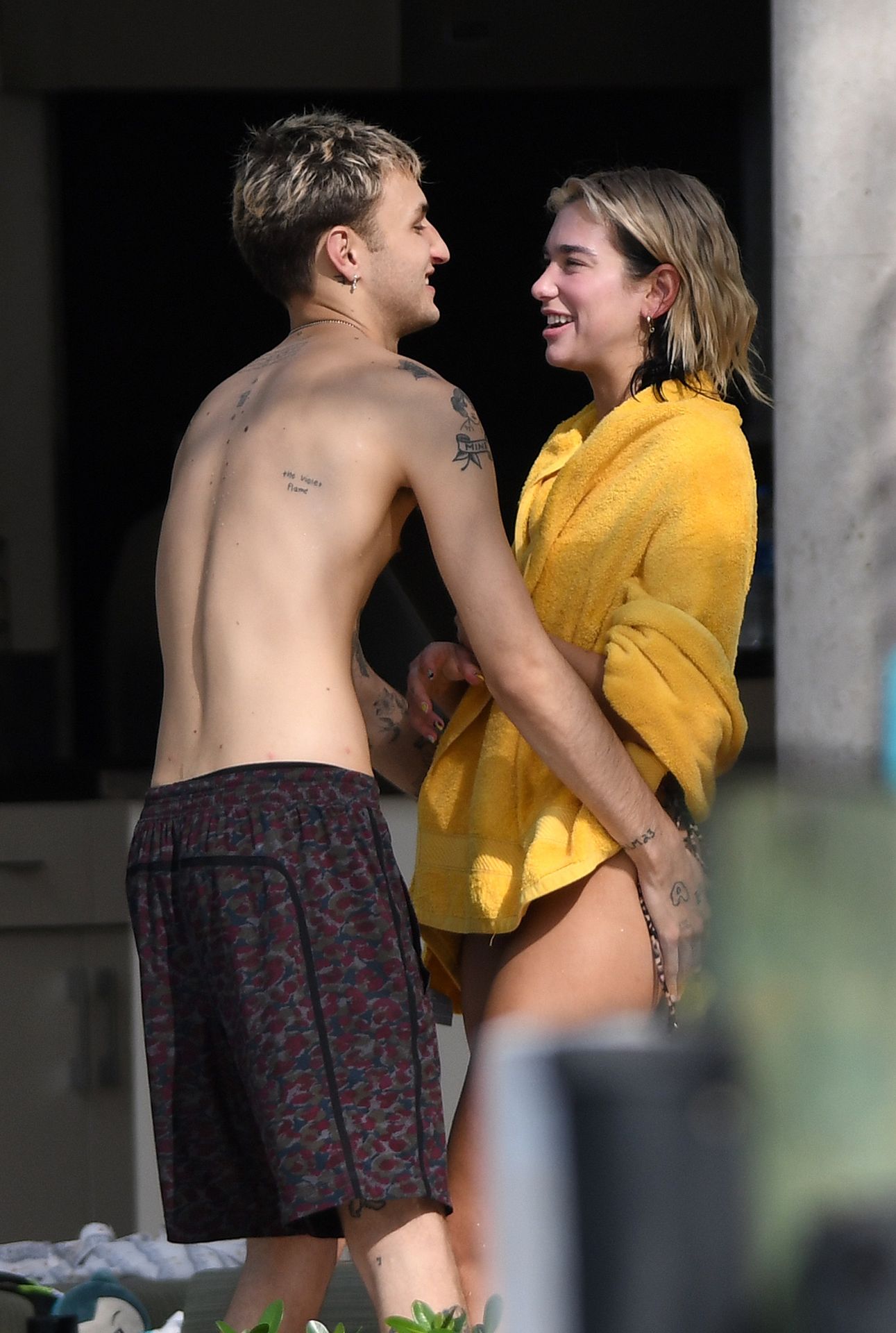 Songstress Dua Lipa is ending the year with those closest to her. The singer is joined by boyfriend Anwar Hadid and friends for rest and relaxation in Miami, 12/31/2019. The group relaxes and enjoys snacks and a smoke on a deck.