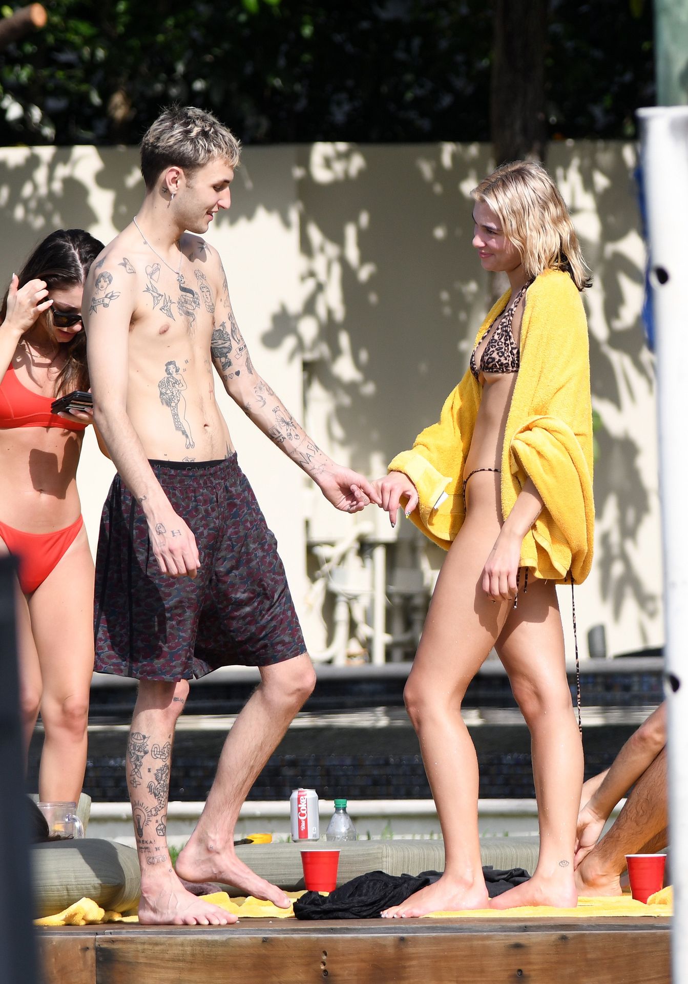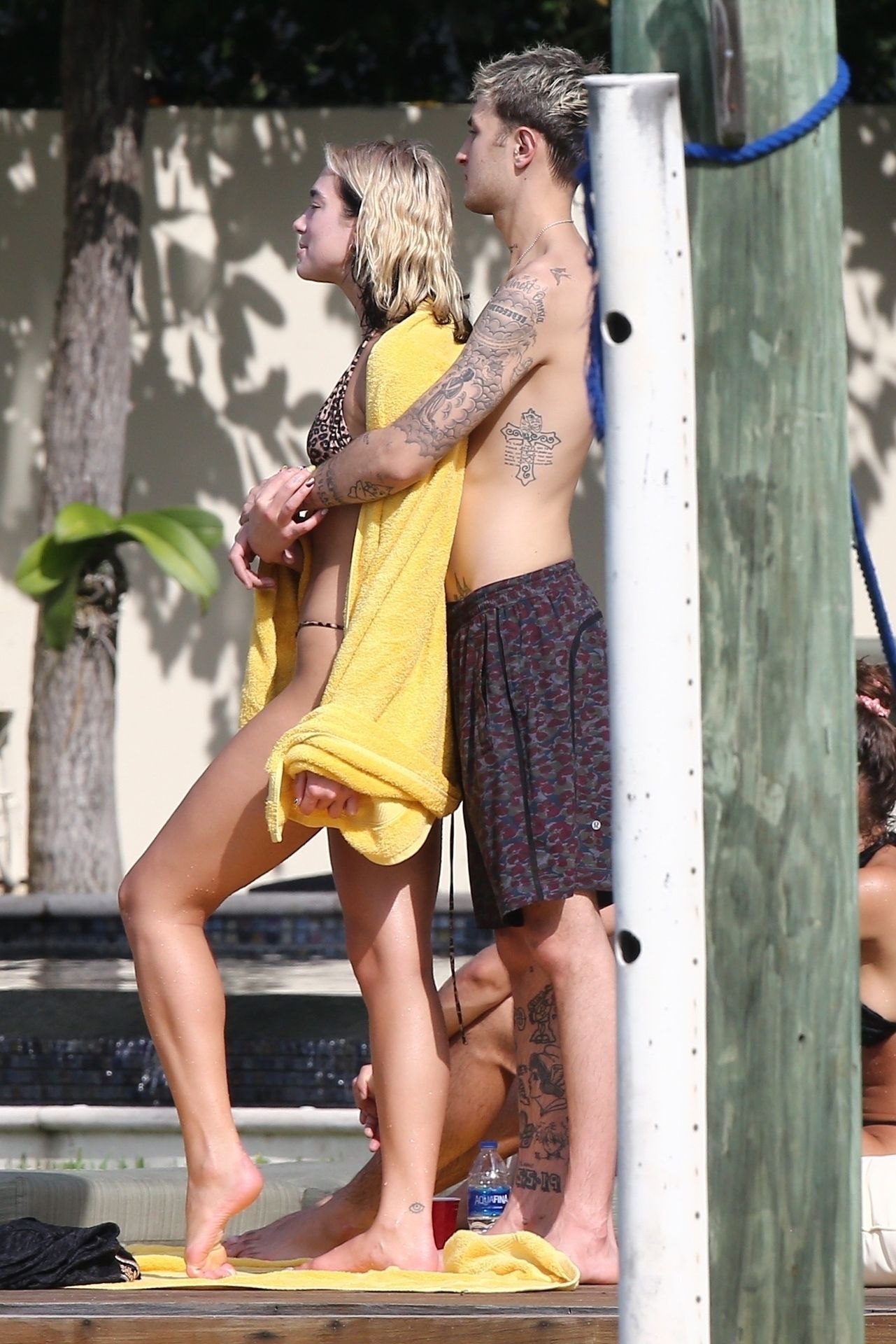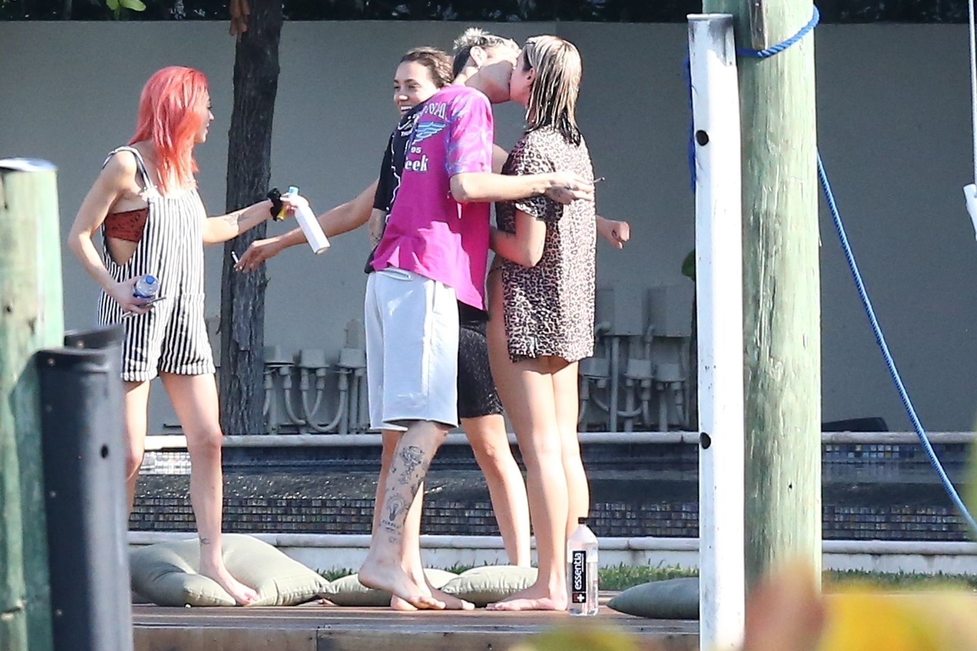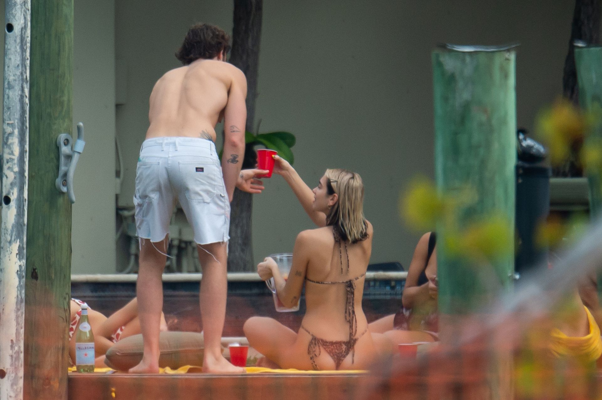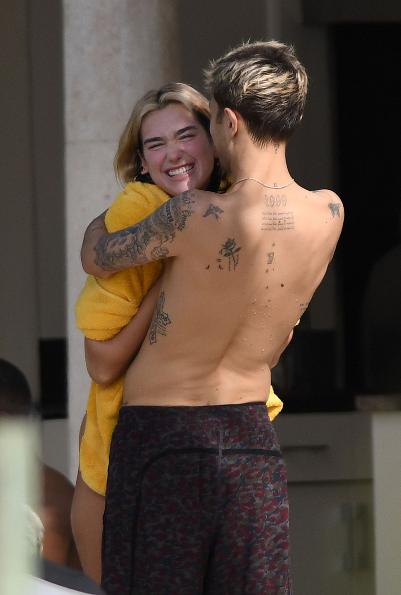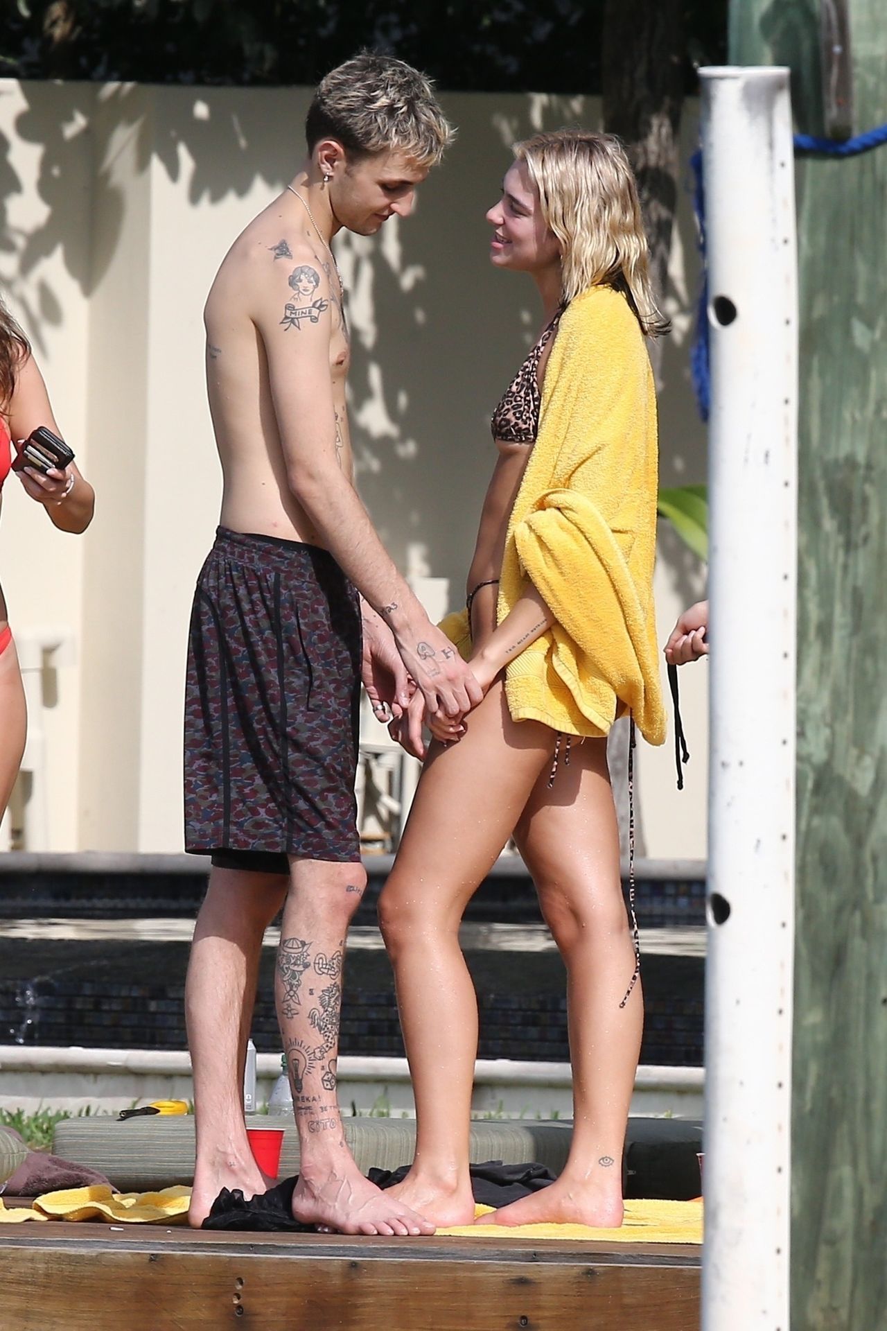Songstress Dua Lipa is ending the year with those closest to her. The singer is joined by boyfriend Anwar Hadid and friends for rest and relaxation in Miami, 12/31/2019. The group relaxes and enjoys snacks and a smoke on a deck.