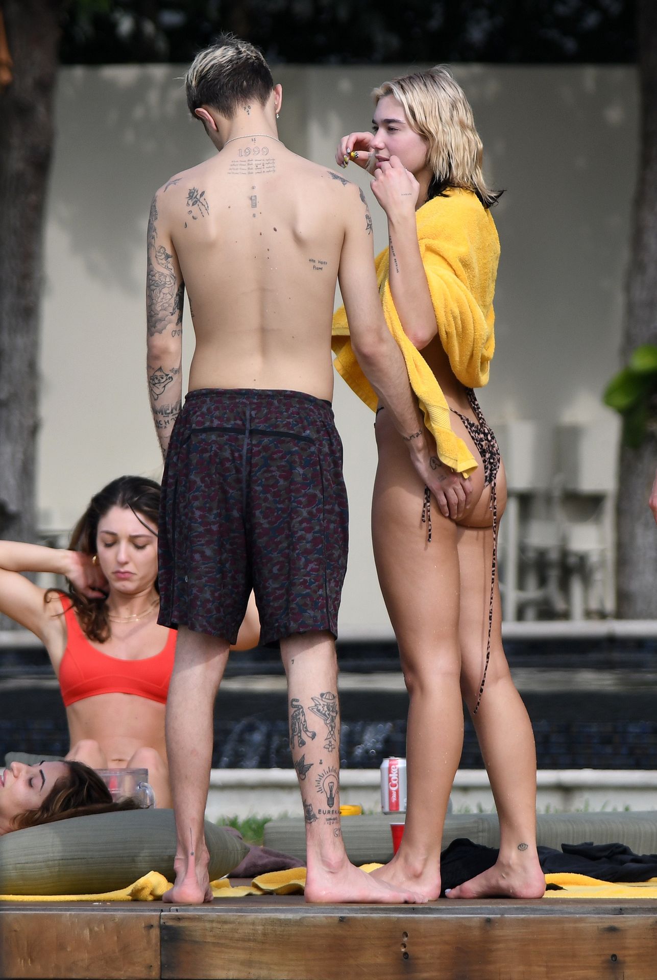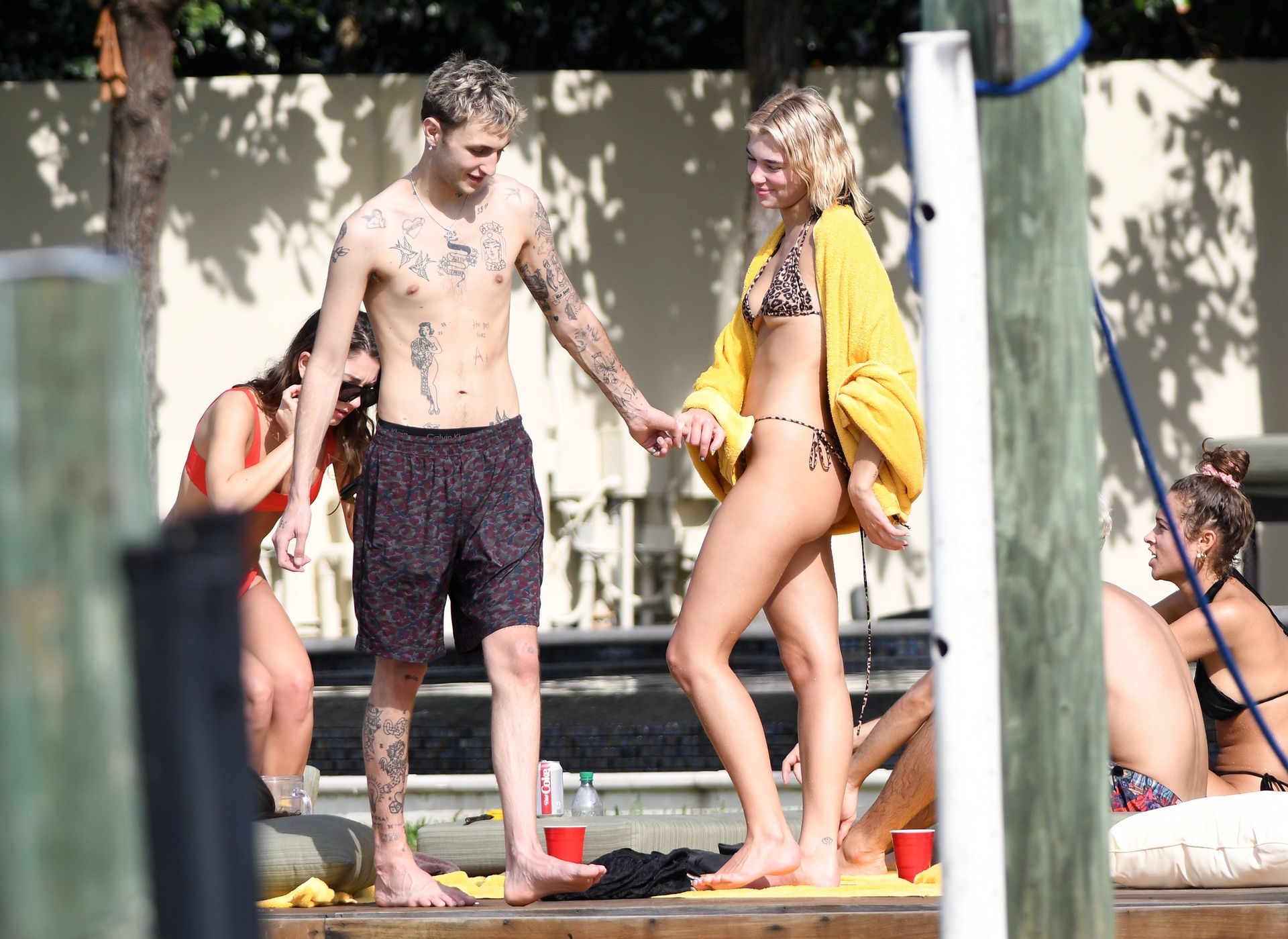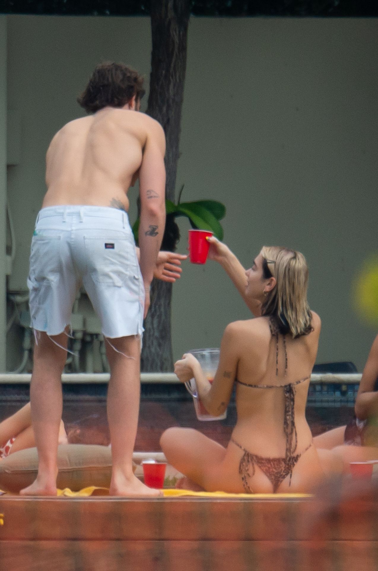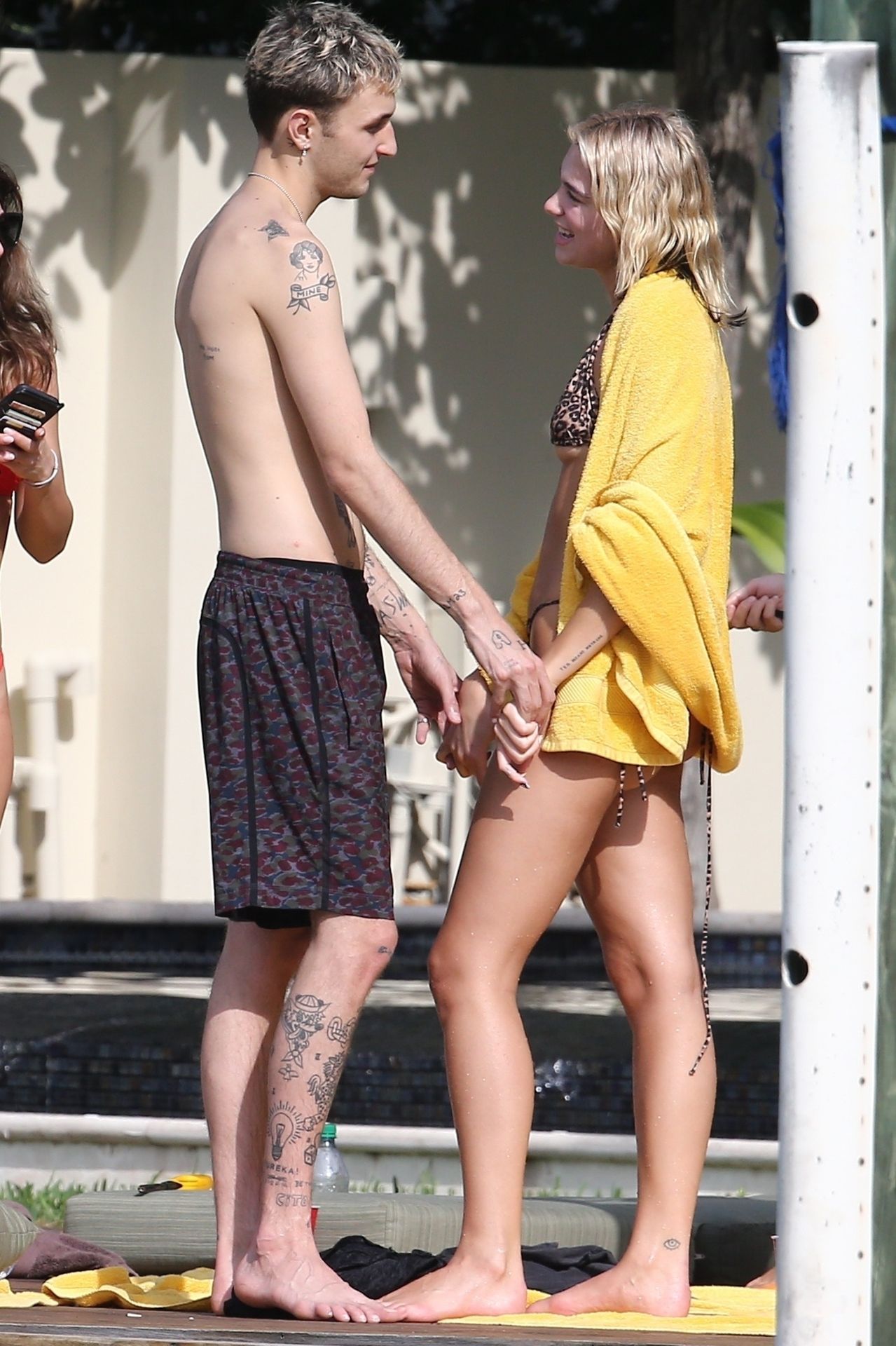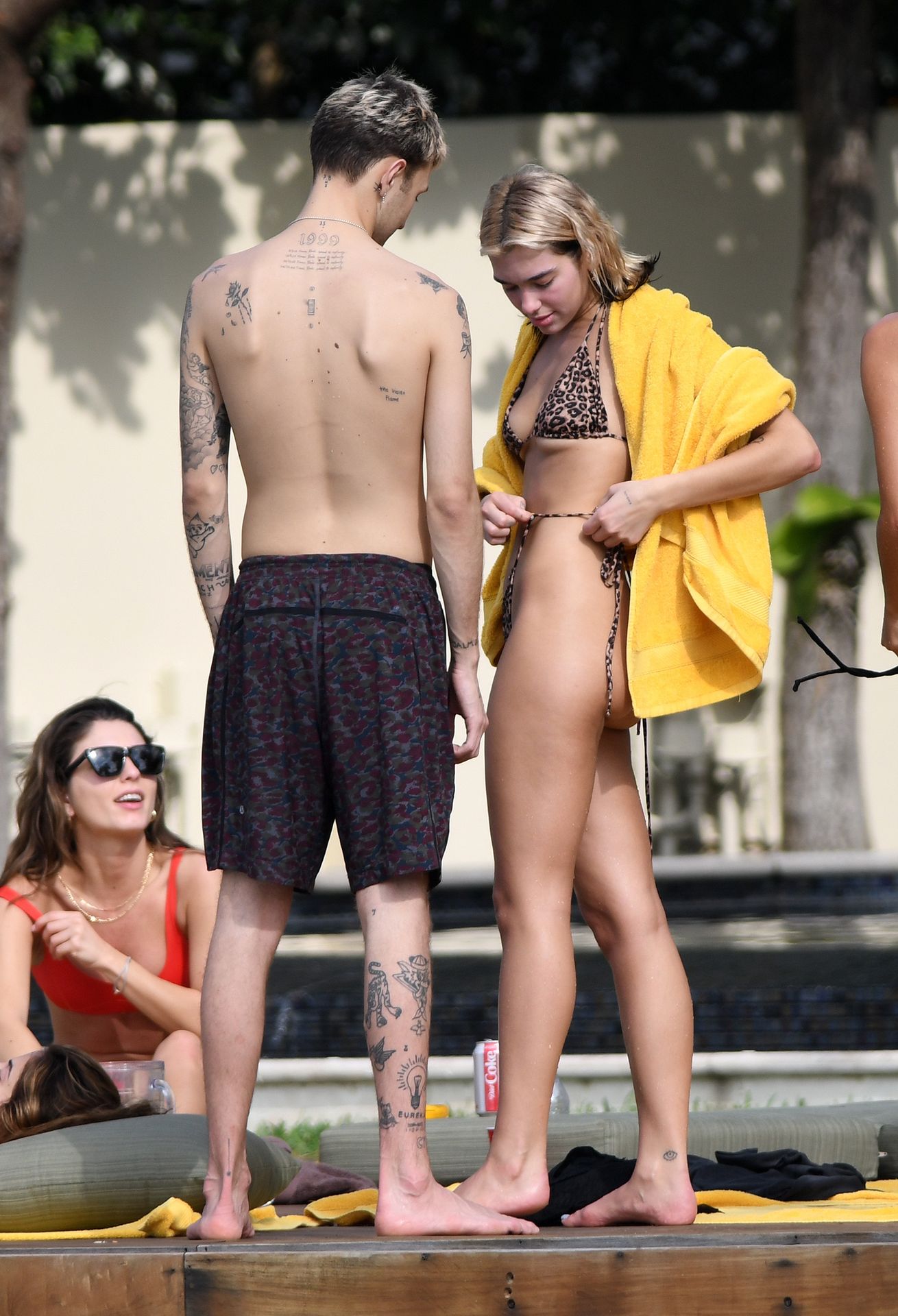 Songstress Dua Lipa is ending the year with those closest to her. The singer is joined by boyfriend Anwar Hadid and friends for rest and relaxation in Miami, 12/31/2019. The group relaxes and enjoys snacks and a smoke on a deck.