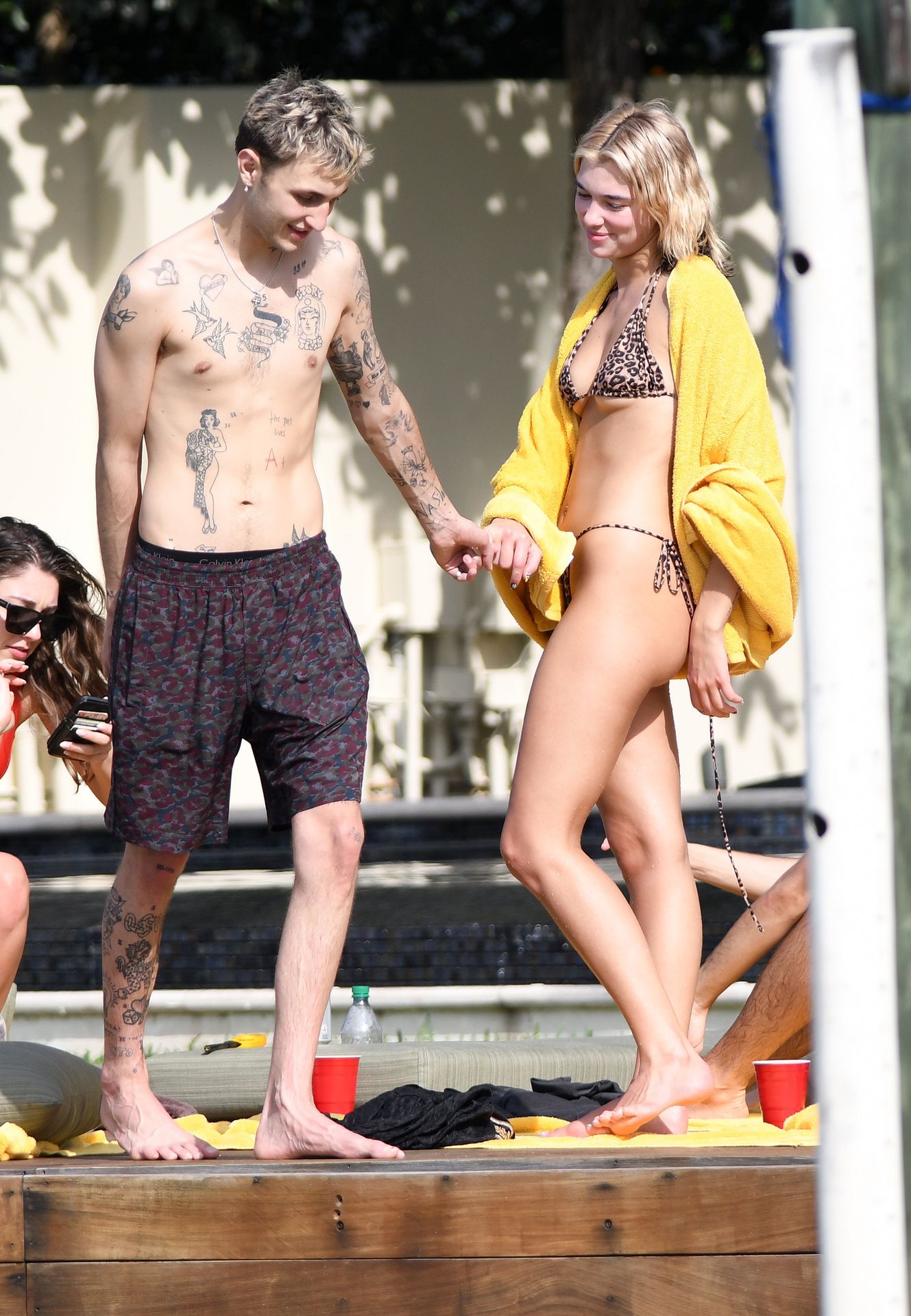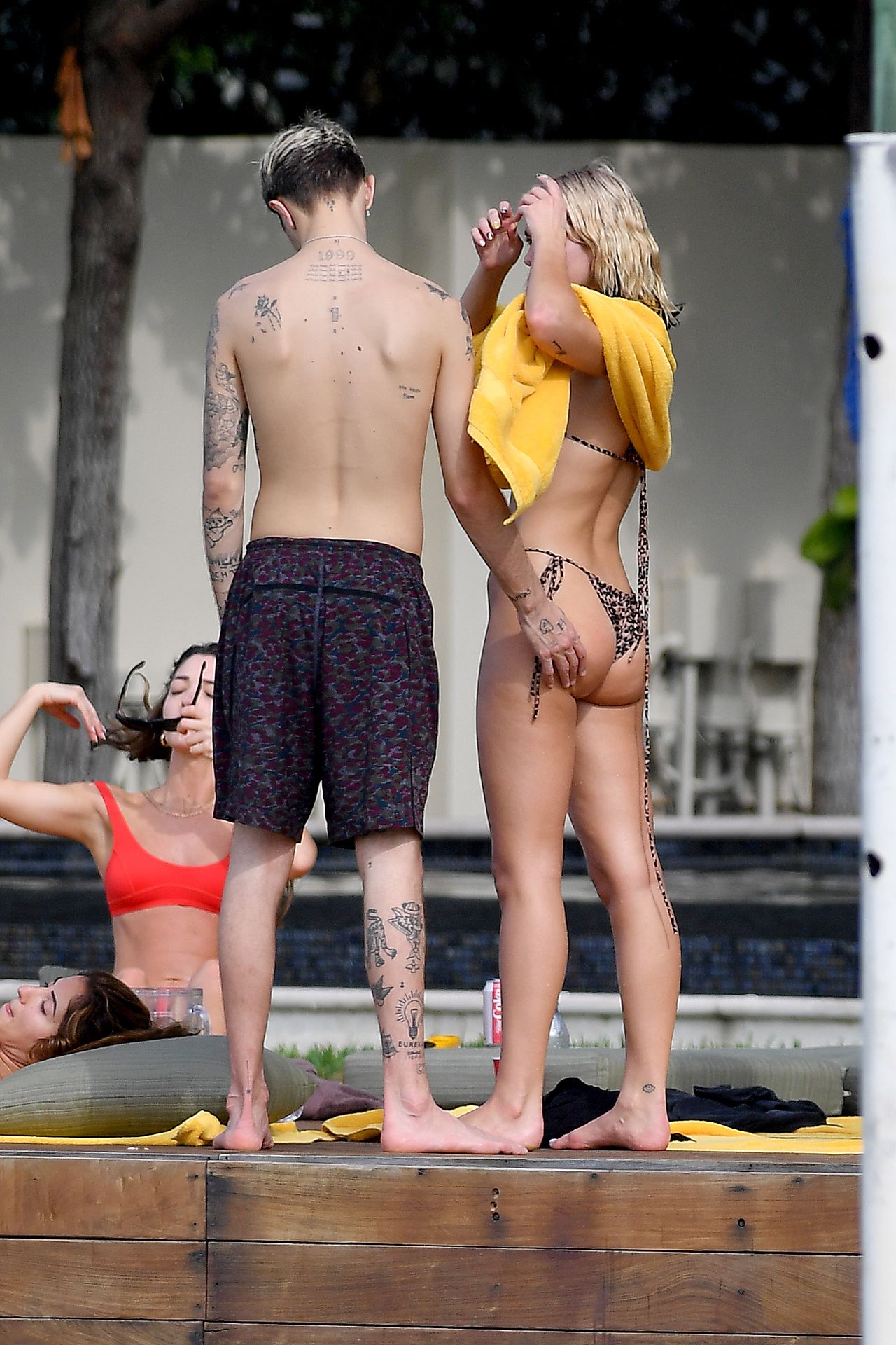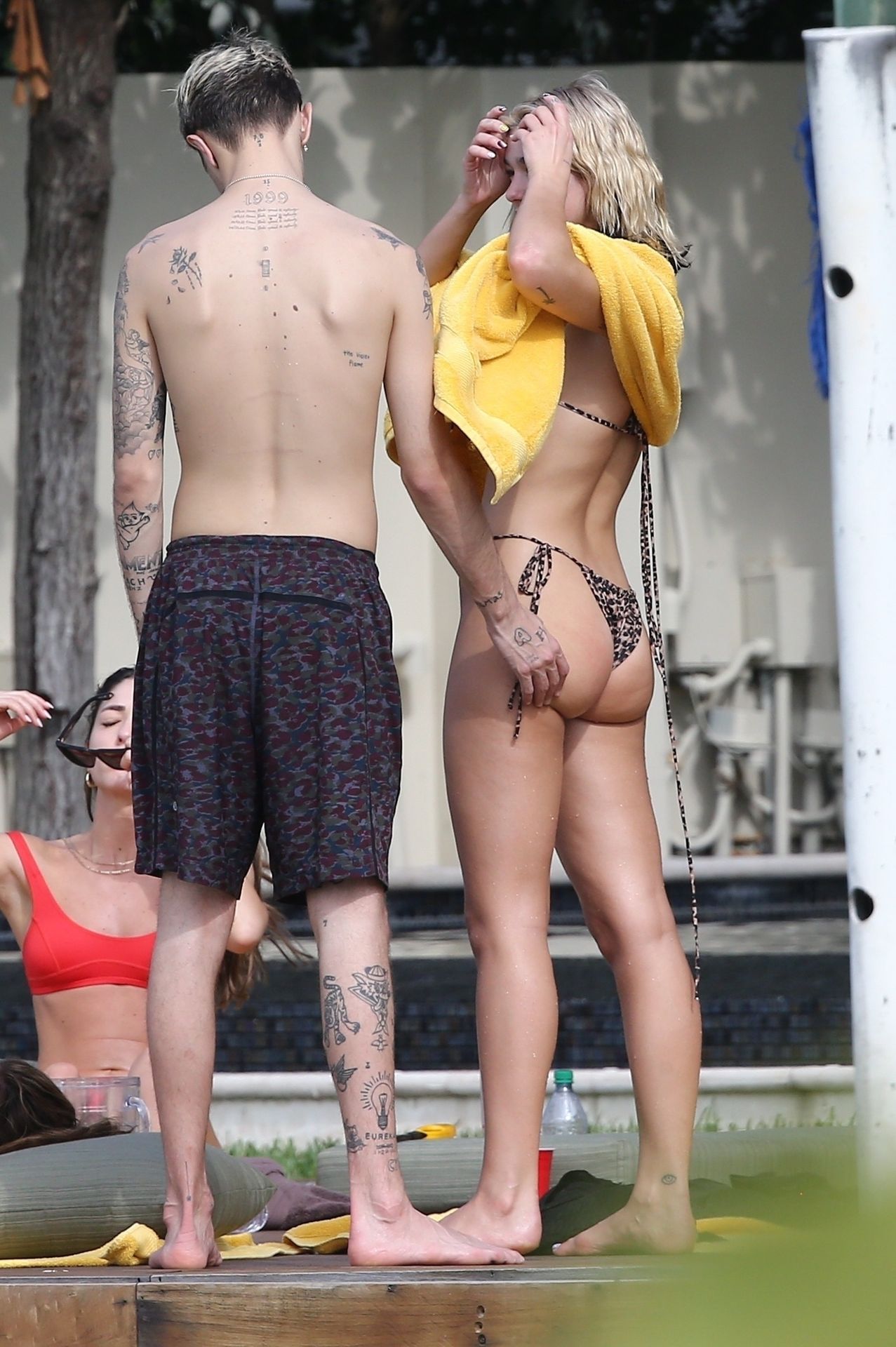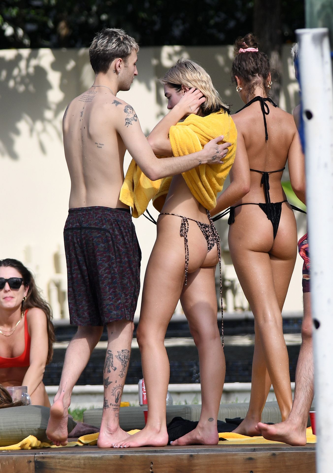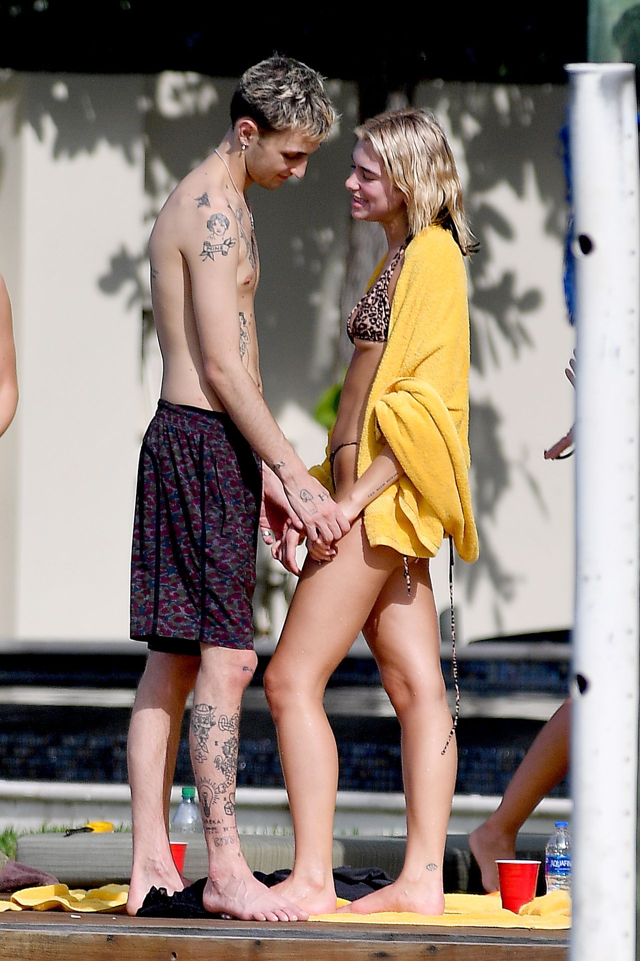 Songstress Dua Lipa is ending the year with those closest to her. The singer is joined by boyfriend Anwar Hadid and friends for rest and relaxation in Miami, 12/31/2019. The group relaxes and enjoys snacks and a smoke on a deck.