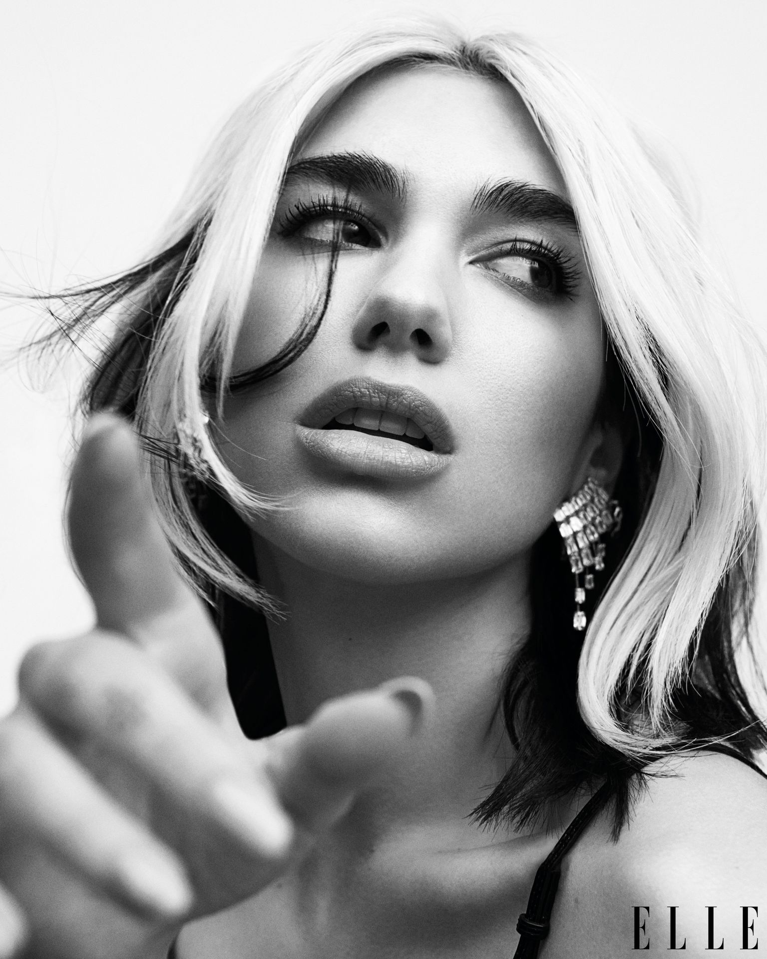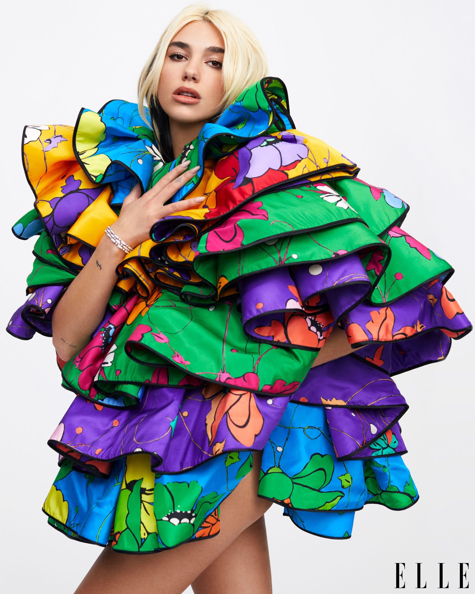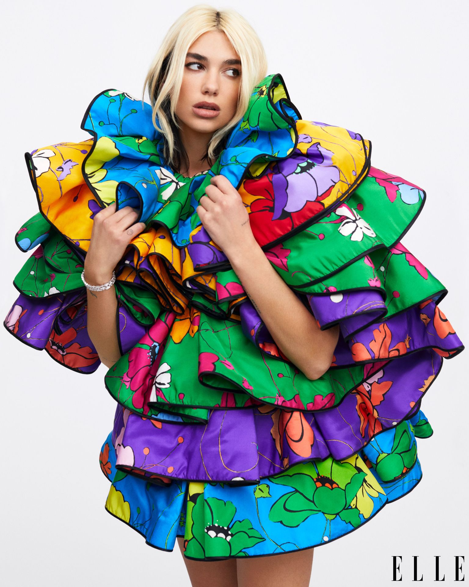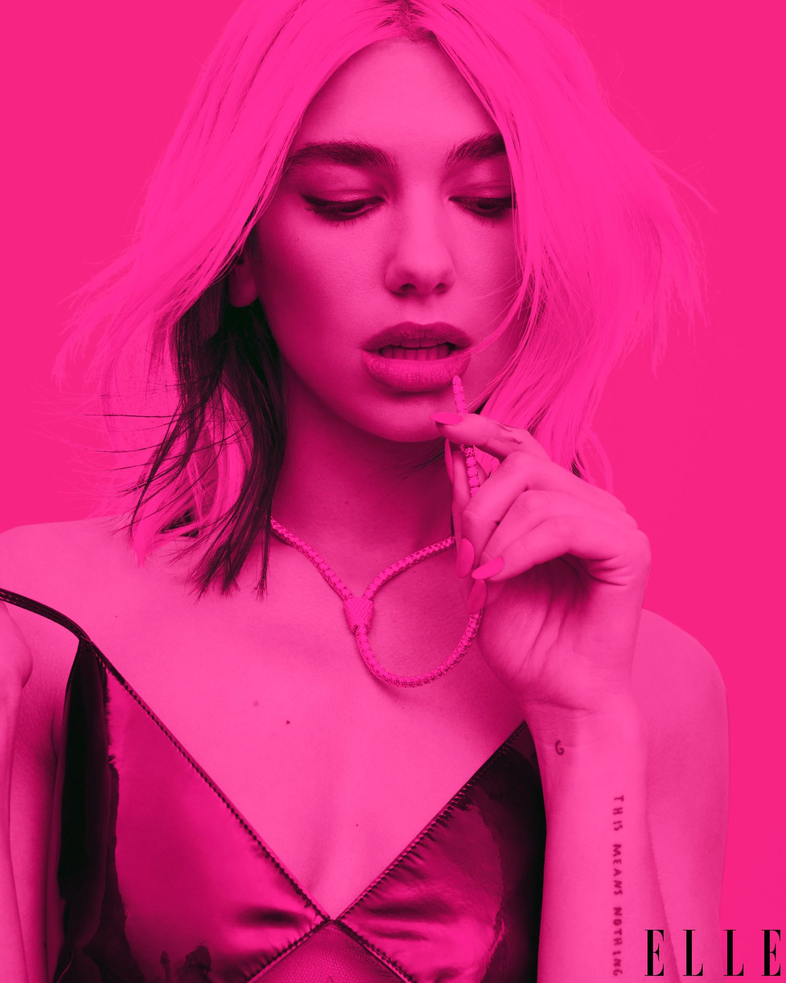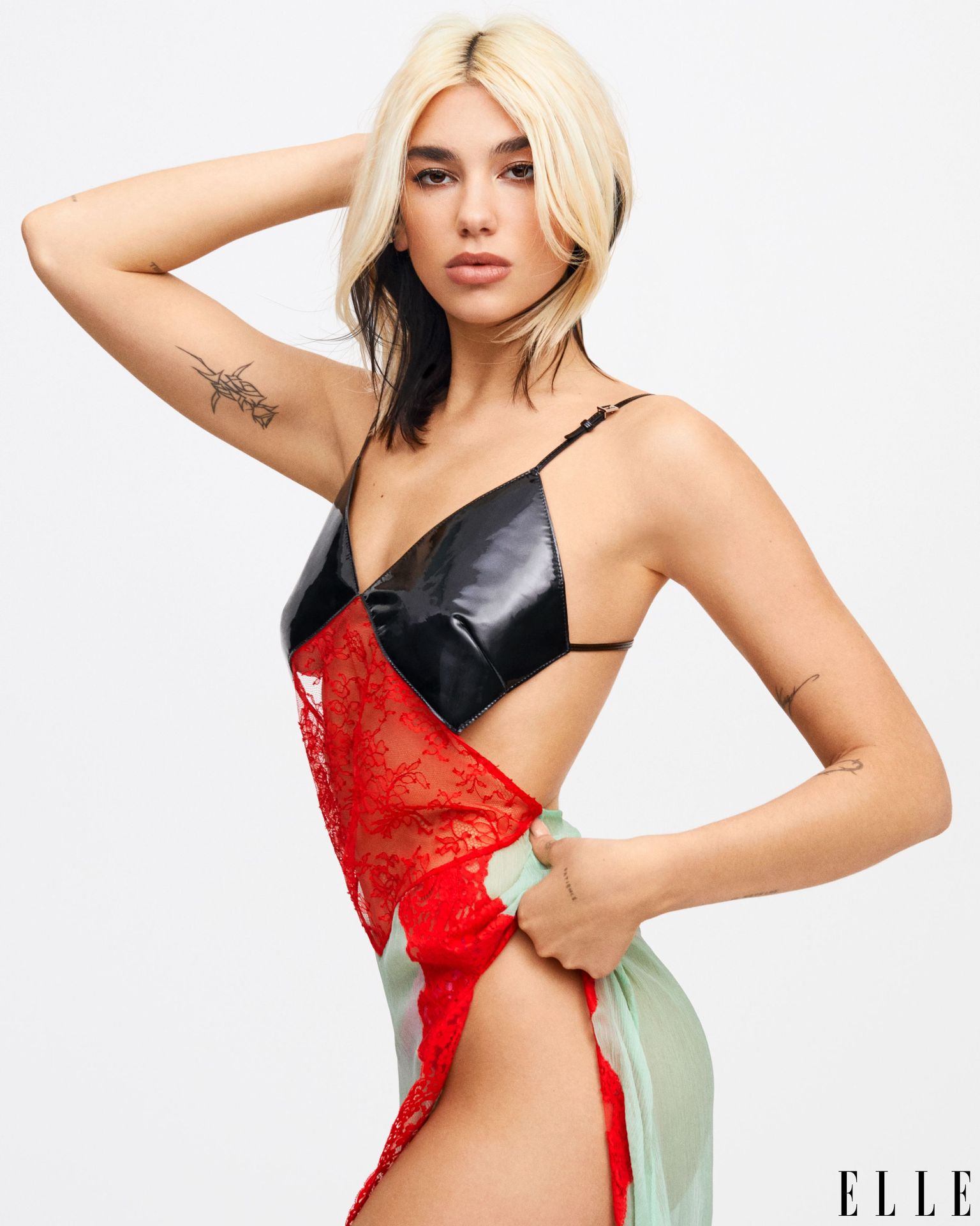 Sexy singer Dua Lipa poses in beautiful outfits and naked covering her tits with a guitar in an exciting photoshoot by Zoey Grossman for Elle magazine May 2020 issue.