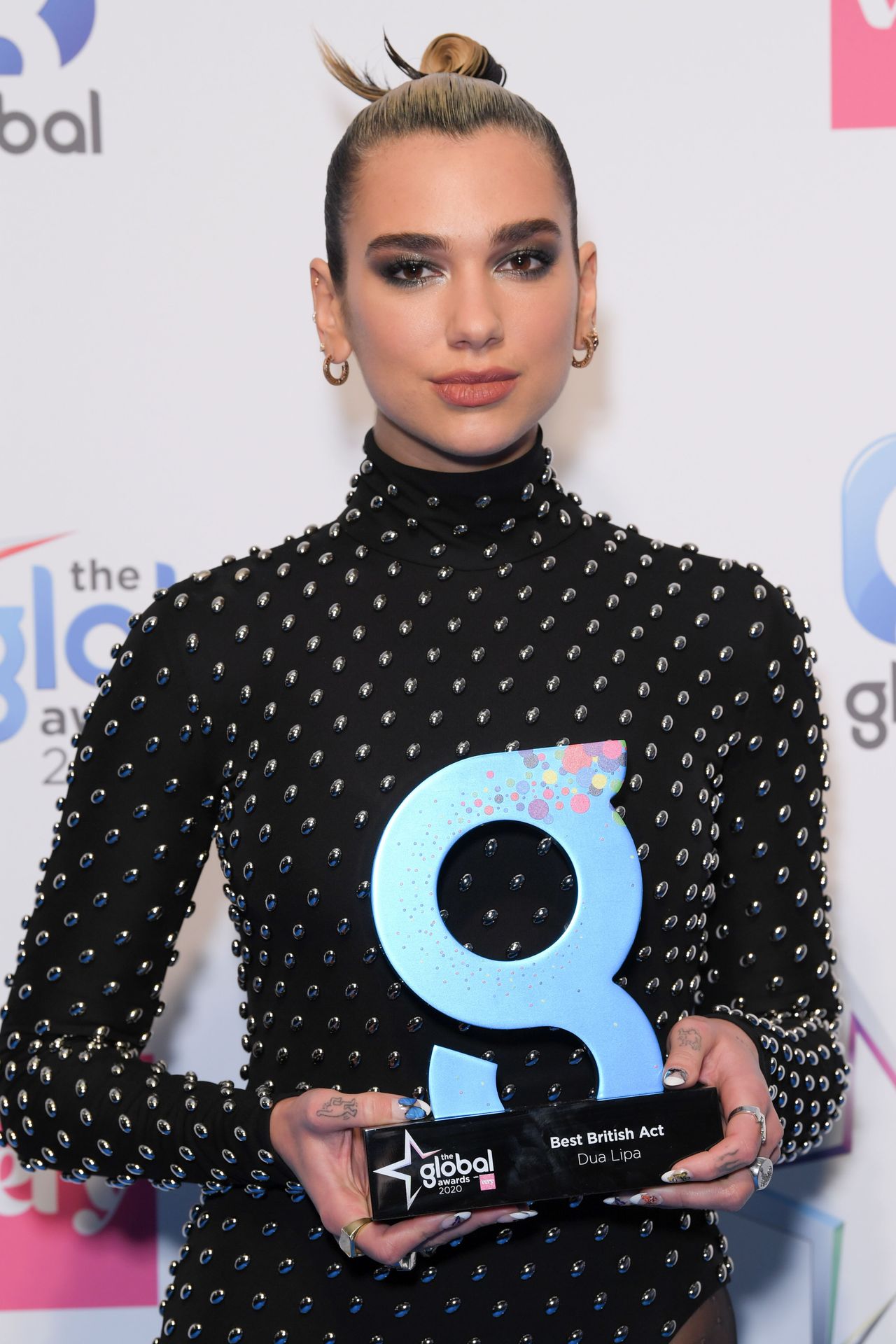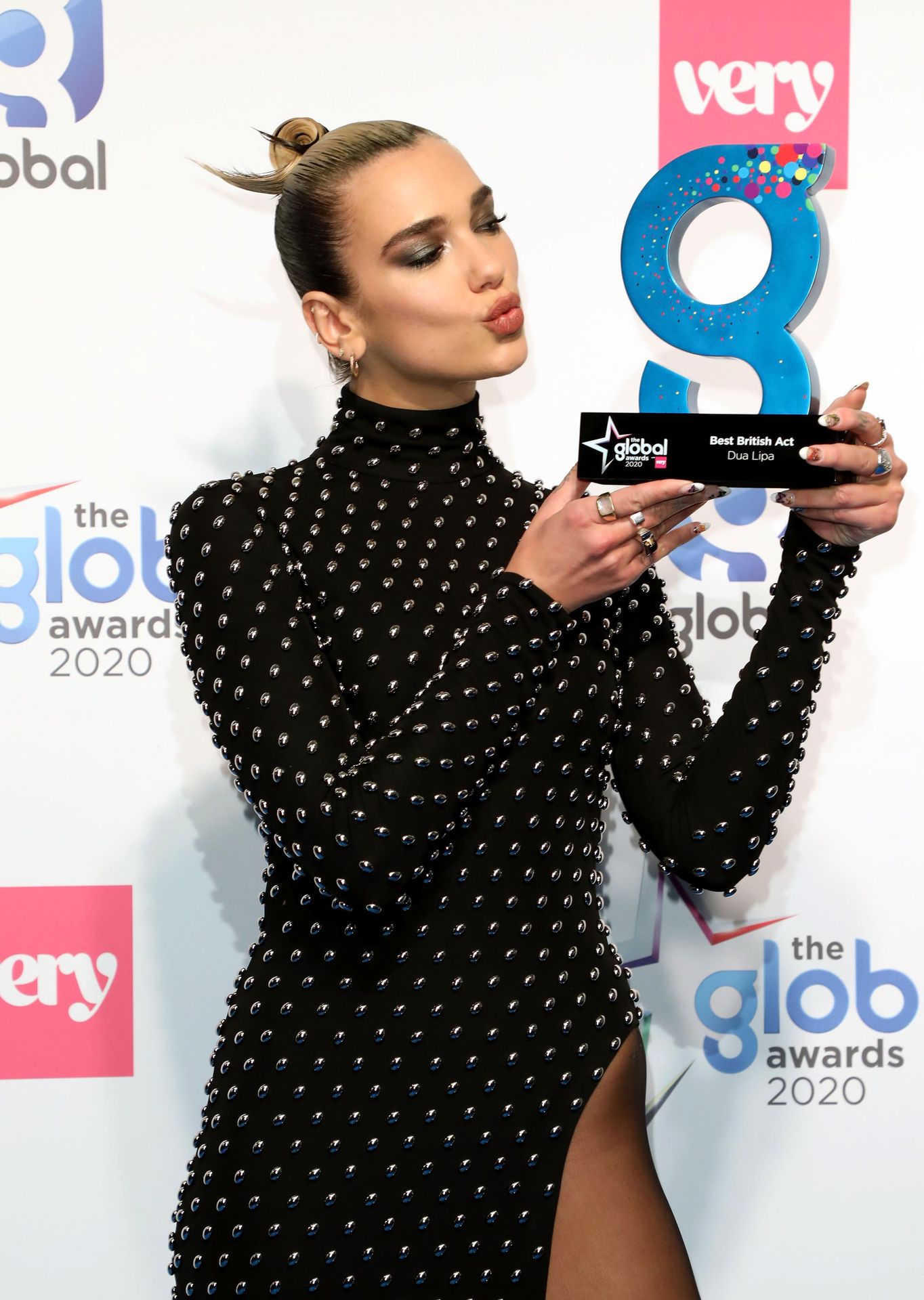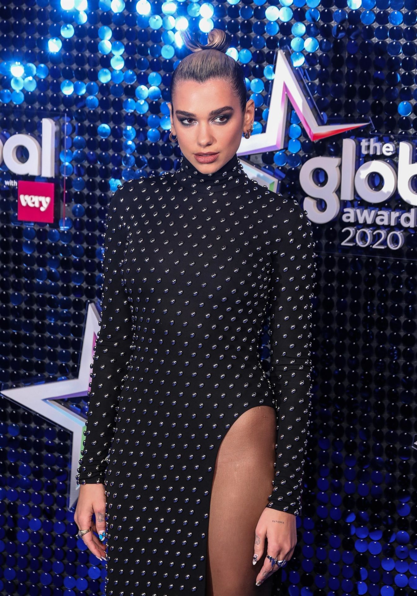 Dua Lipa (24) was photographed while attending The Global Awards at the Eventim Hammersmith Apollo in London, 03/05/2020. The singer showed her sexy figure and legs, wearing a sexy high slit dress and black pantyhose.