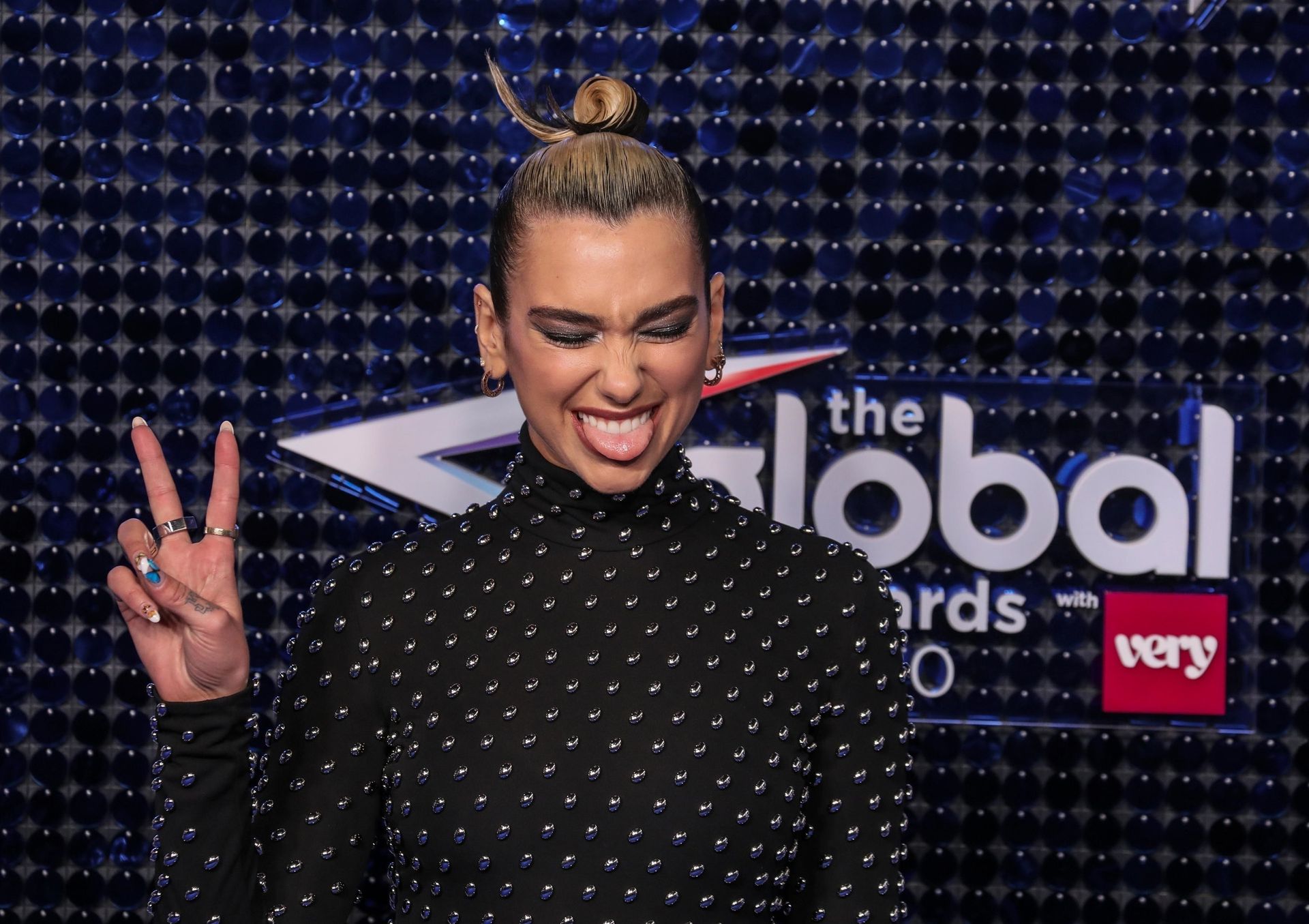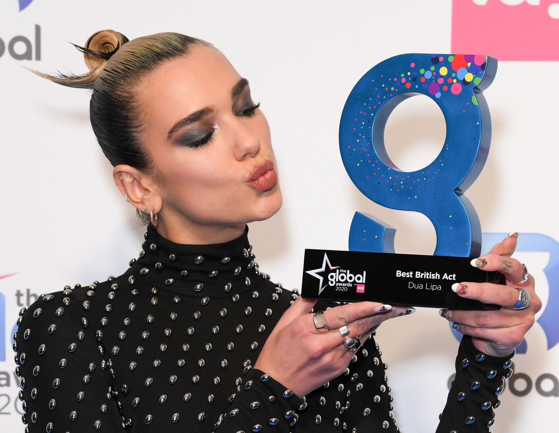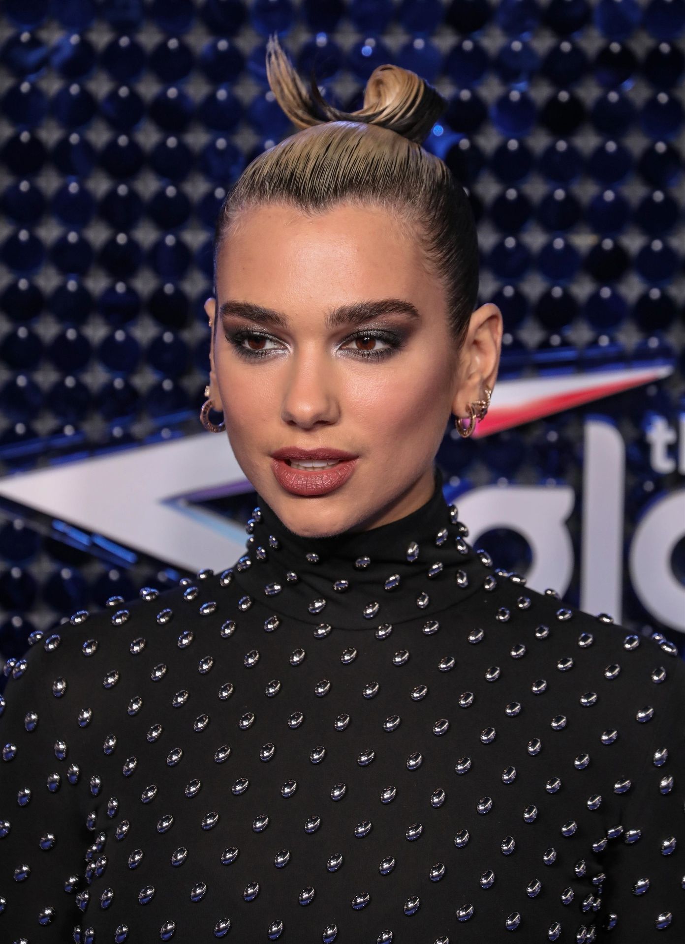 Dua Lipa (24) was photographed while attending The Global Awards at the Eventim Hammersmith Apollo in London, 03/05/2020. The singer showed her sexy figure and legs, wearing a sexy high slit dress and black pantyhose.