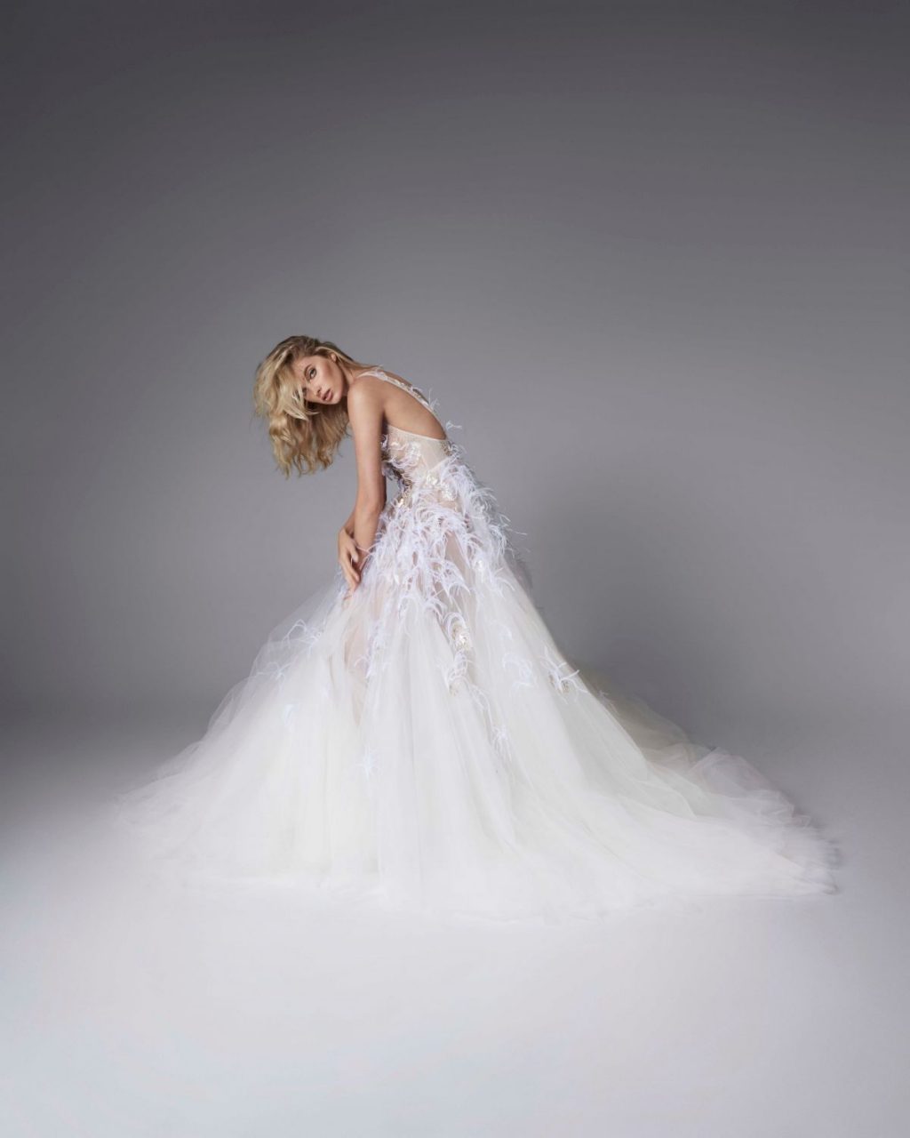 Model Elsa Hosk presents a new Enchant in Nicole + Felicia Couture Campaign, posing in expensive dresses and showing her stunning figure (2019).