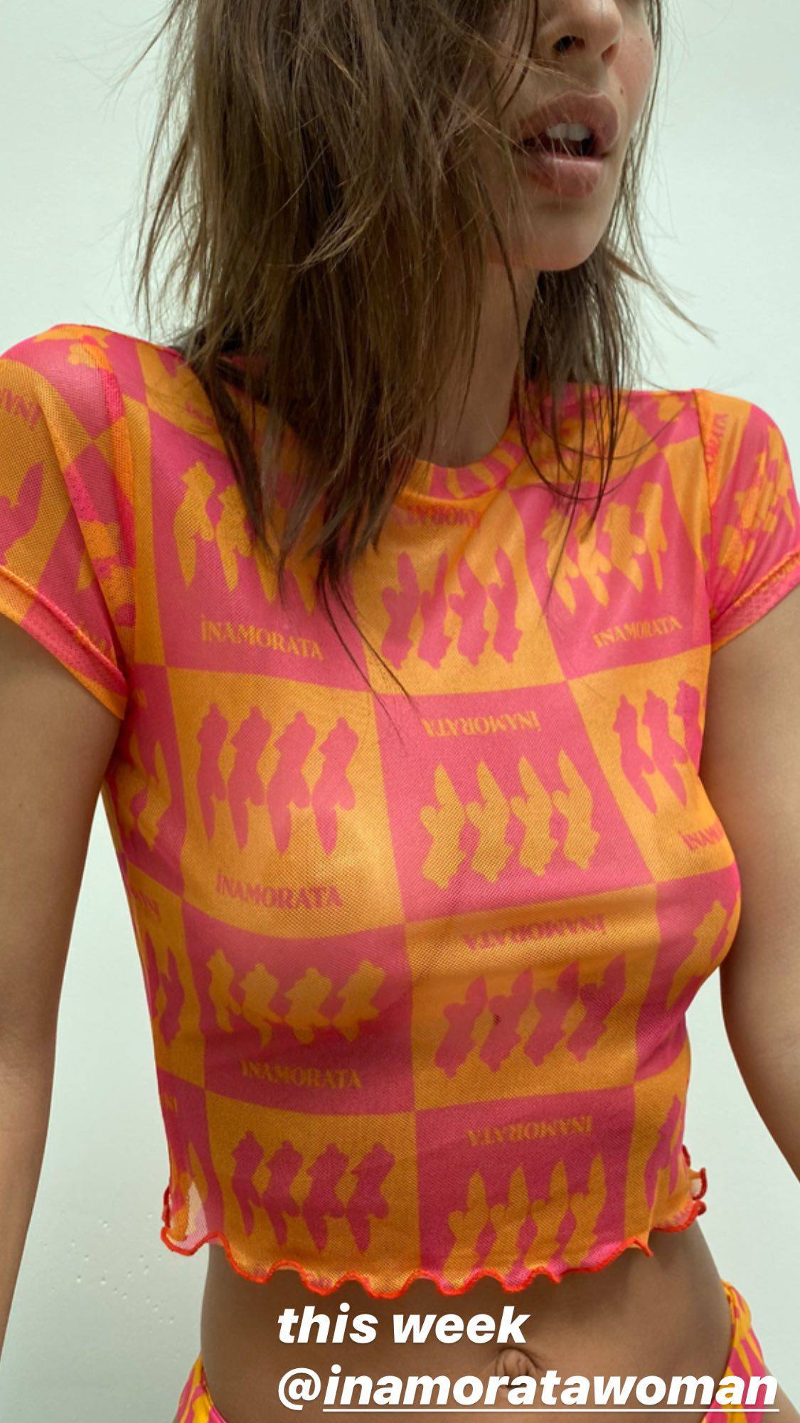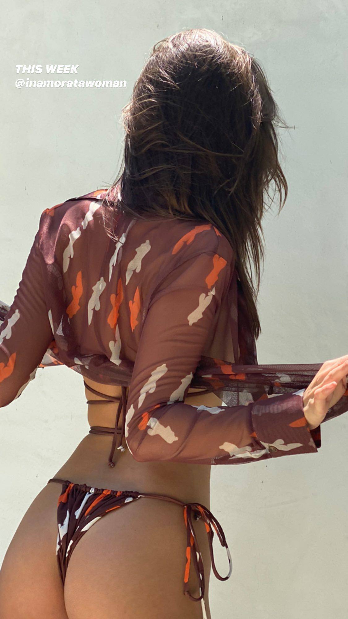 Emily Ratajkowski flaunts her perfect boobs and ass wearing sheer top and thong bikini for Inamorata photoshoot.