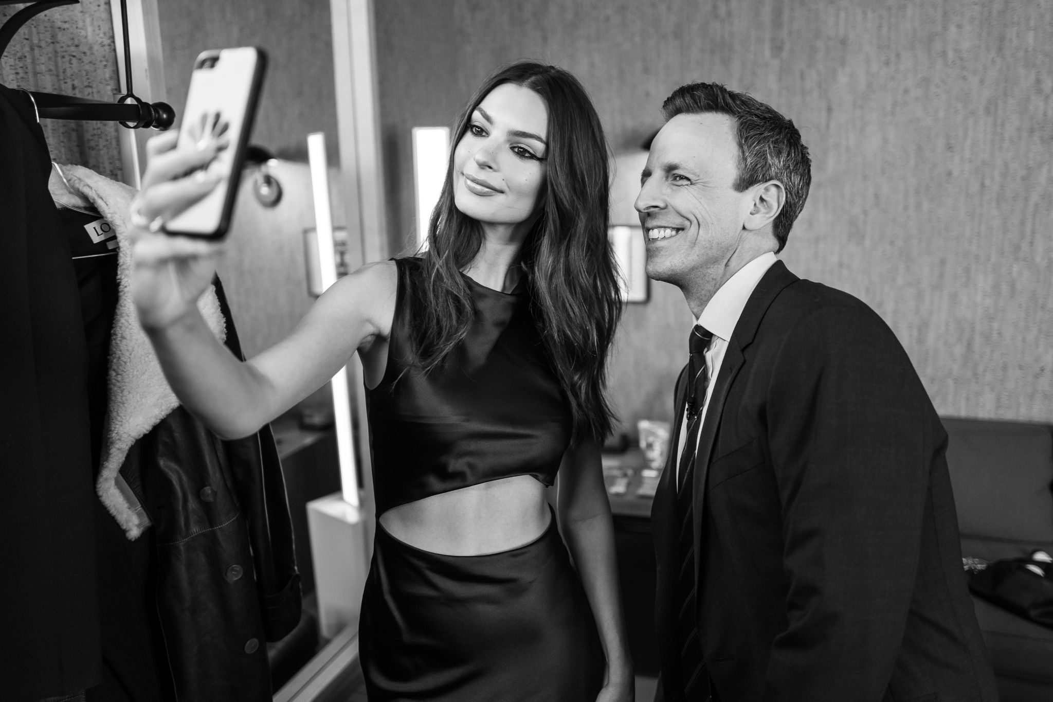 Model babe Emily Ratajkowski is out in NYC stopping traffic in a sexy satin dress, while attending to NBC Studios for the ‘Late Night with Seth Meyers’ on March 10, 2020.
