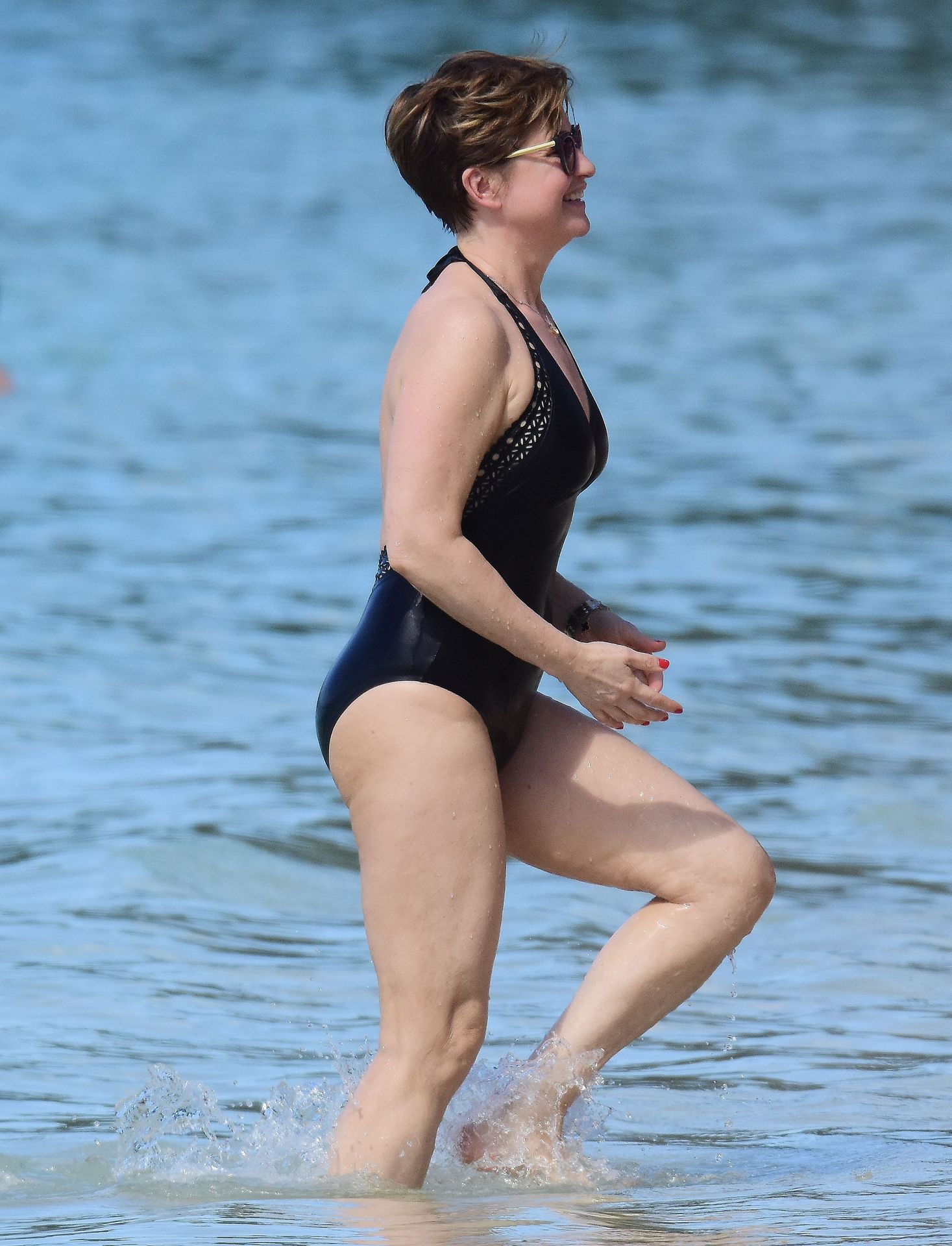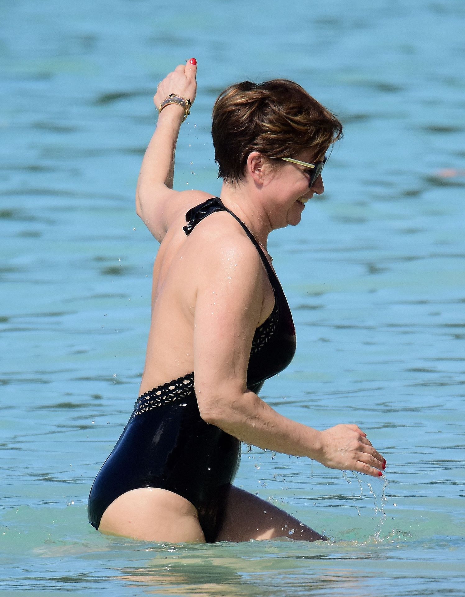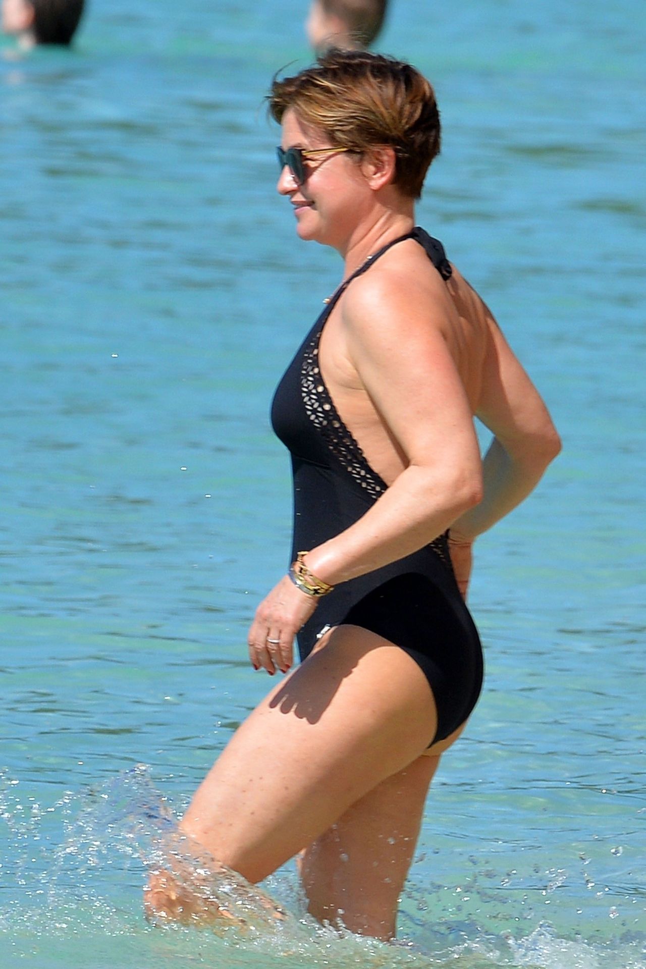Emma Forbes enjoys her vacation on the beach in Barbados, 12/20/2018. The 53-year-old English radio and TV presenter showed off her hot body wearing a classic black swimsuit.
