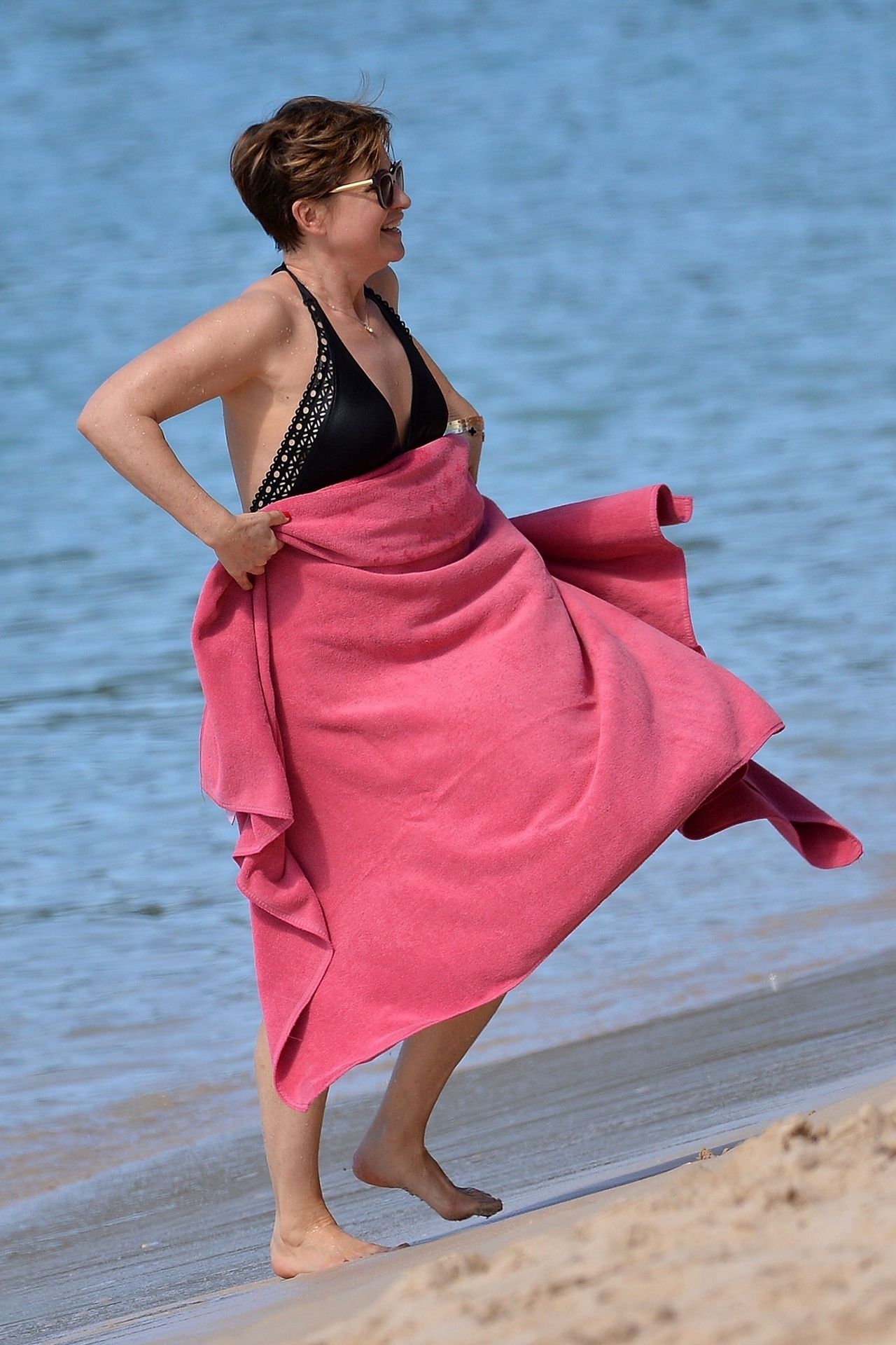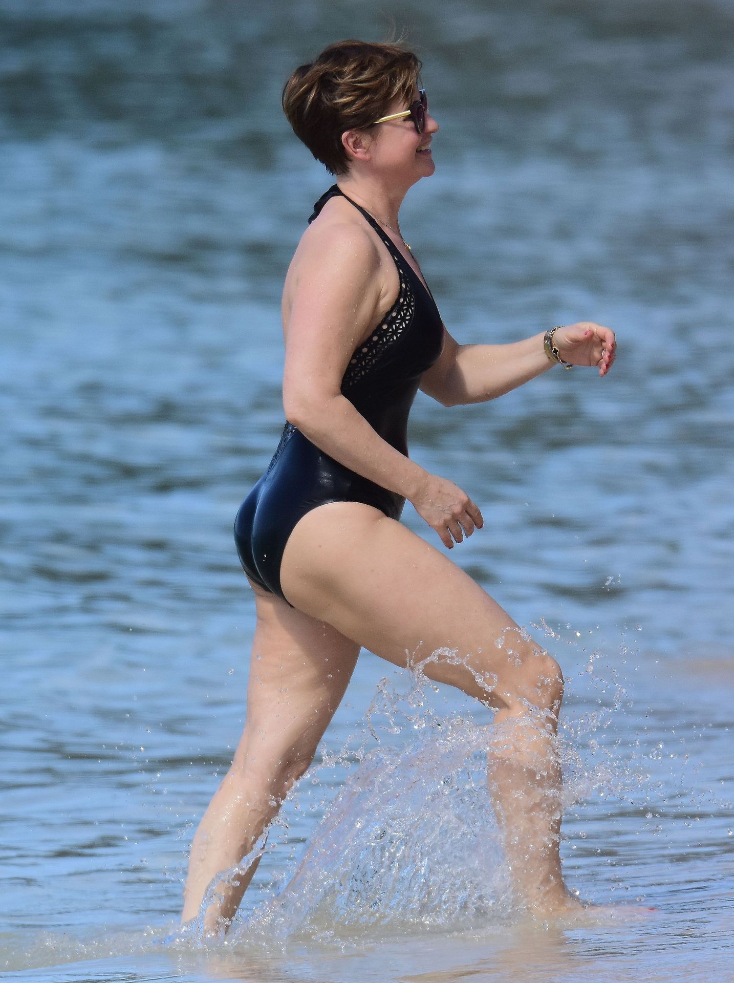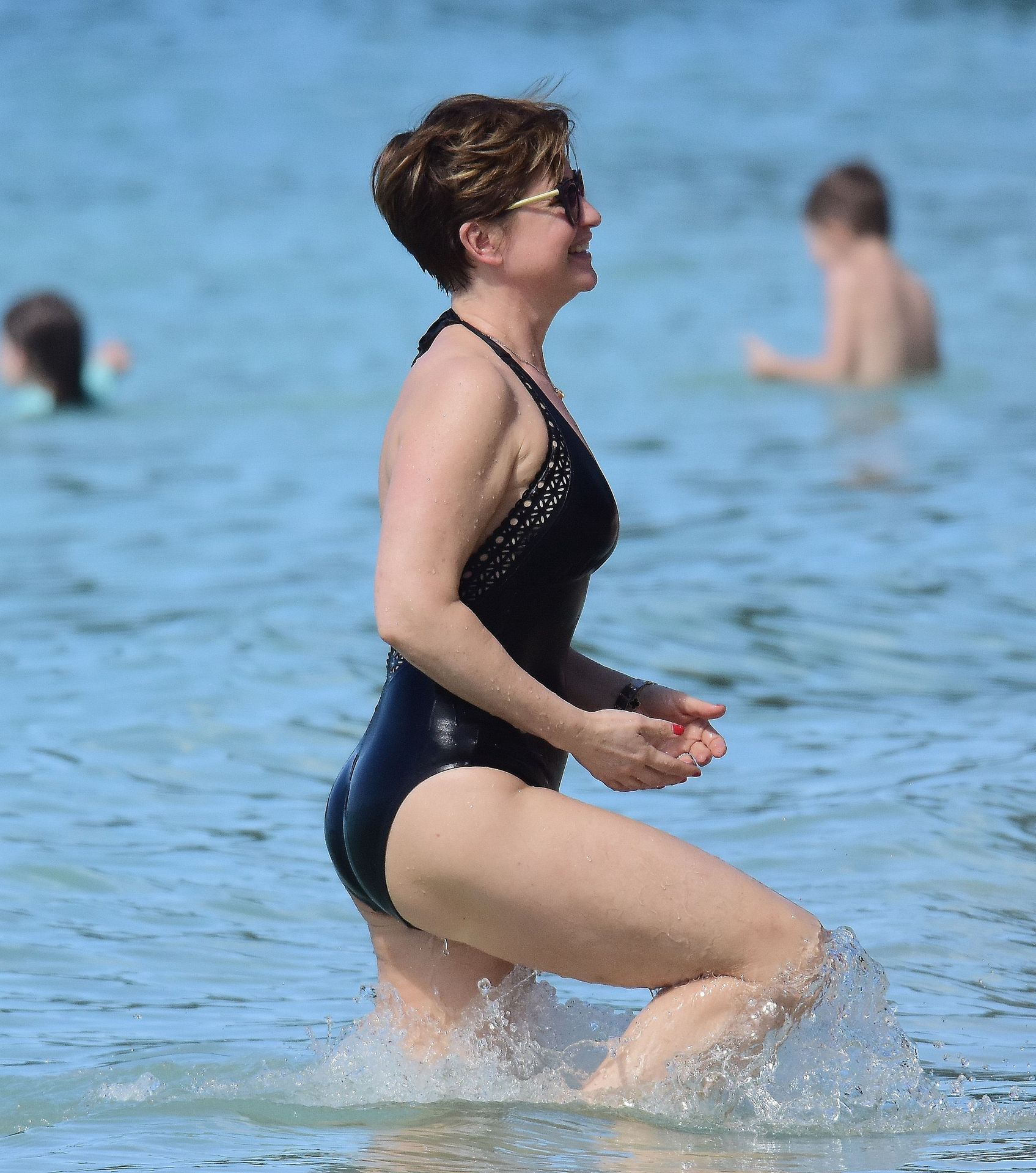 Emma Forbes enjoys her vacation on the beach in Barbados, 12/20/2018. The 53-year-old English radio and TV presenter showed off her hot body wearing a classic black swimsuit.