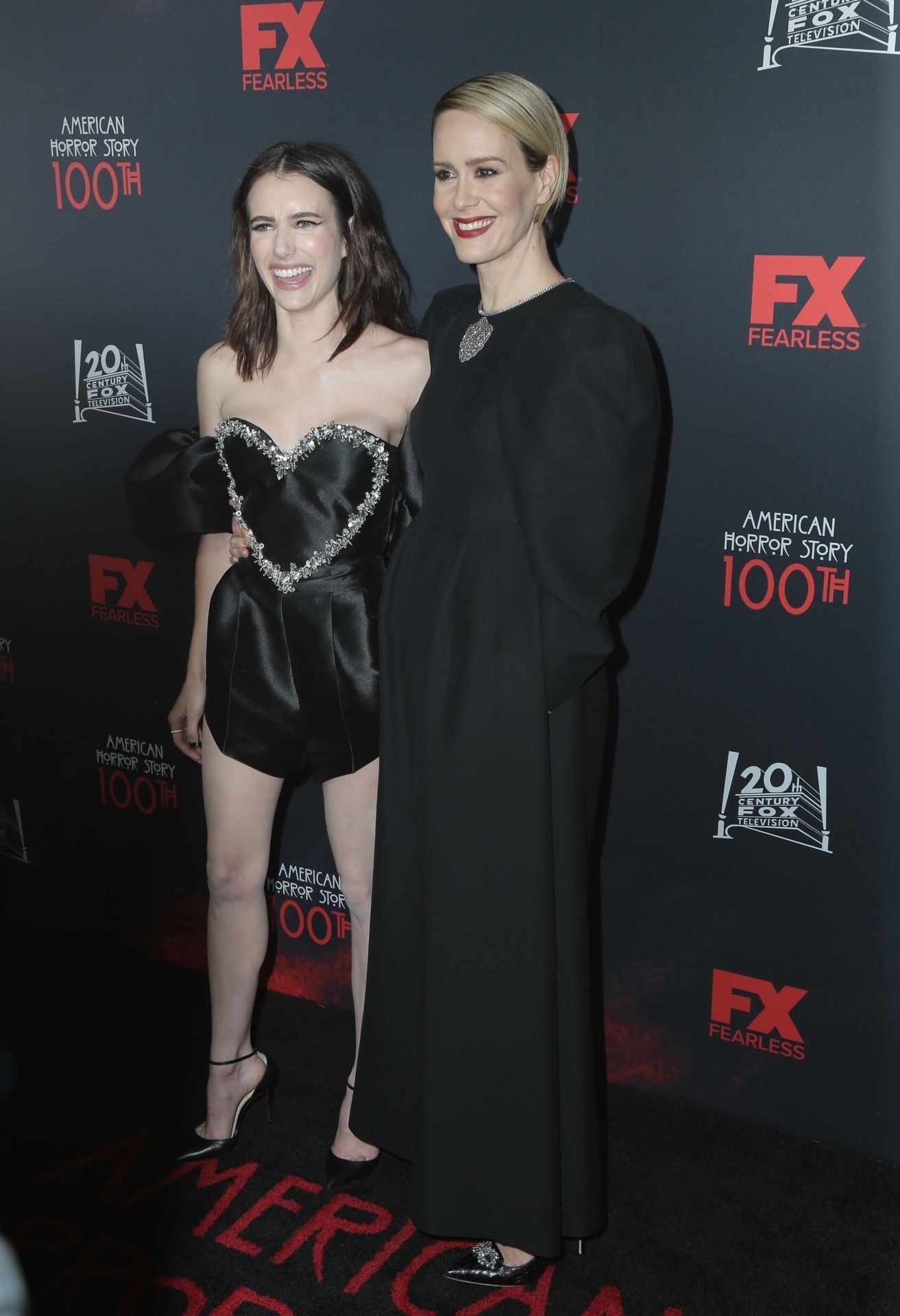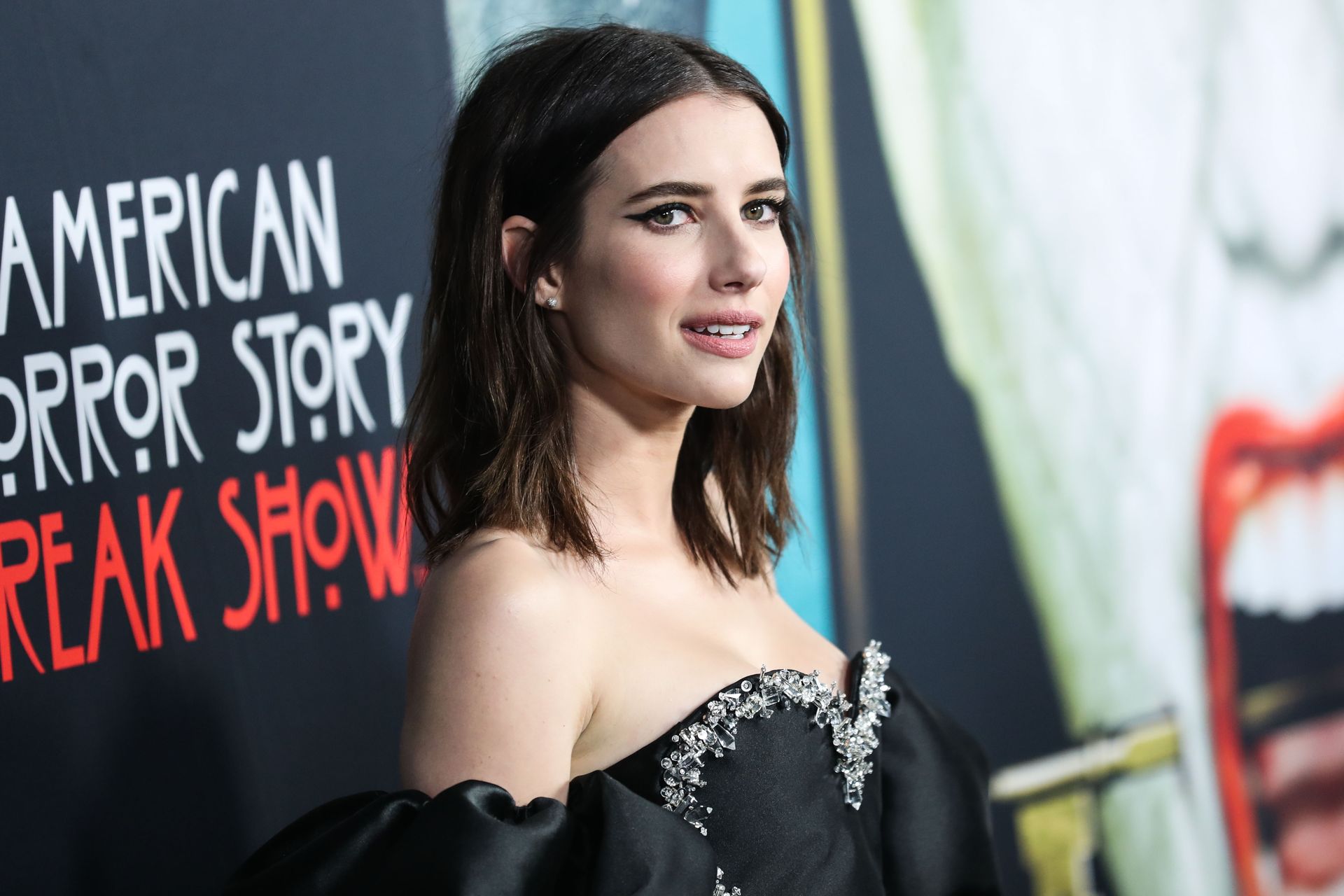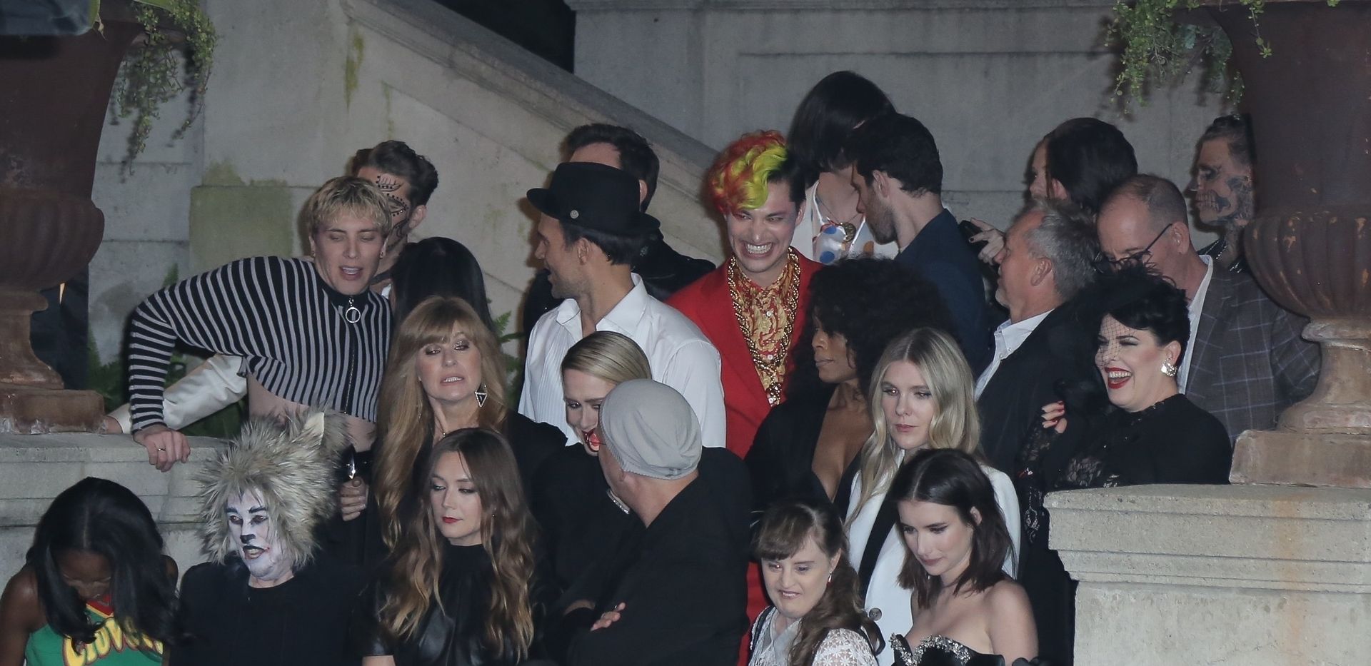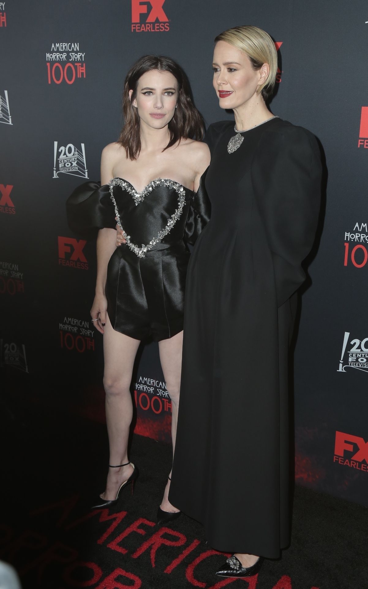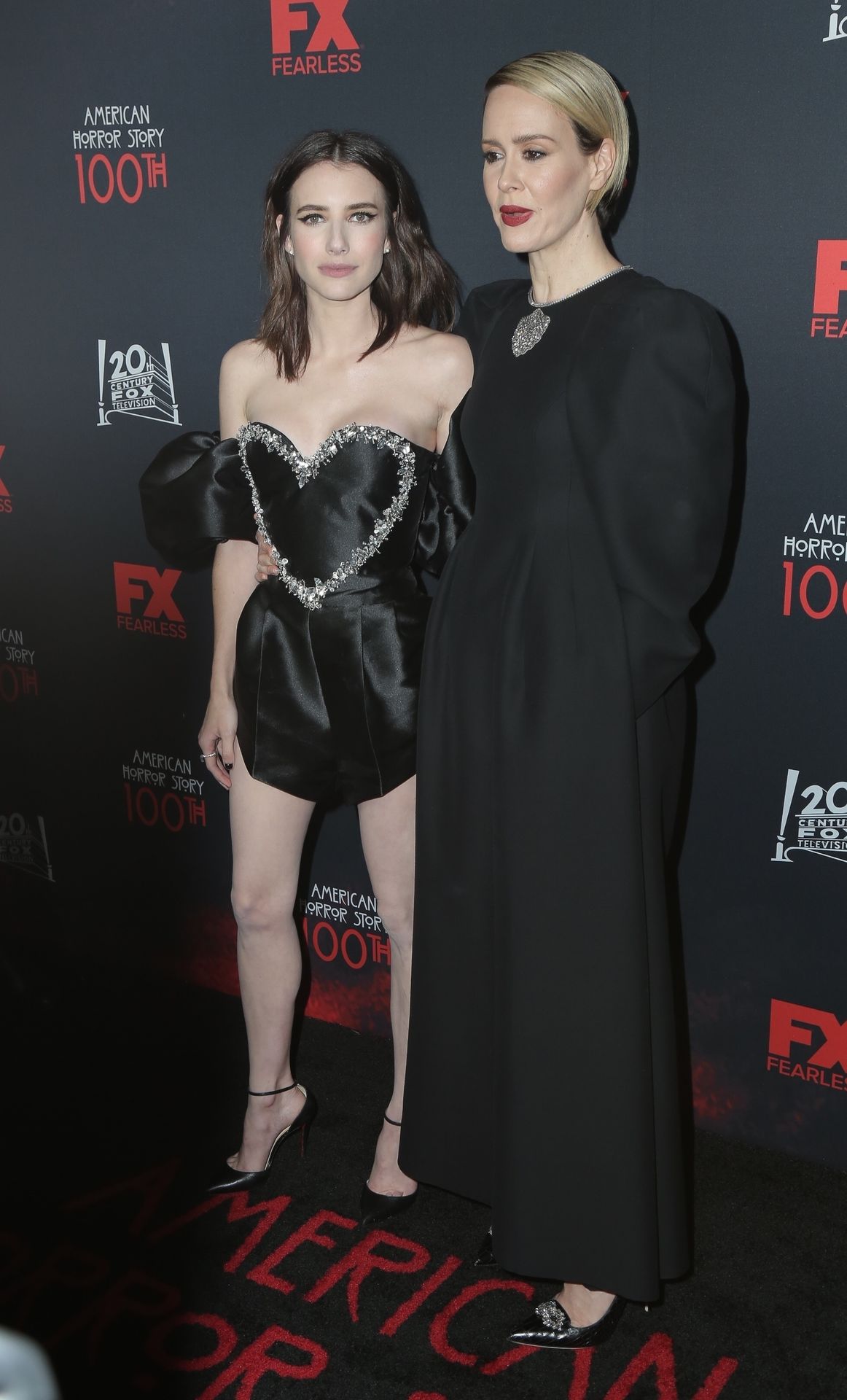 Leggy actress Emma Roberts and other celebrities arrive at FX’s “American Horror Story” 100th Episode Celebration at Hollywood Forever Cemetery on October 26, 2019 in Hollywood, California.