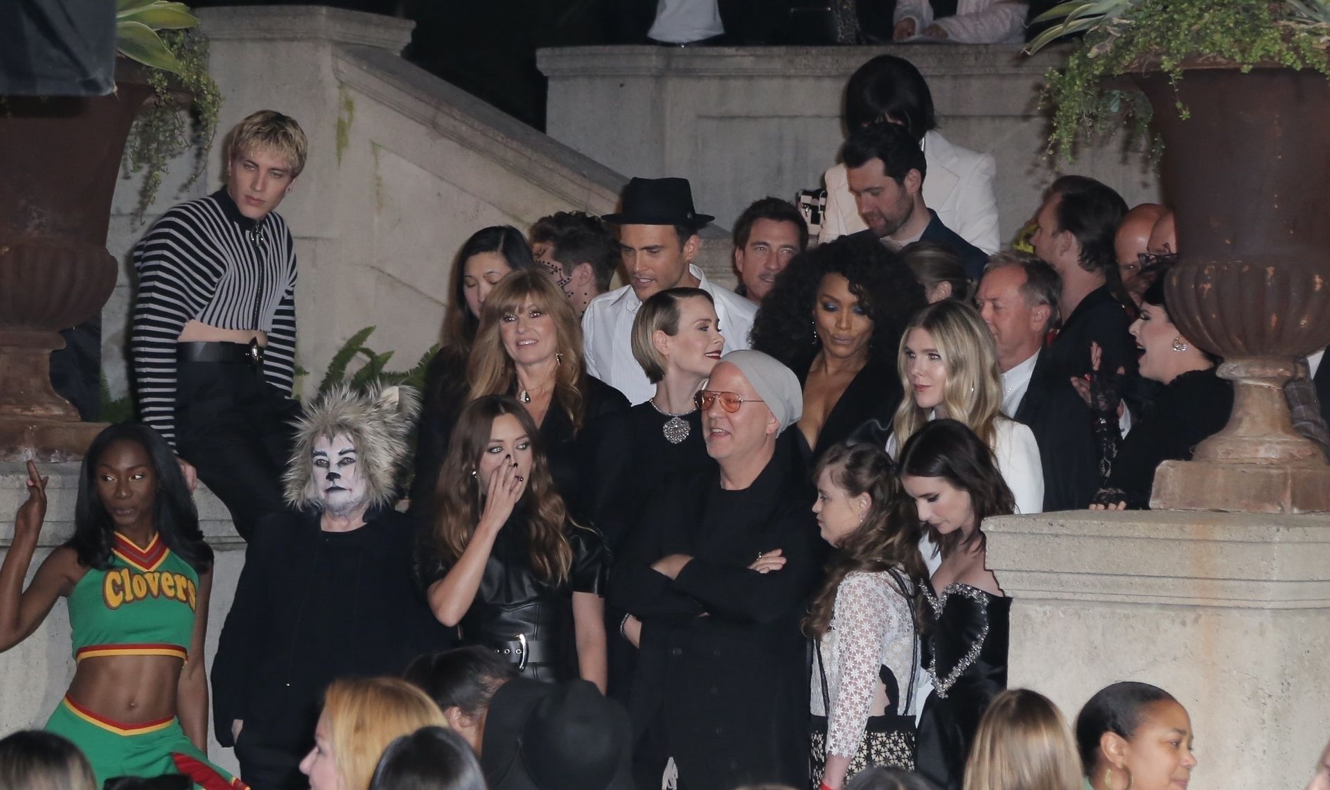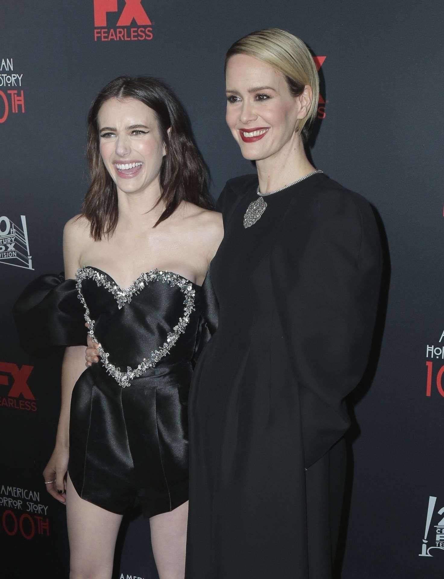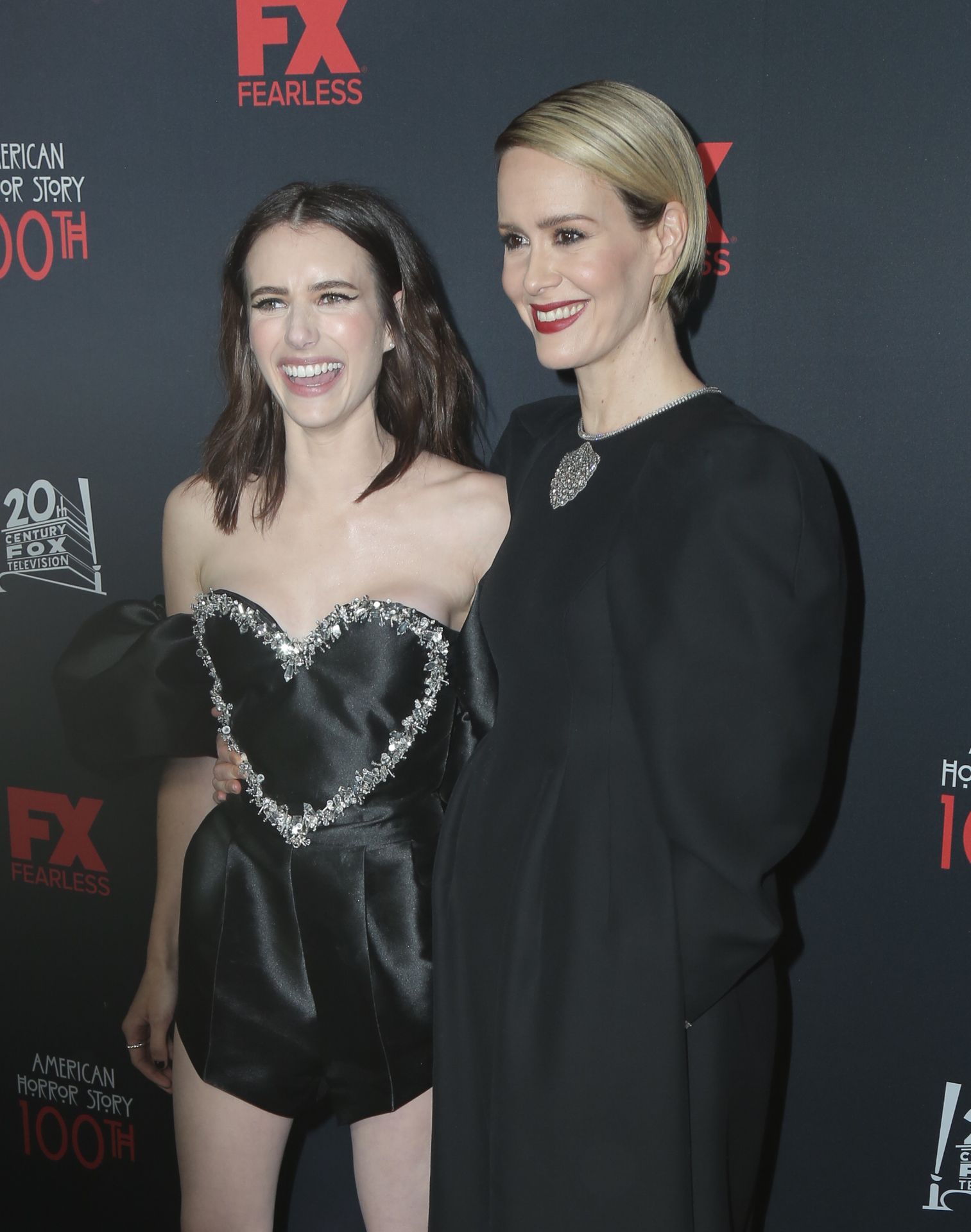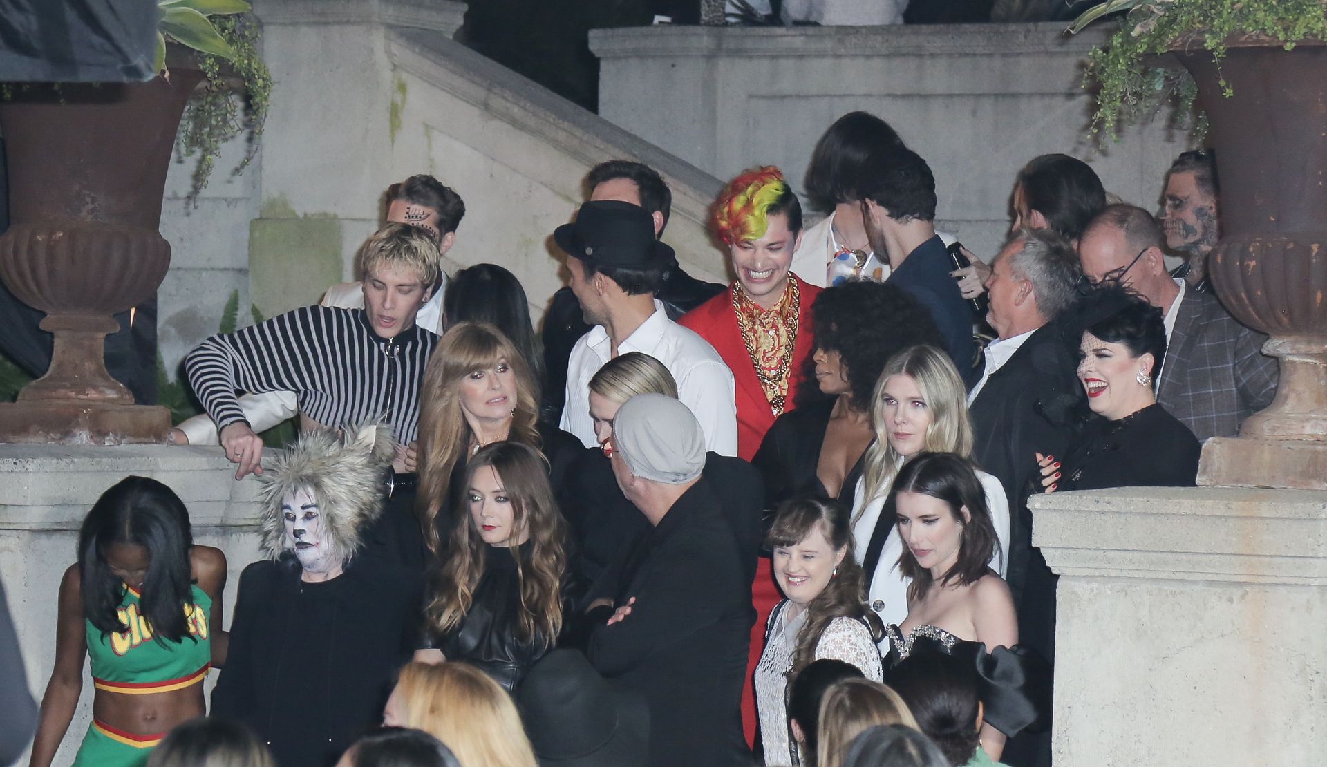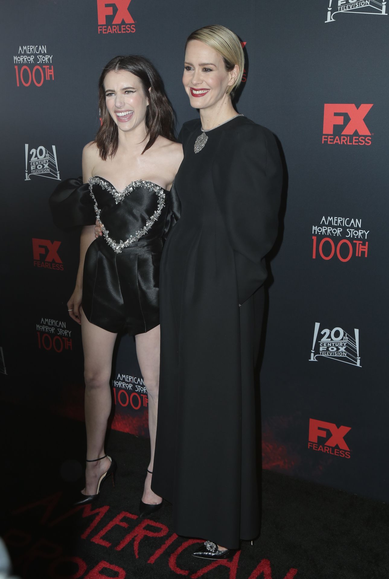 Leggy actress Emma Roberts and other celebrities arrive at FX’s “American Horror Story” 100th Episode Celebration at Hollywood Forever Cemetery on October 26, 2019 in Hollywood, California.
