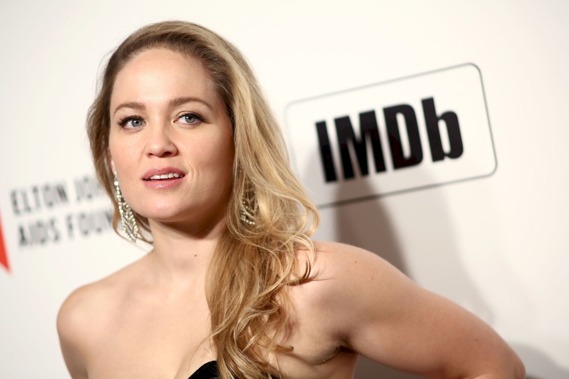 Busty American actress Erika Christensen (37) attends the Elton John 28th Annual Academy Awards Viewing Party at West Hollywood Park, 02/09/2020. The celebrity chose for the event a tight black off-shoulder dress, highlighting her breasts.