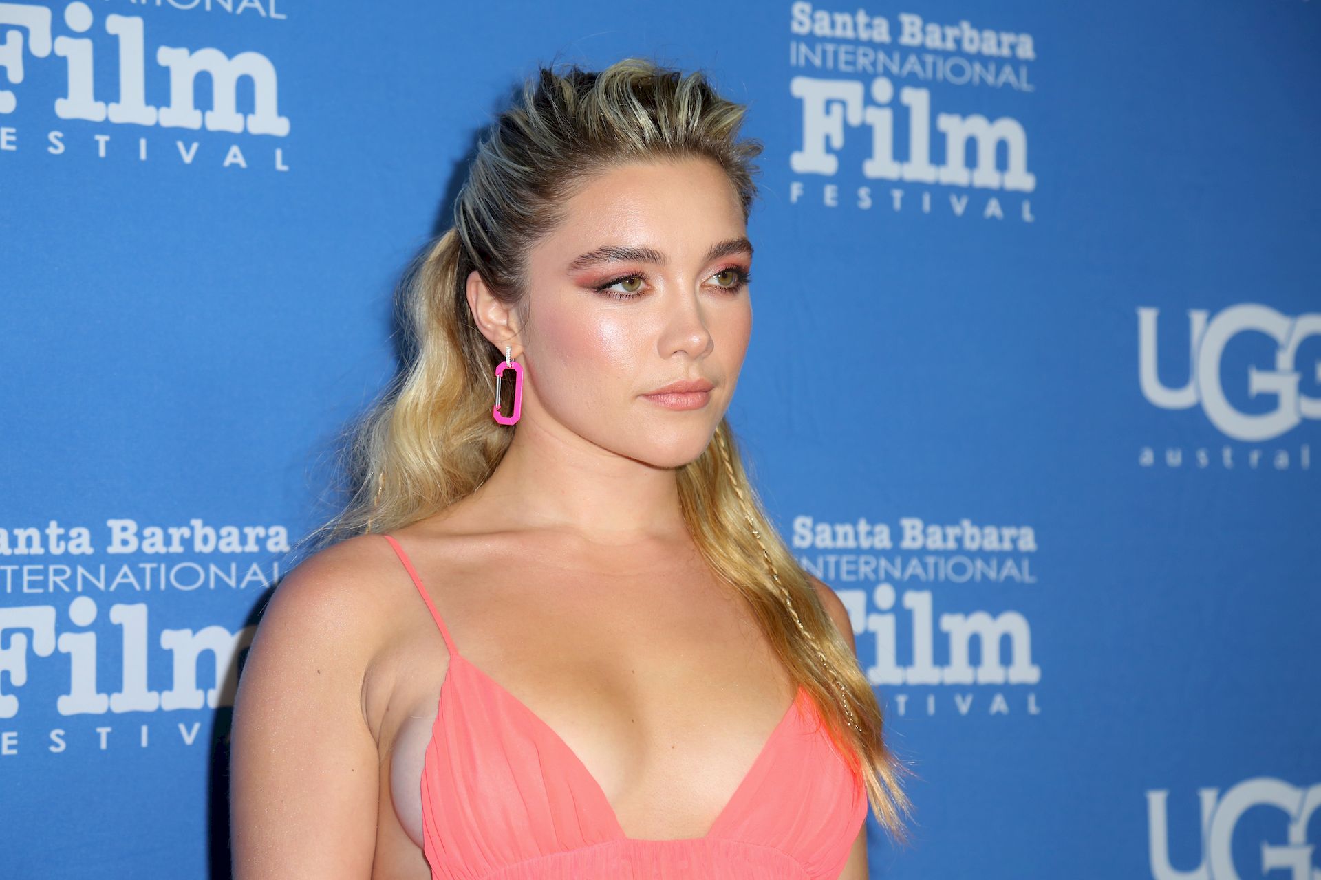 Braless “Outlaw King” actress Florence Pugh arrives at the The Virtuosos Award at the 35th Annual Santa Barbara Film Festival at Arlington Theatre in Santa Barbara, 01/18/2020.