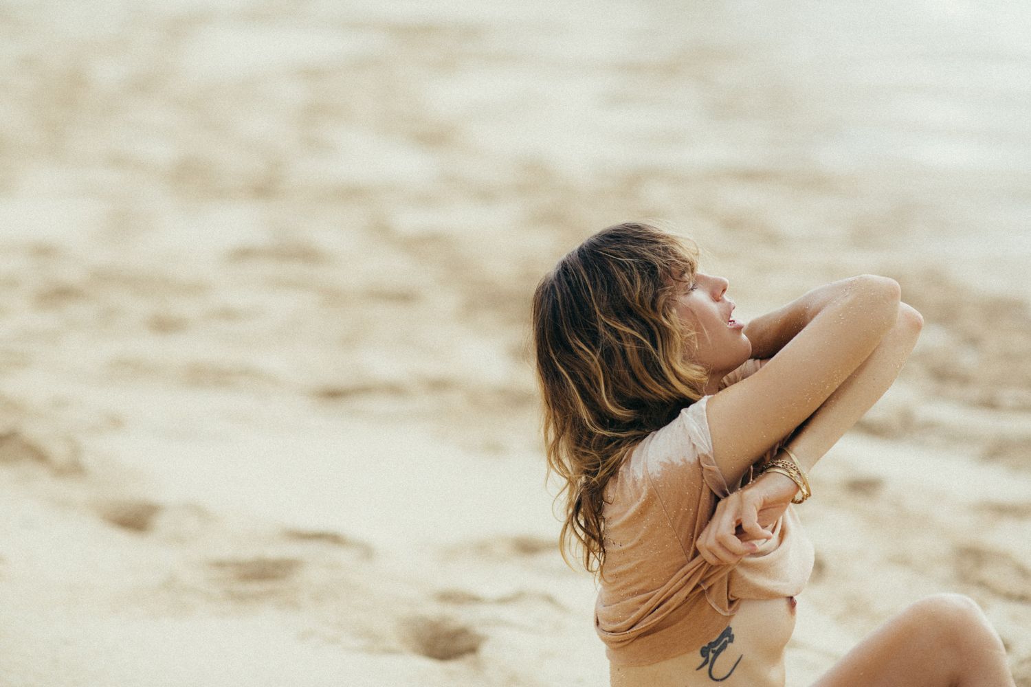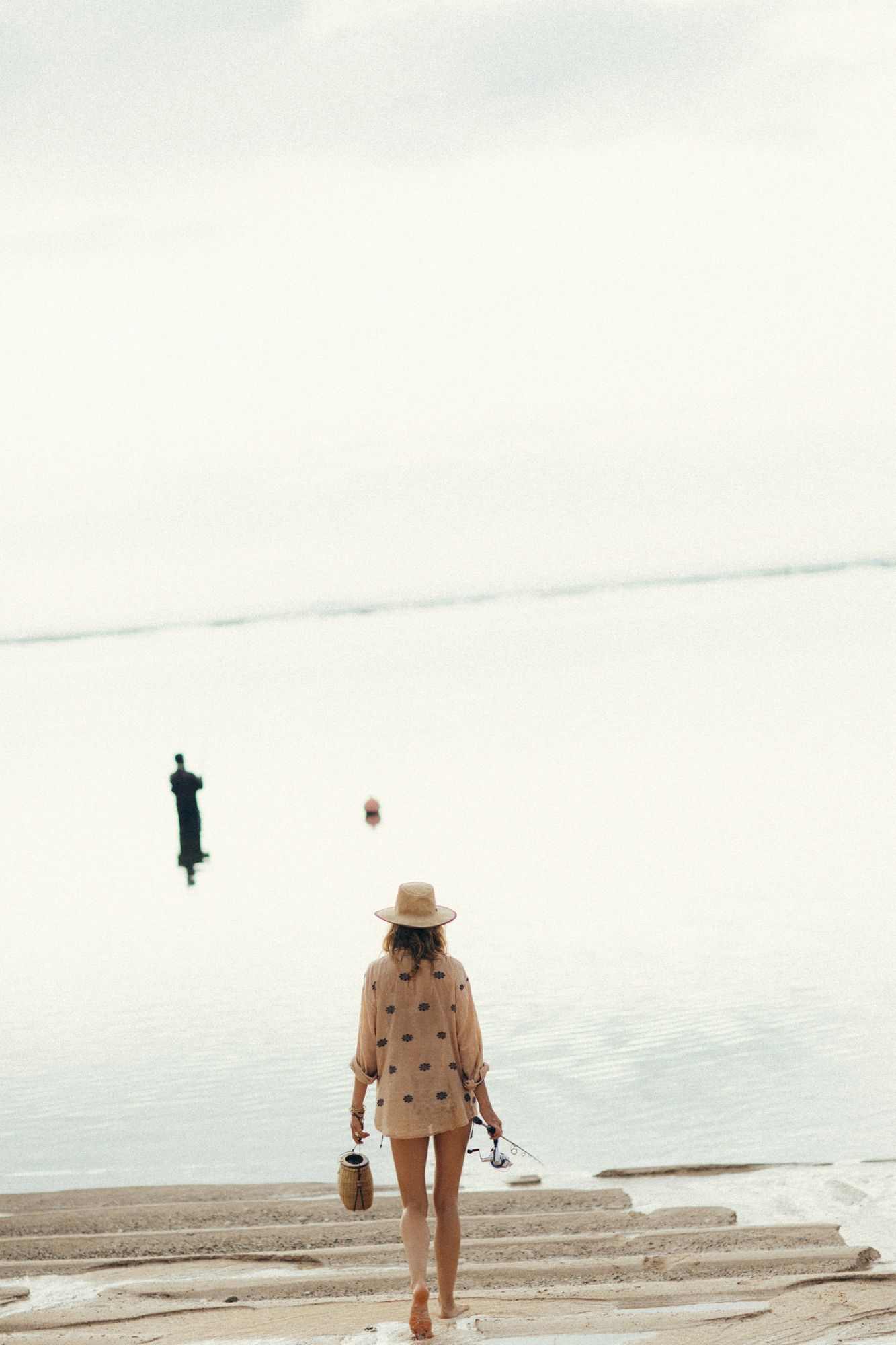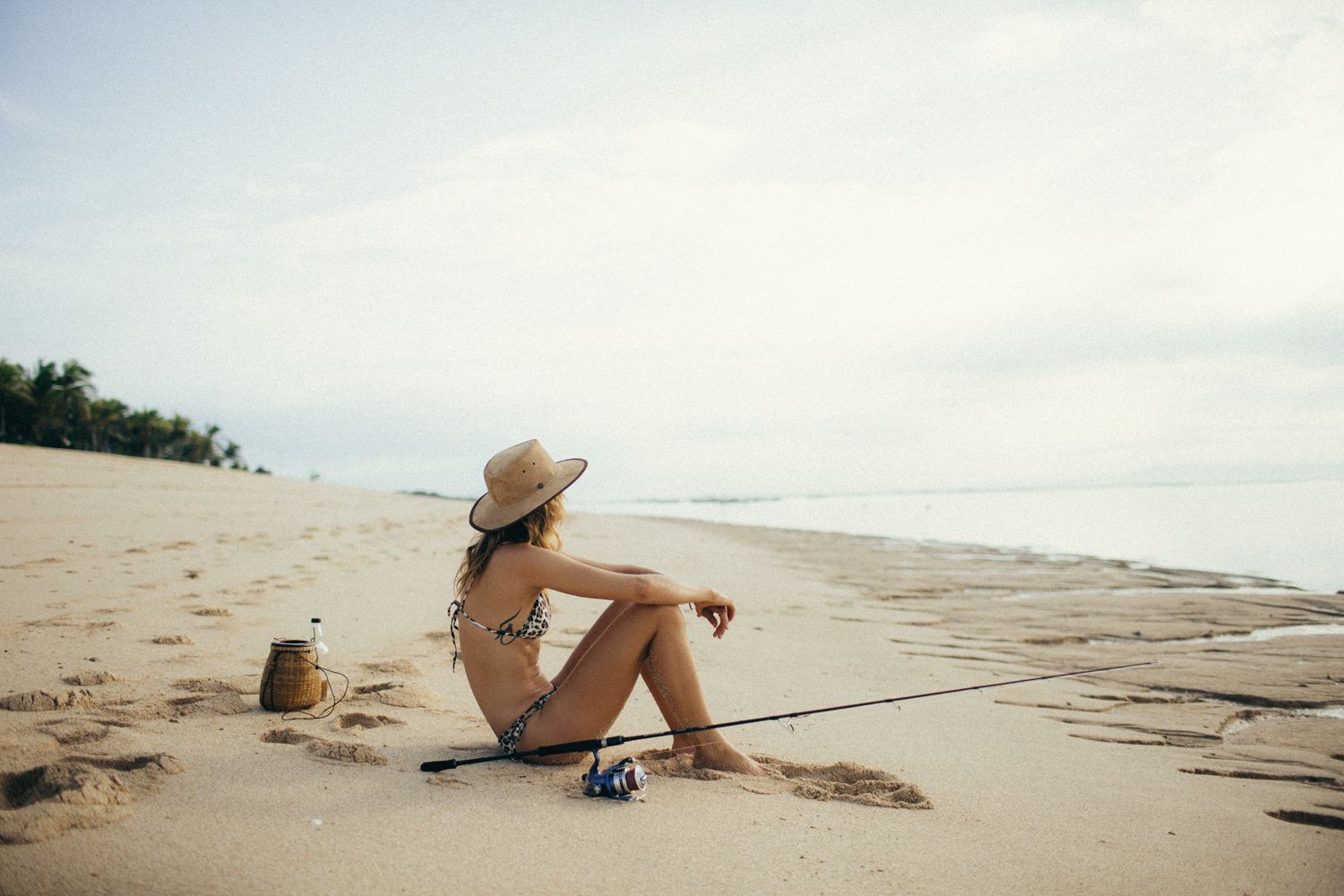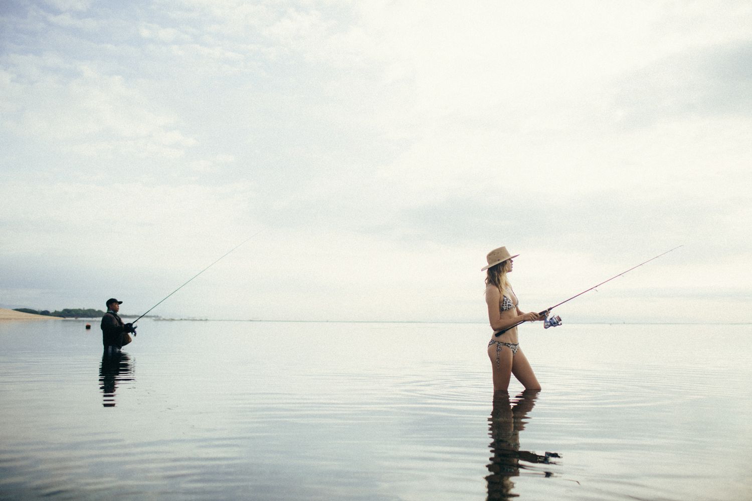 German model Franziska von Tschurtschenthaler (Cisco) poses topless and in a bikini while fishing in a photoshoot by Carly Brown (2019).