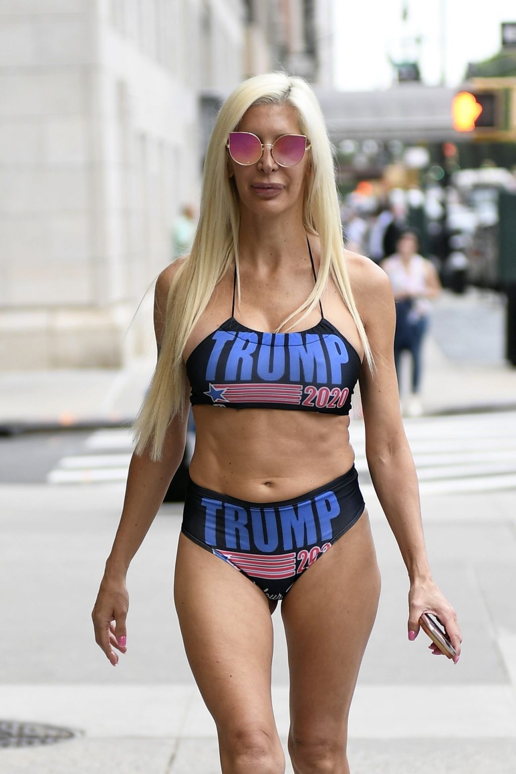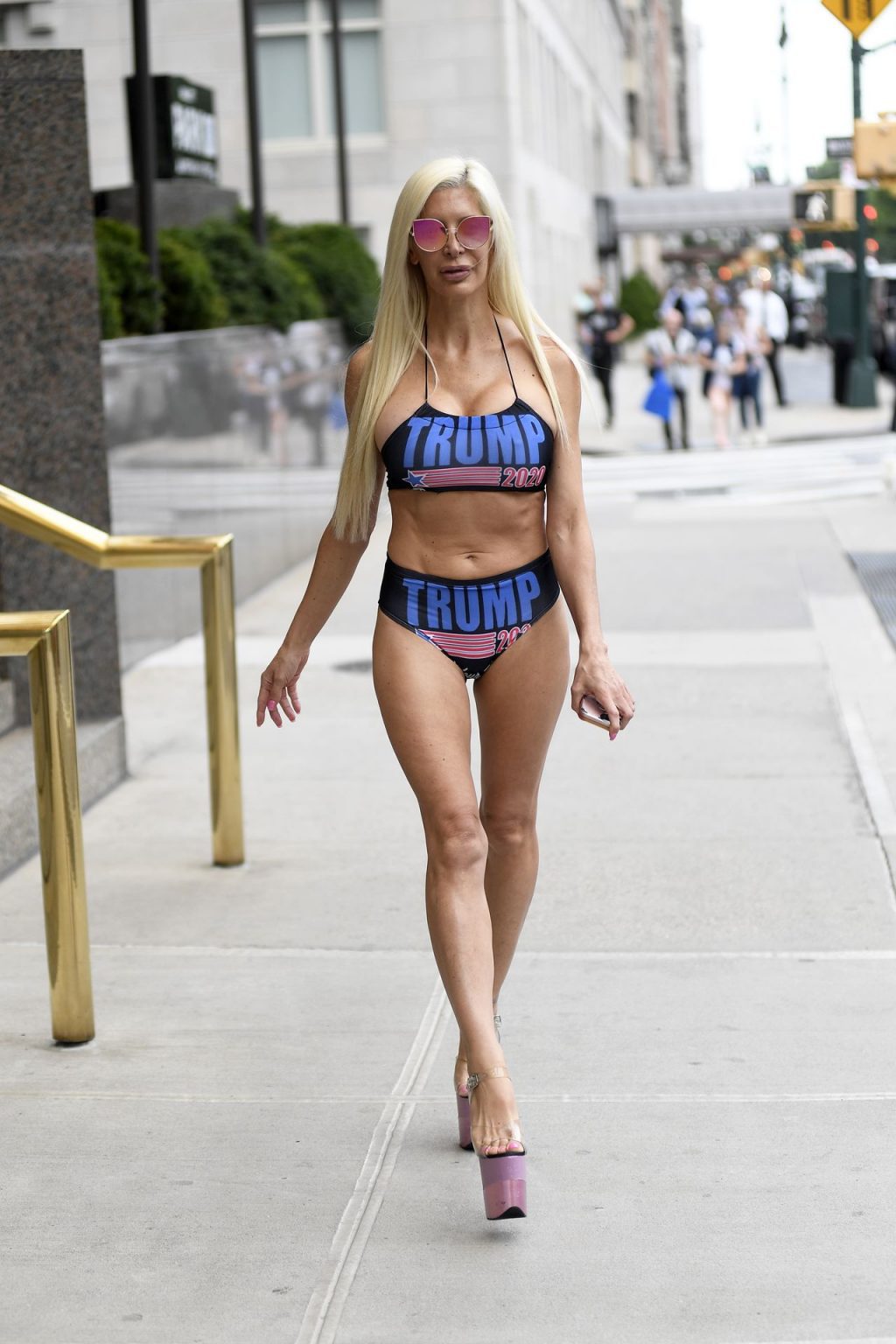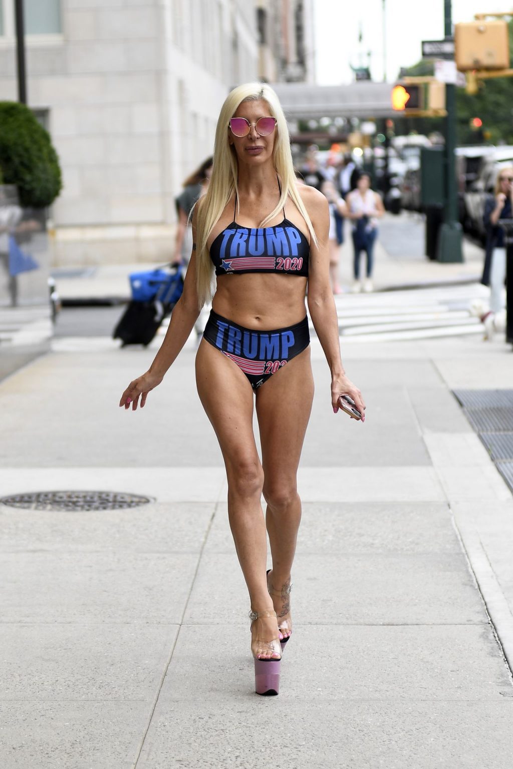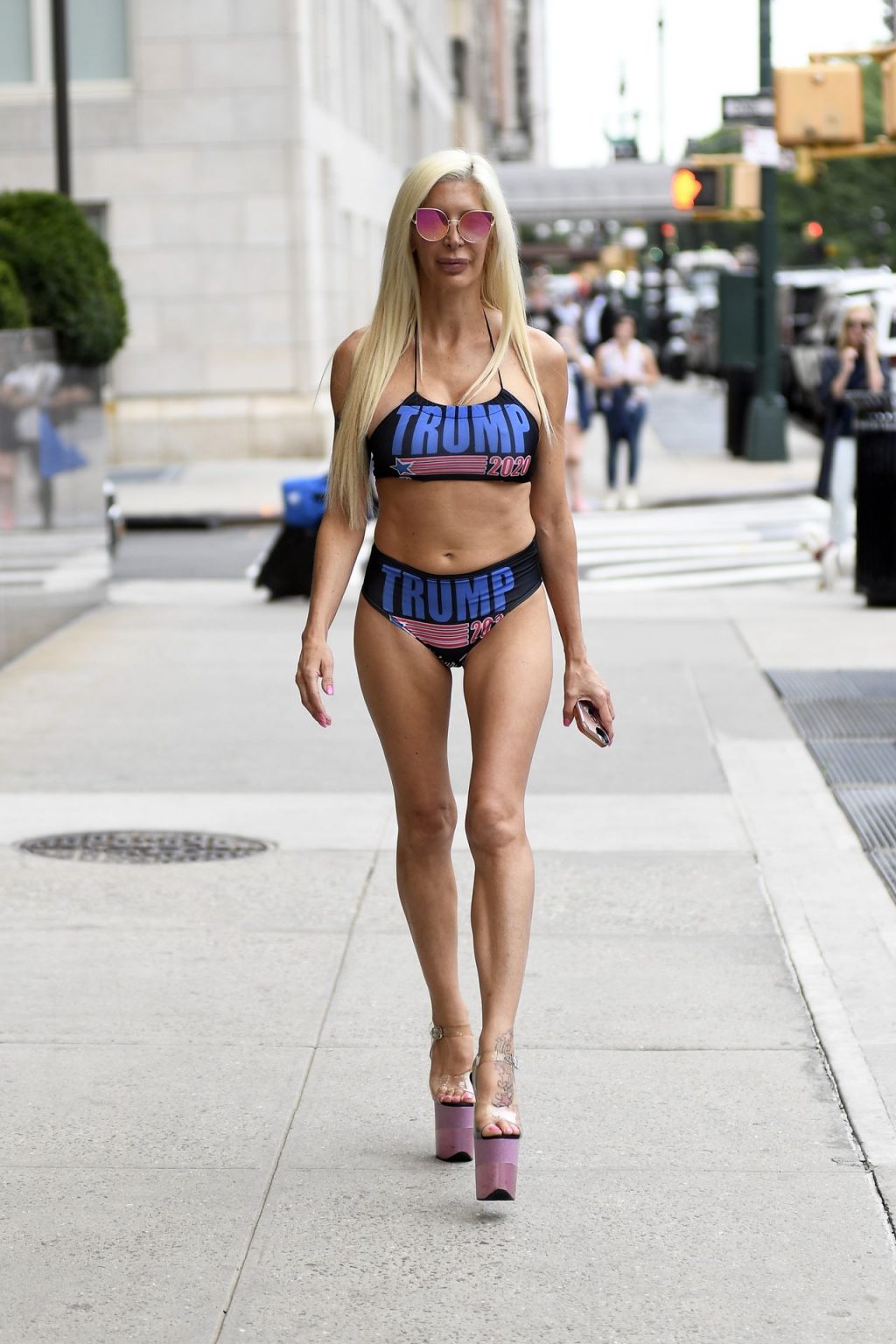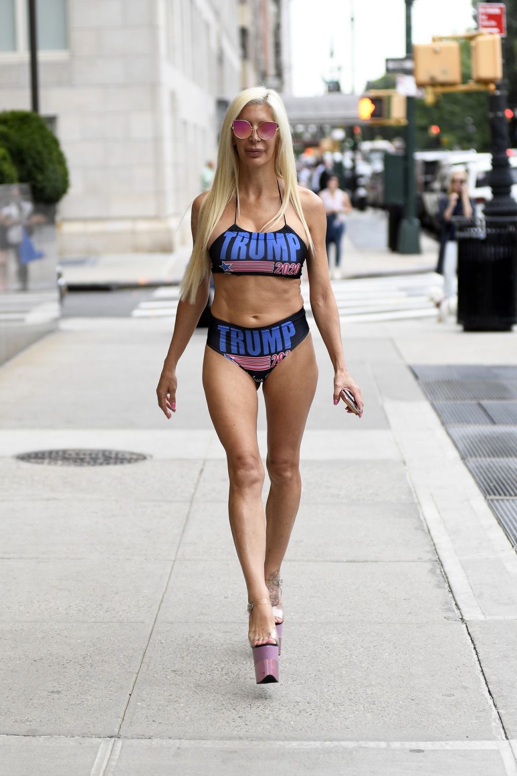 Reality super star Frenchy Morgan and her BFF Paris Hilton lookalike Tiffany arriving in New York City and visiting Trump International Hotel wearing Trump bikini, 09/05/2019.