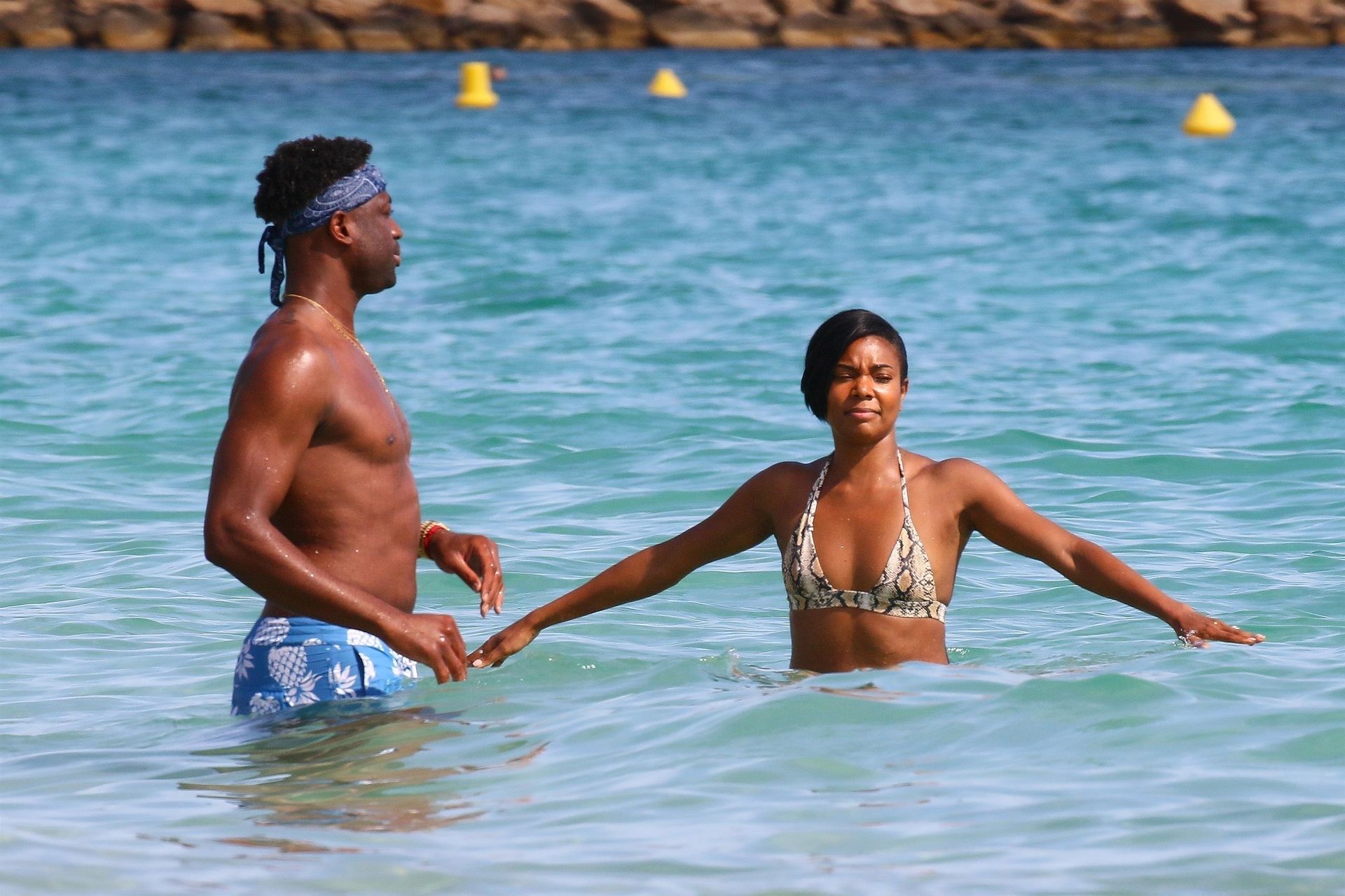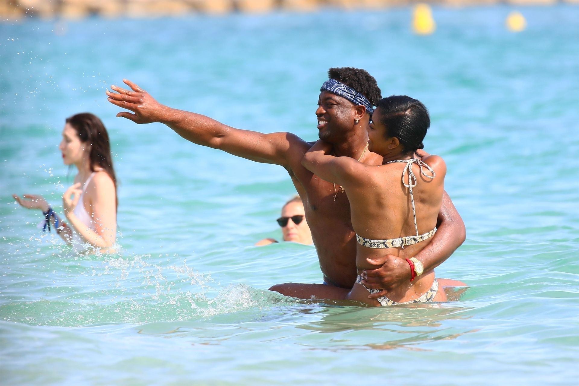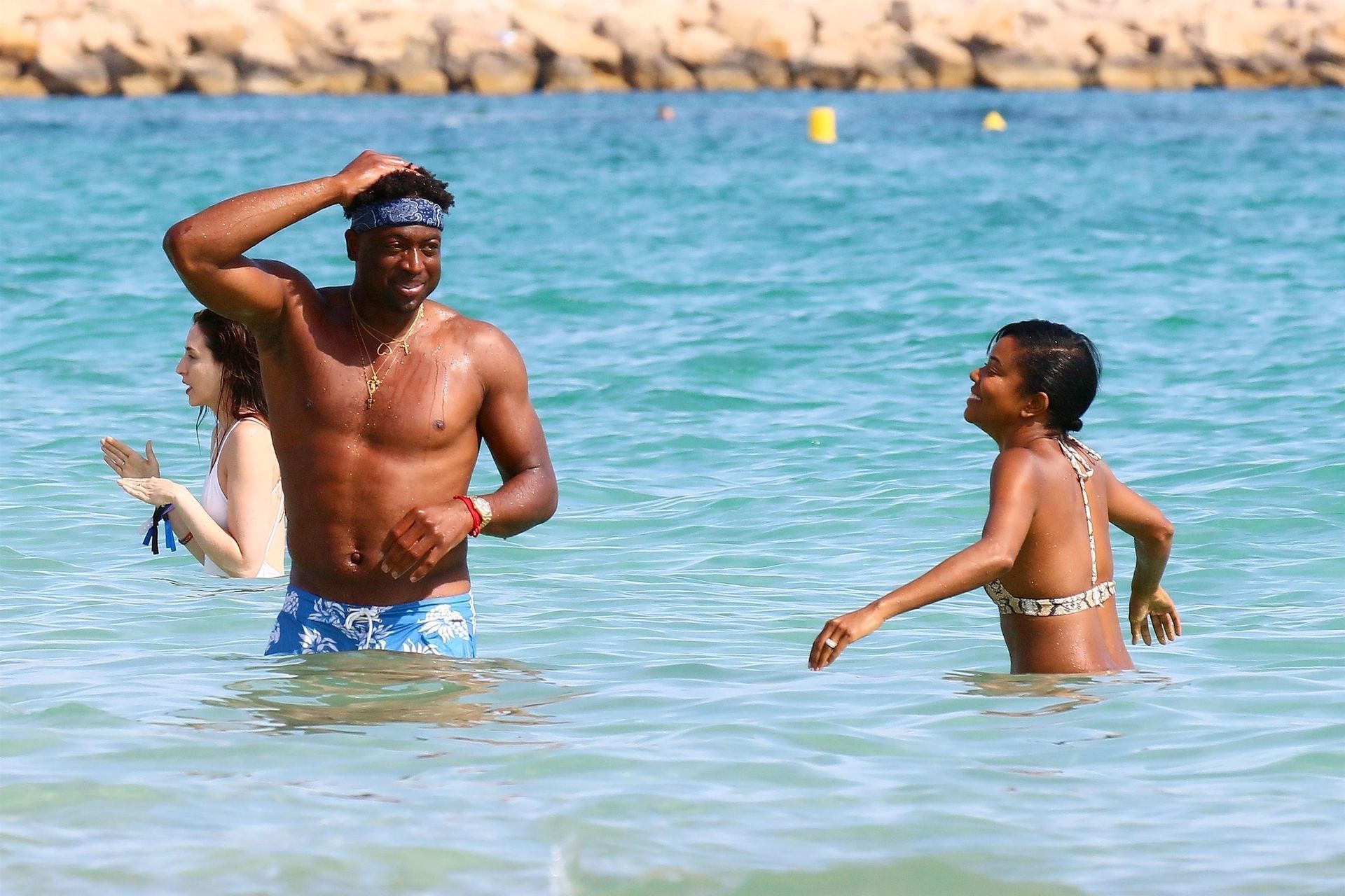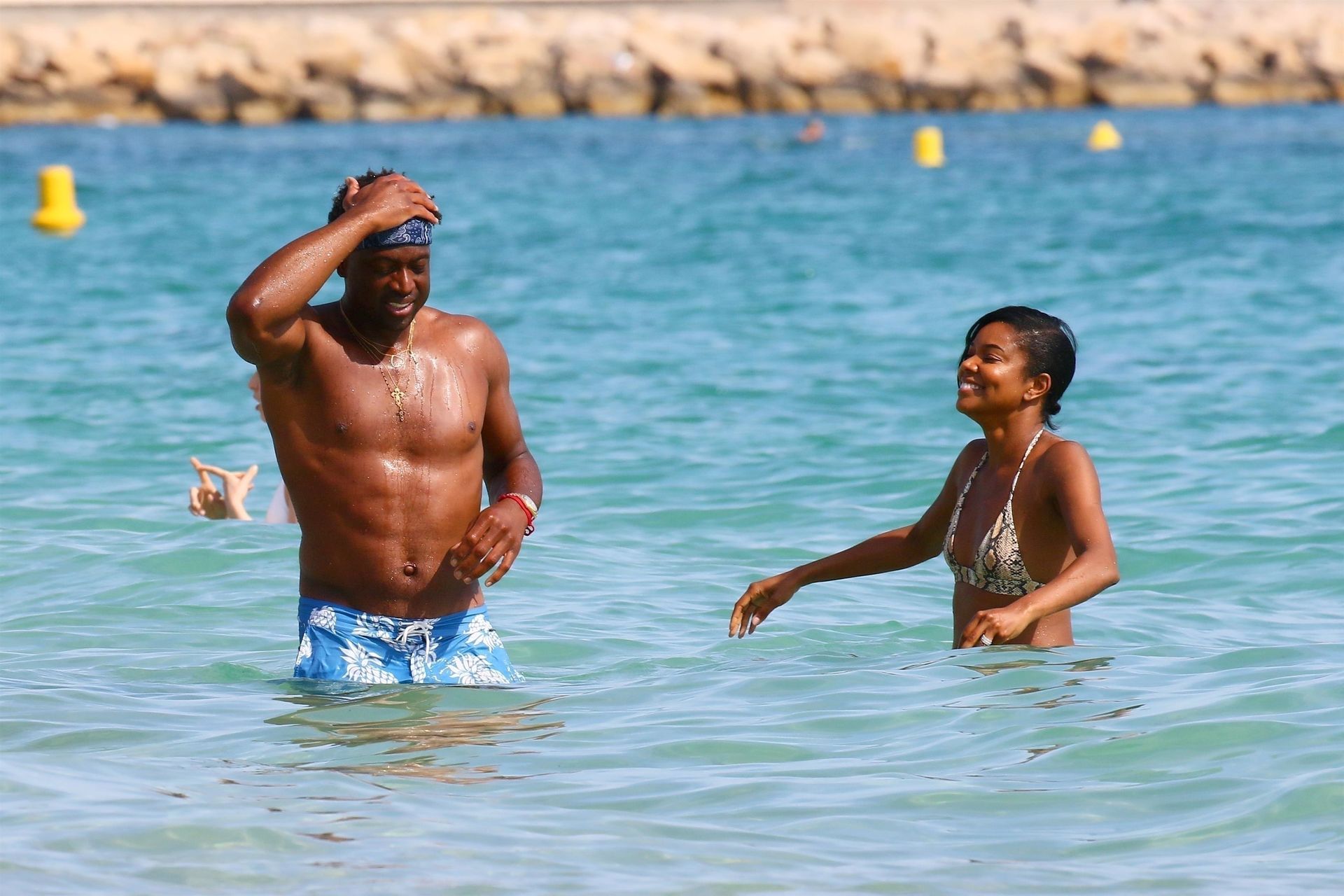 Newly retired NBA star, Dwayne Wade and actress wife Gabrielle Union make a splash while having fun in the water in Cannes, 06/21/2019. The couple was all smiles as they got up close and personal by hugging onto each other while enjoying the cool water.