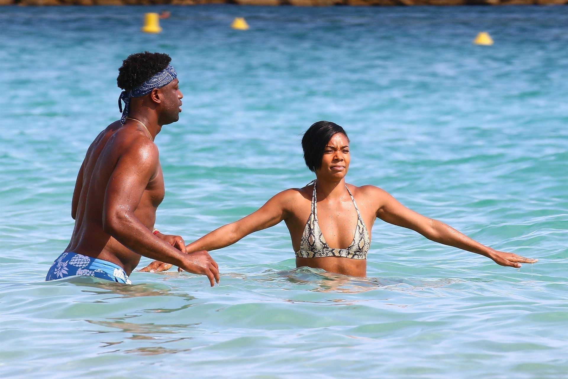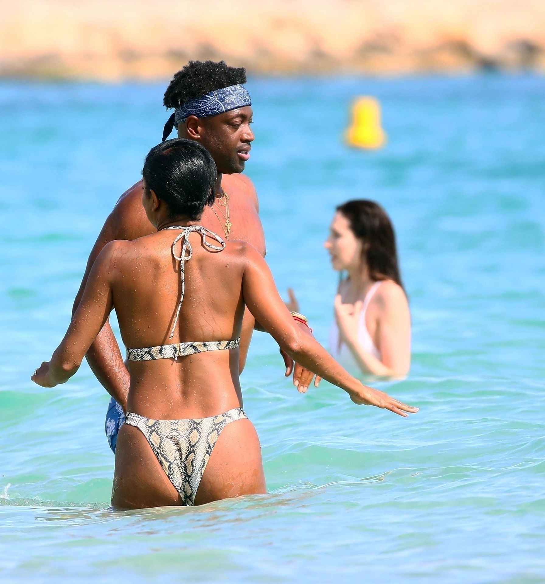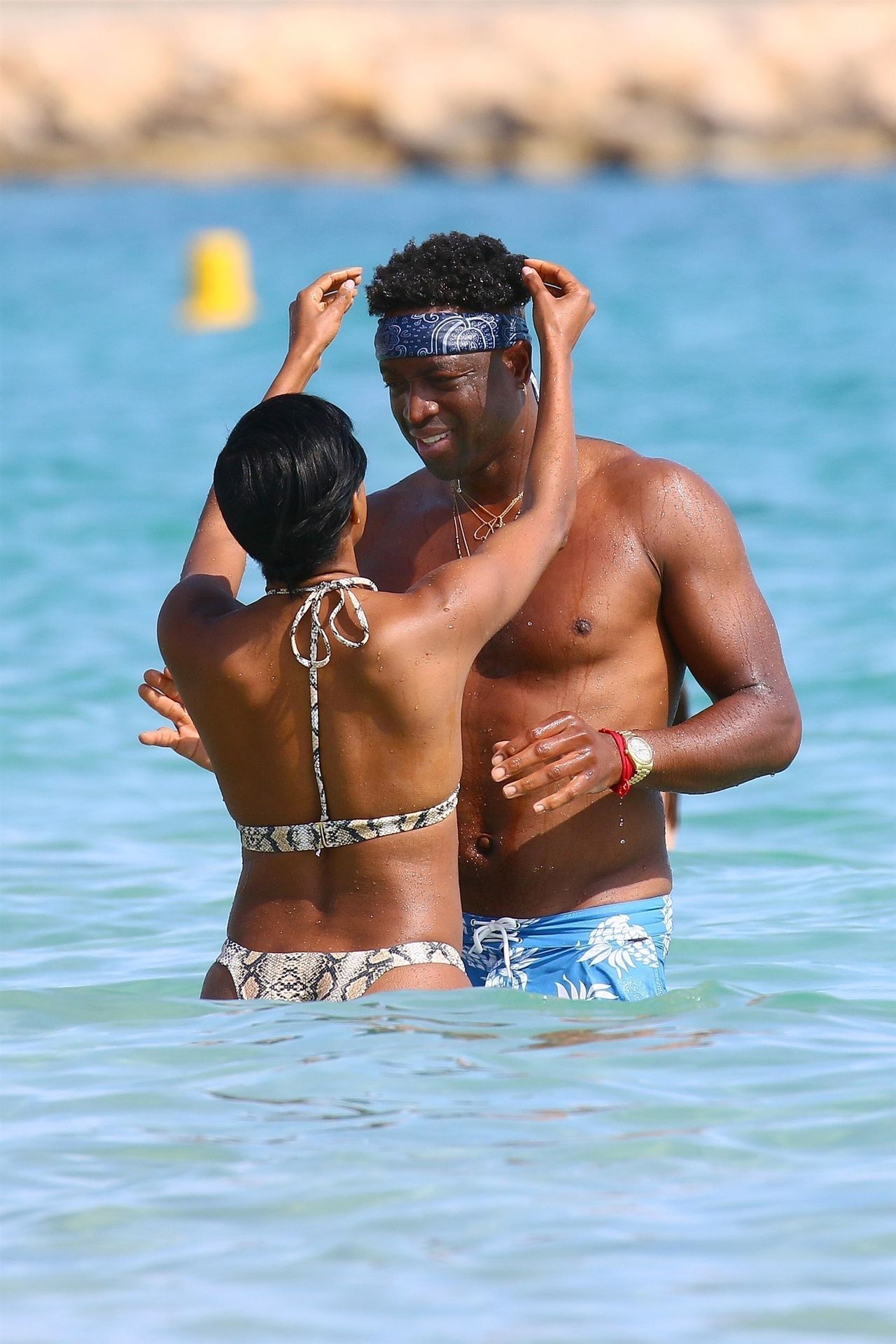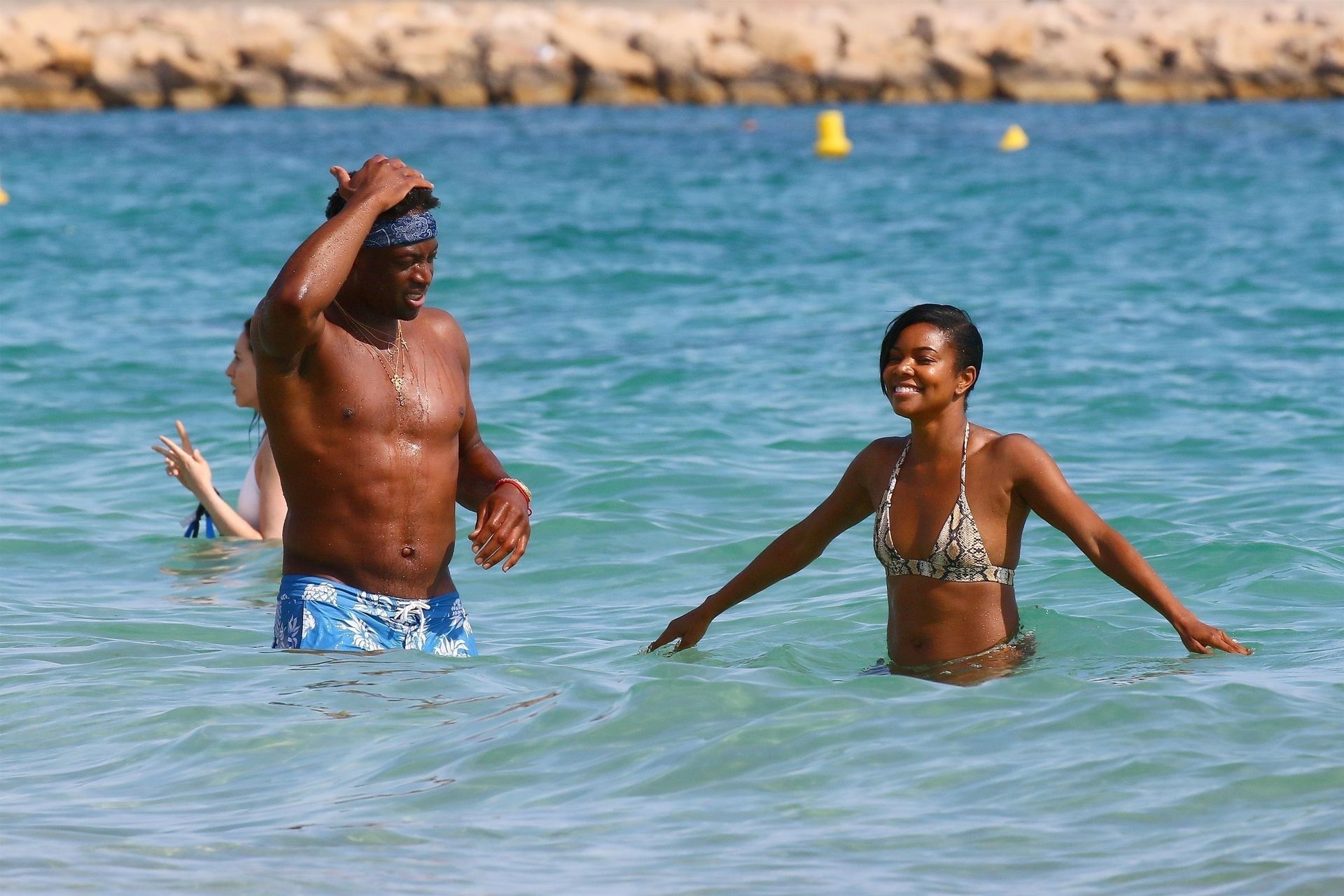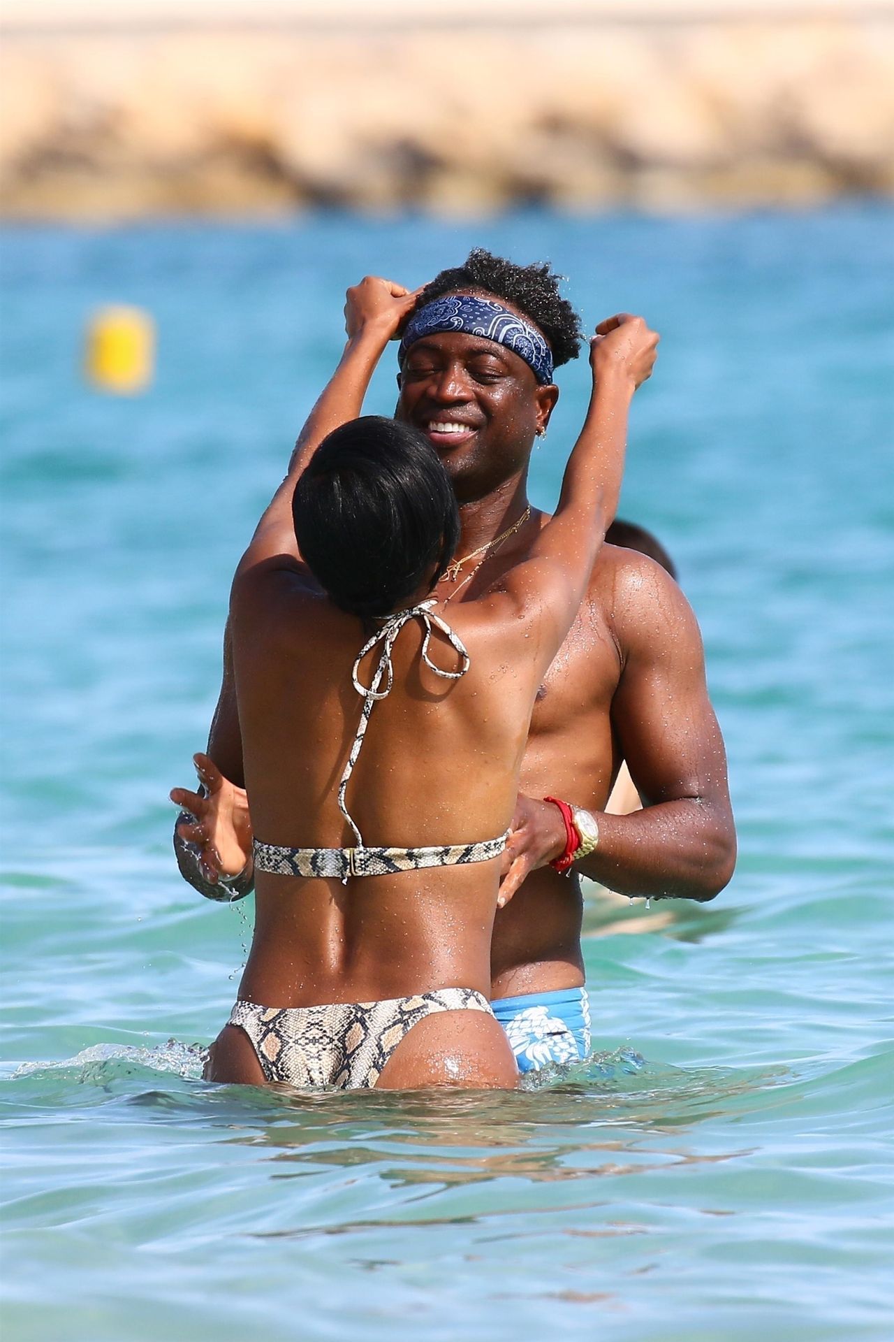 Newly retired NBA star, Dwayne Wade and actress wife Gabrielle Union make a splash while having fun in the water in Cannes, 06/21/2019. The couple was all smiles as they got up close and personal by hugging onto each other while enjoying the cool water.