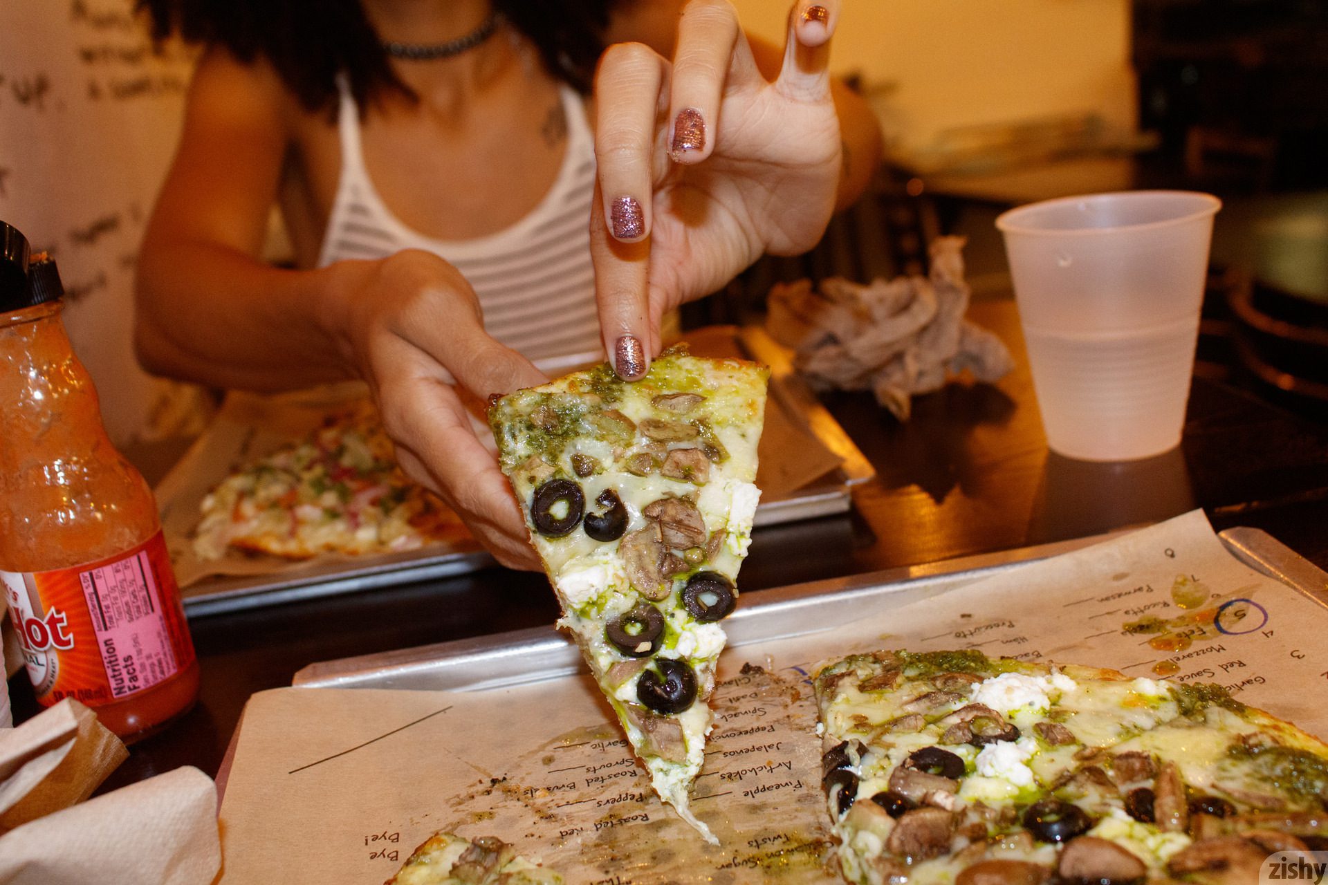 Georgia Ames and I grabbed some pies one evening. The unfortunate thing is that it was also pizza night for a few local families with kids. Quick goat-thinking, Georgia offered to take my camera into the restroom and make her own magic. I waited patiently without taking a bite. Such a gentleman. We capped off the evening with some adventurous shots in Georgia’s neighborhood. The moon did hit my eye that night.