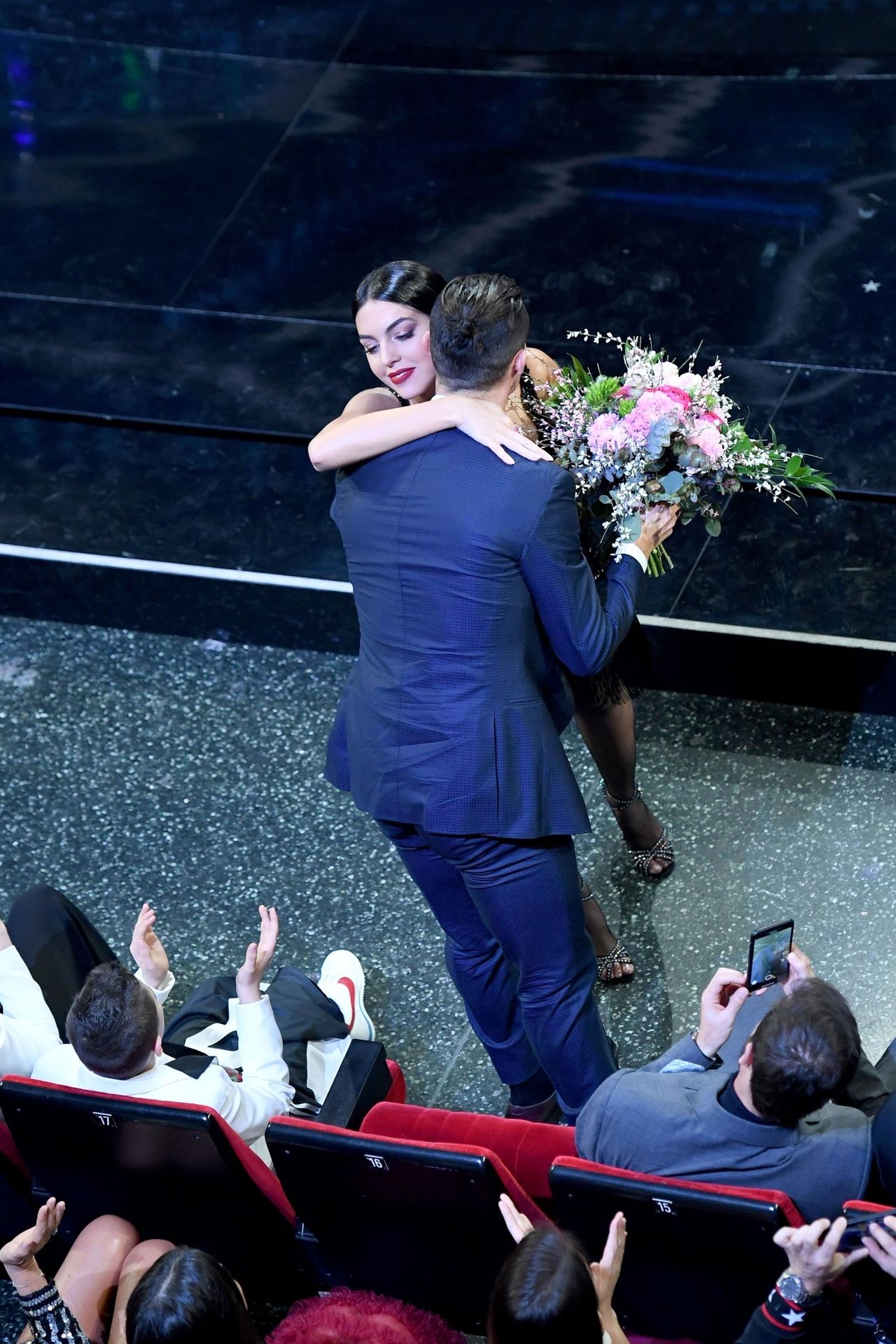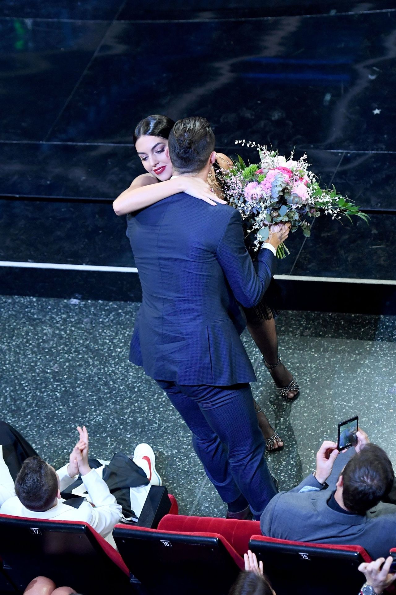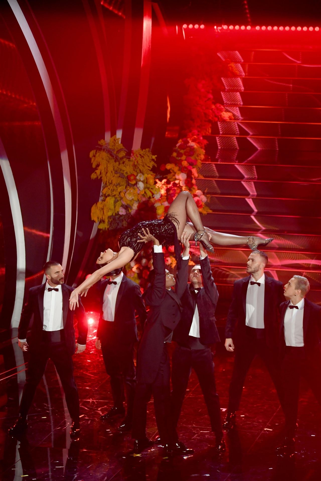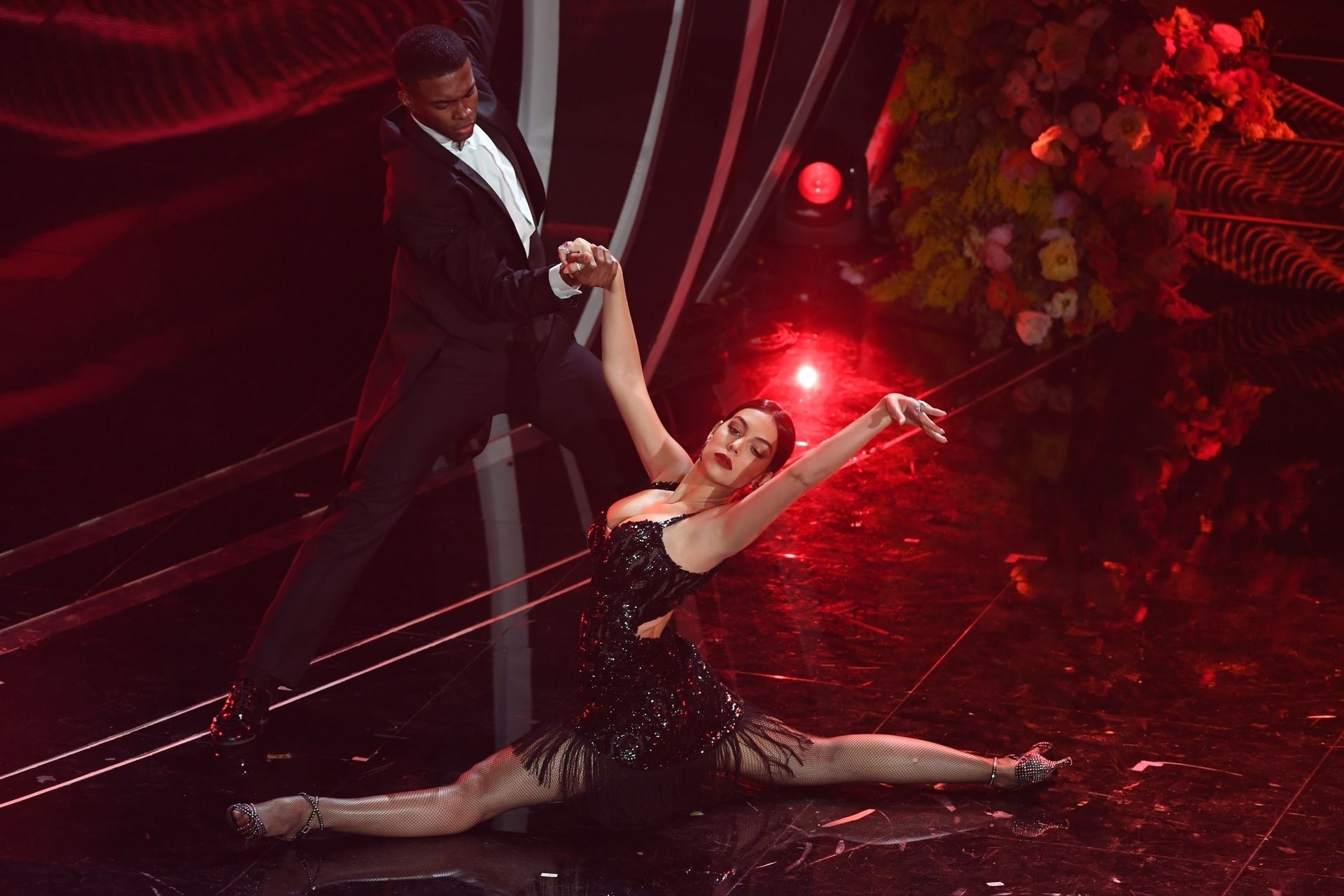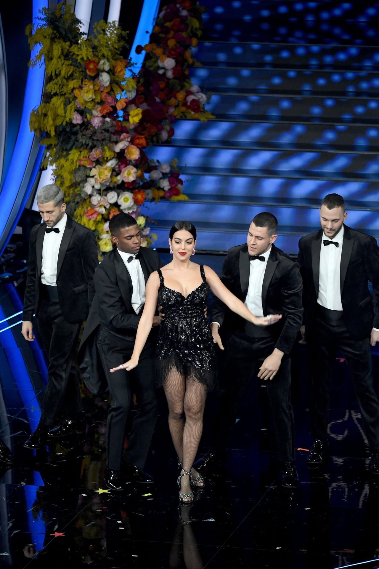 Georgina warms the festival dancing a tango Argentine on the stage of the Ariston during the third evening of the event.