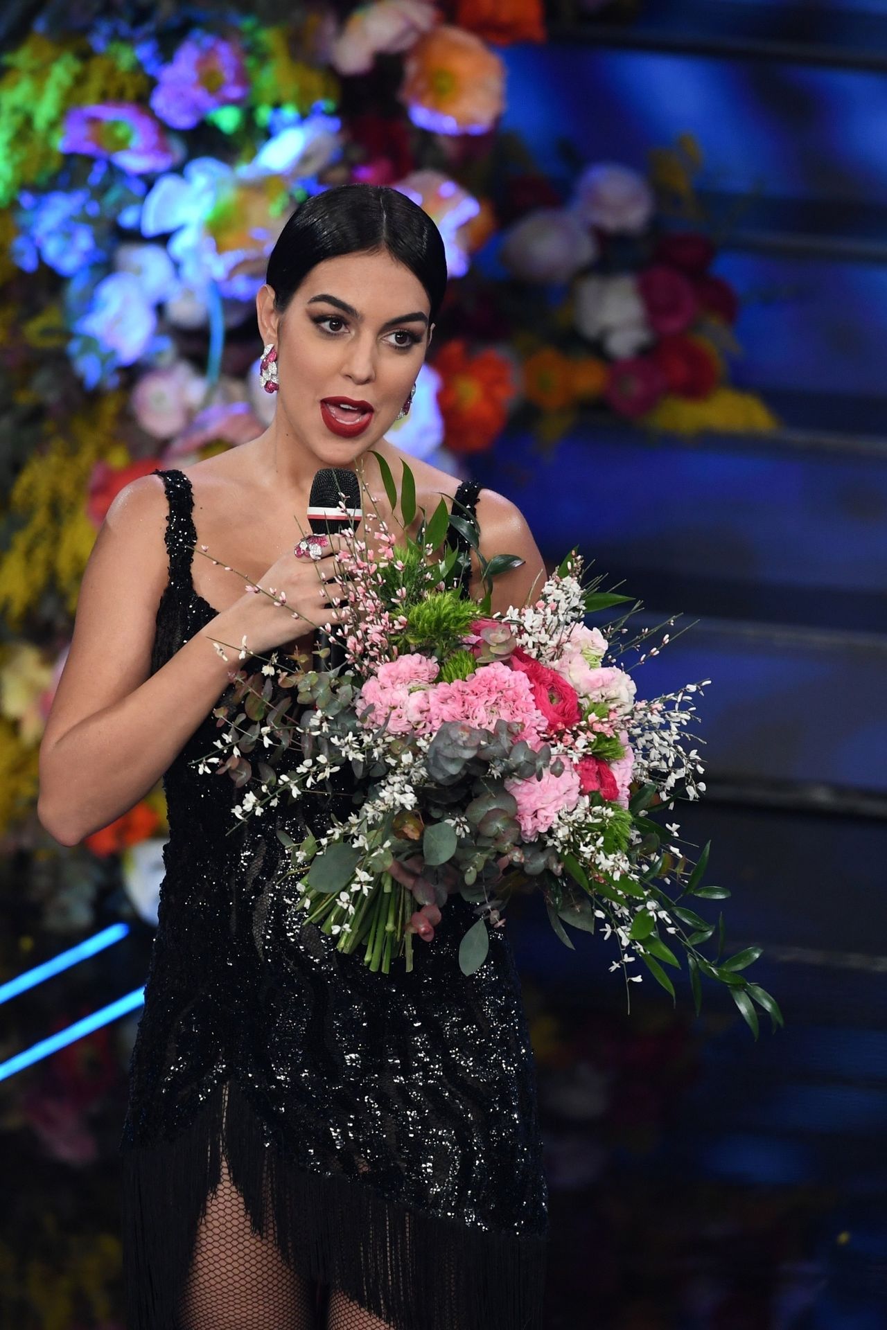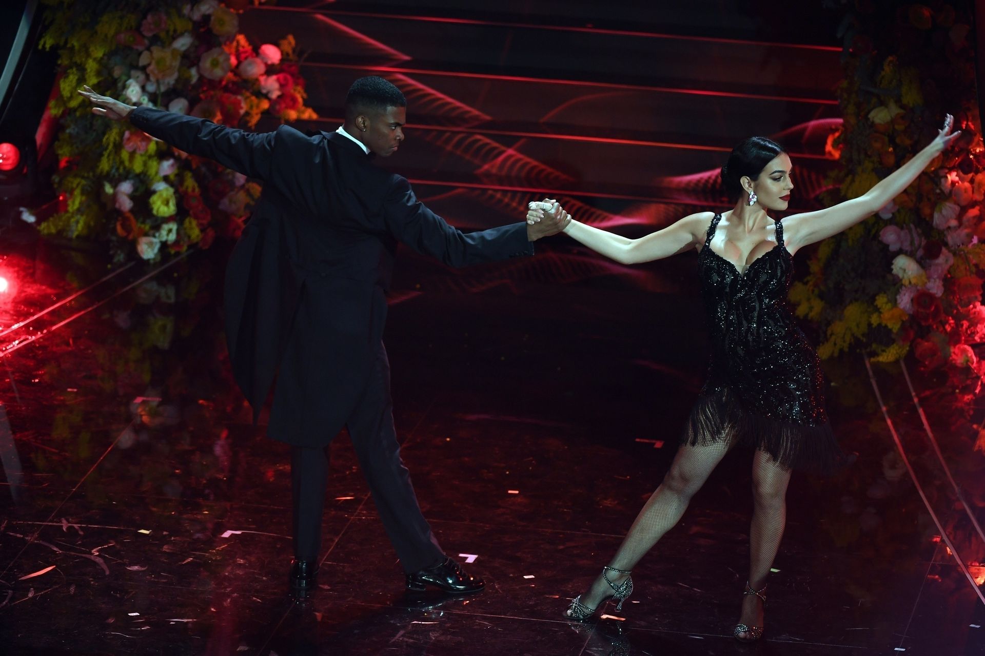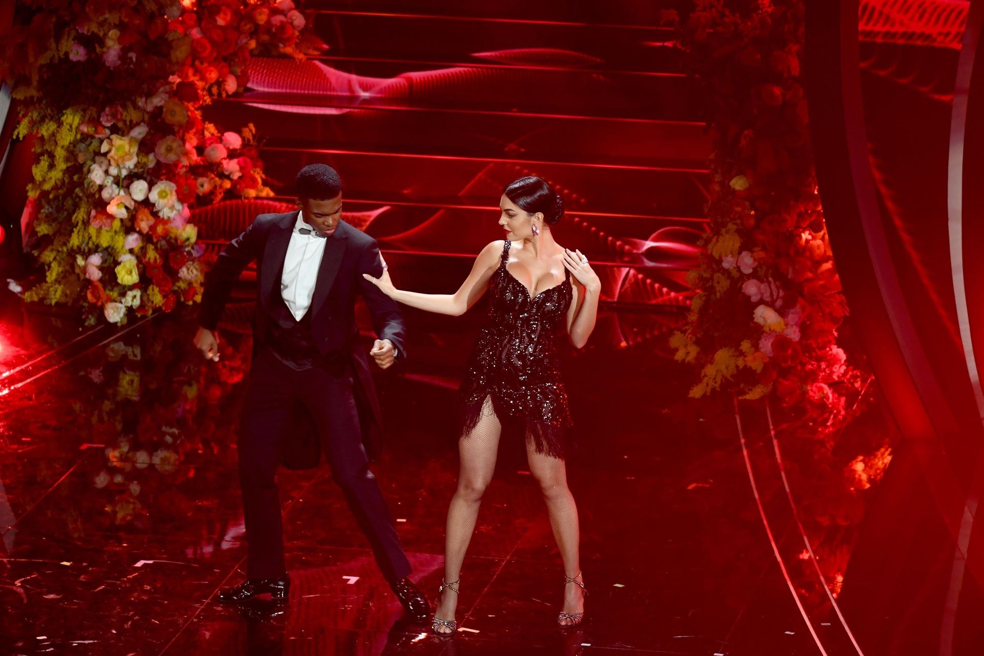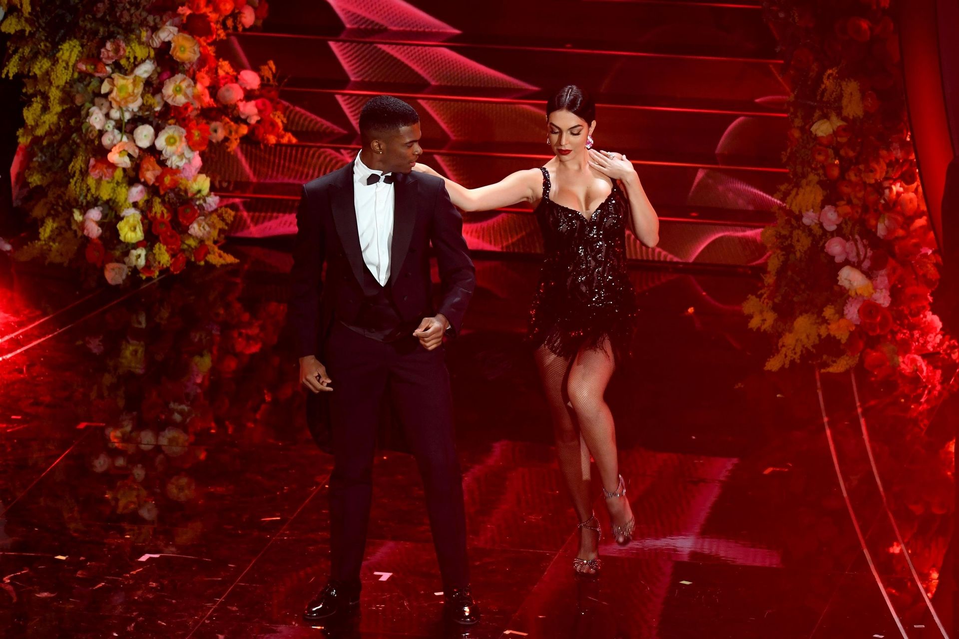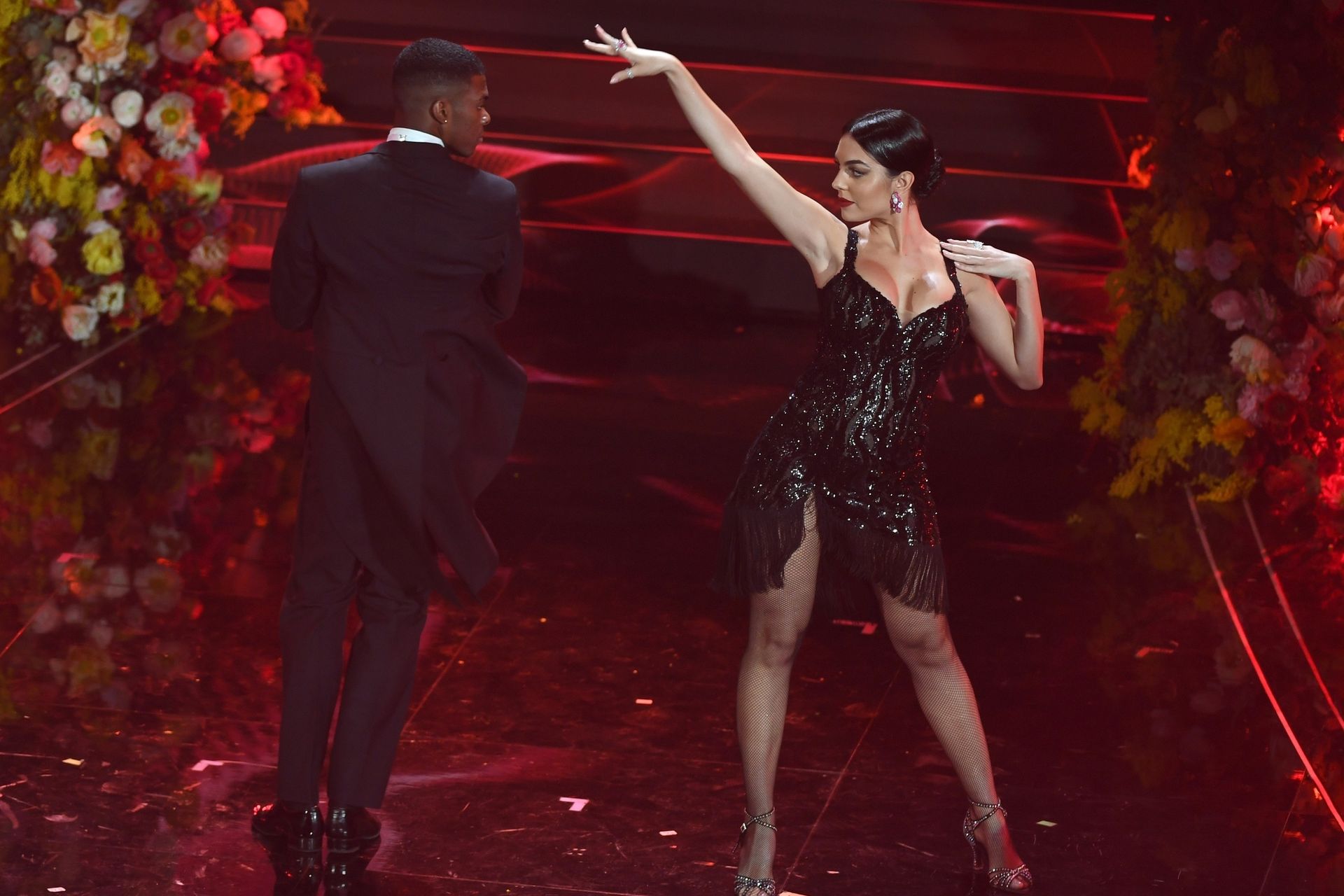 Georgina Rodriguez’s pictured while performing at 70th Italian song festival 2020 in Sanremo, Italy