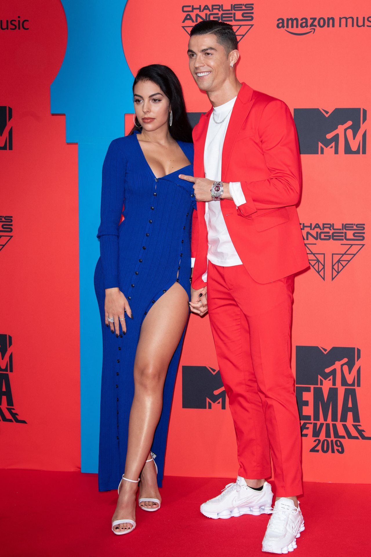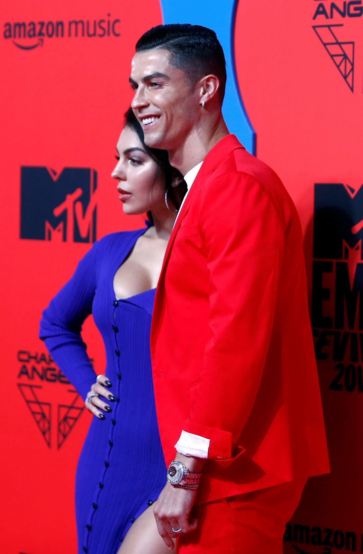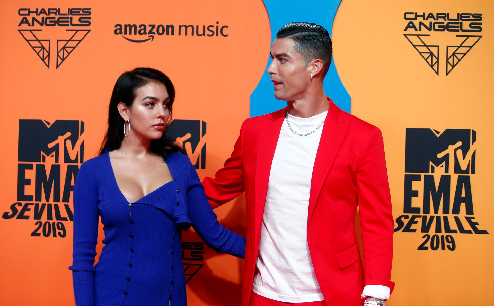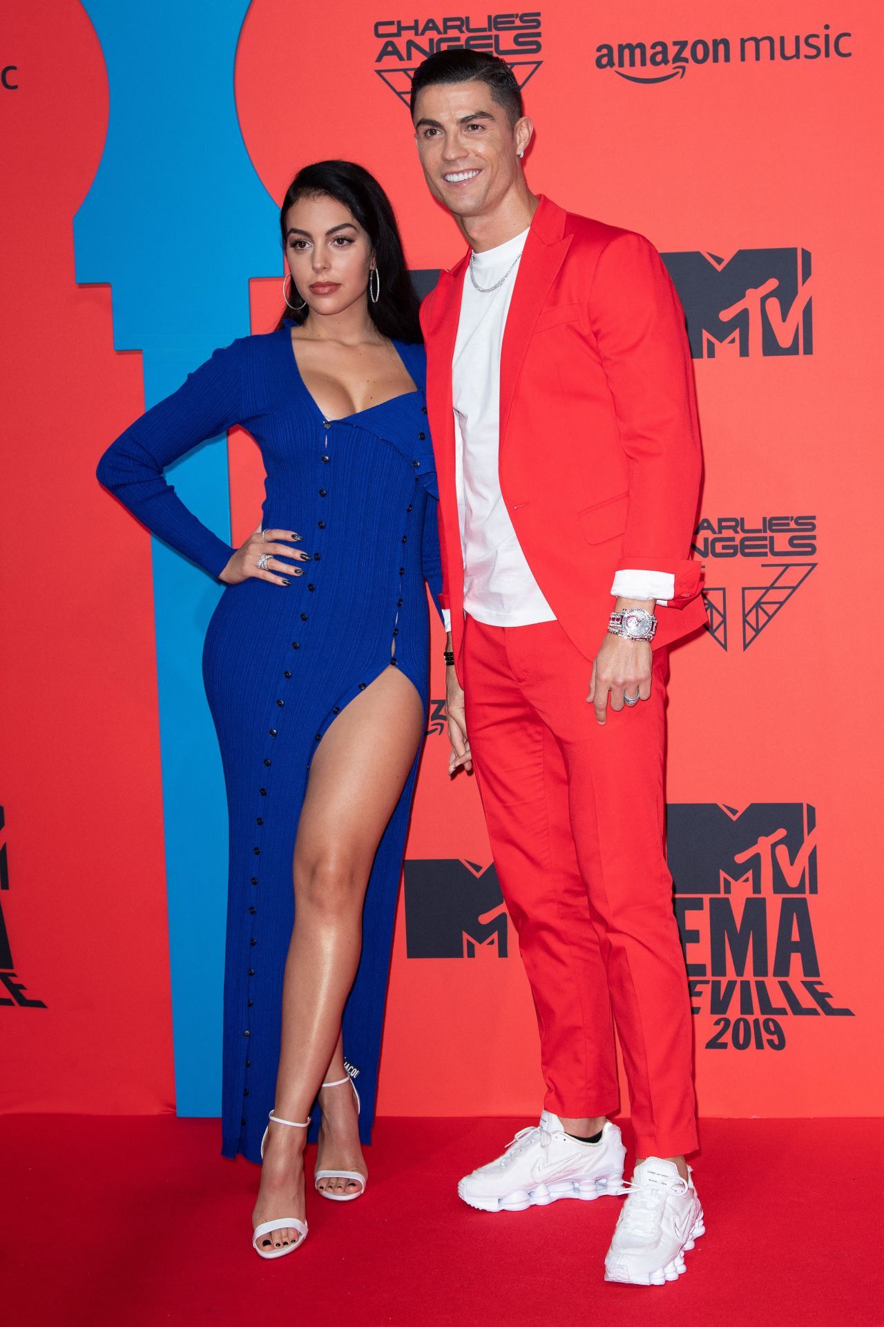 ‘Juventus’ Portuguese forward Cristiano Ronaldo and his wife Georgina Rodriguez pose on the red carpet upon their arrival to the MTV Europe Music Awards at the FIBES Conference and Exhibition Centre of Seville on November 3, 2019.