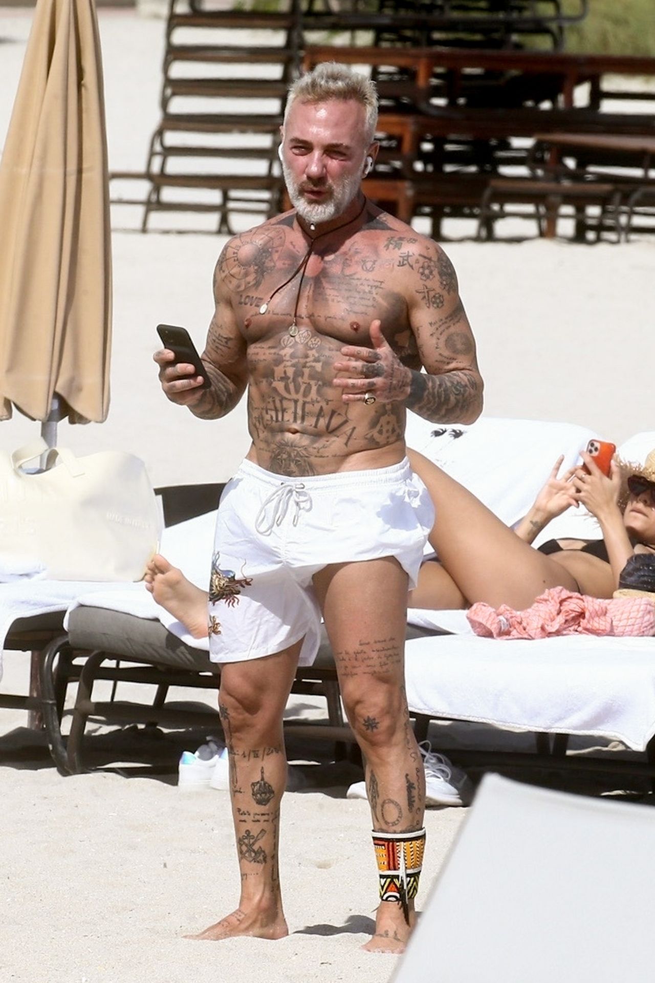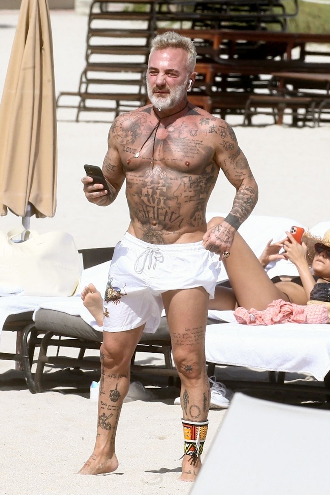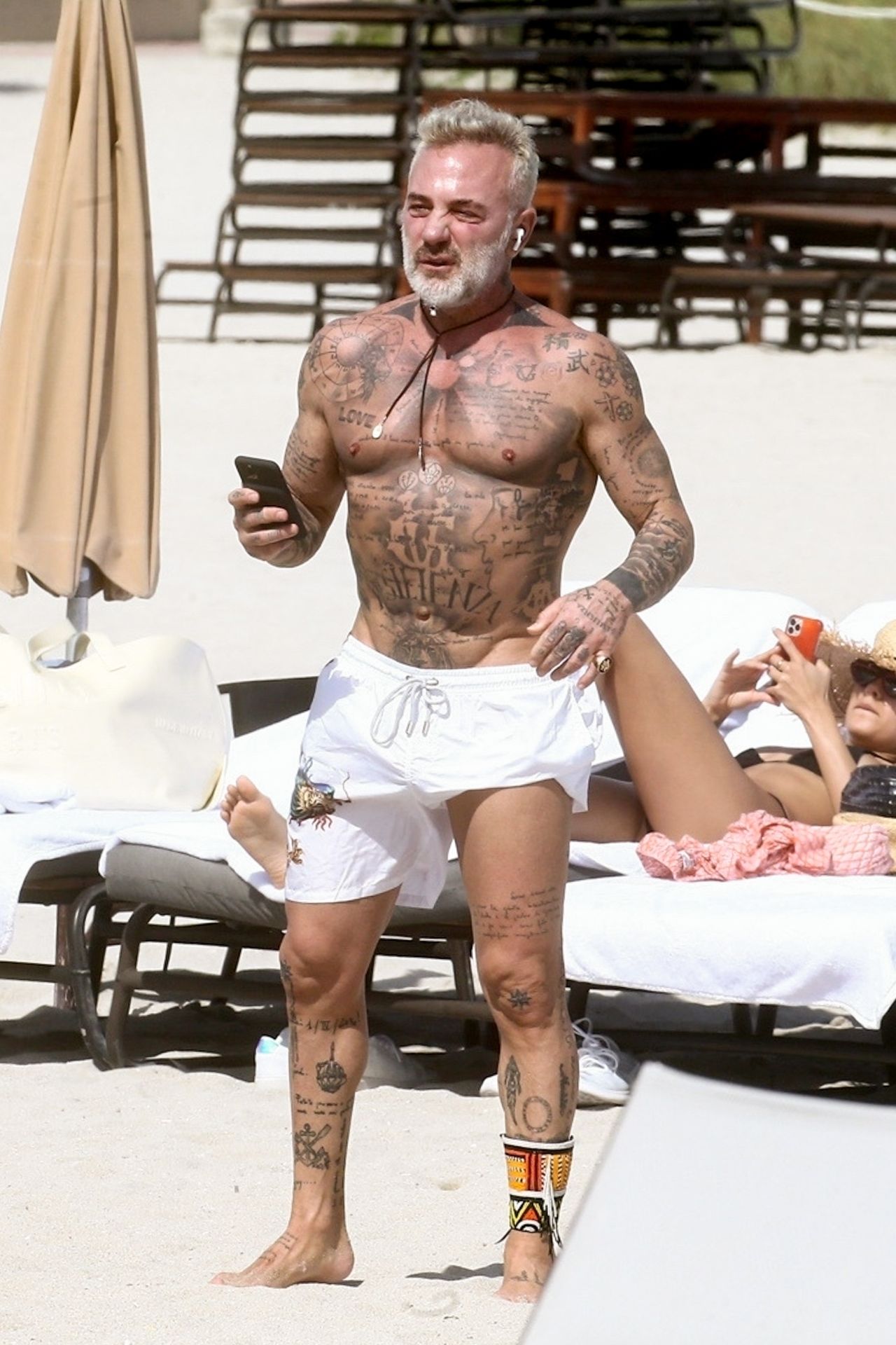 Influencer Gianluca Vacchi is exuding serious sex appeal while out in white trunks during a romantic getaway with his girlfriend, Sharon Fonseca, 02/05/2020.