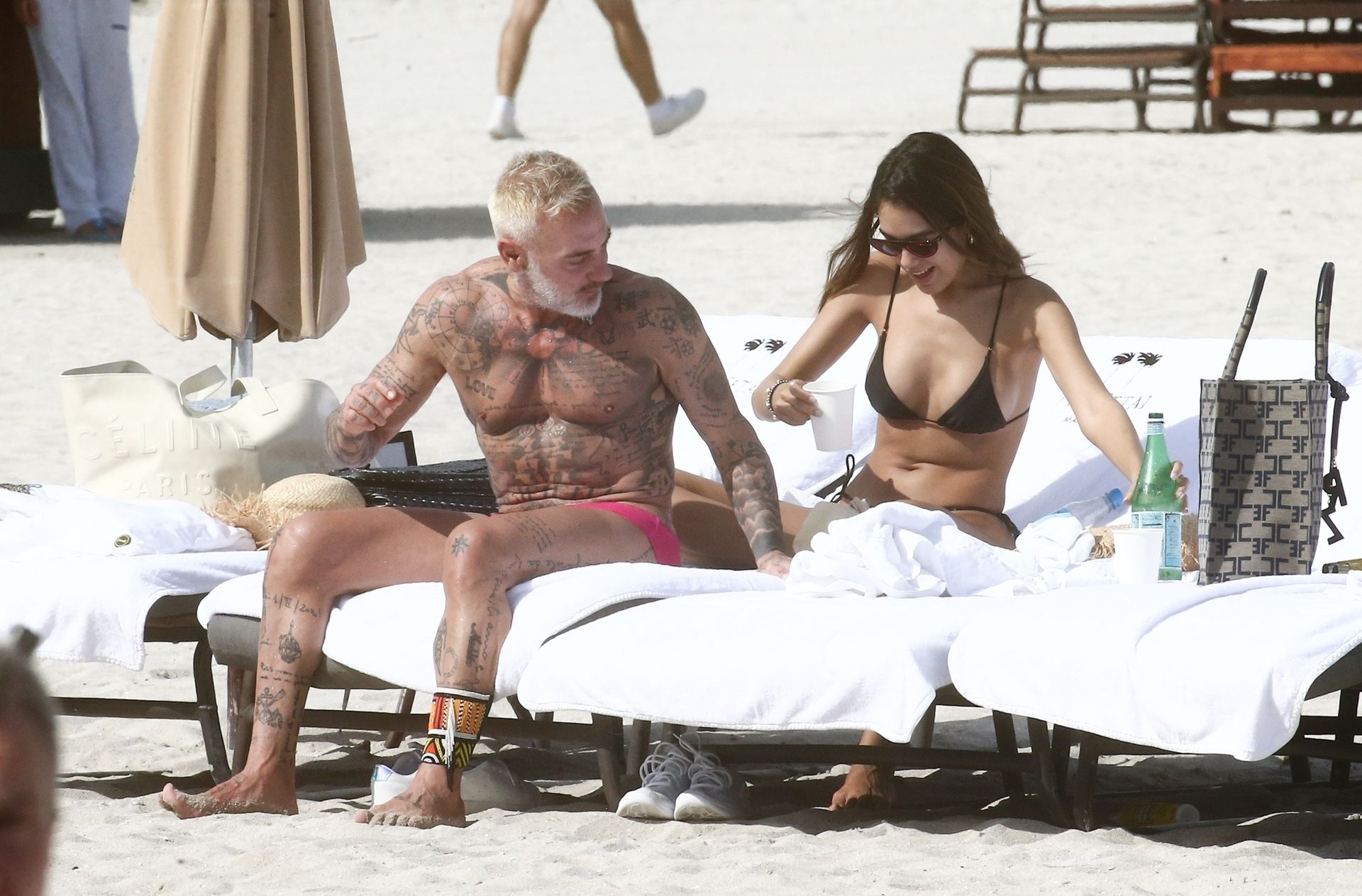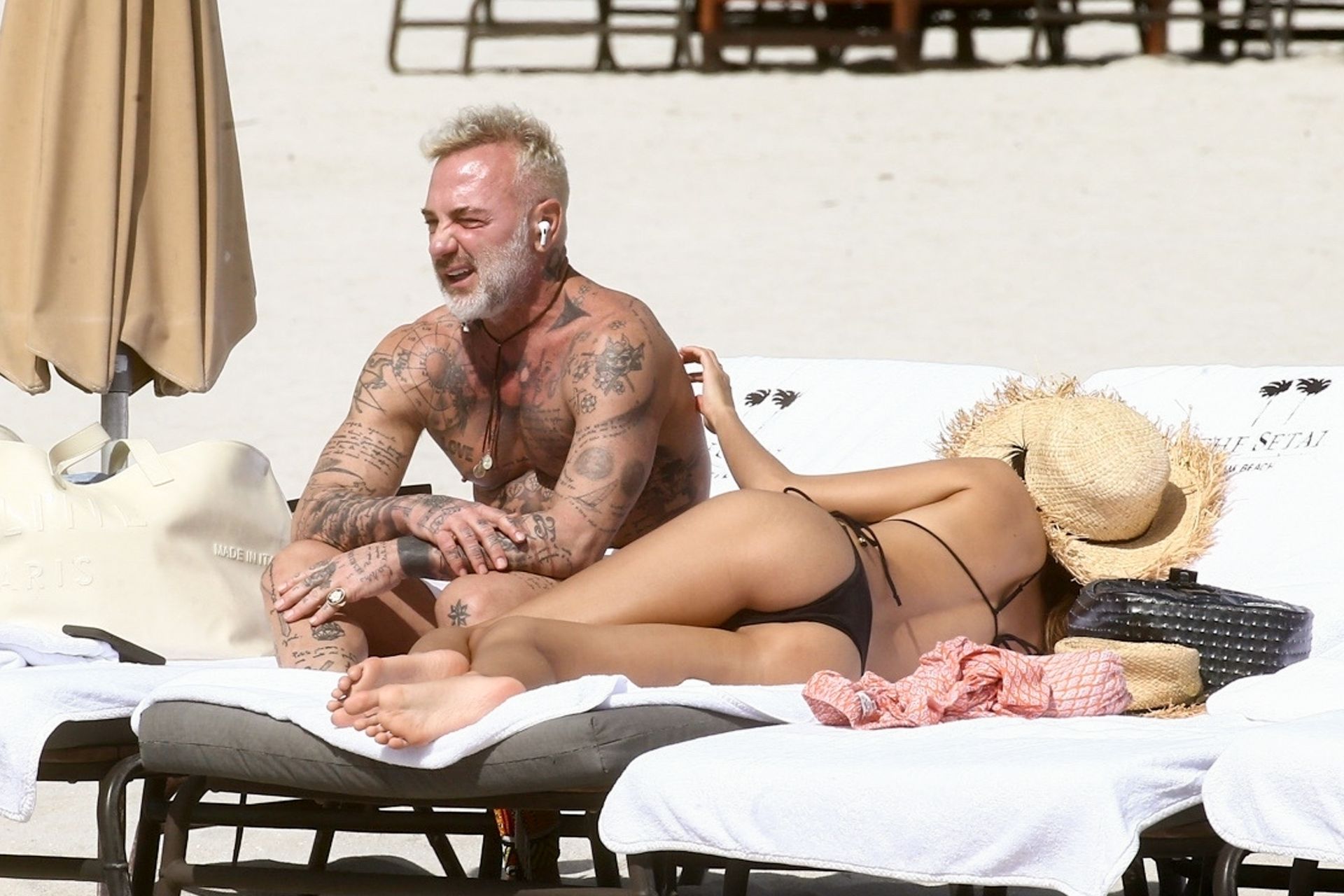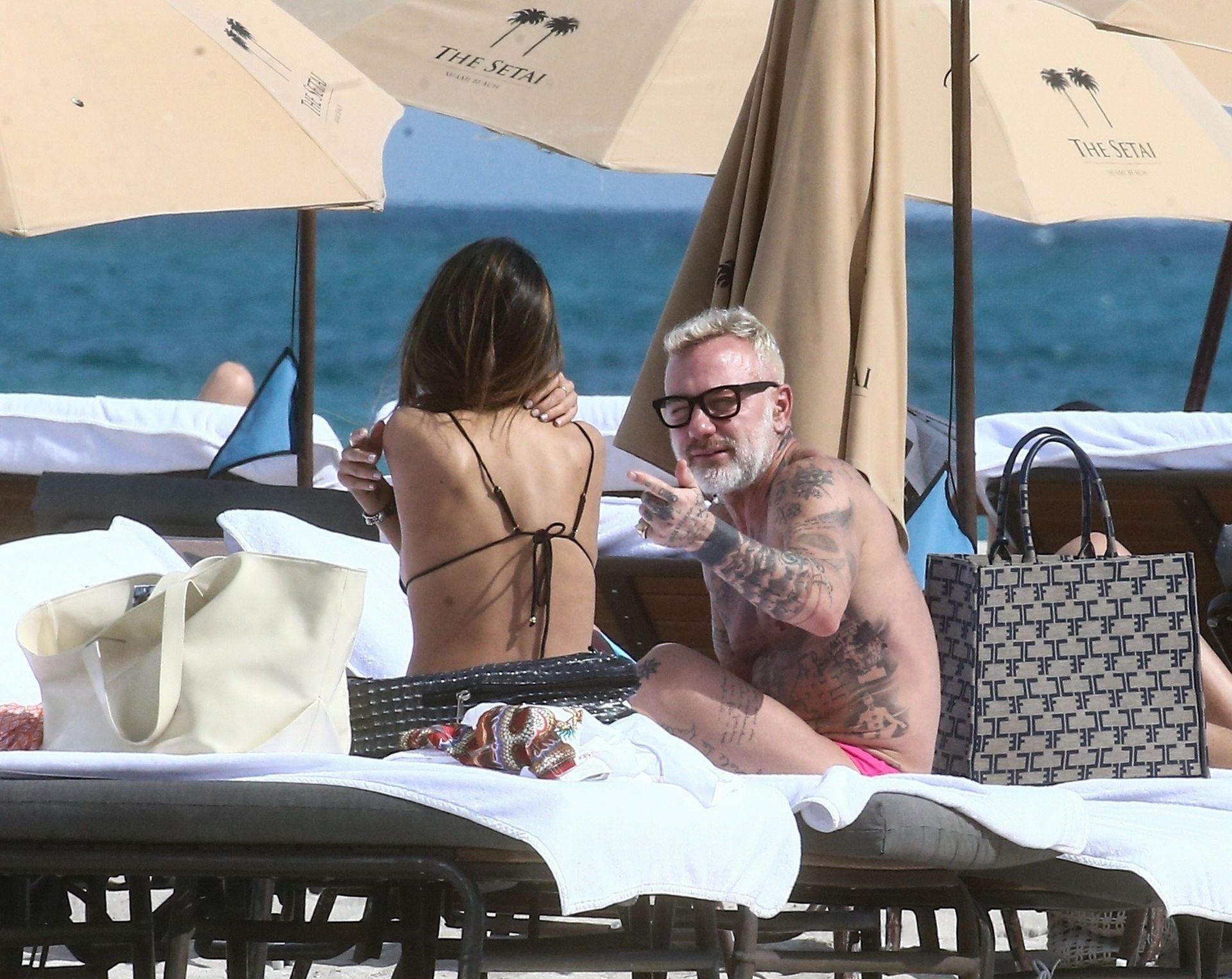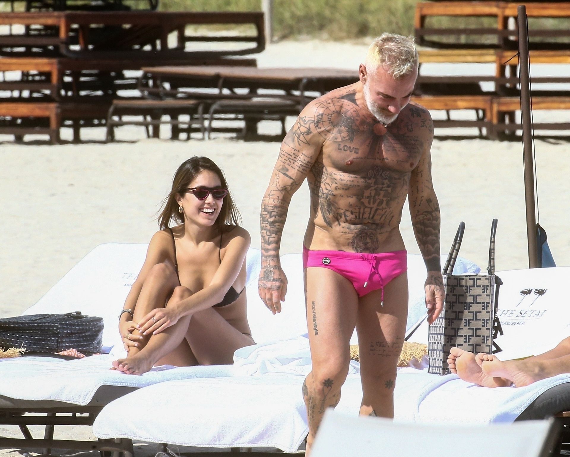 Influencer Gianluca Vacchi is exuding serious sex appeal while out in white trunks during a romantic getaway with his girlfriend, Sharon Fonseca, 02/05/2020.