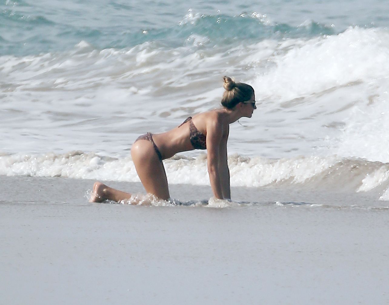 Gisele Bundchen and sister Rafaela head out to the beach with the family in Costa Rica, 06/02/2015. Gisele was sporting her second leopard bikini of the week. Gisele spent time with young son Ben teaching him the art of wave riding.