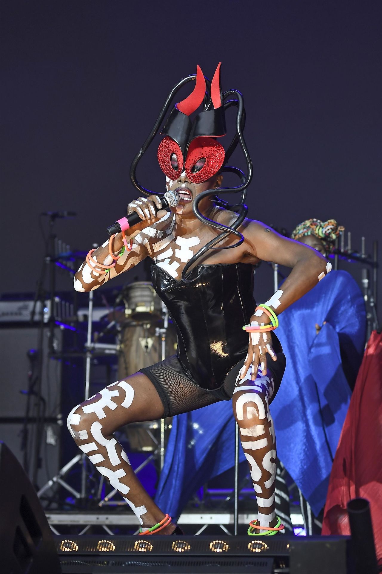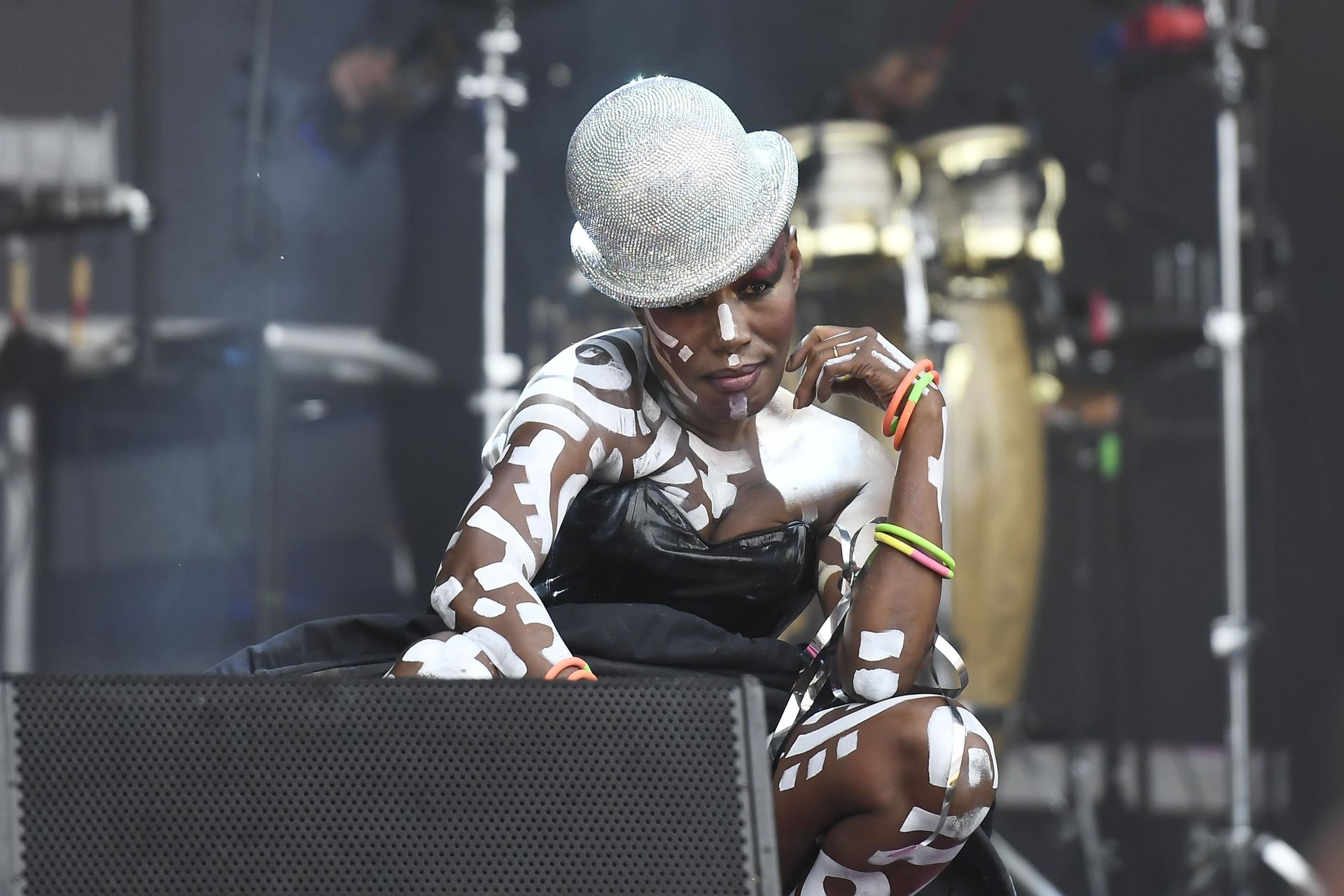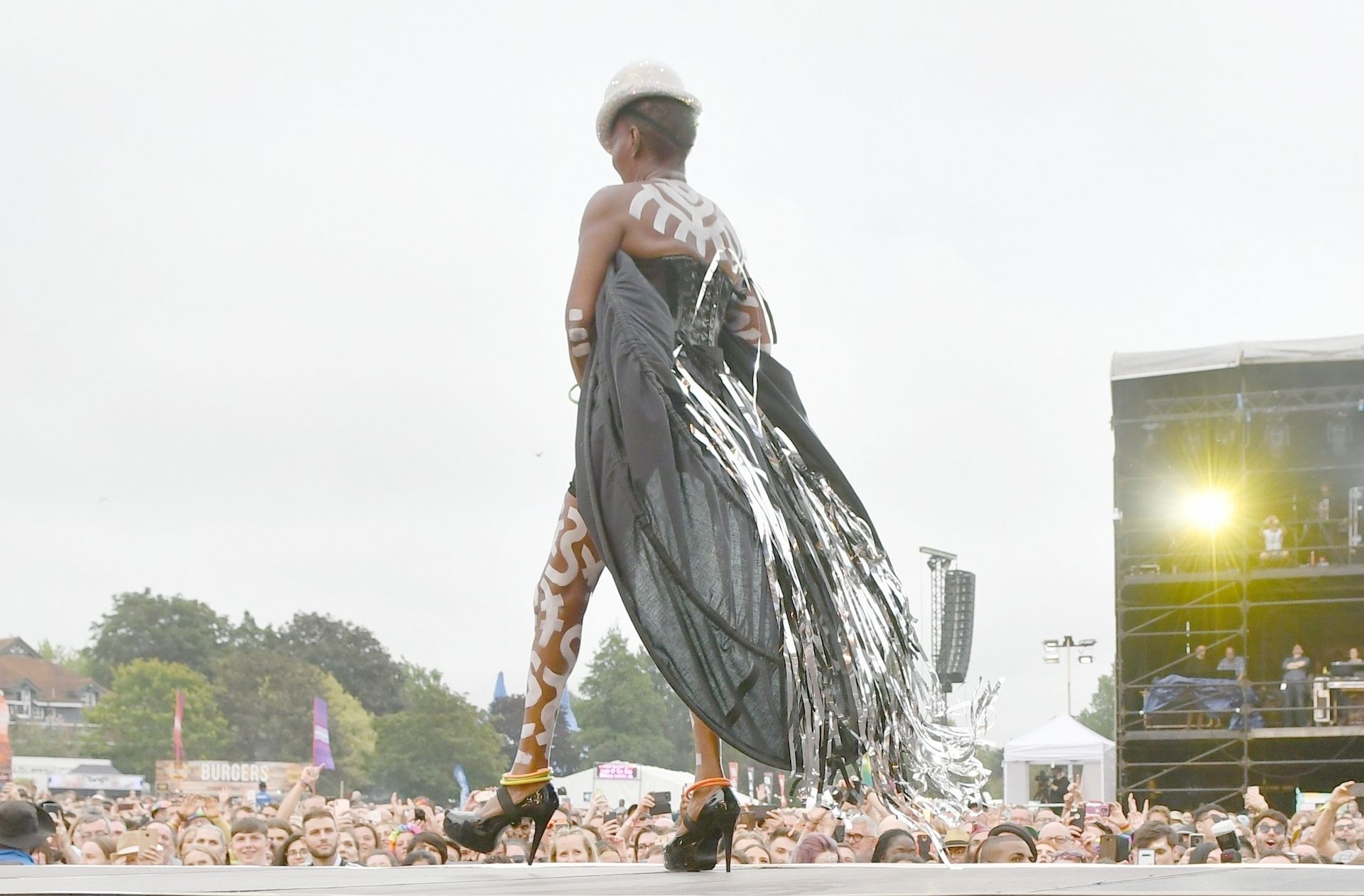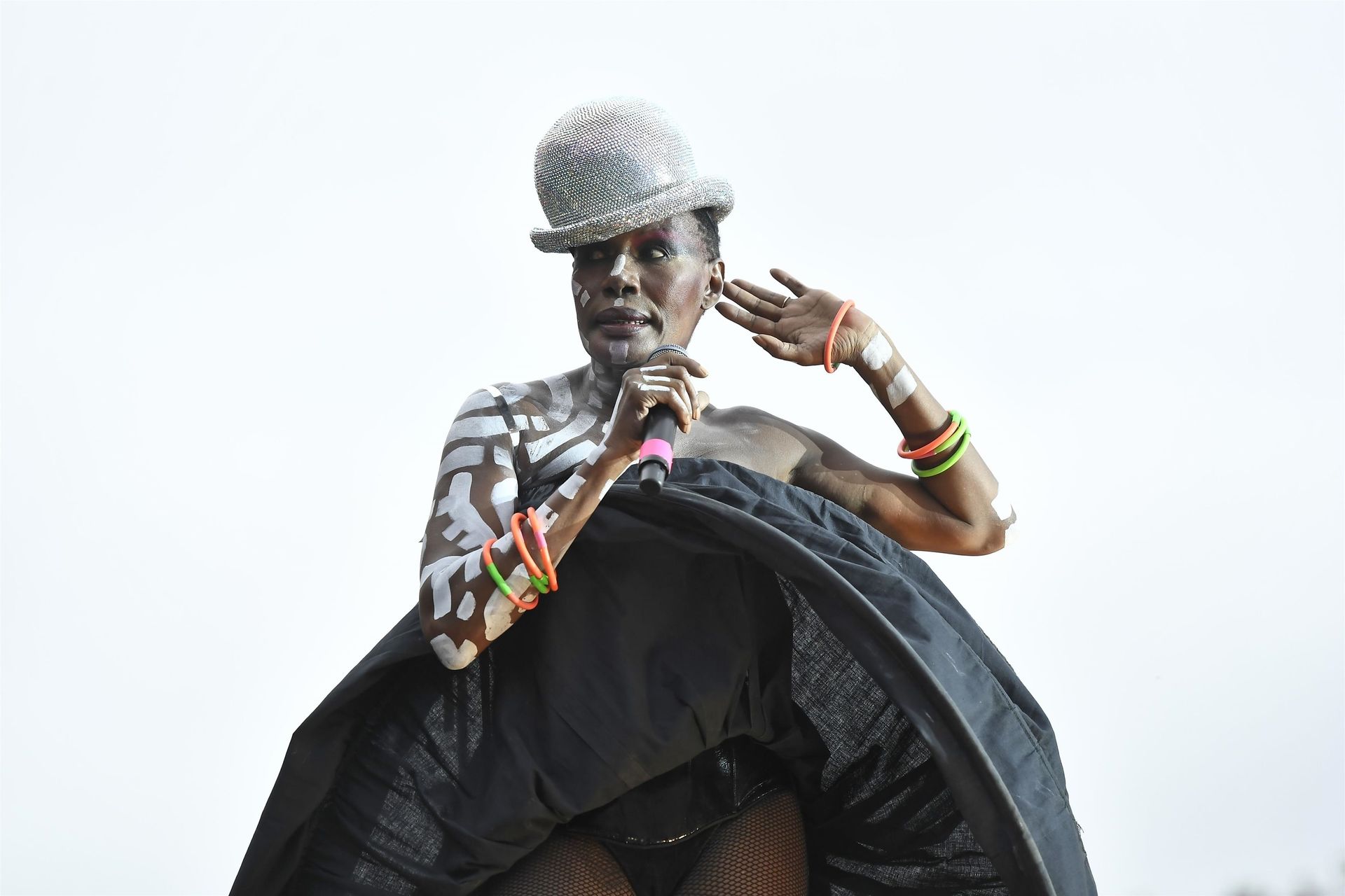 American singer Grace Jones (71) was photographed while performing at Brighton Pride 2019 at Preston Park in Brighton, 09/04/2019. This grandma is like Lady Gaga!