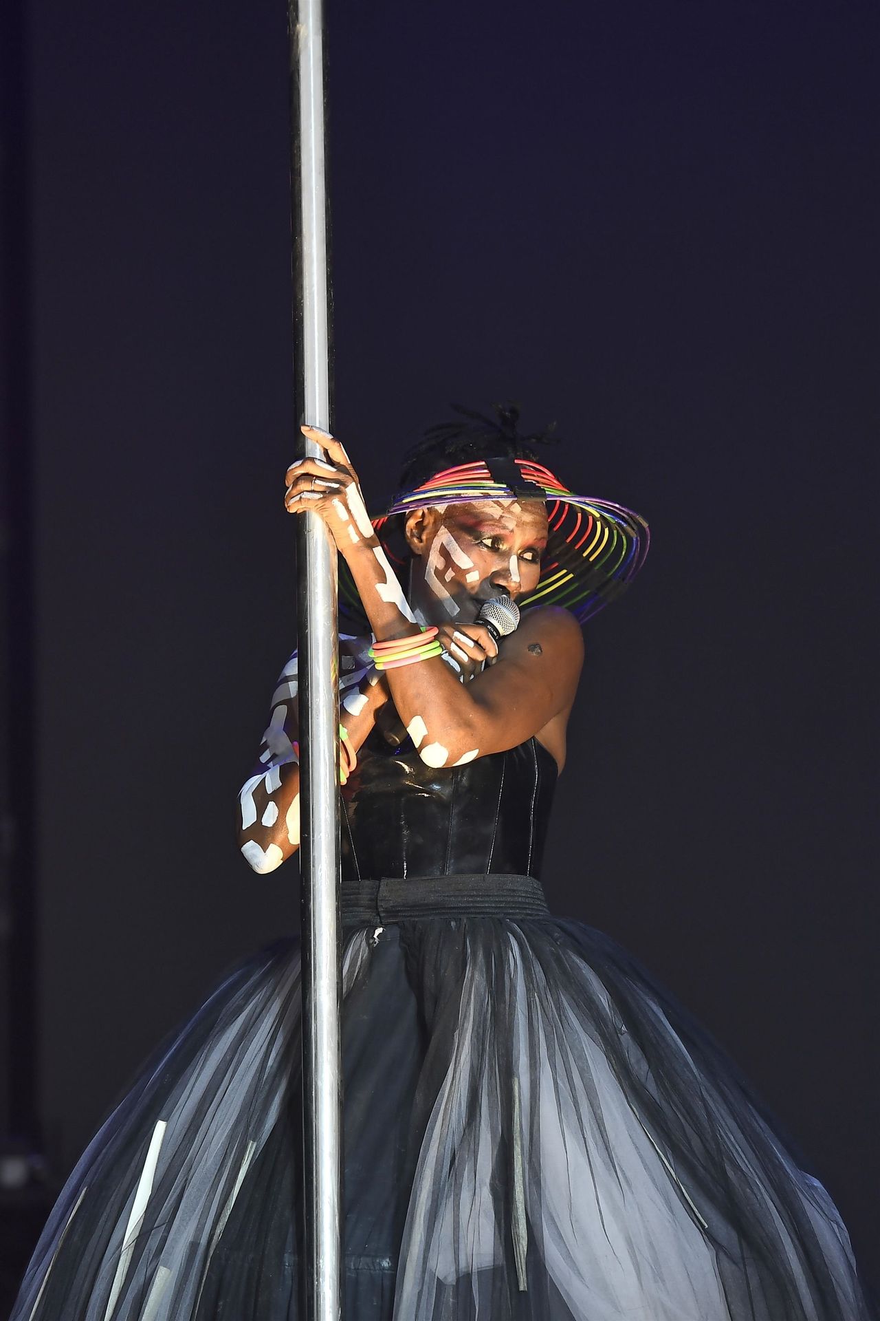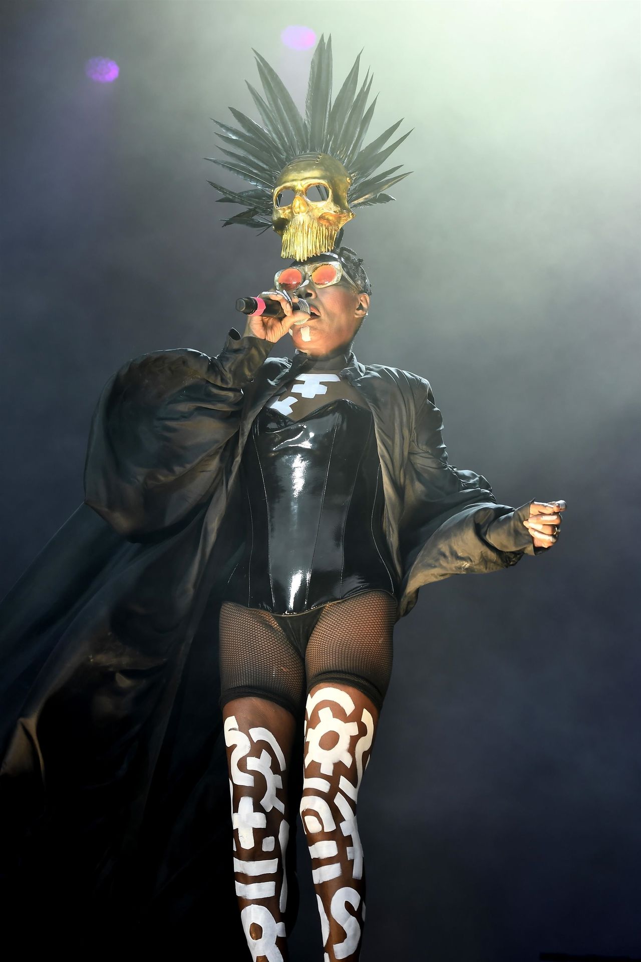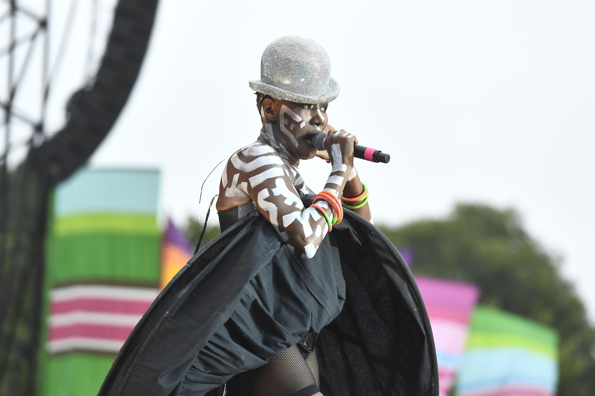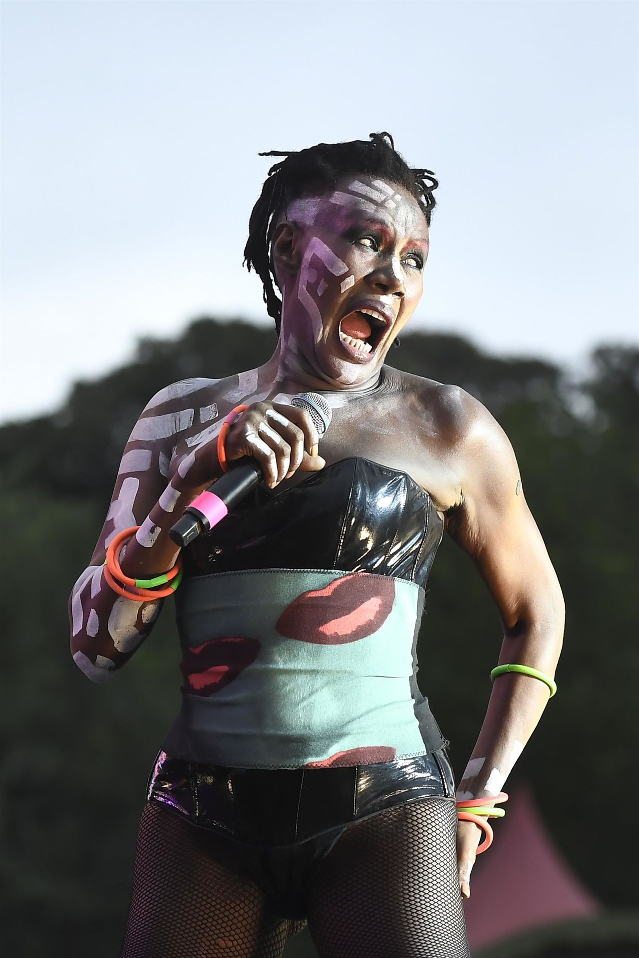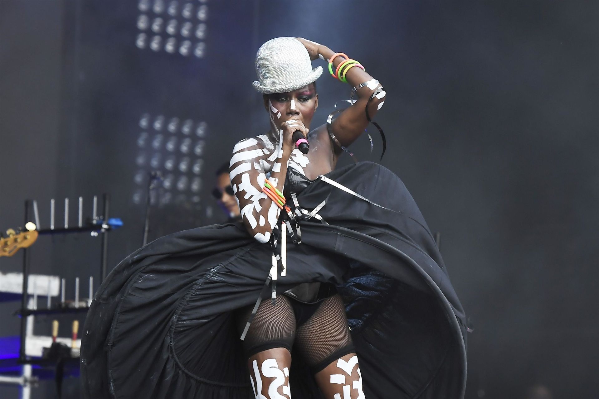 American singer Grace Jones (71) was photographed while performing at Brighton Pride 2019 at Preston Park in Brighton, 09/04/2019. This grandma is like Lady Gaga!