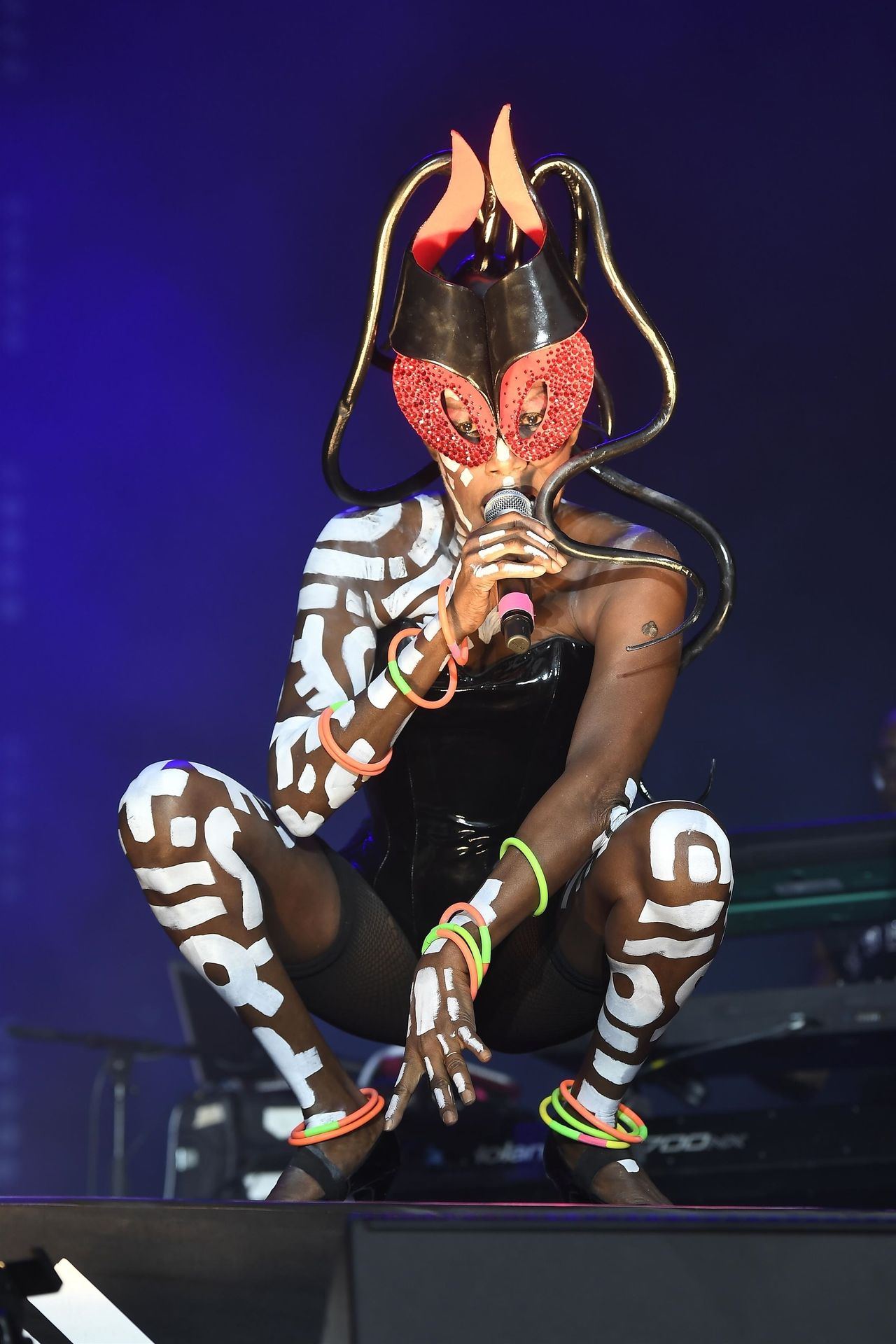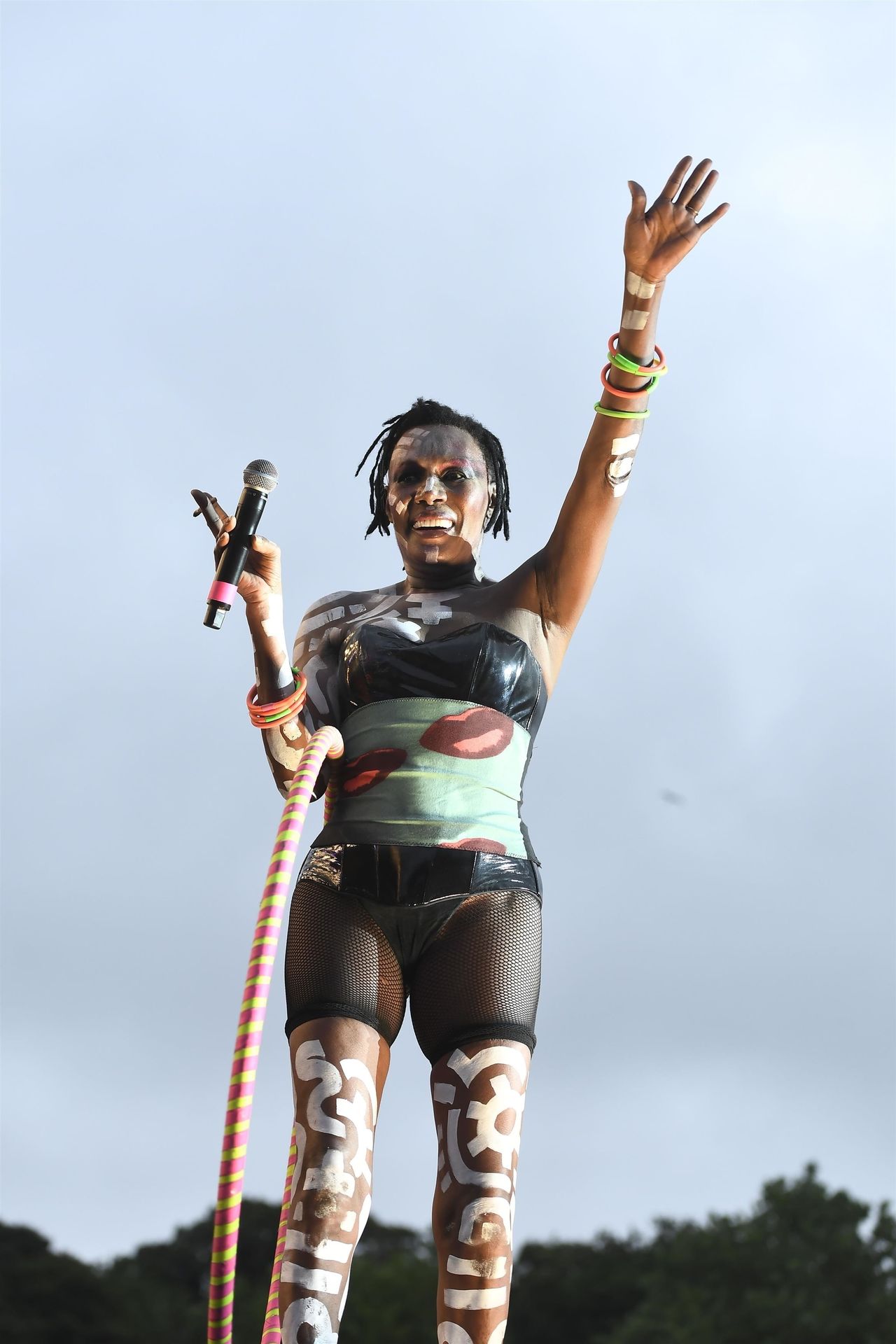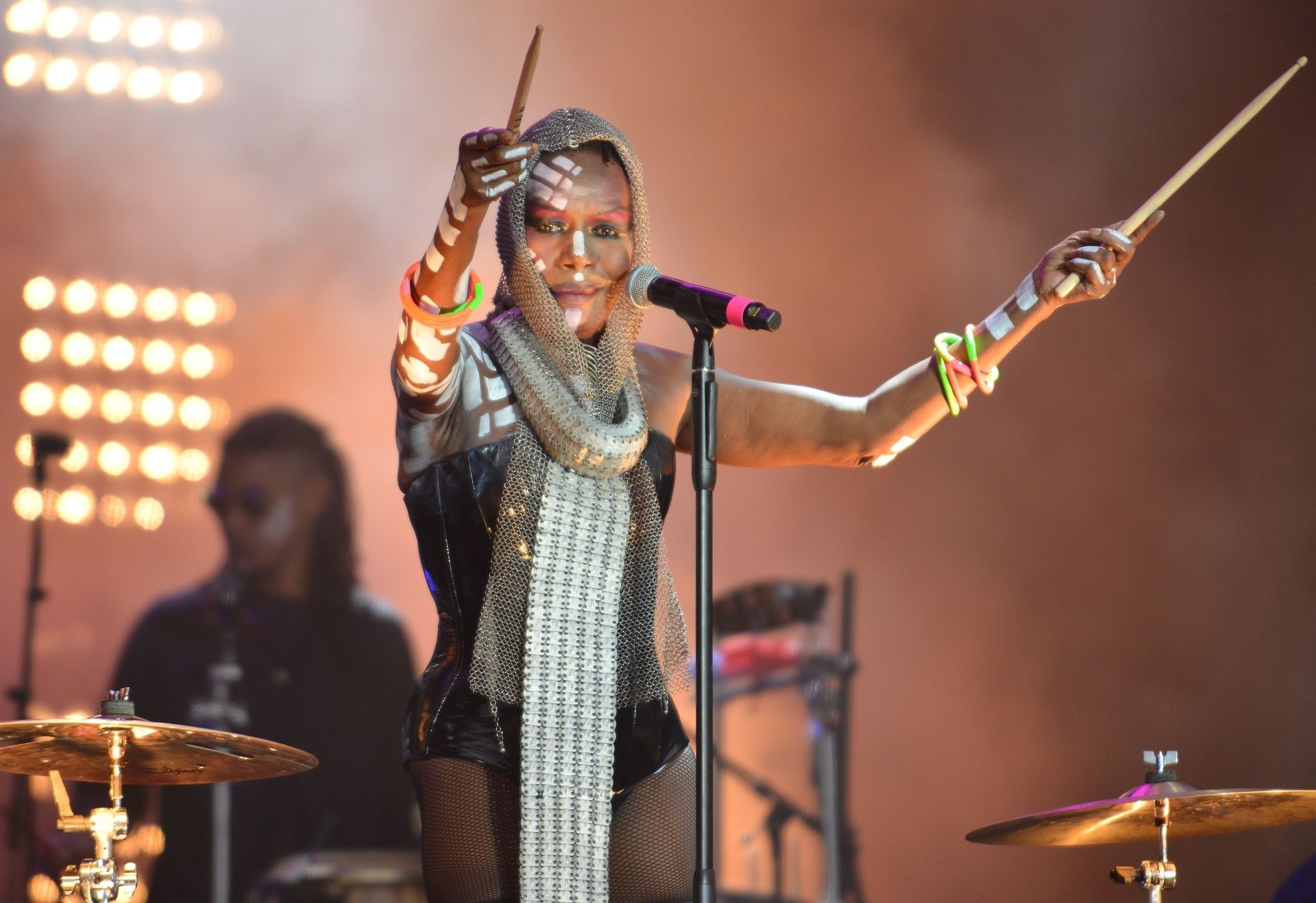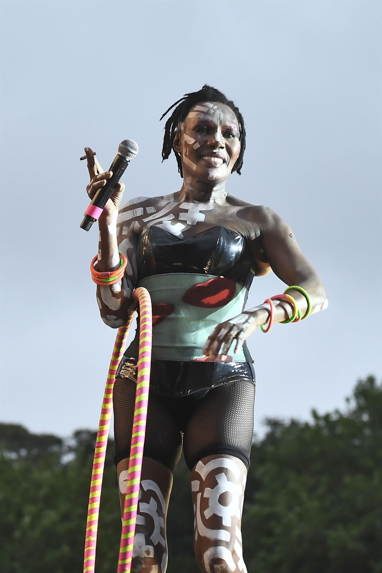 American singer Grace Jones (71) was photographed while performing at Brighton Pride 2019 at Preston Park in Brighton, 09/04/2019. This grandma is like Lady Gaga!