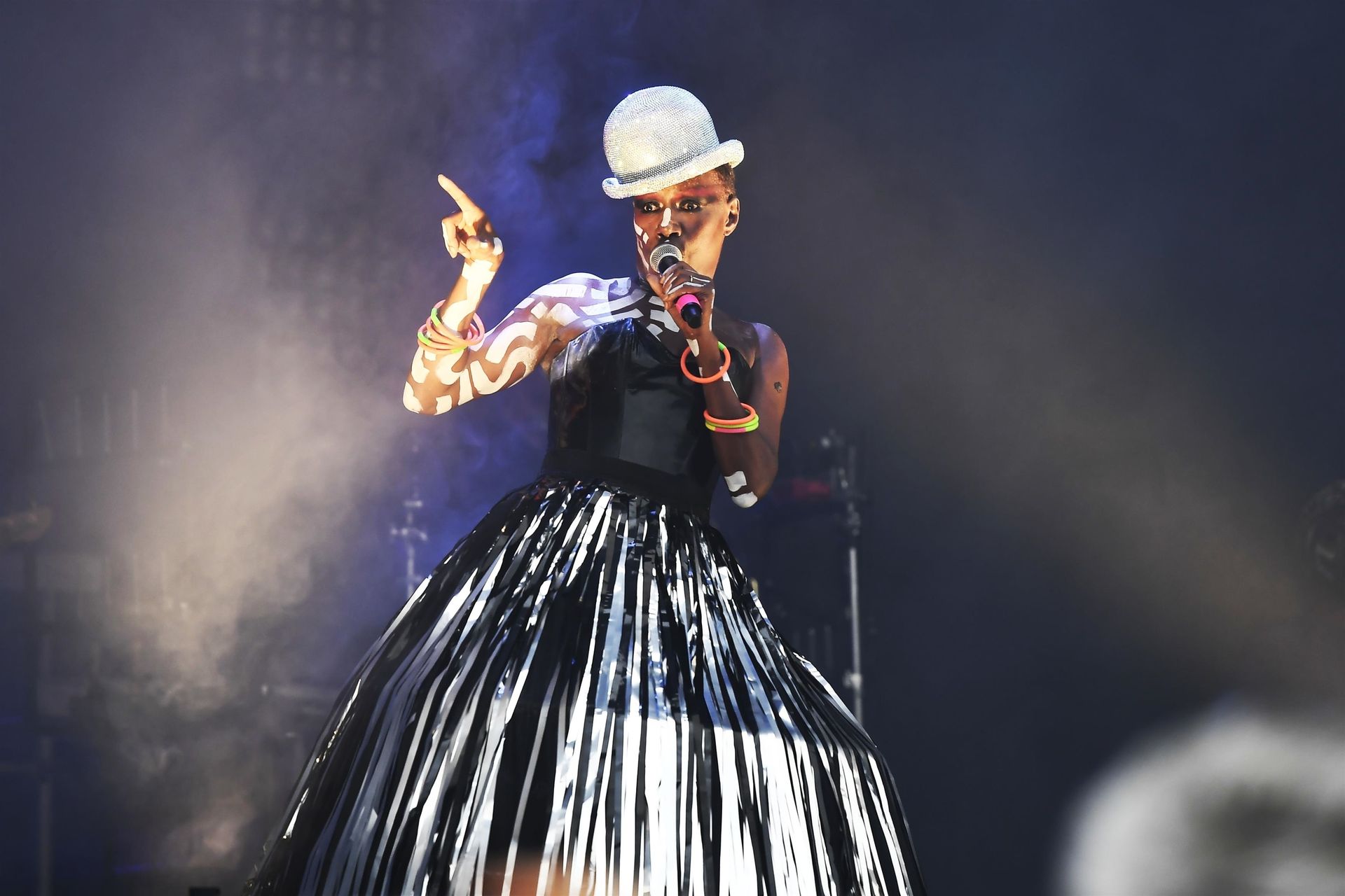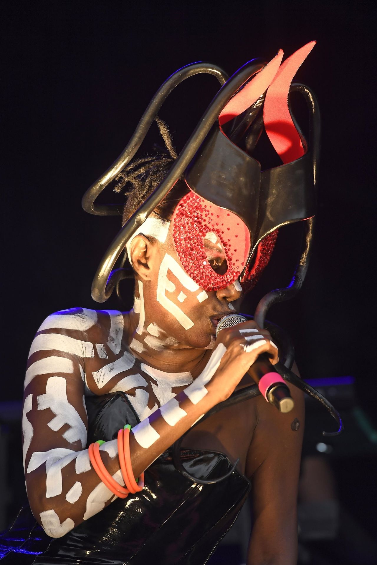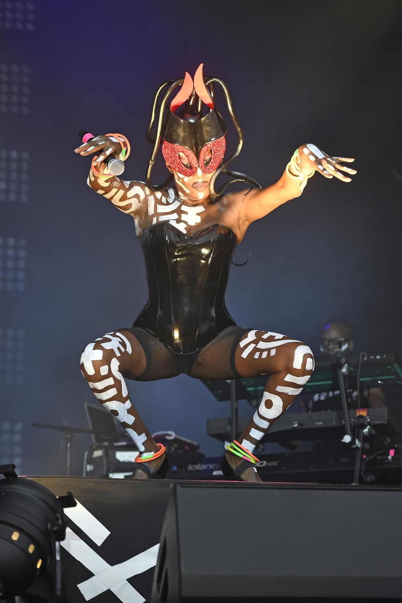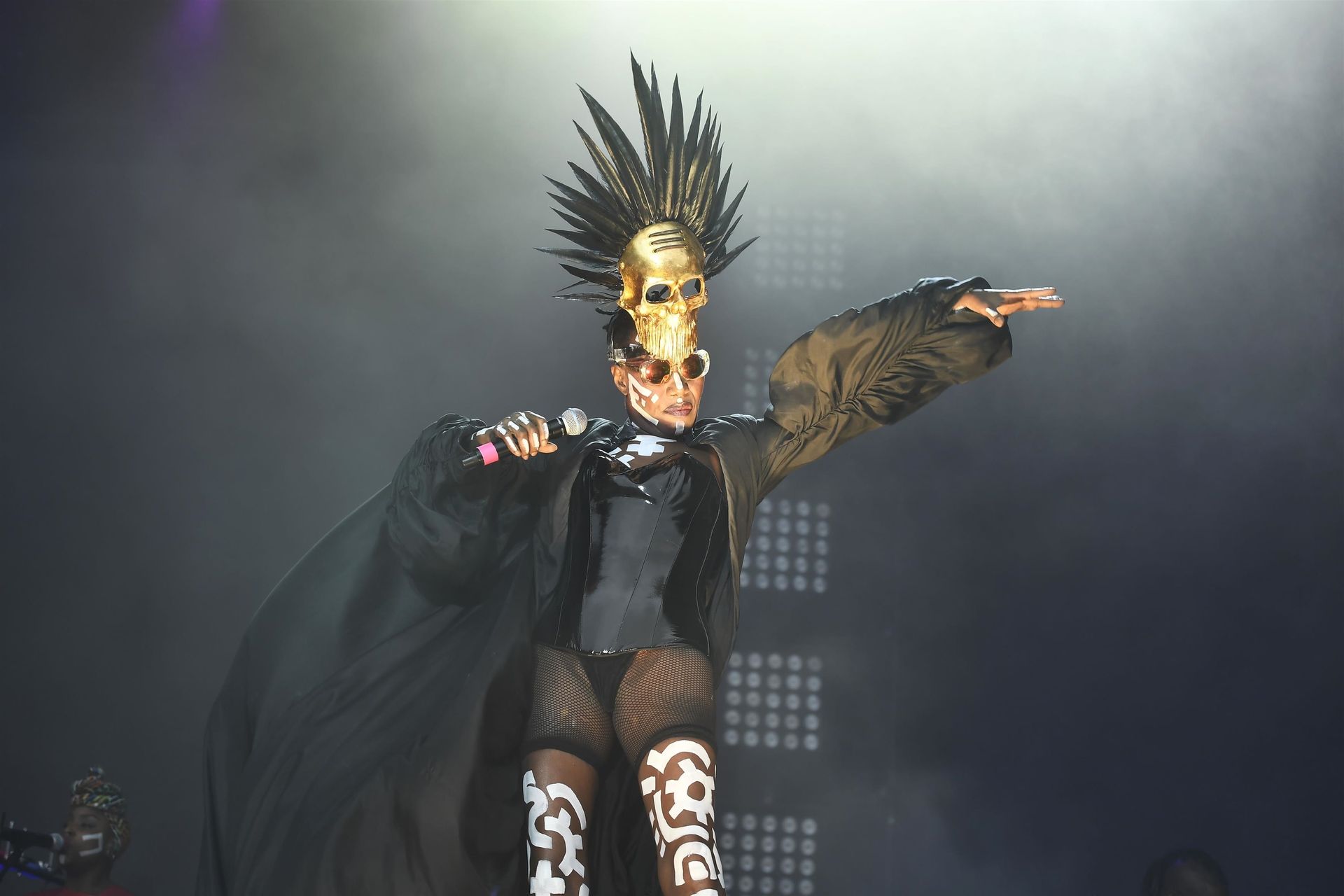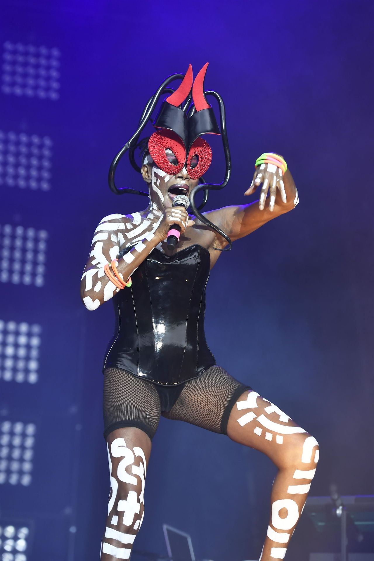 American singer Grace Jones (71) was photographed while performing at Brighton Pride 2019 at Preston Park in Brighton, 09/04/2019. This grandma is like Lady Gaga!