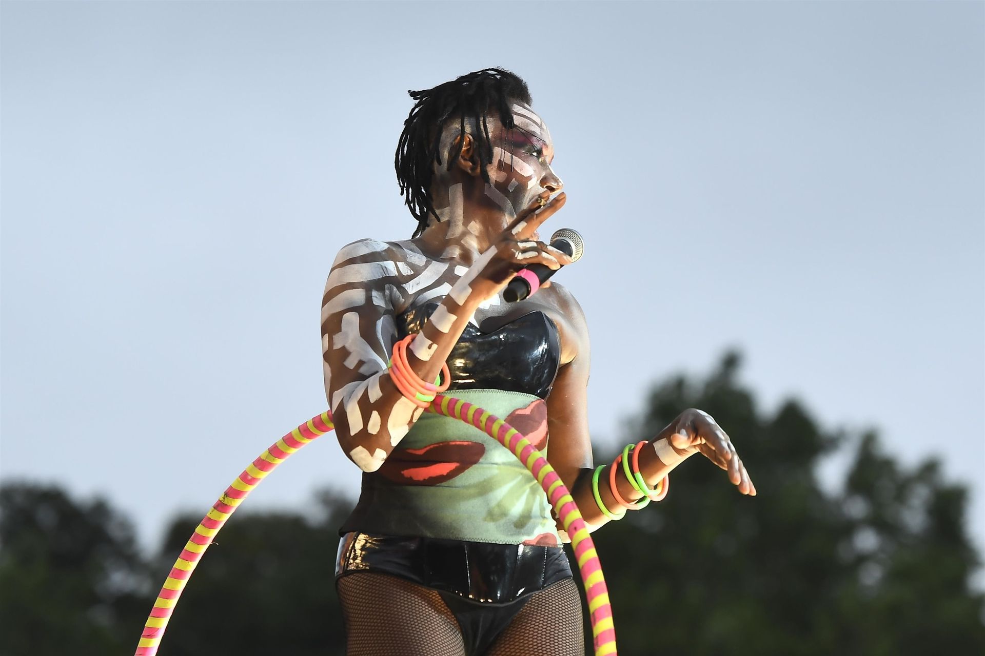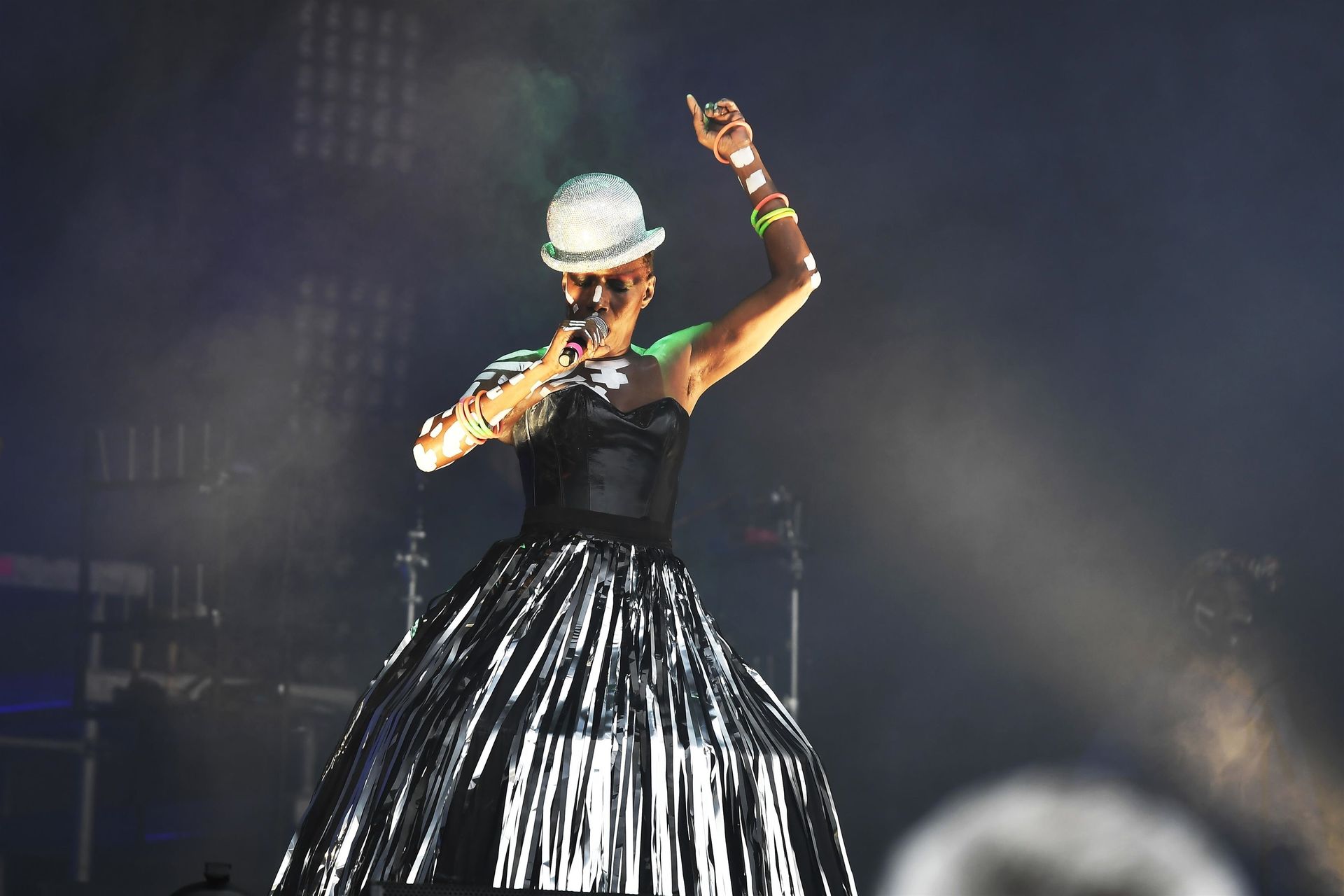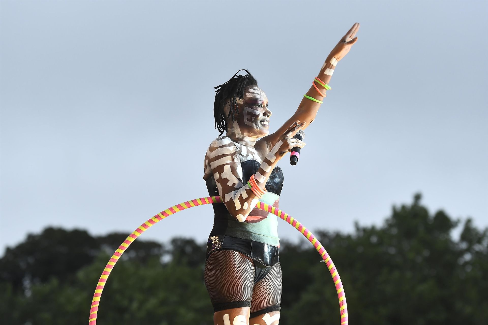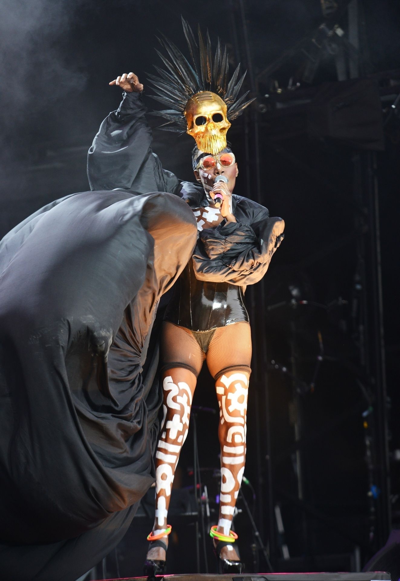 American singer Grace Jones (71) was photographed while performing at Brighton Pride 2019 at Preston Park in Brighton, 09/04/2019. This grandma is like Lady Gaga!