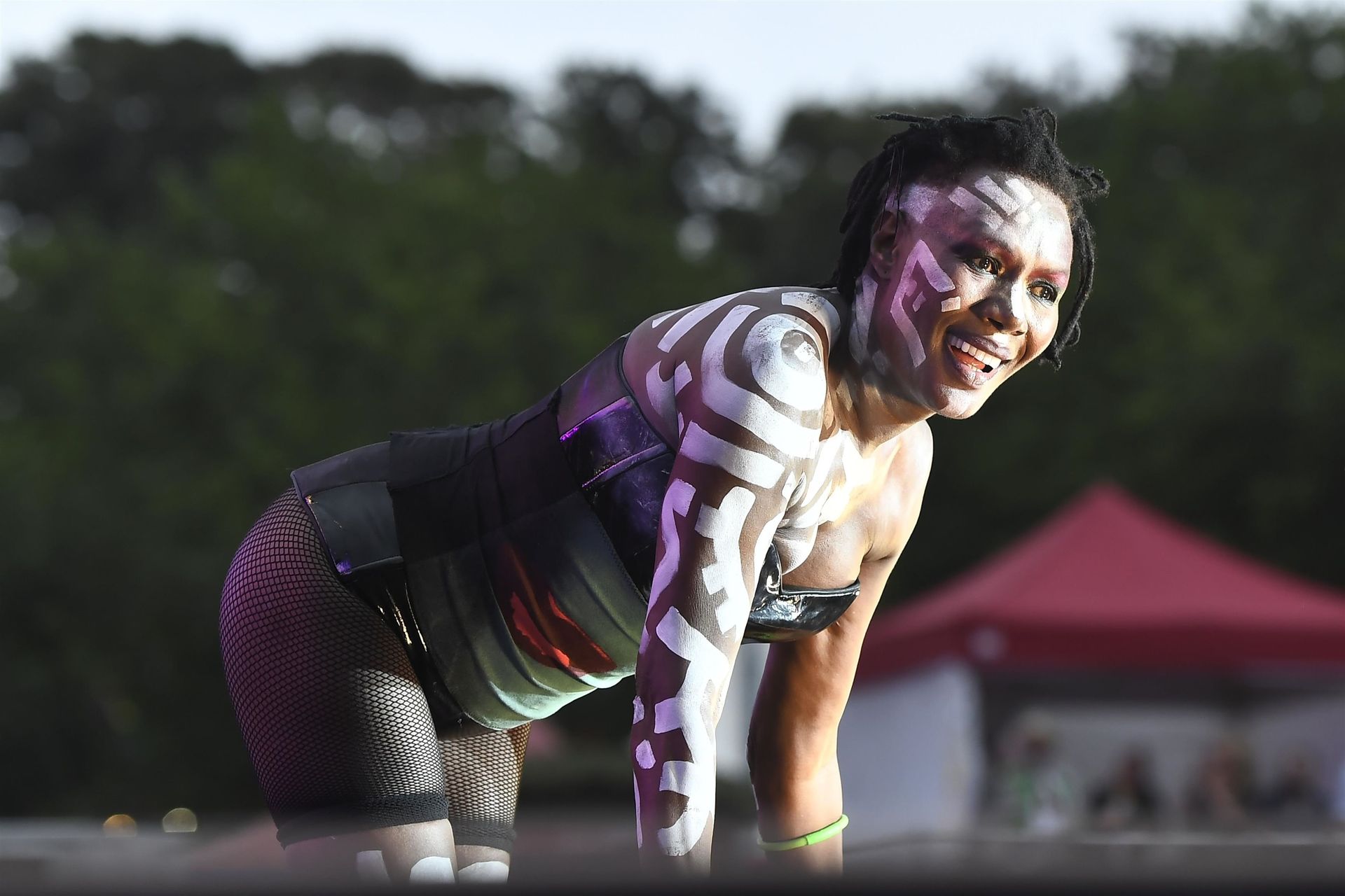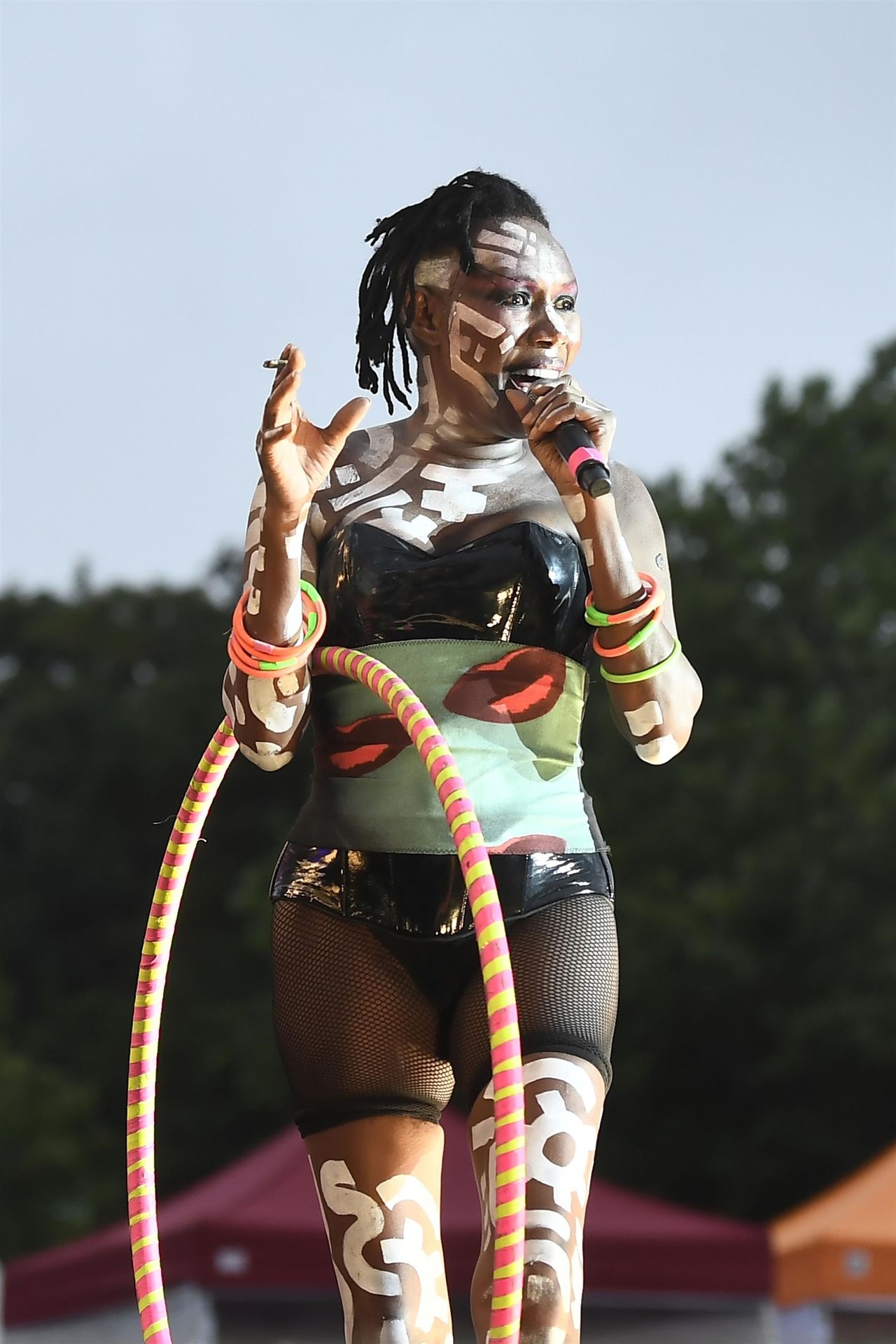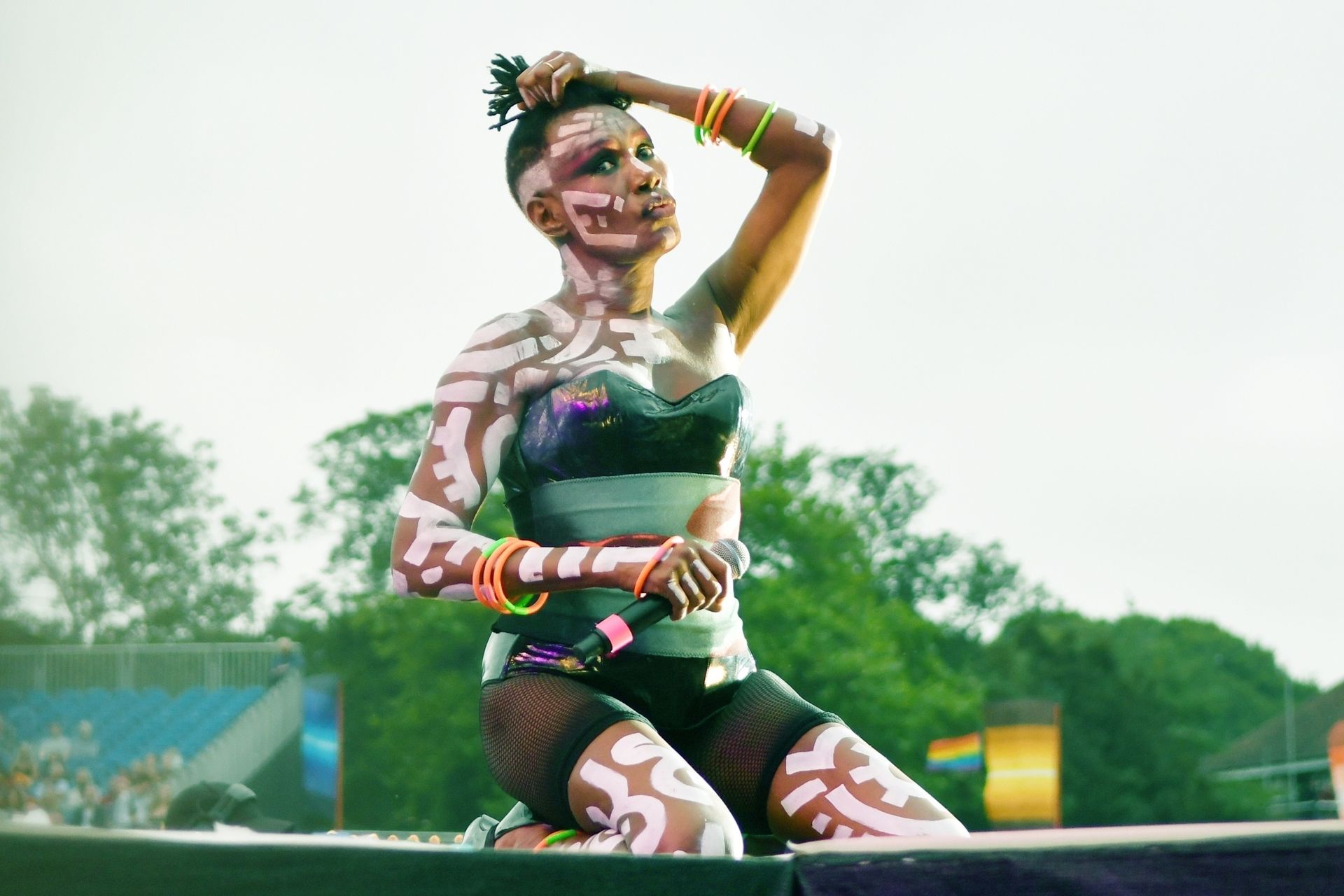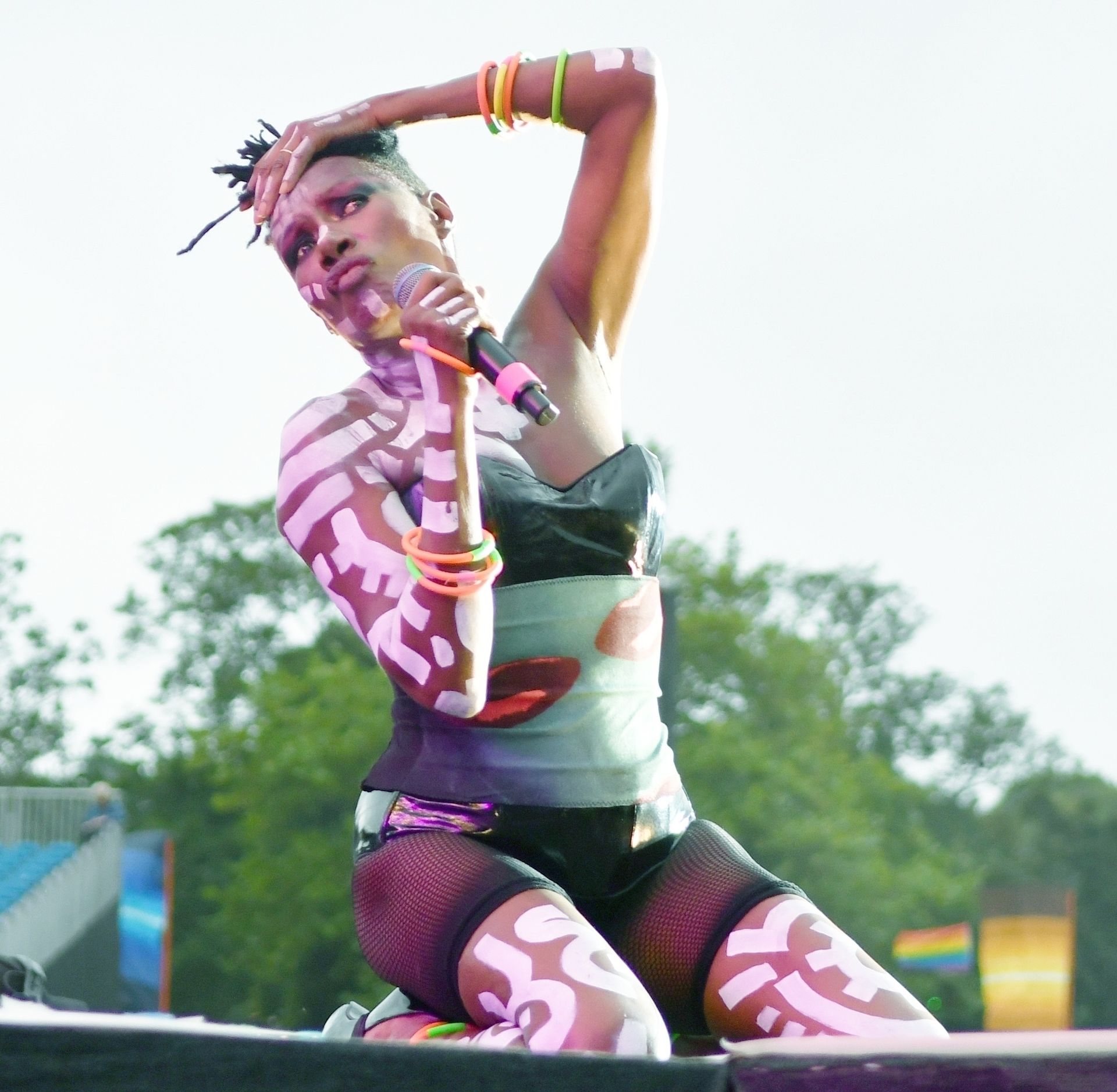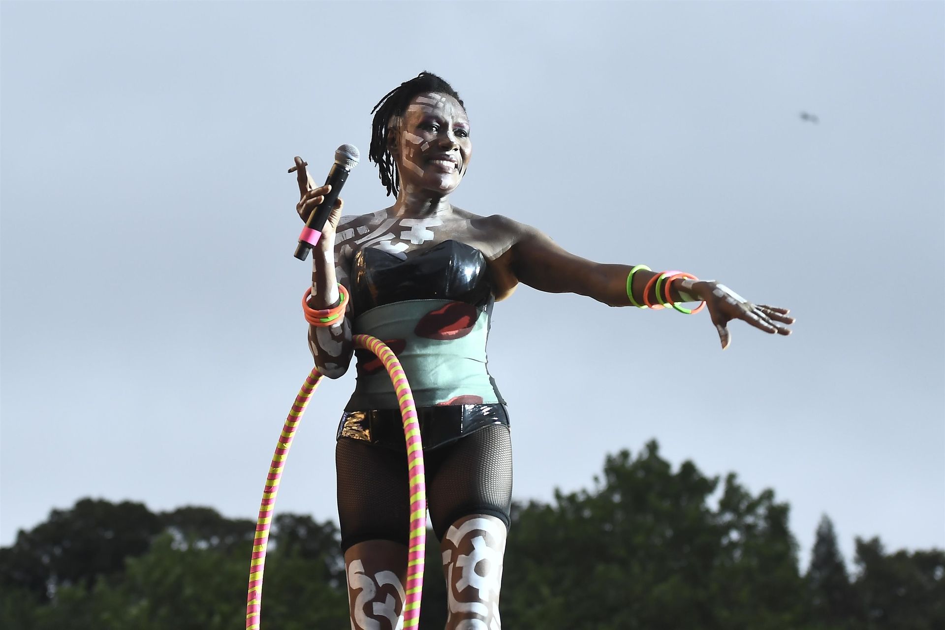 American singer Grace Jones (71) was photographed while performing at Brighton Pride 2019 at Preston Park in Brighton, 09/04/2019. This grandma is like Lady Gaga!