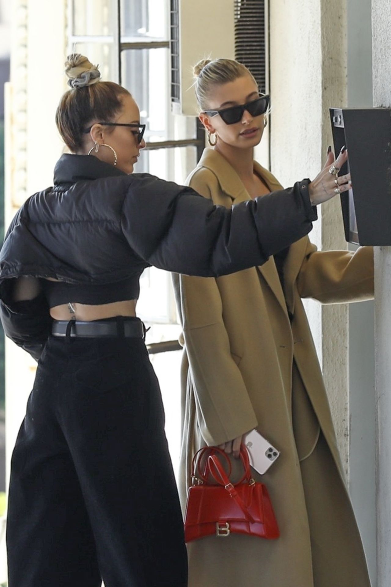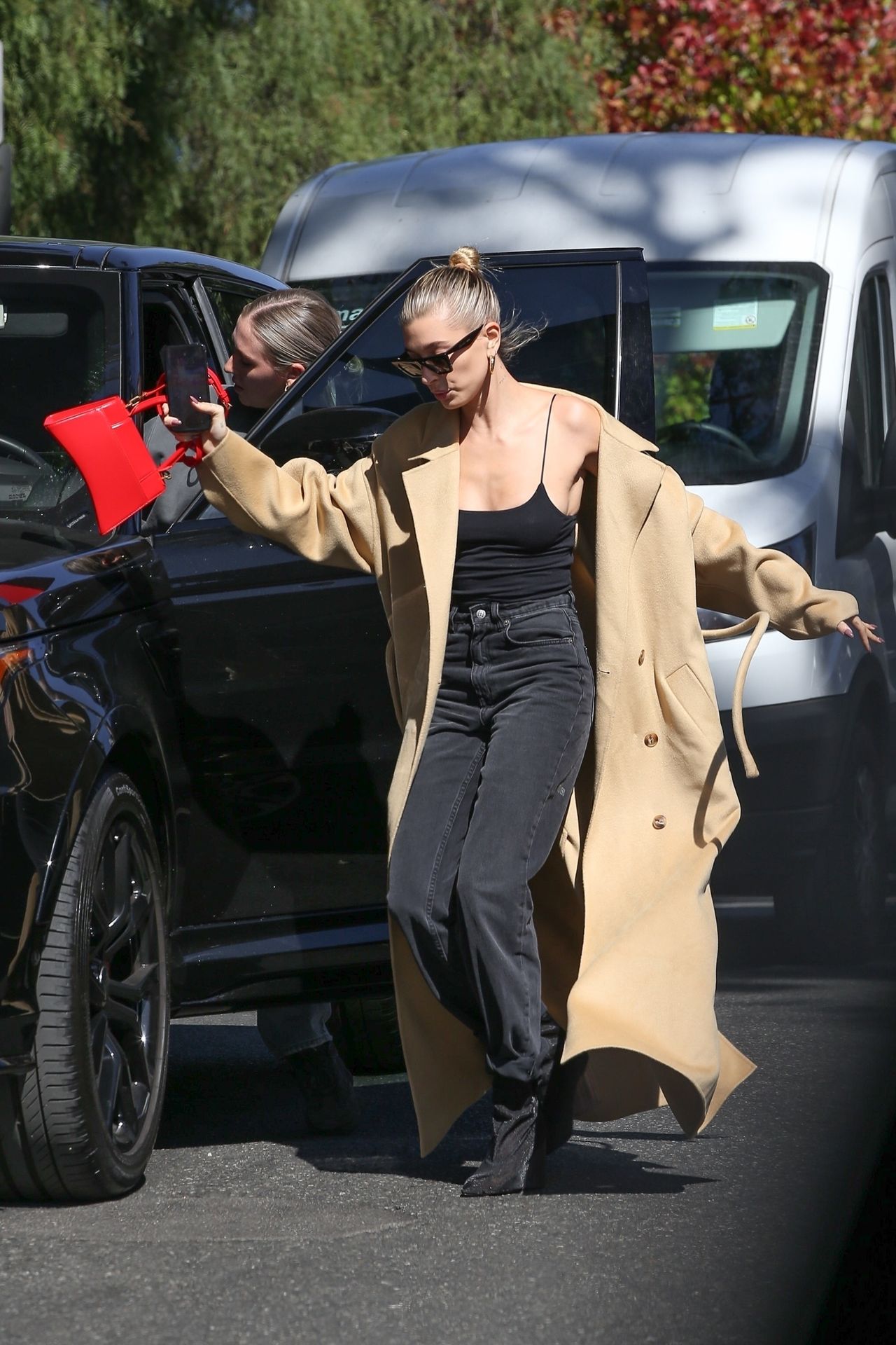 Hailey Bieber saves herself from a nasty spill while looking stylish in Los Angeles, 10/31/2019.