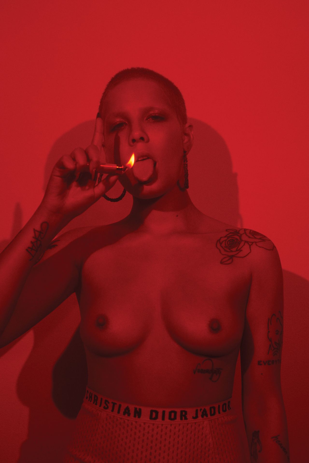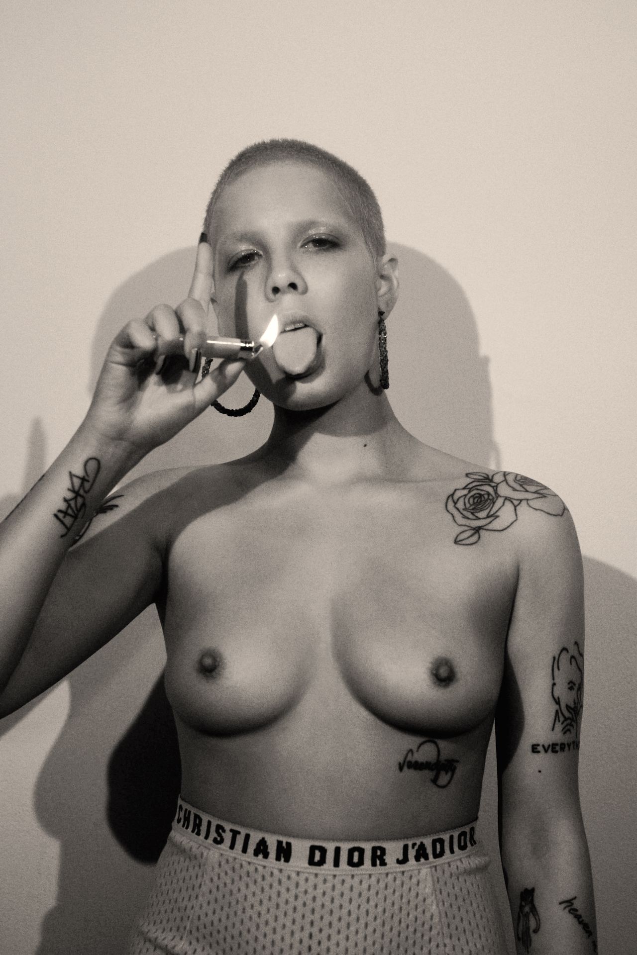 Check out Halsey’s edited nude photo by Zoey Grossman for Flaunt magazine (2017).